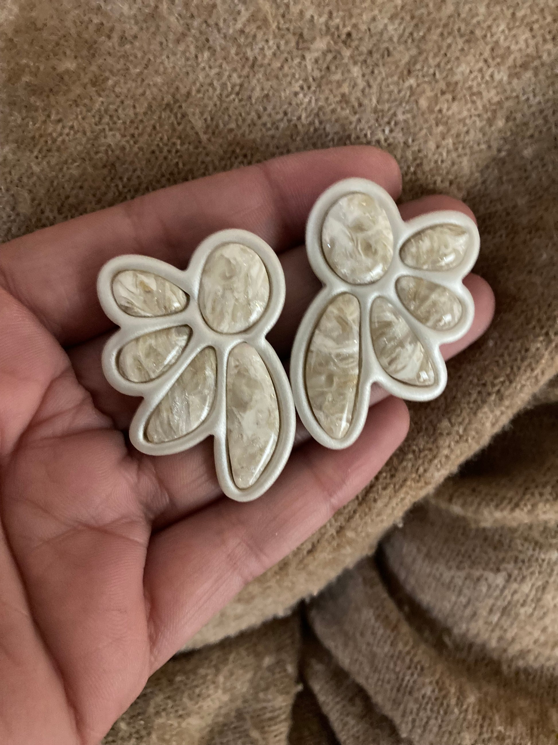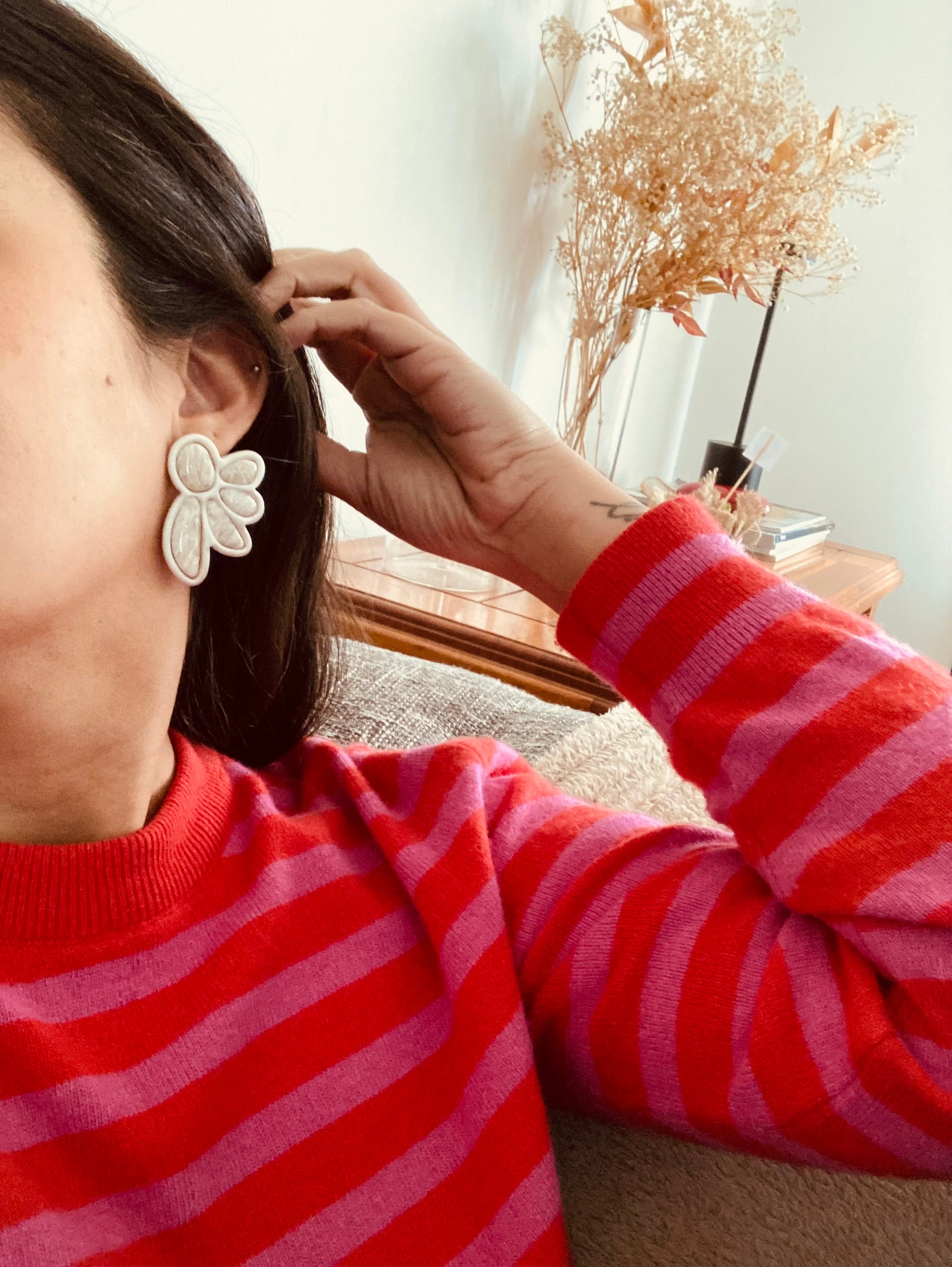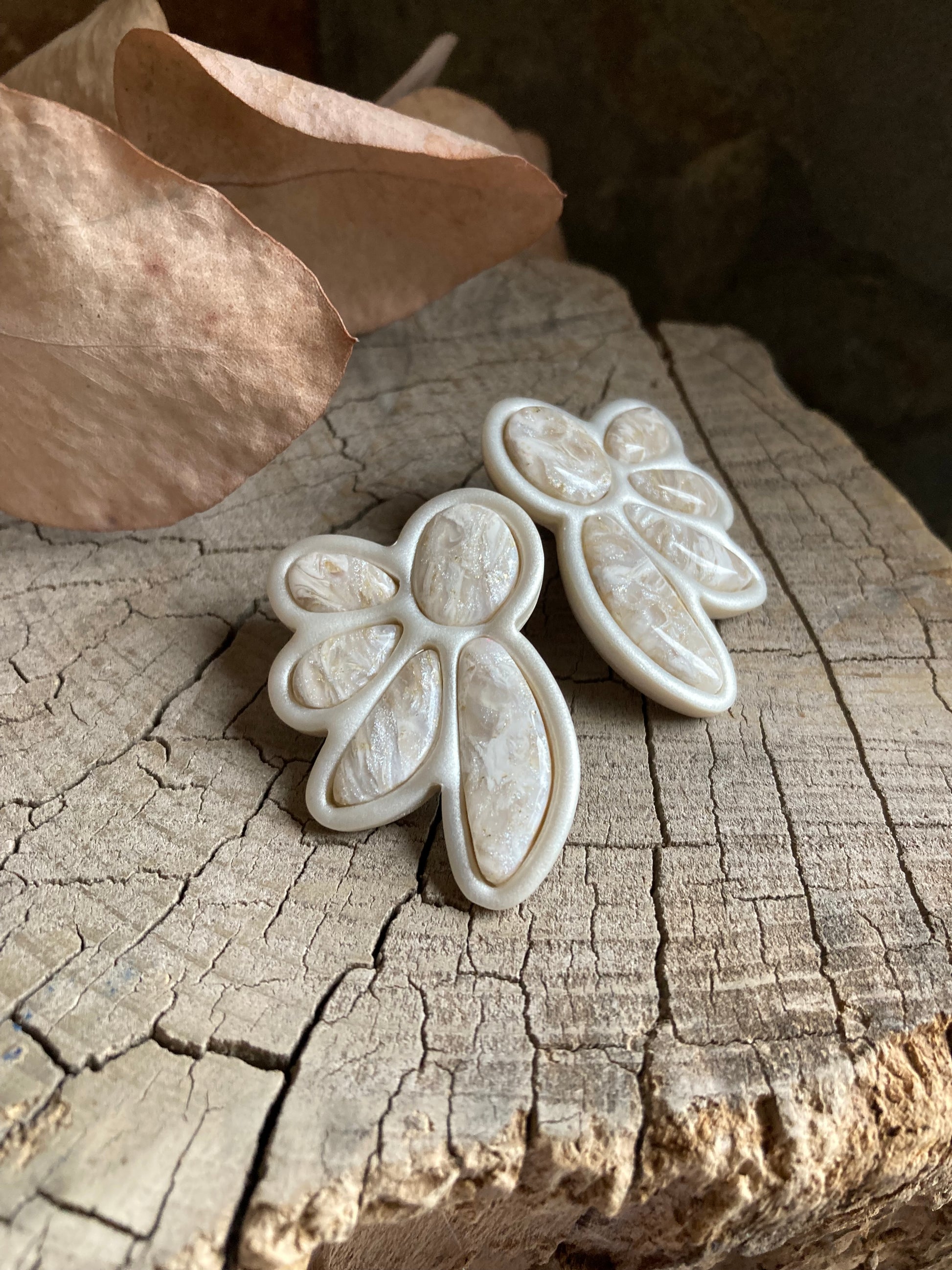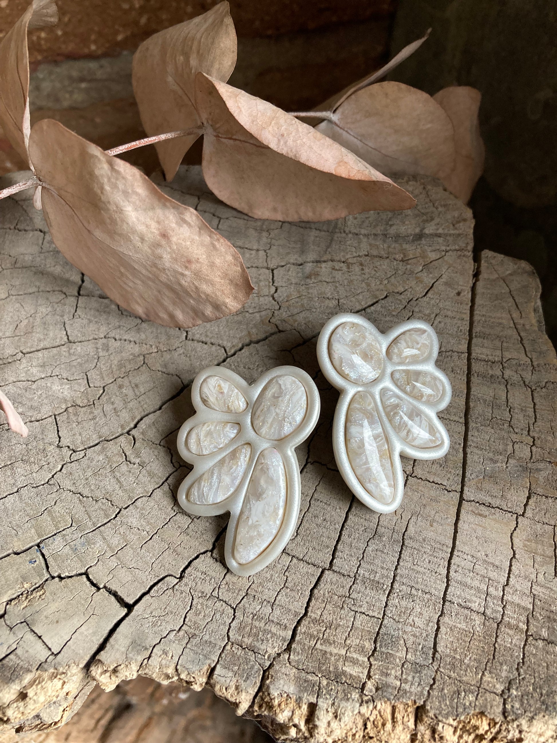 Aros de arcilla polimérica con top coat de resina uv. Miden 4,5 cms. Palito de acero quirúrgico y tope de goma.