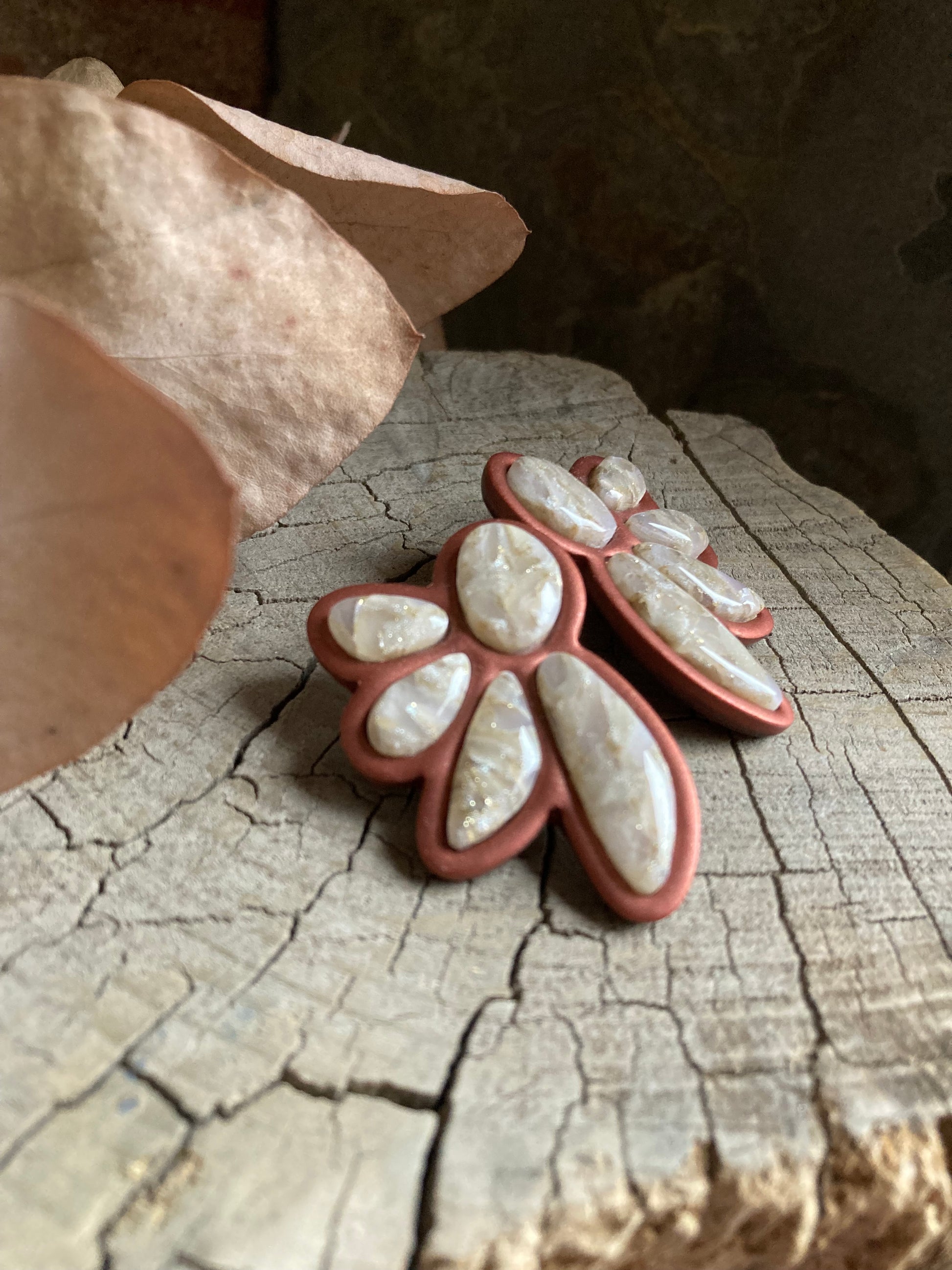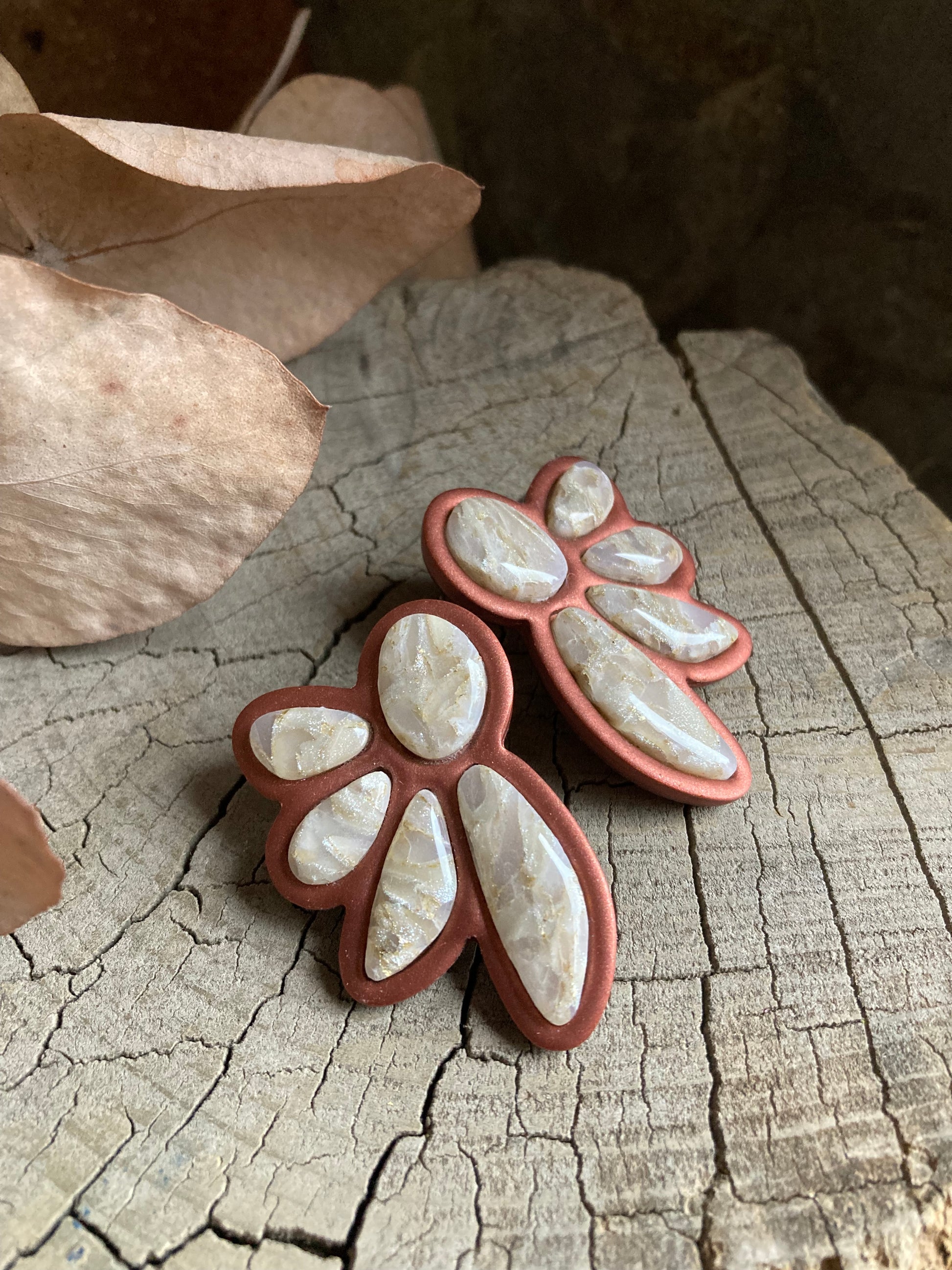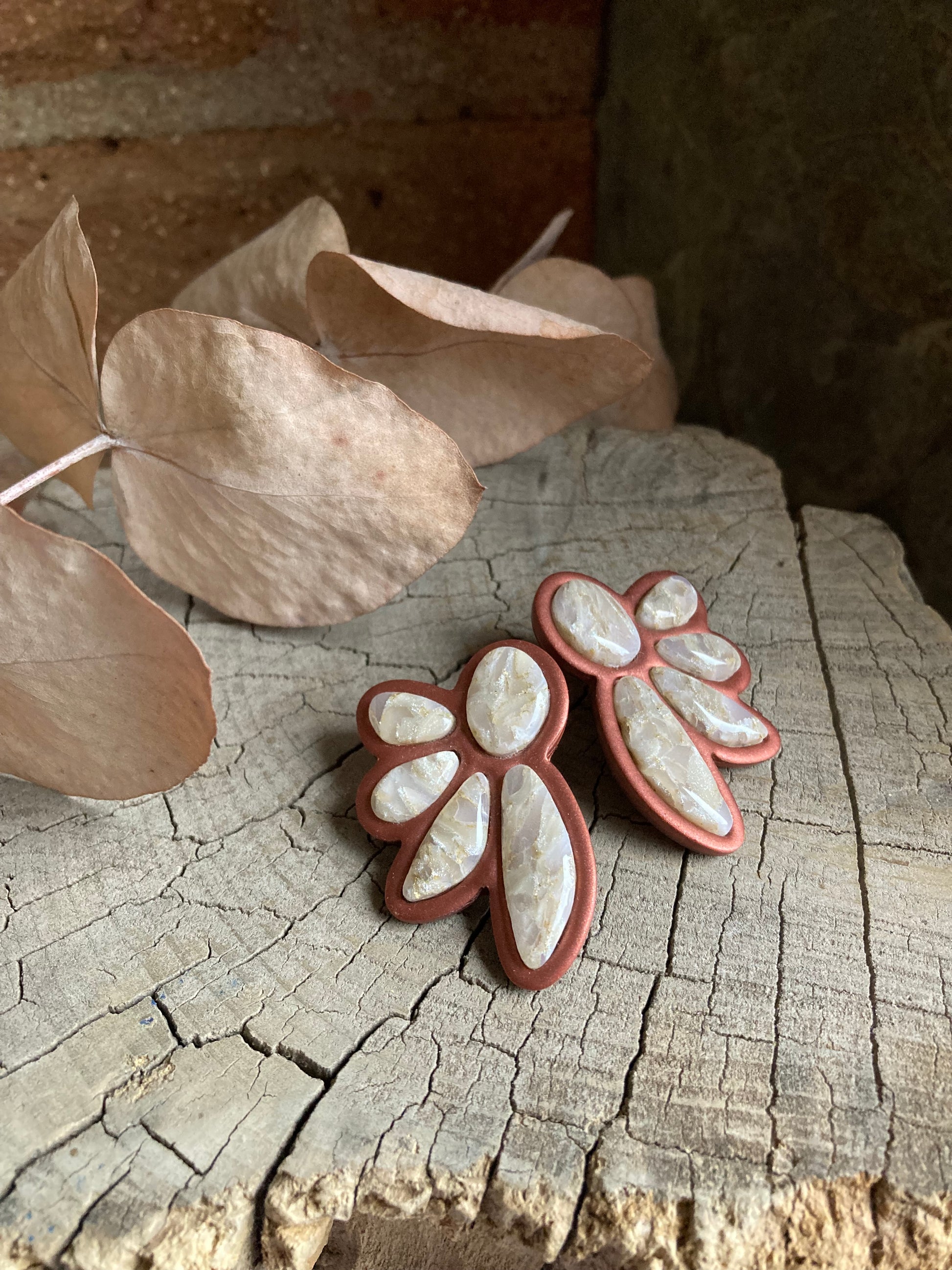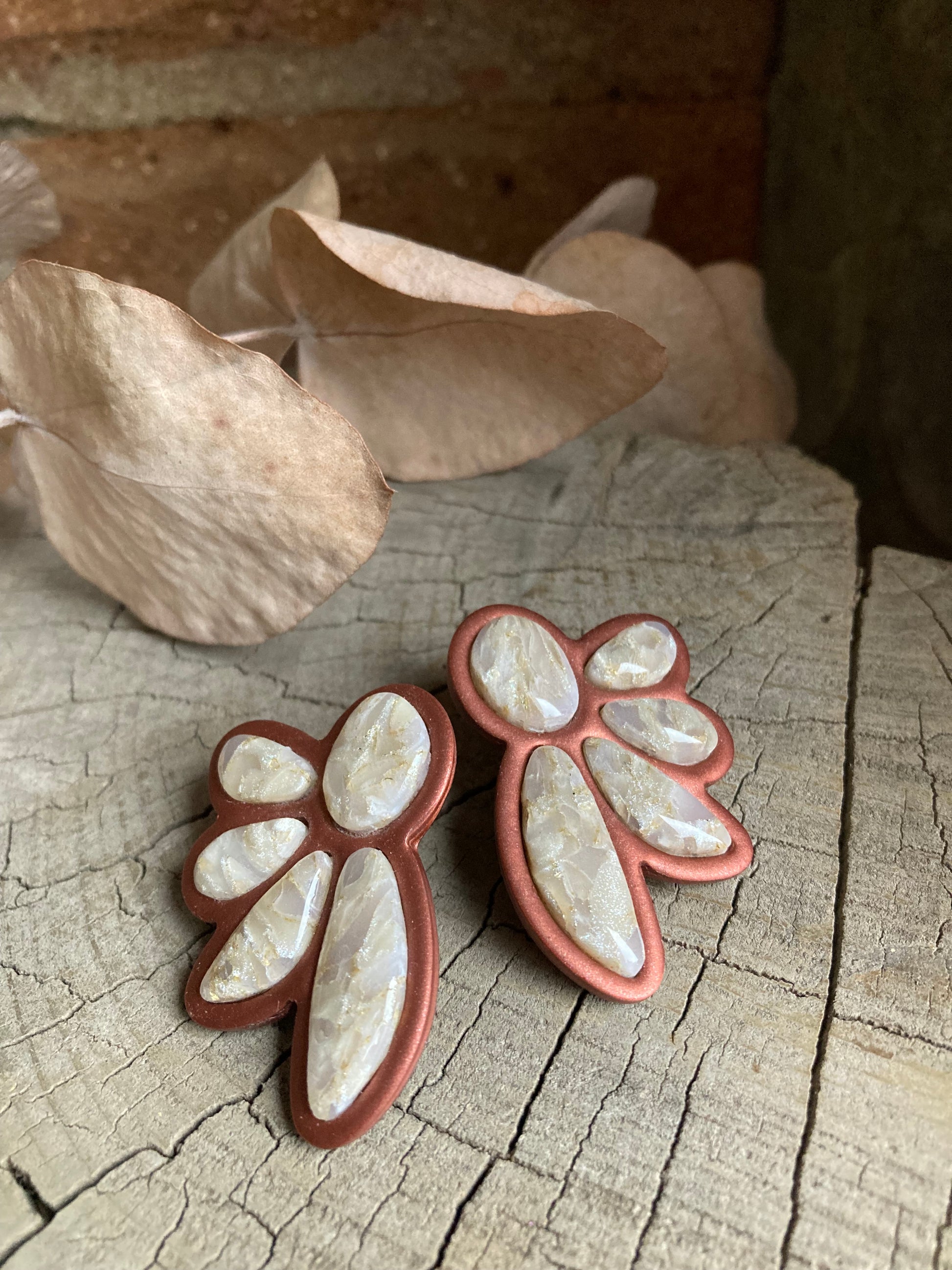 Aros de arcilla polimérica con top coat de resina uv. Miden 4,5 cms. Palito de acero quirúrgico y tope de goma.