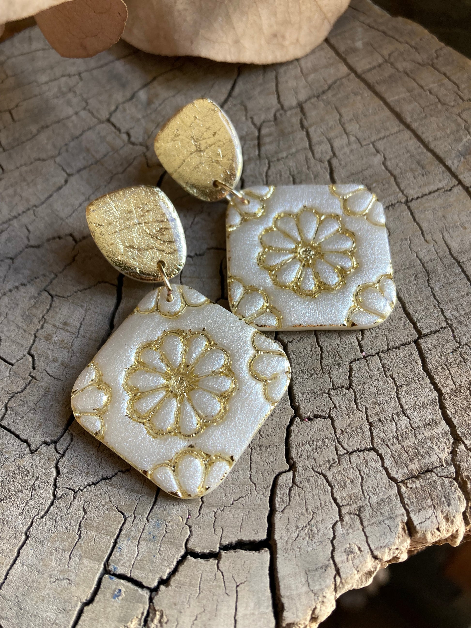 Aros de arcilla polimérica con top coat de resina uv. Miden 5,4 cms. Palito de acero quirúrgico y tope de goma.