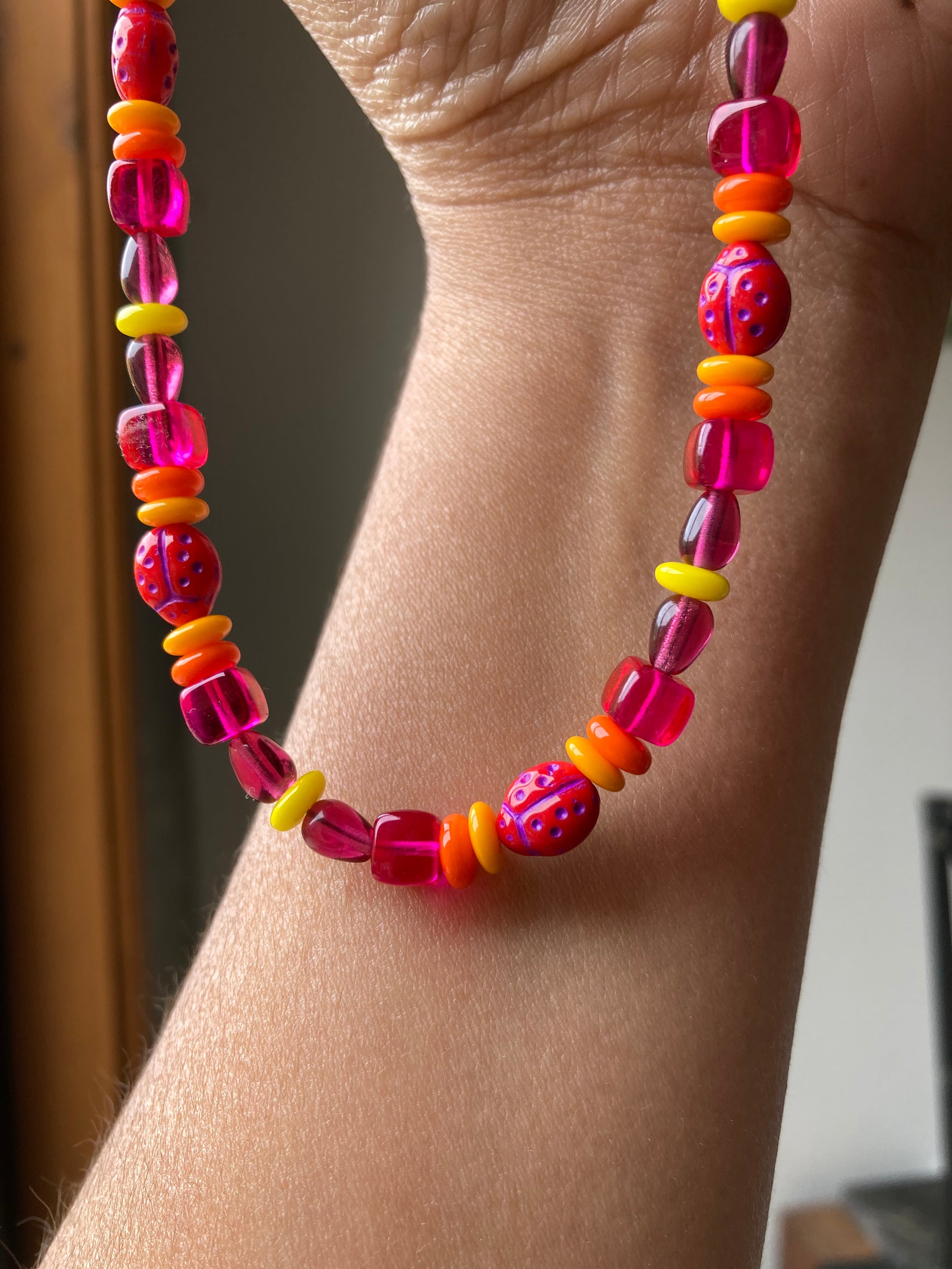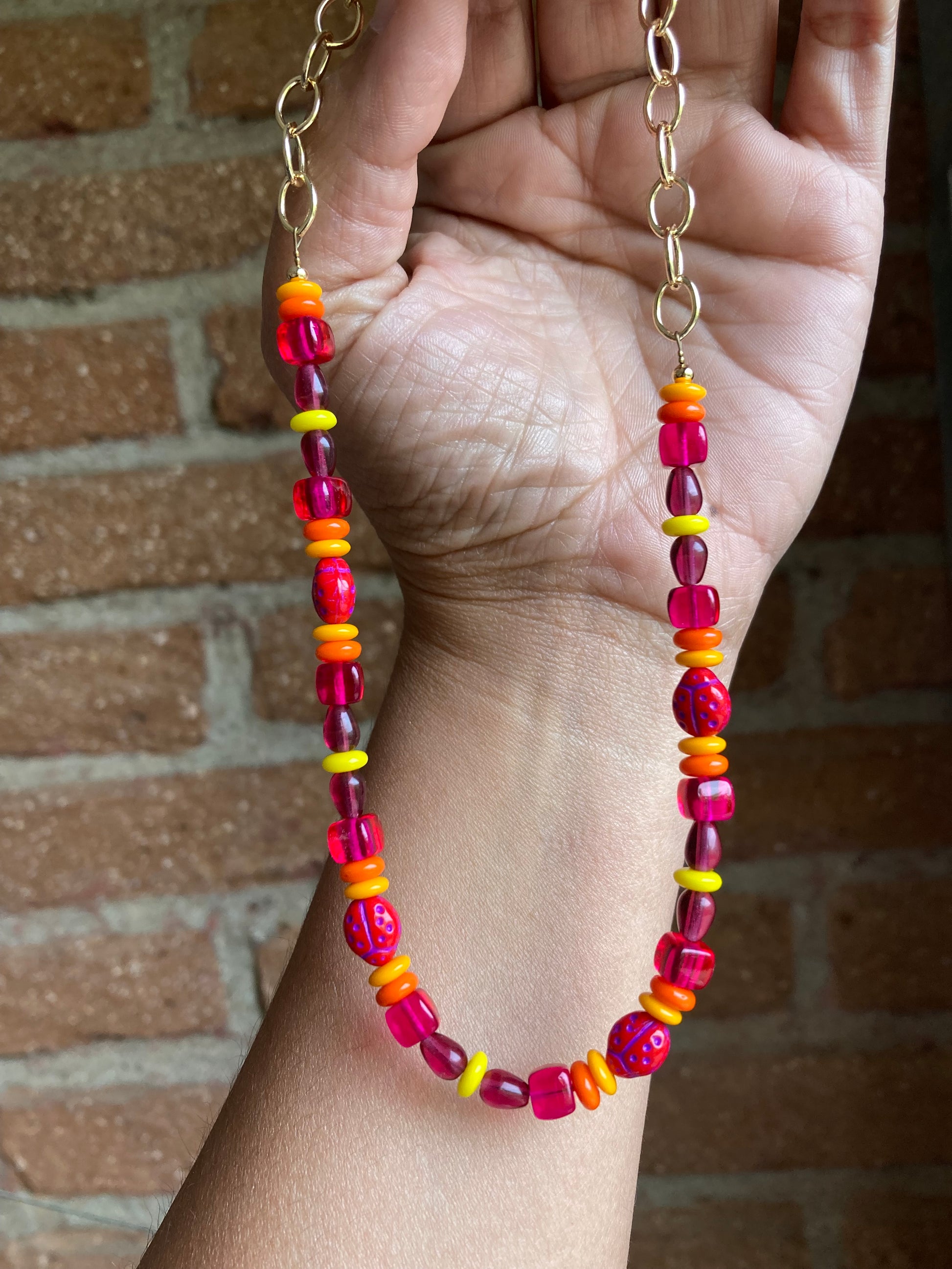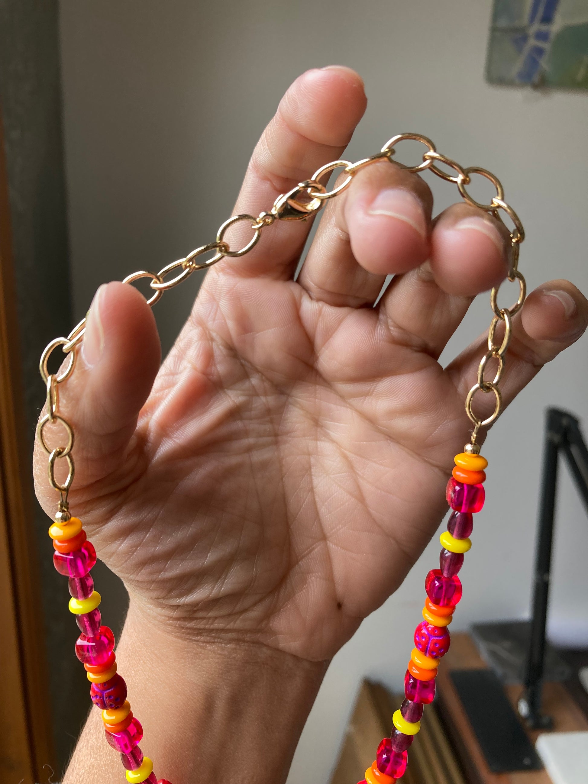 Collar choker de cadena hipoalergénico gold filled 14 quilates + mostacillas de cristal checo.