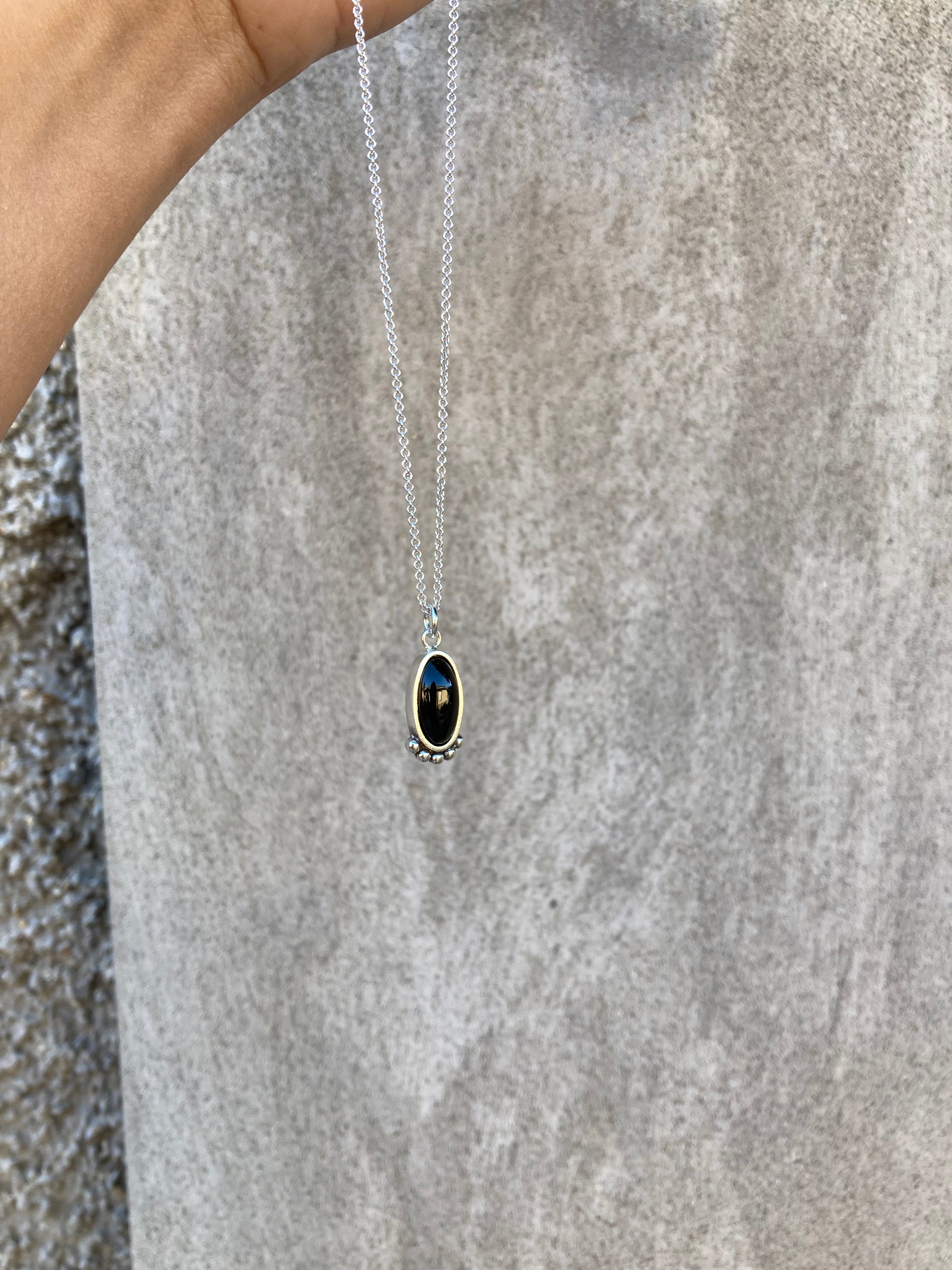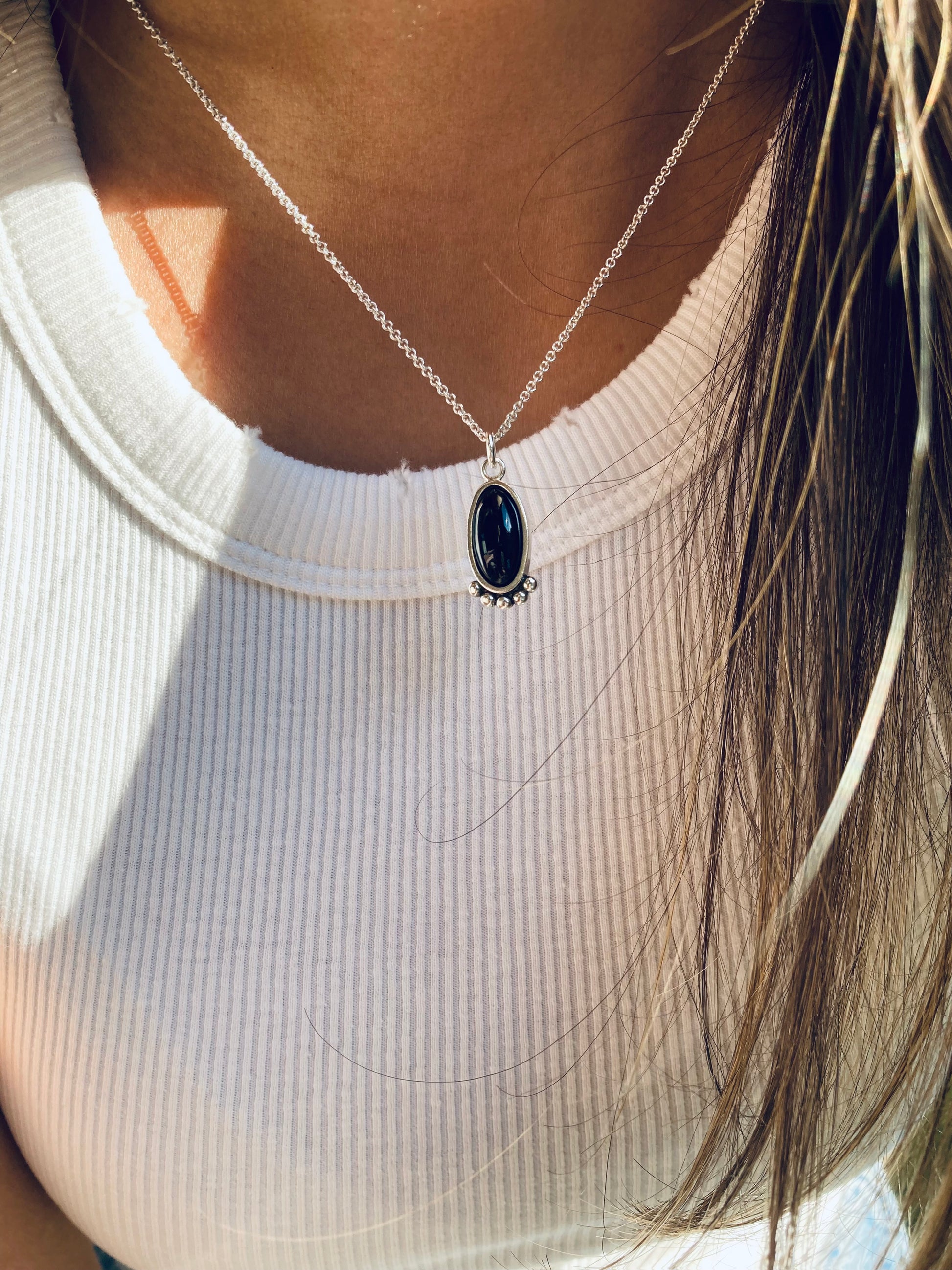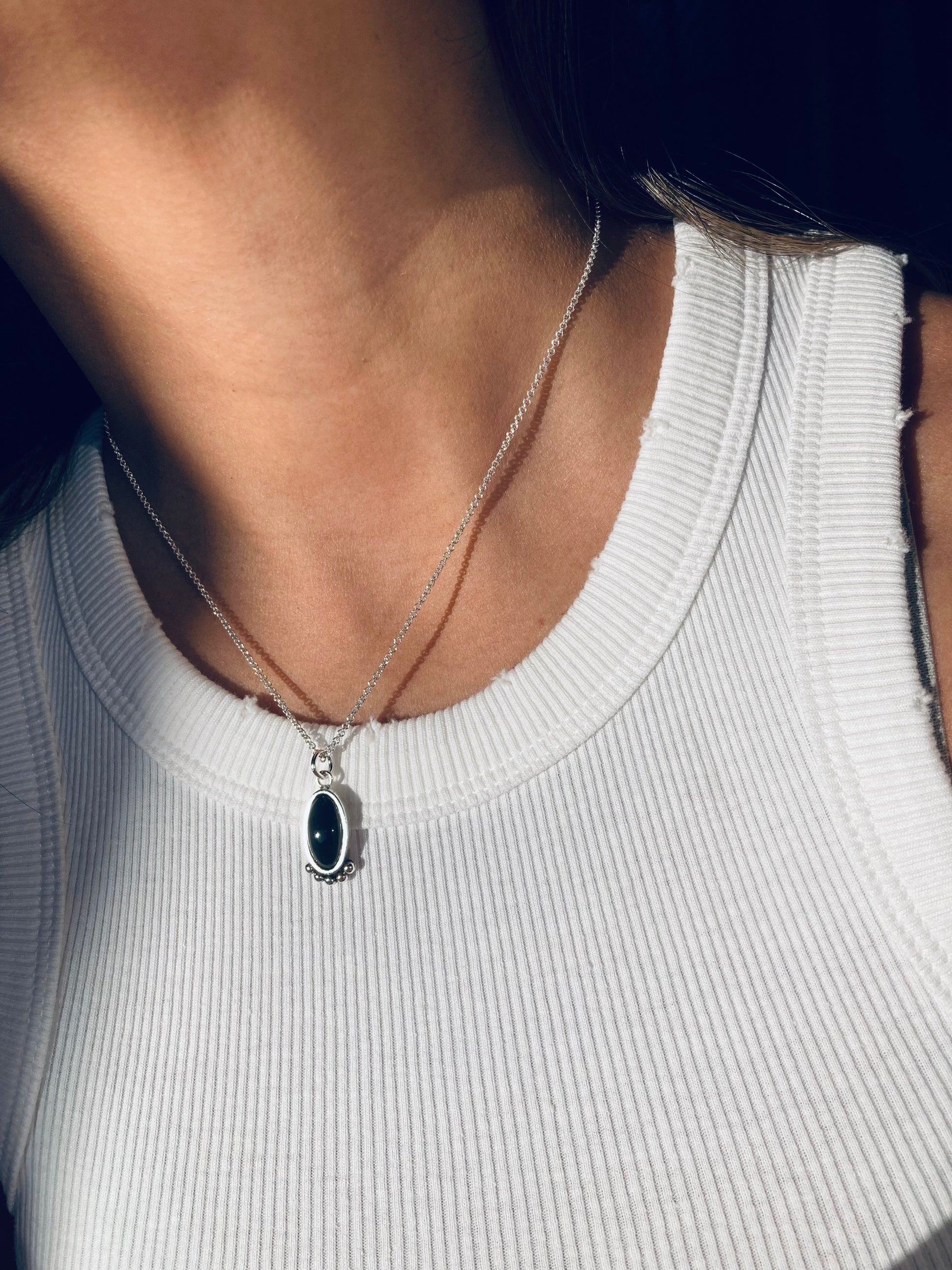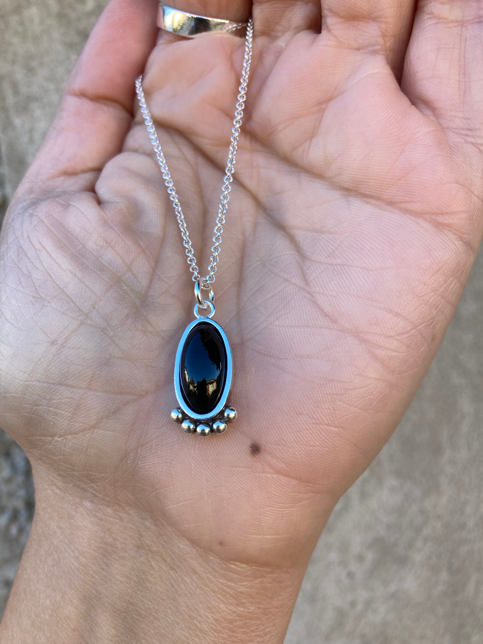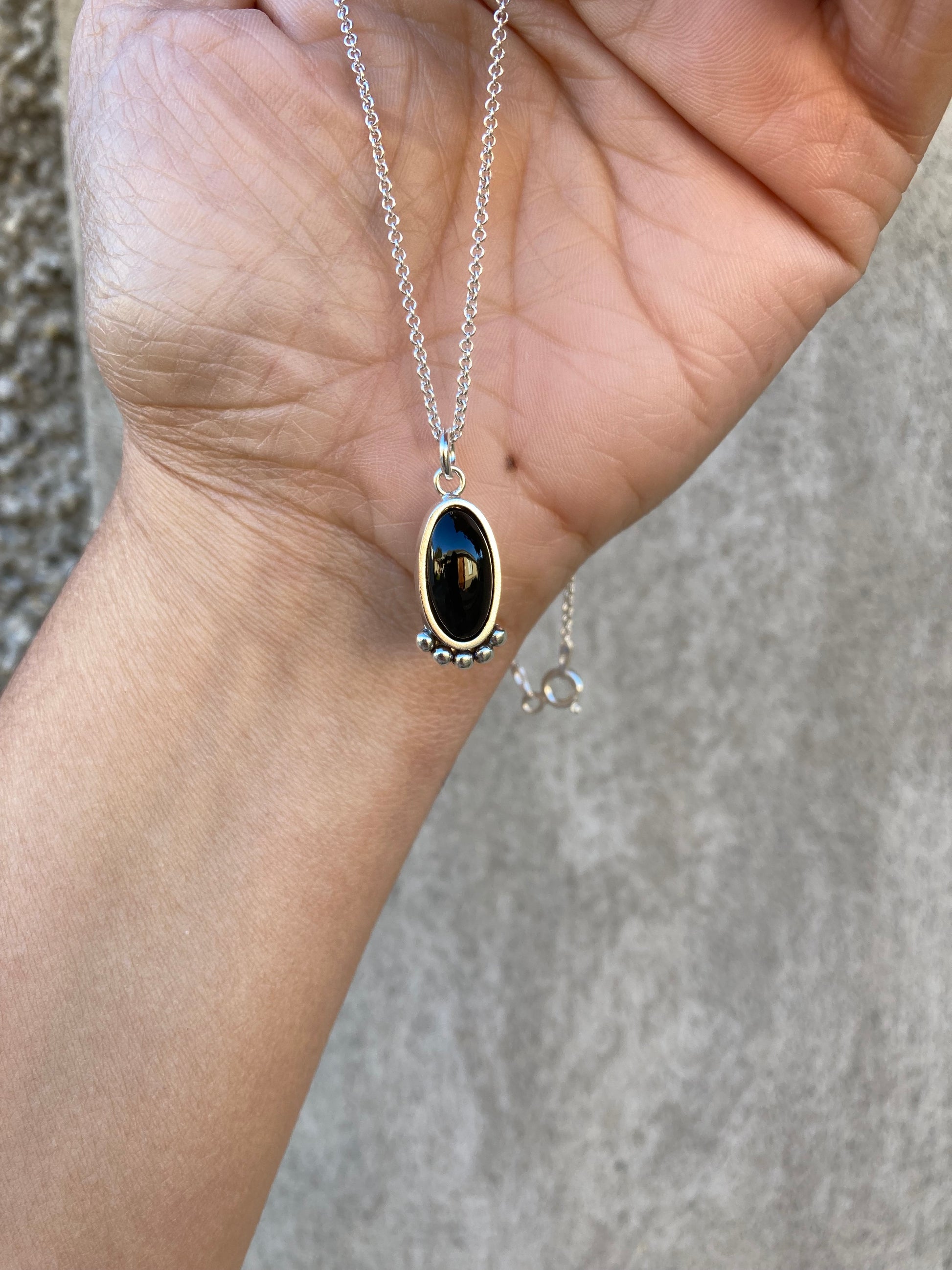 Colgante de plata con piedra onix negra. Mide 1,8 cms.