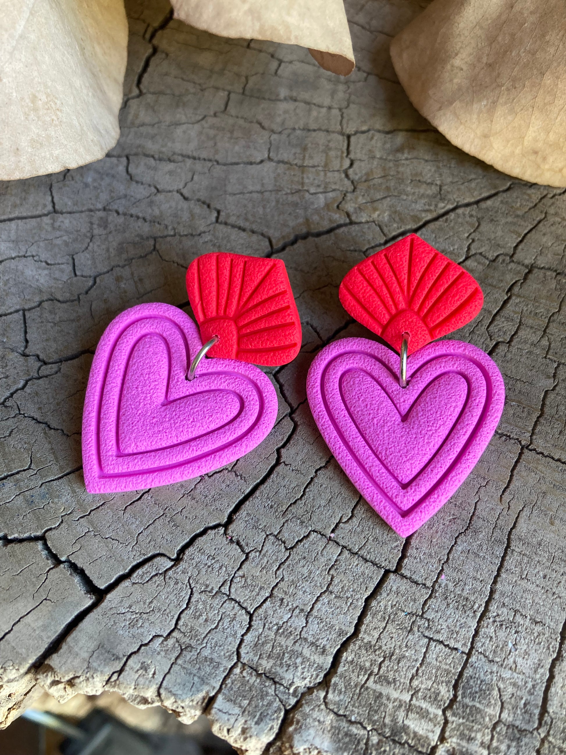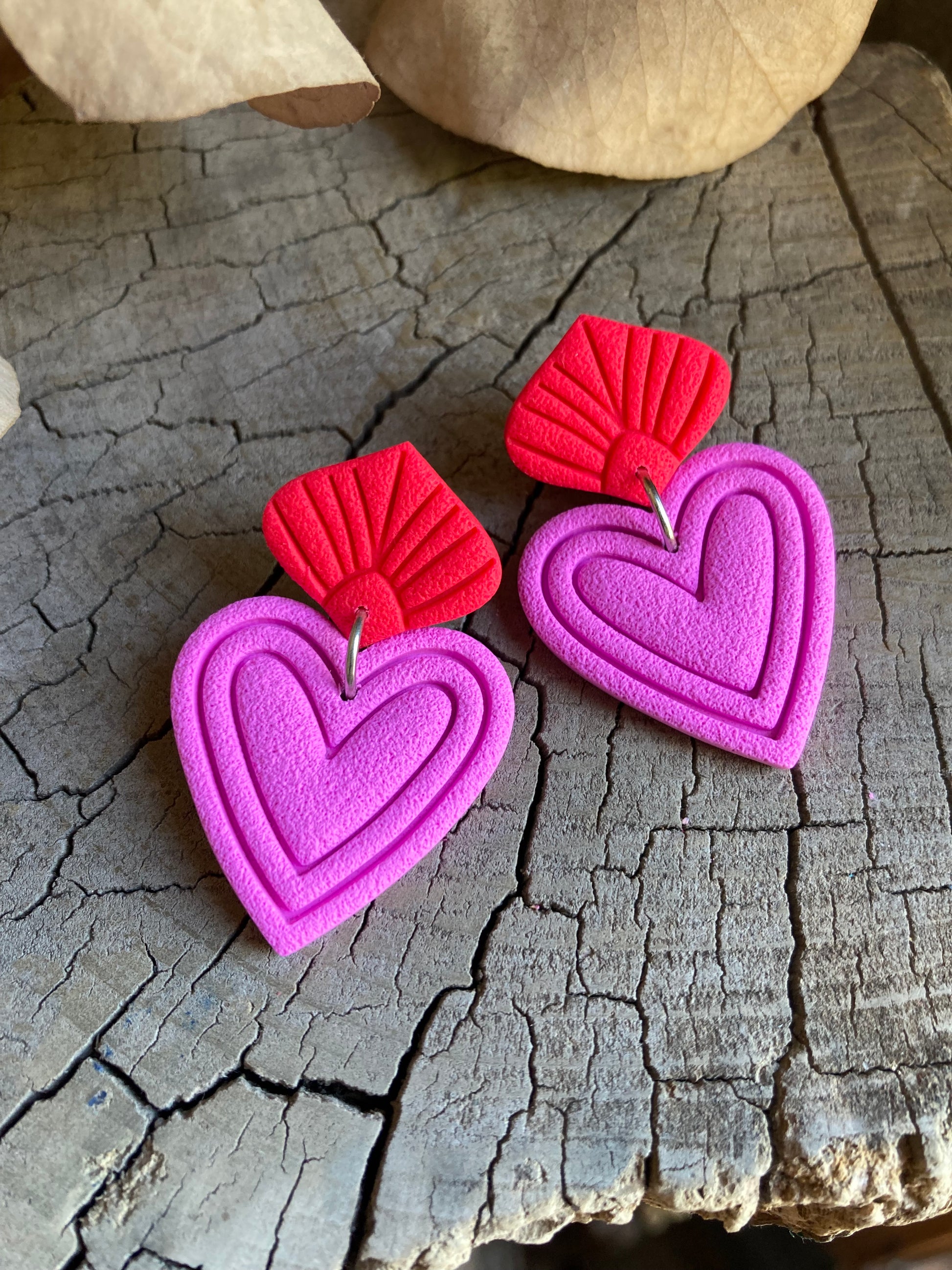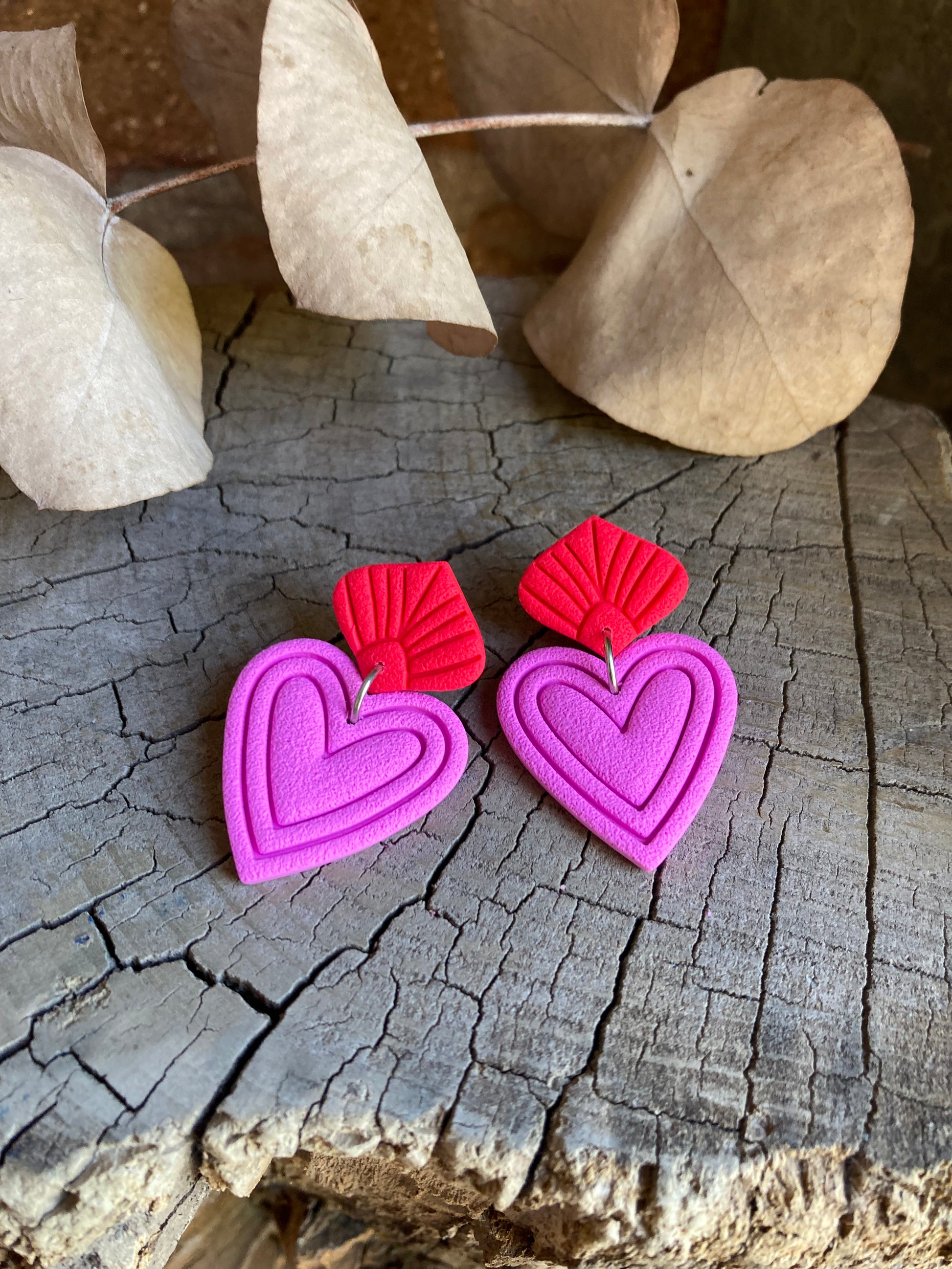 Aros de arcilla polimérica con textura. Miden 4,5 cms. Palito de acero quirúrgico y tope de goma.