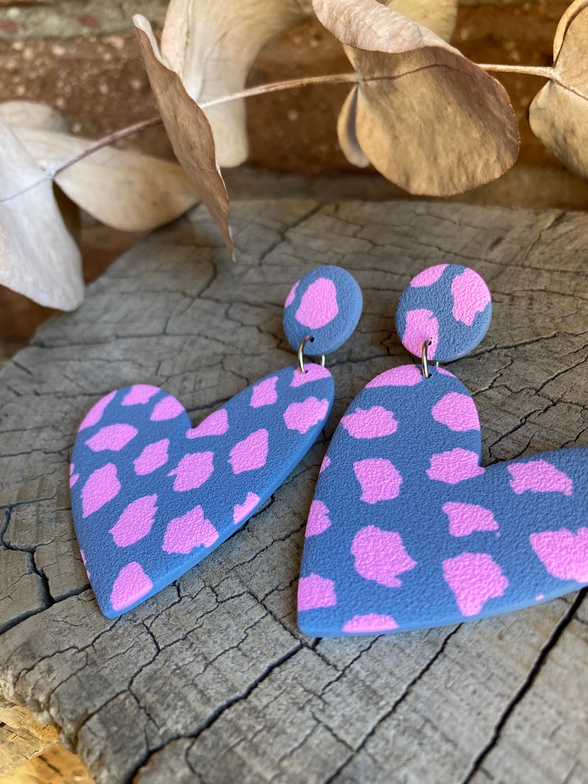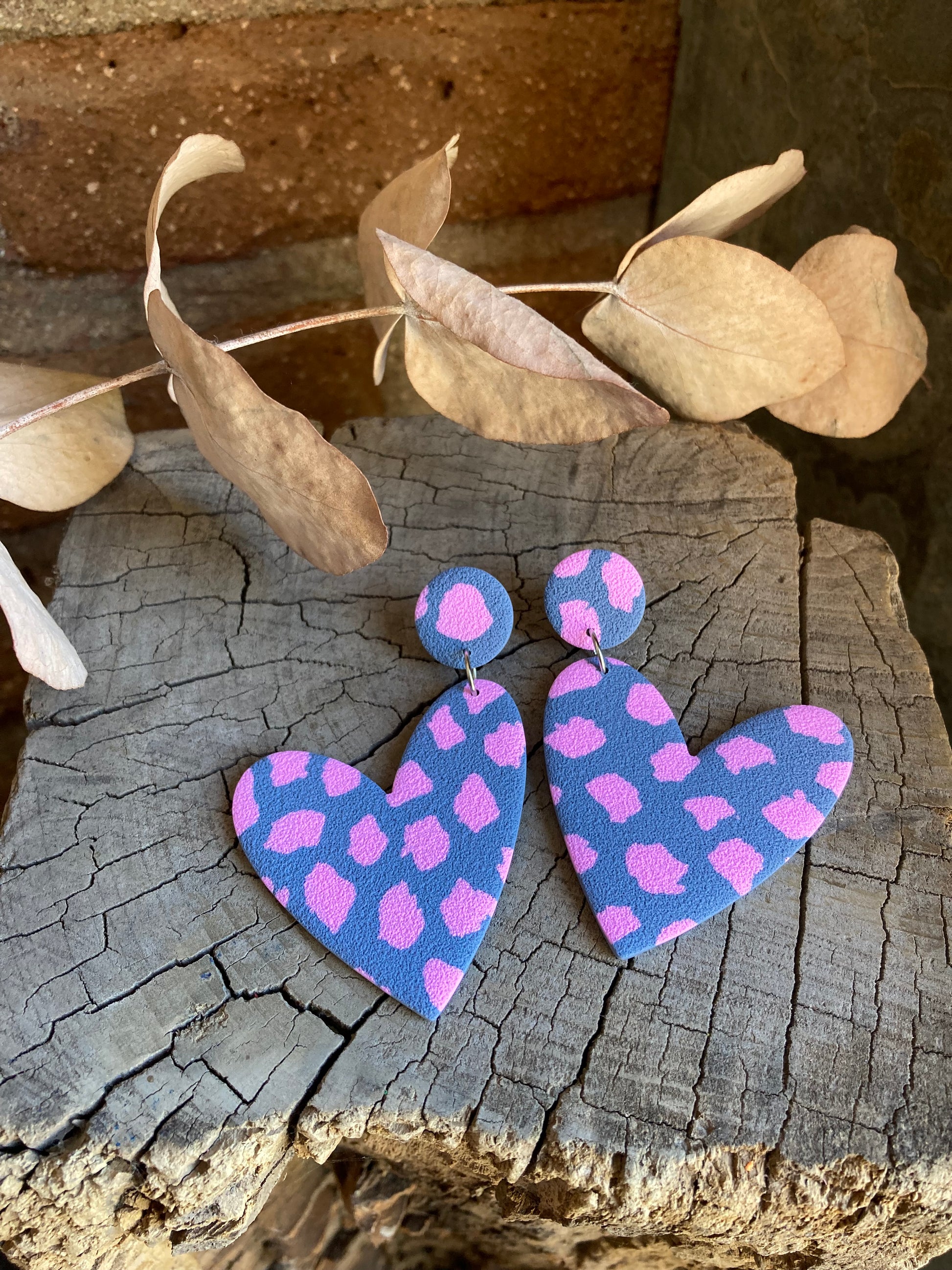 Aros de arcilla polimérica con textura. Miden 7 cms. Palito de acero quirúrgico y tope de goma.