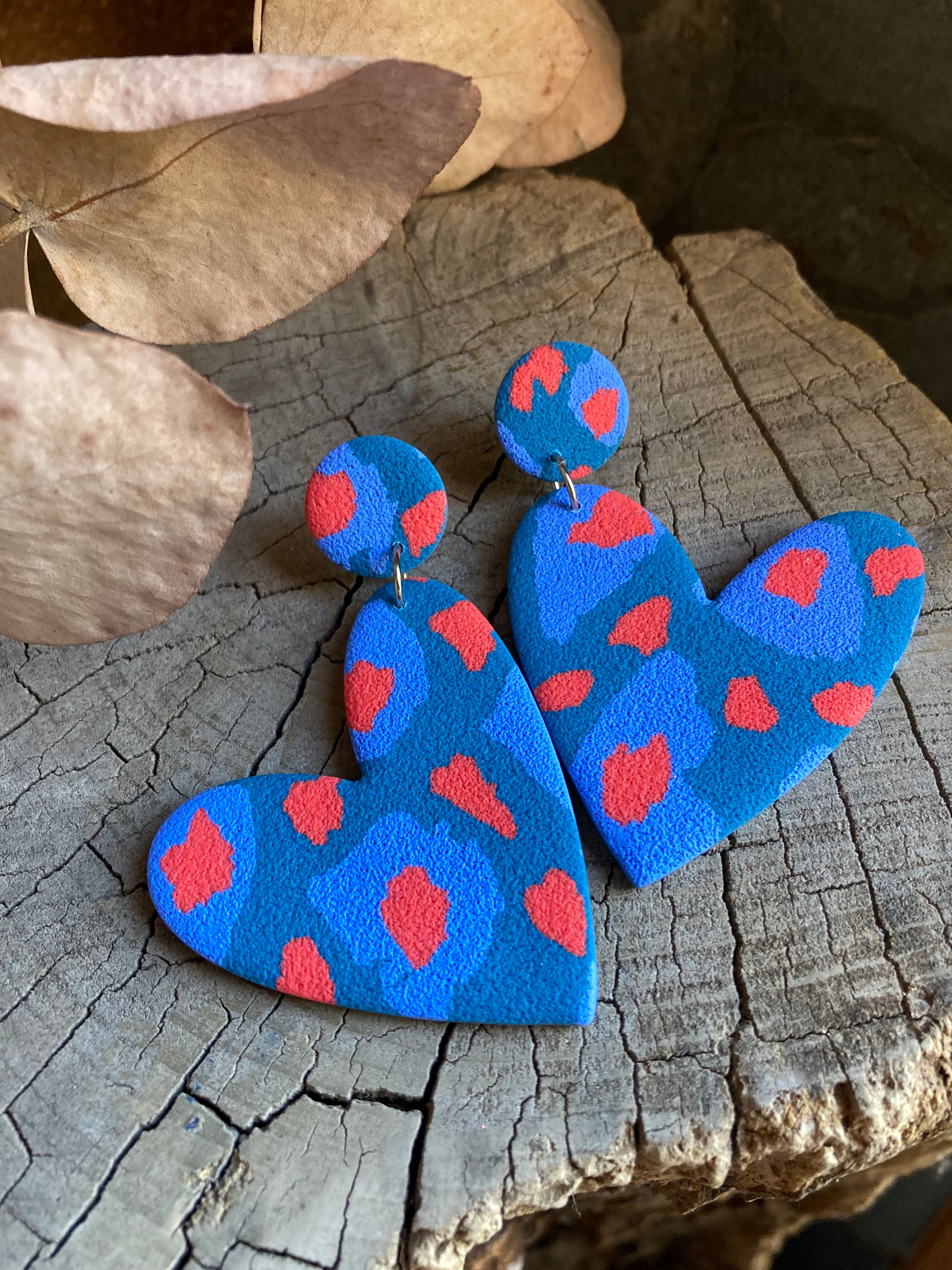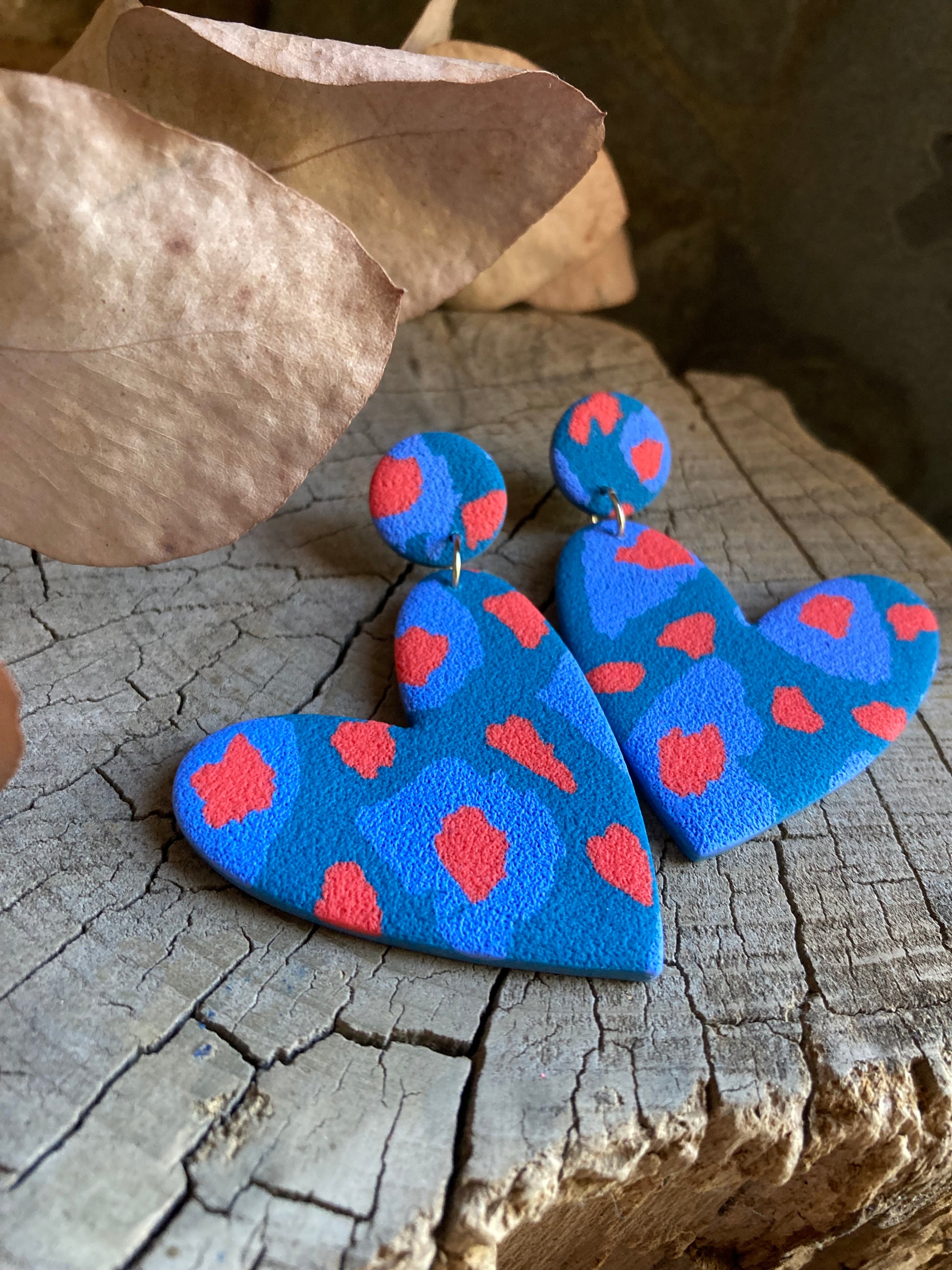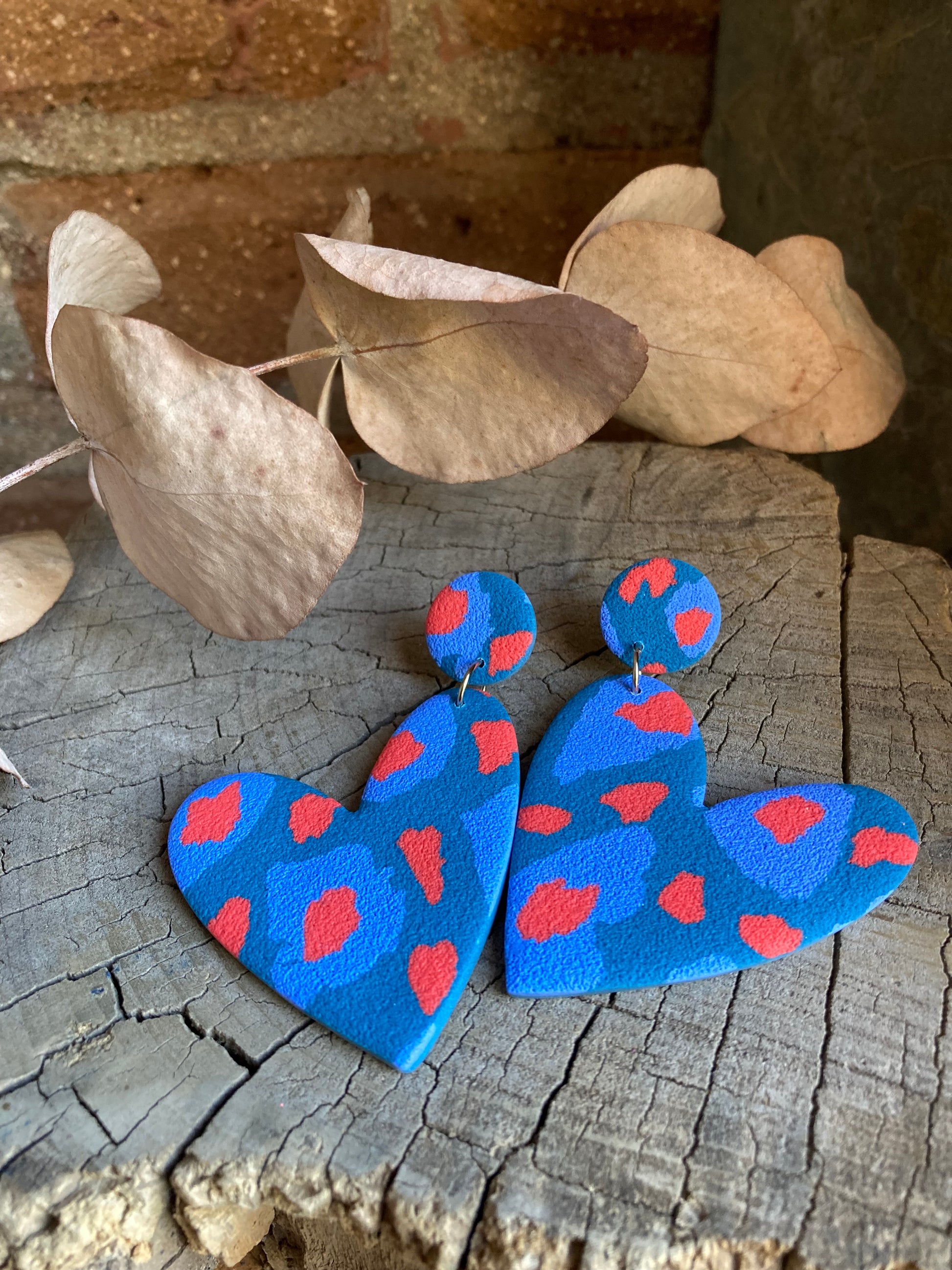 Aros de arcilla polimérica con textura. Miden 7 cms. Palito de acero quirúrgico y tope de goma.