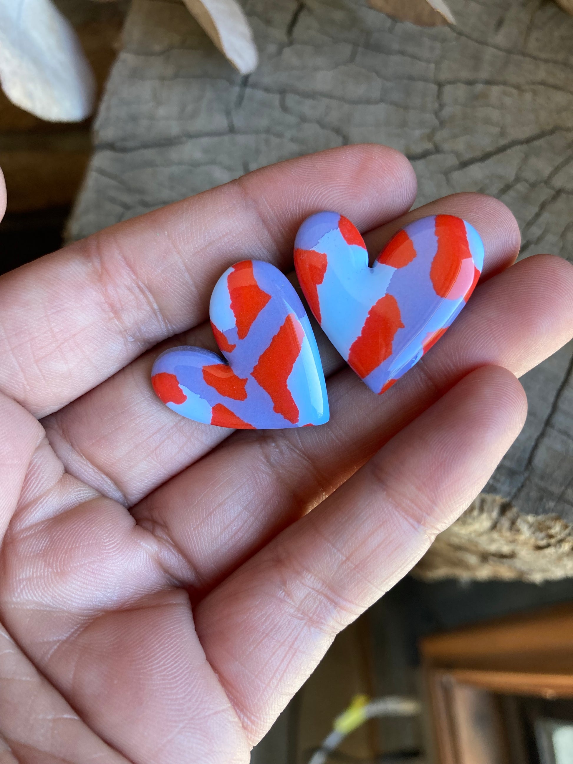 Aros de arcilla polimérica con top coat de resina uv. Miden 2,5 cms. Palito de acero quirúrgico y tope de goma.