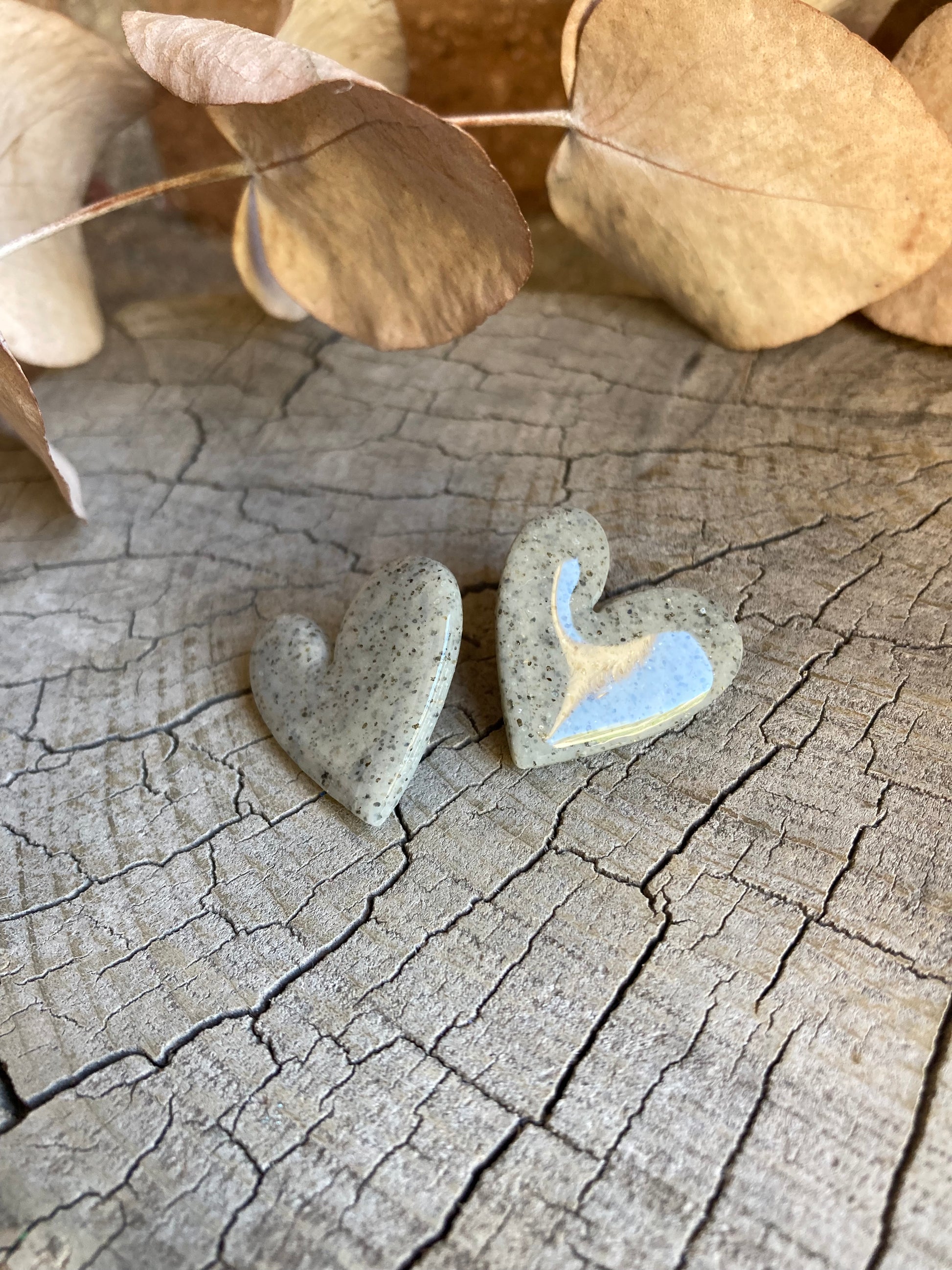 Aros de arcilla polimérica con top coat de resina uv. Miden 2,5 cms. Palito de acero quirúrgico y tope de goma.