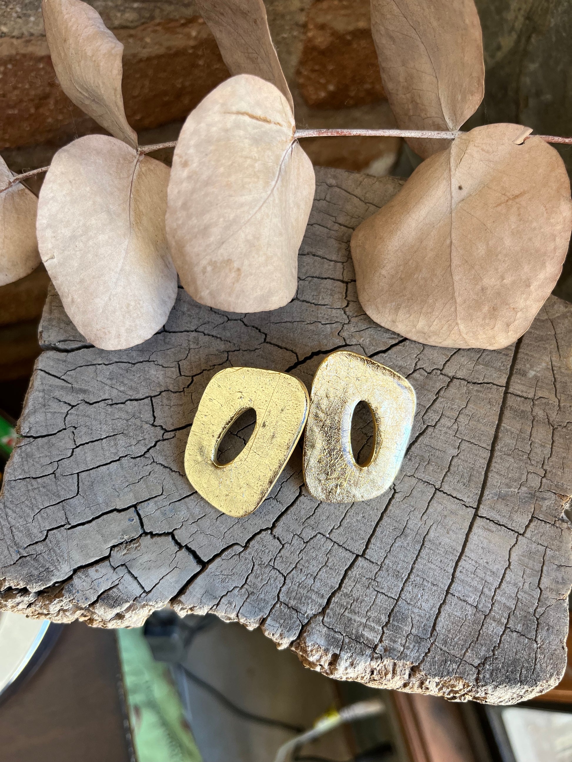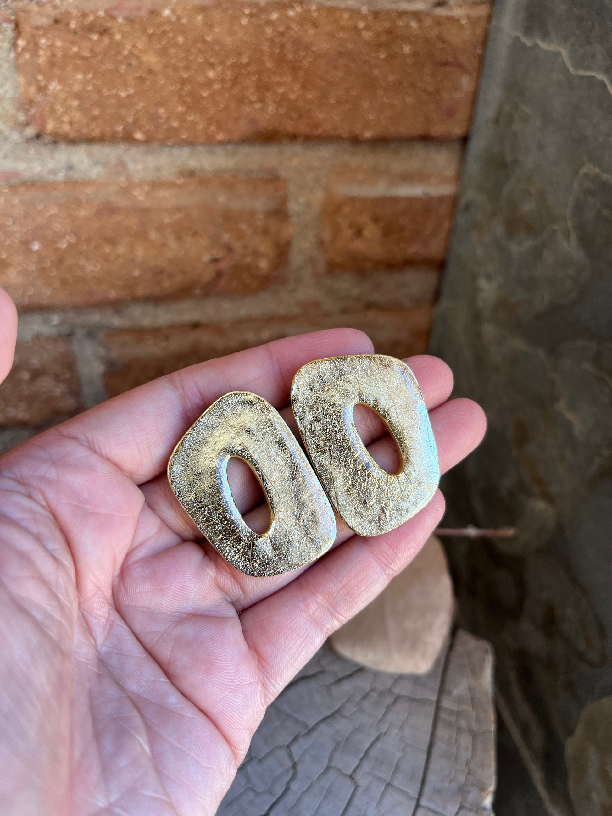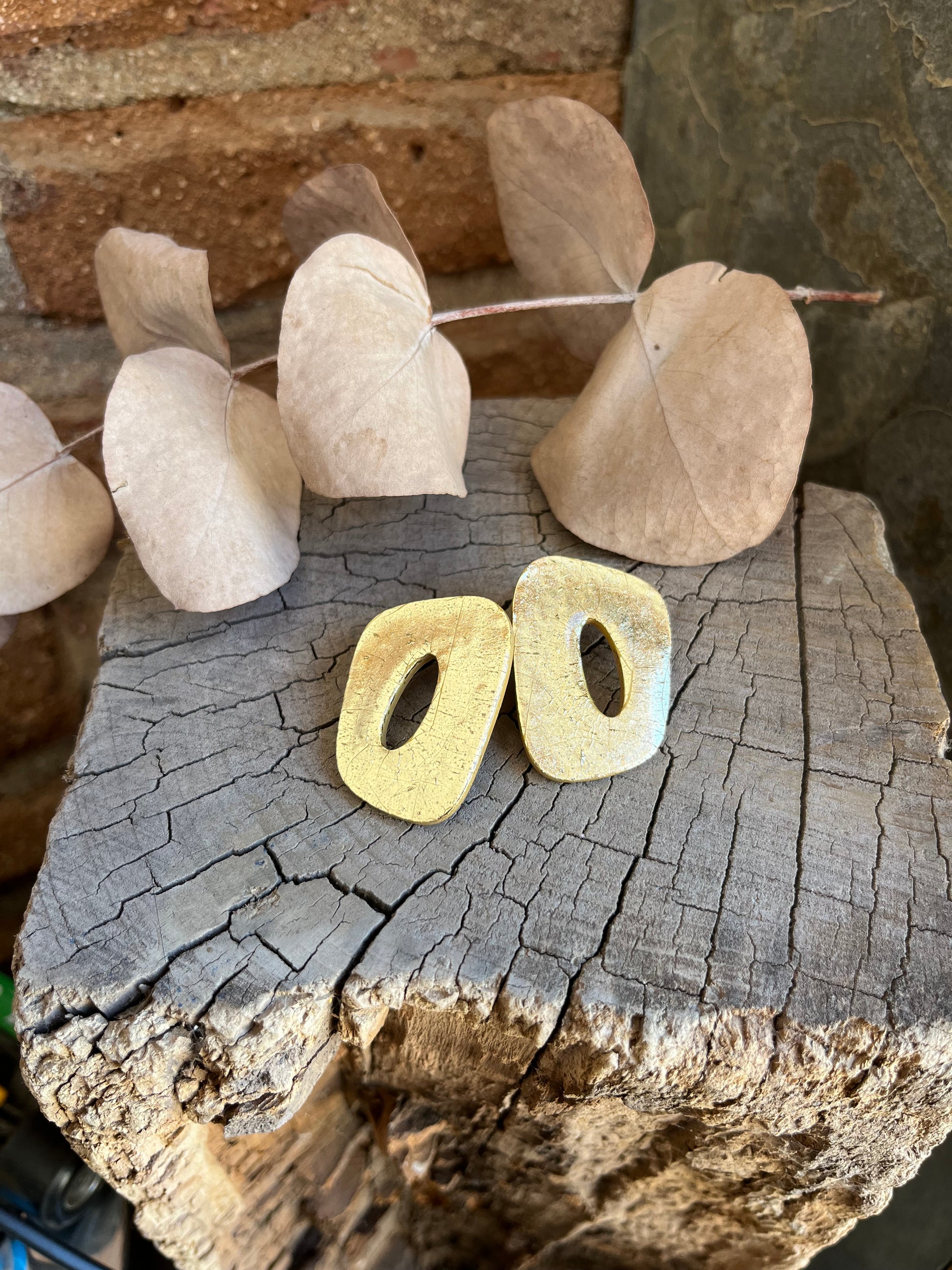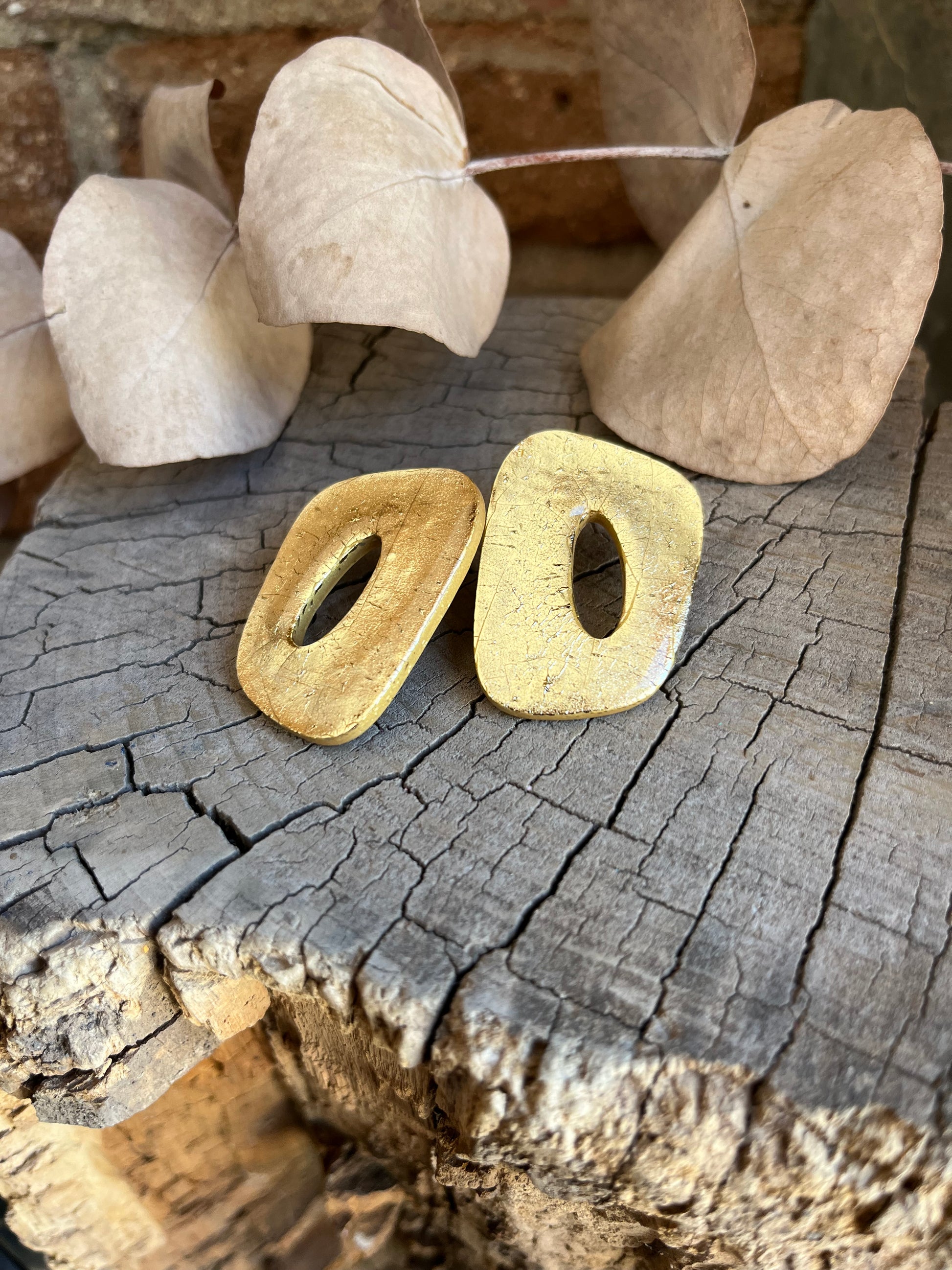 Aros de arcilla polimérica con top coat de resina uv. Miden 4 cms. Palito de acero quirúrgico y tope de goma.