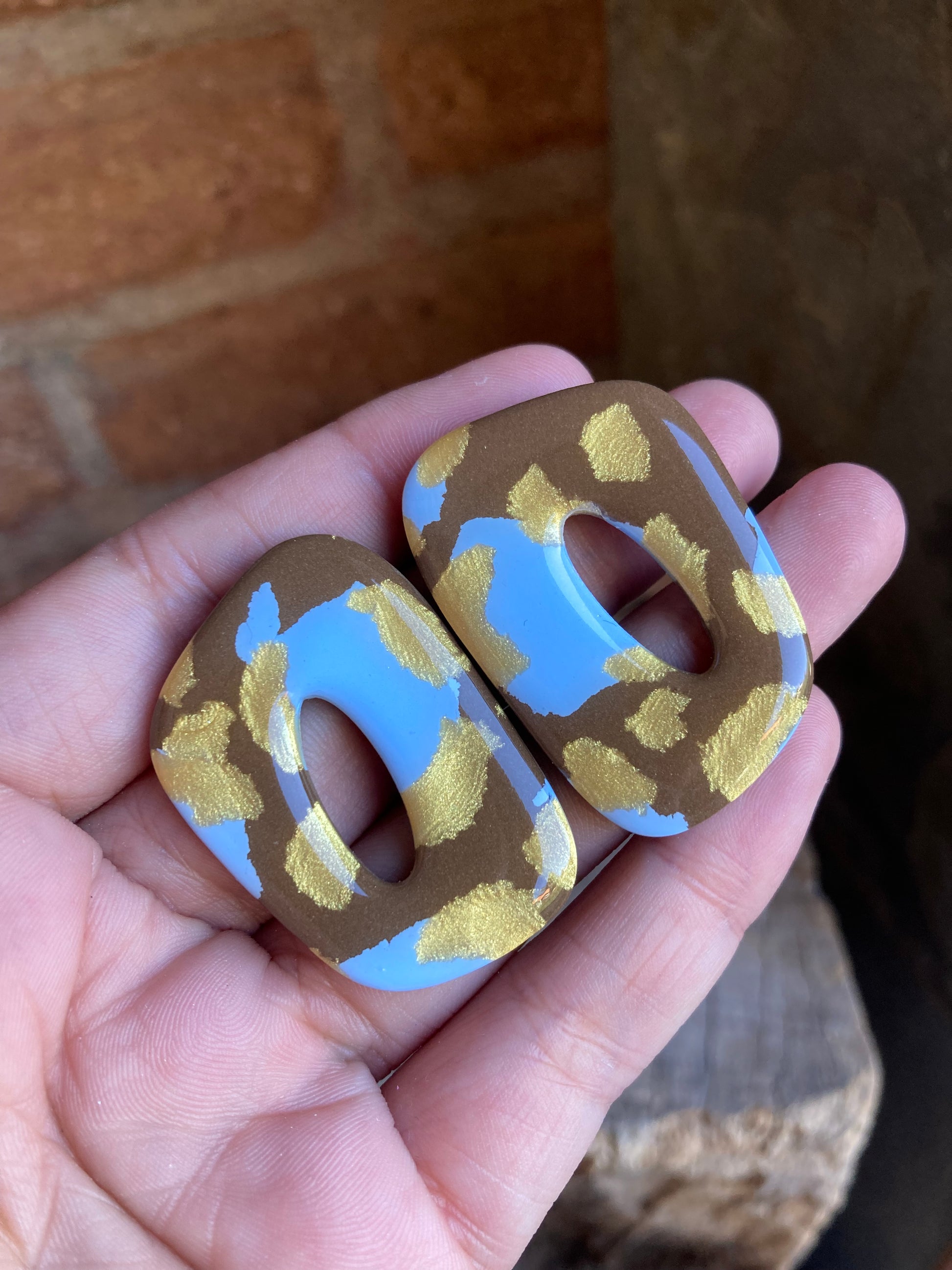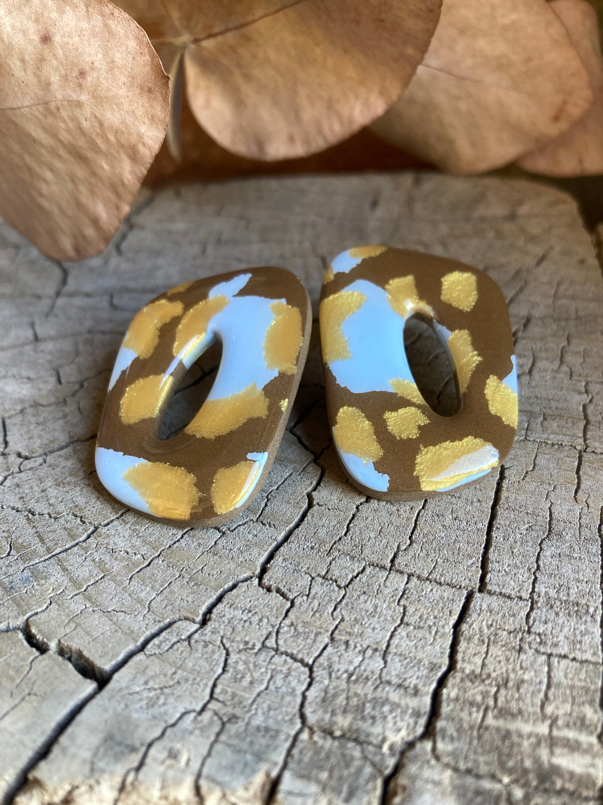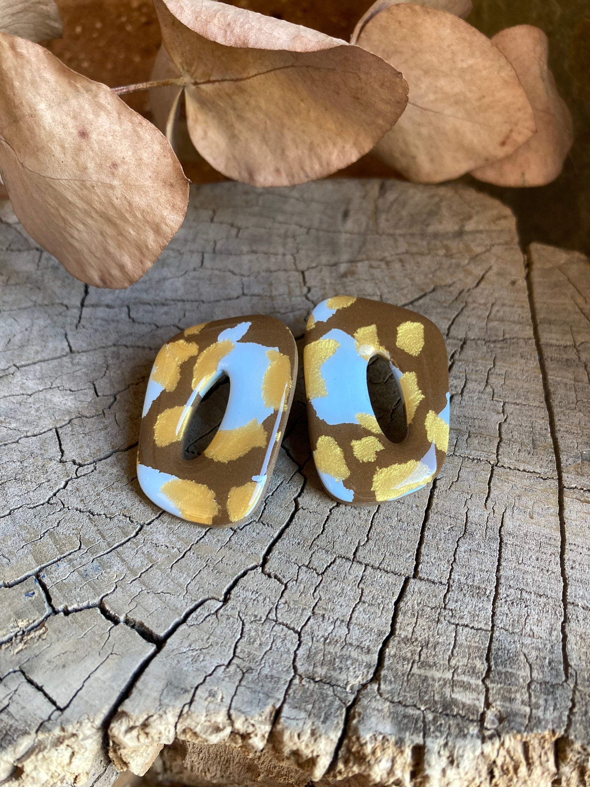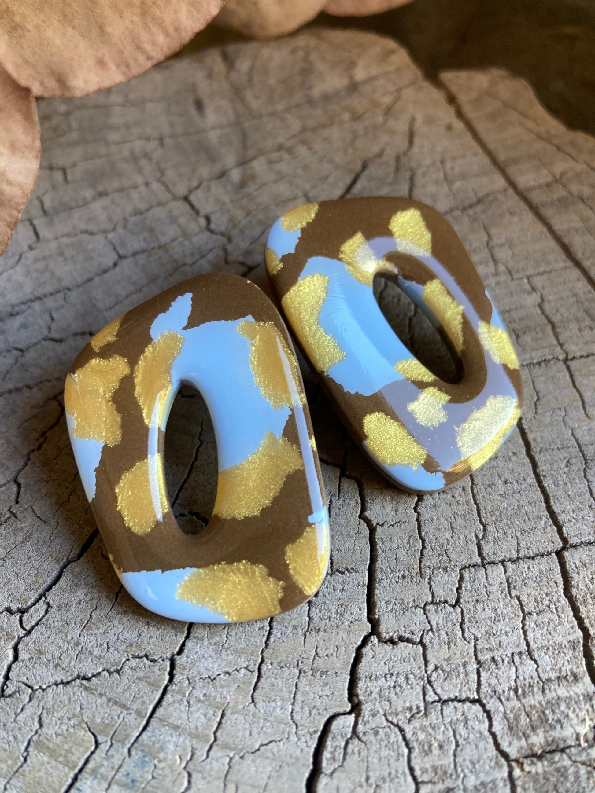 Aros de arcilla polimérica con top coat de resina uv. Miden 4 cms. Palito de acero quirúrgico y tope de goma.