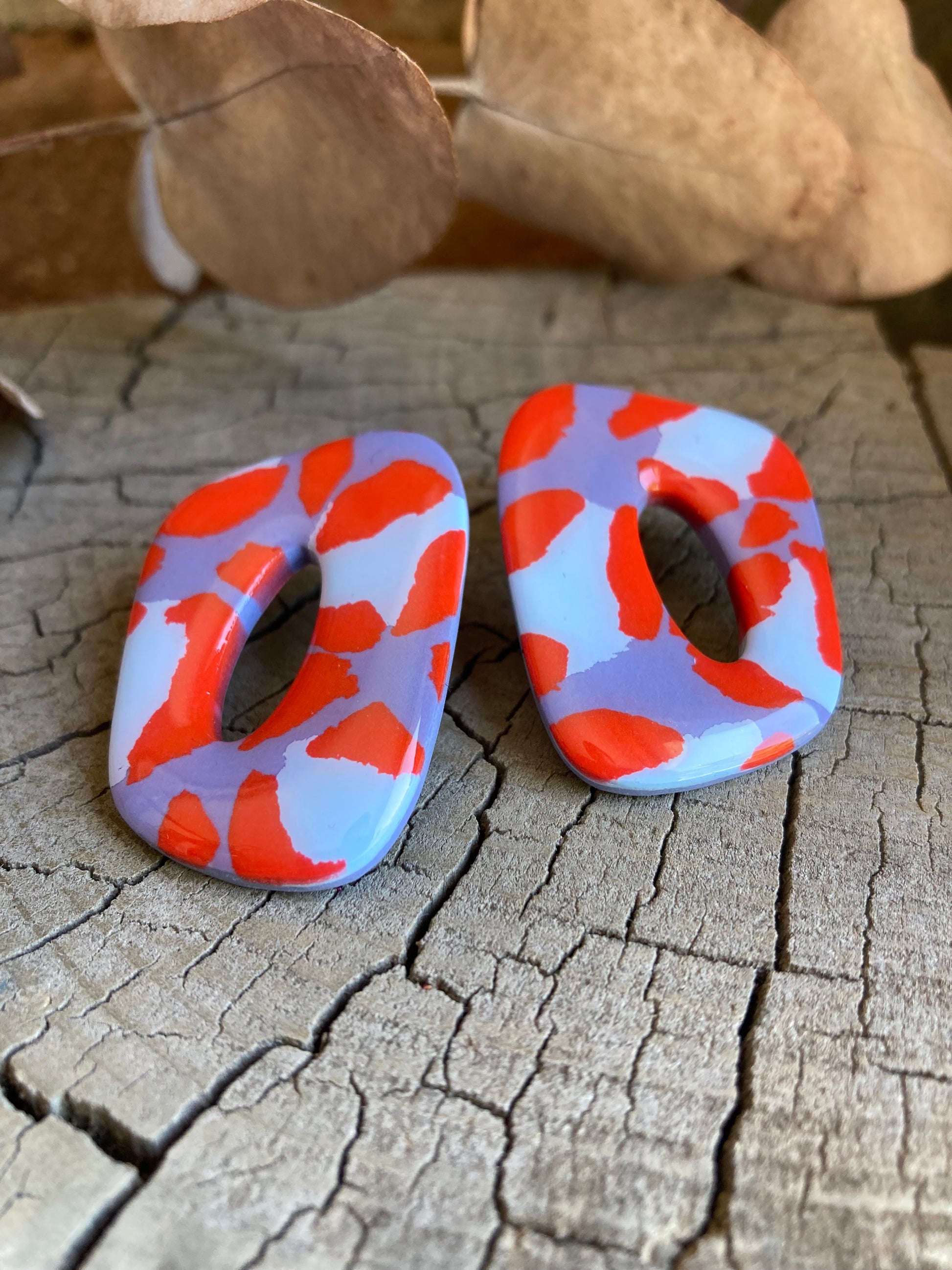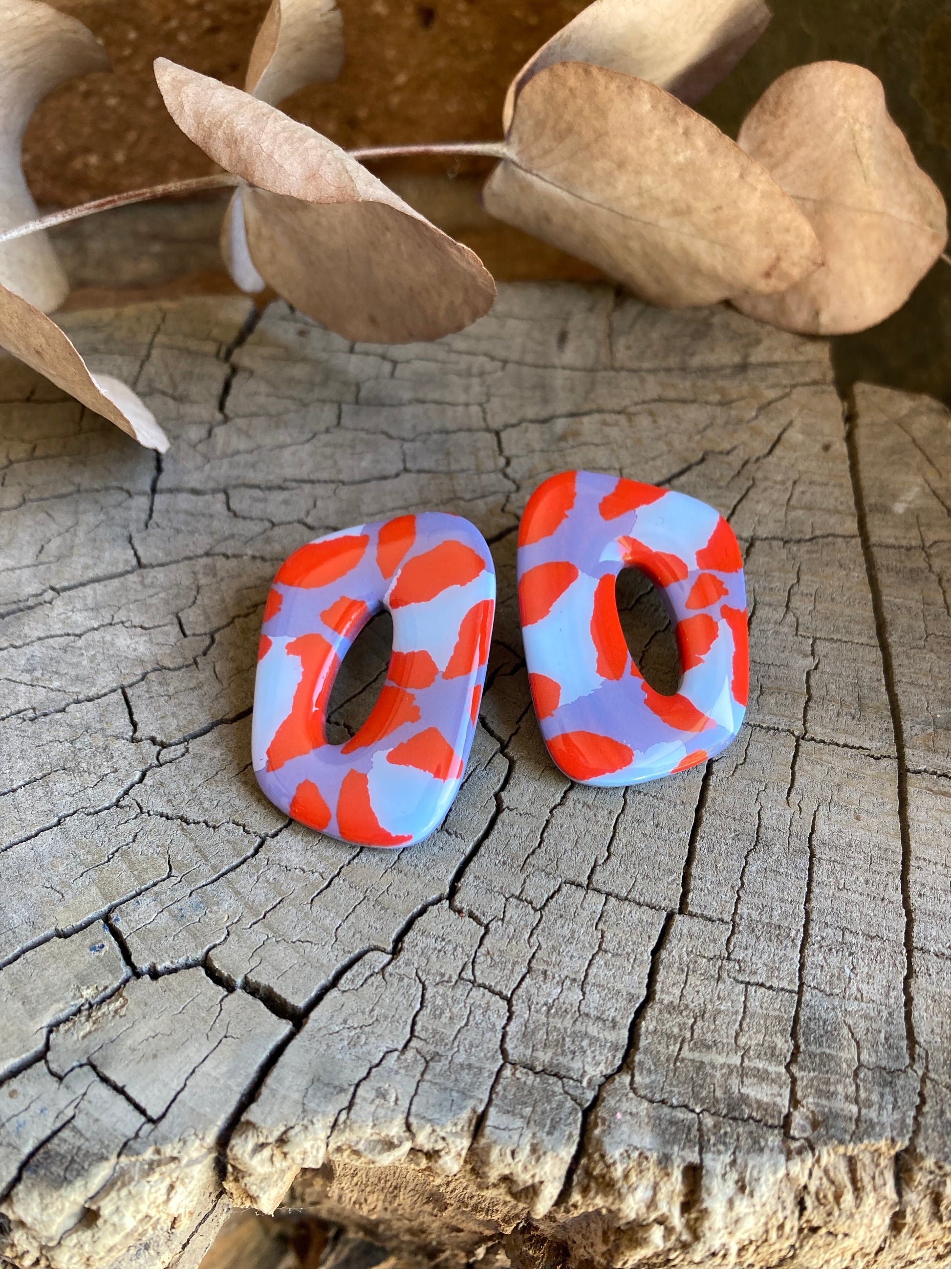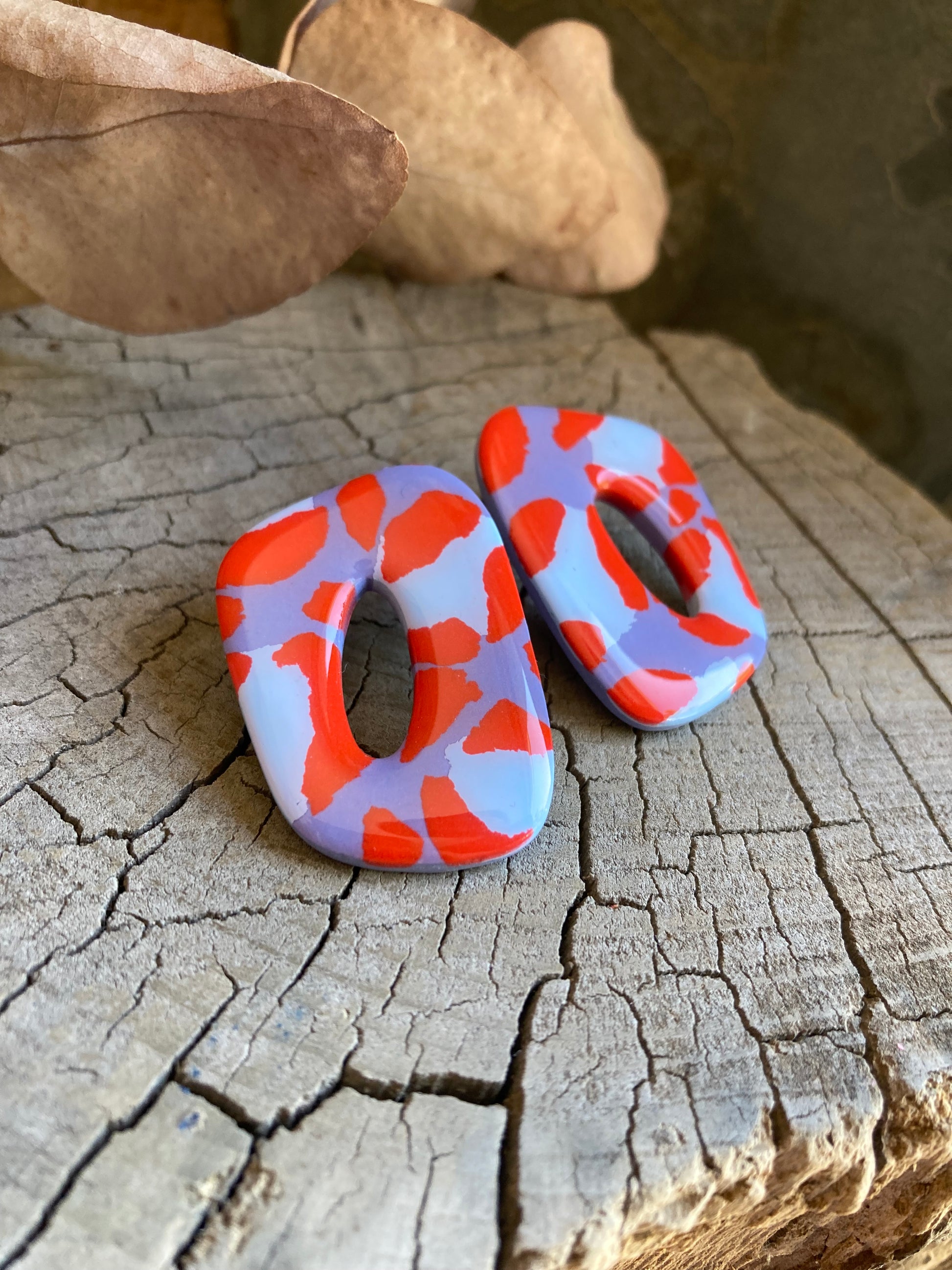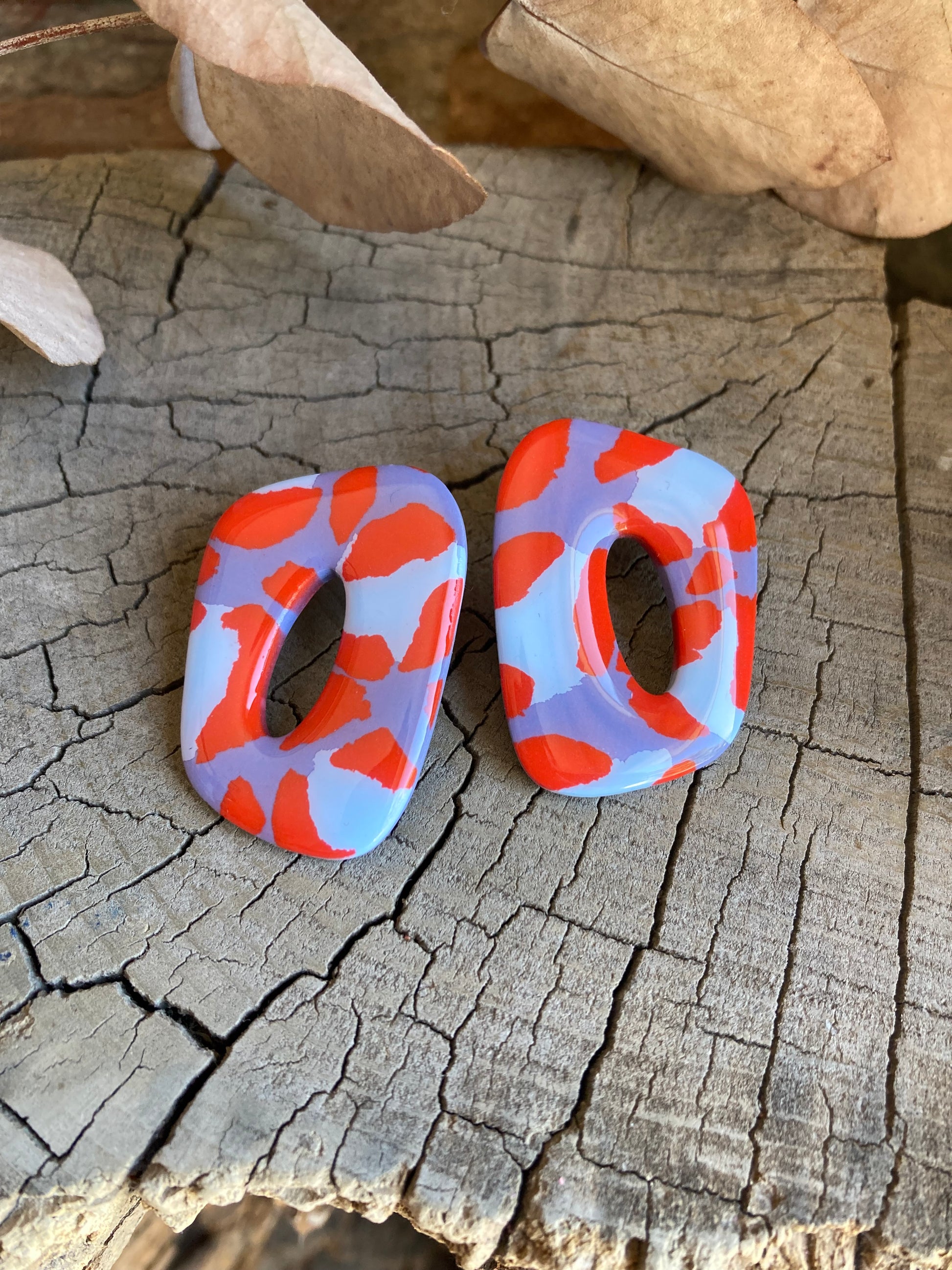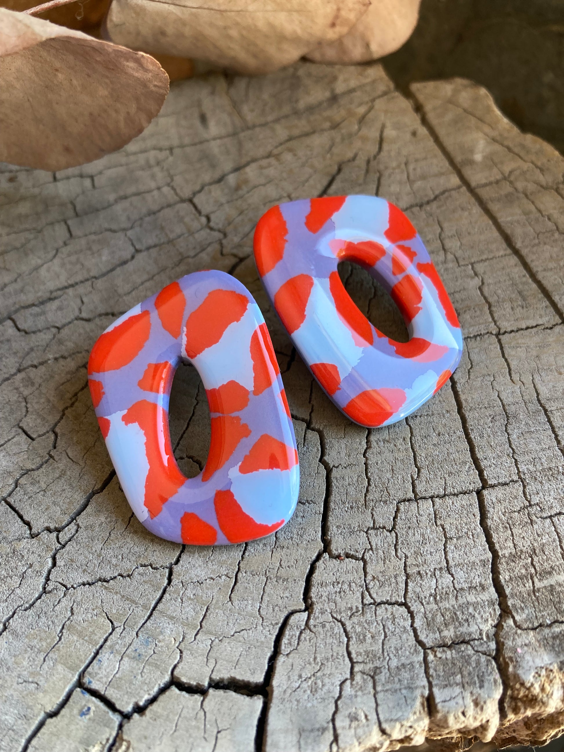 Aros de arcilla polimérica con top coat de resina uv. Miden 4 cms. Palito de acero quirúrgico y tope de goma.