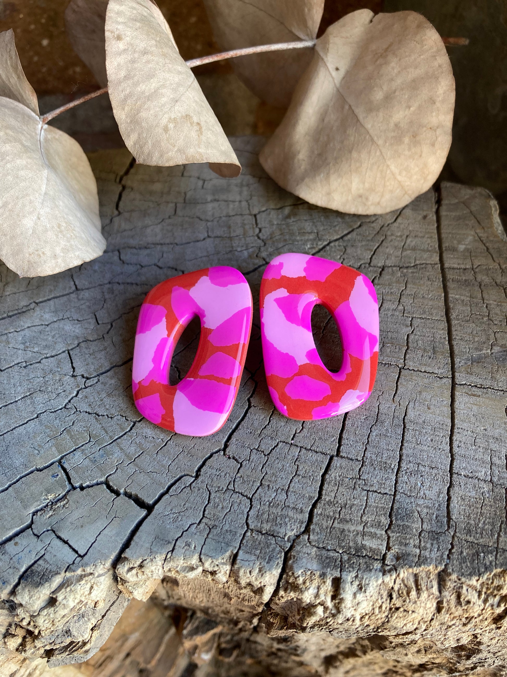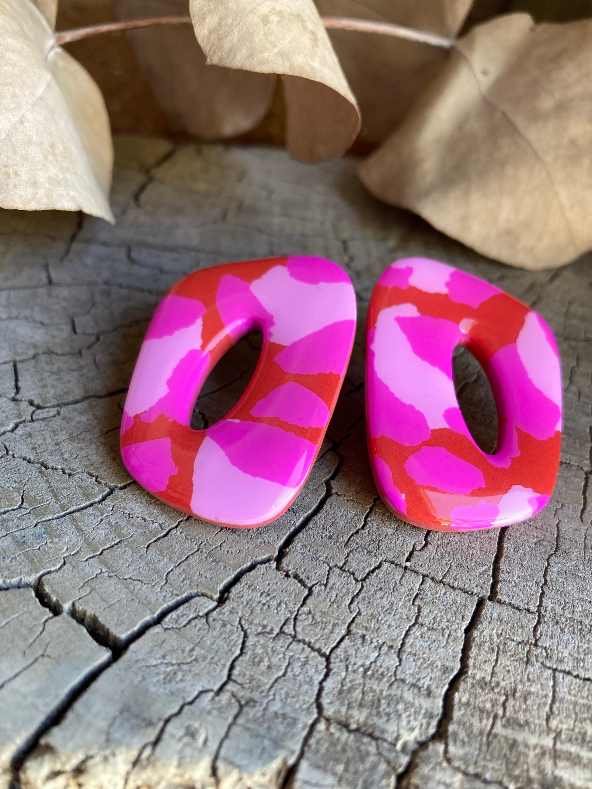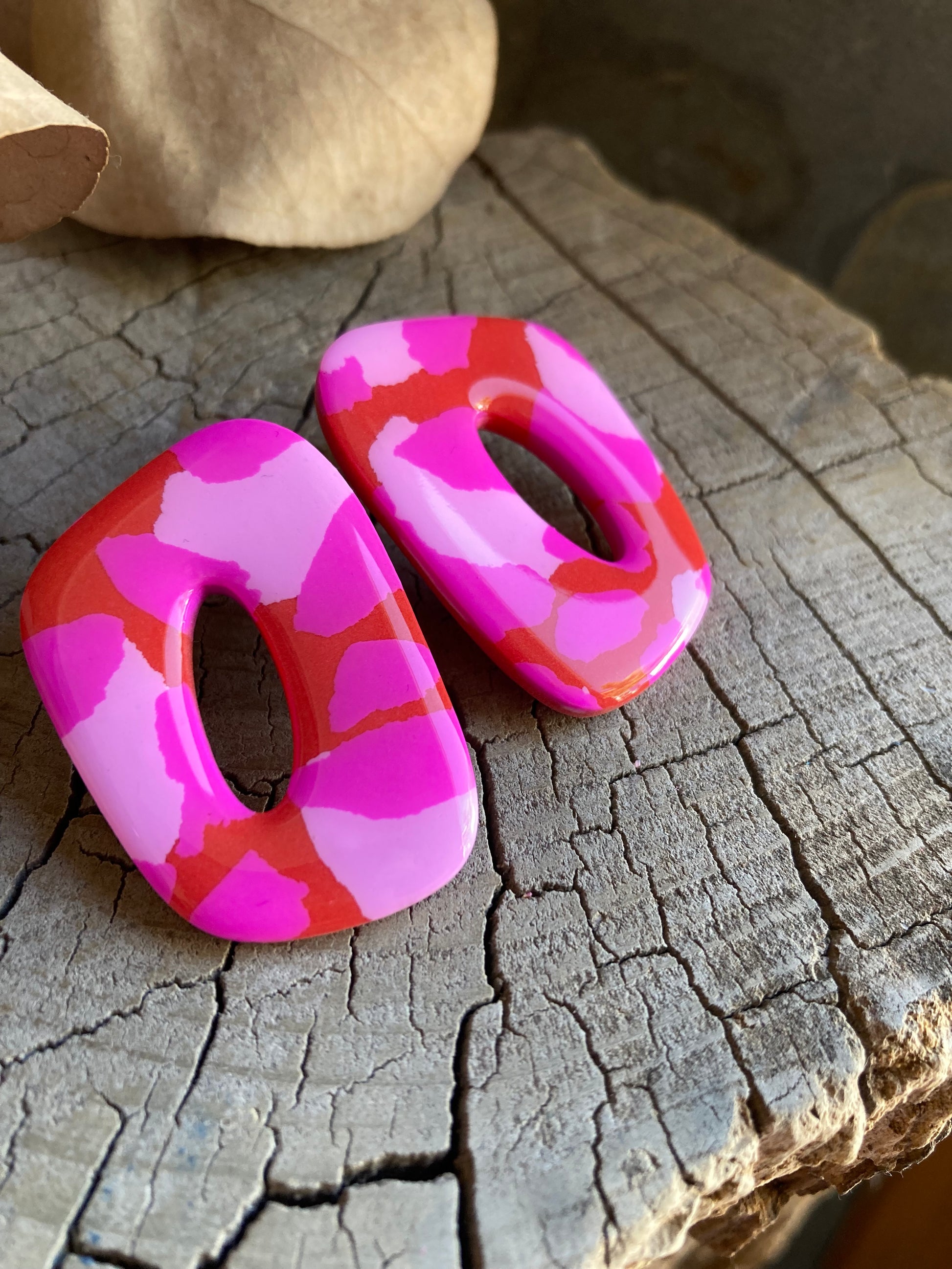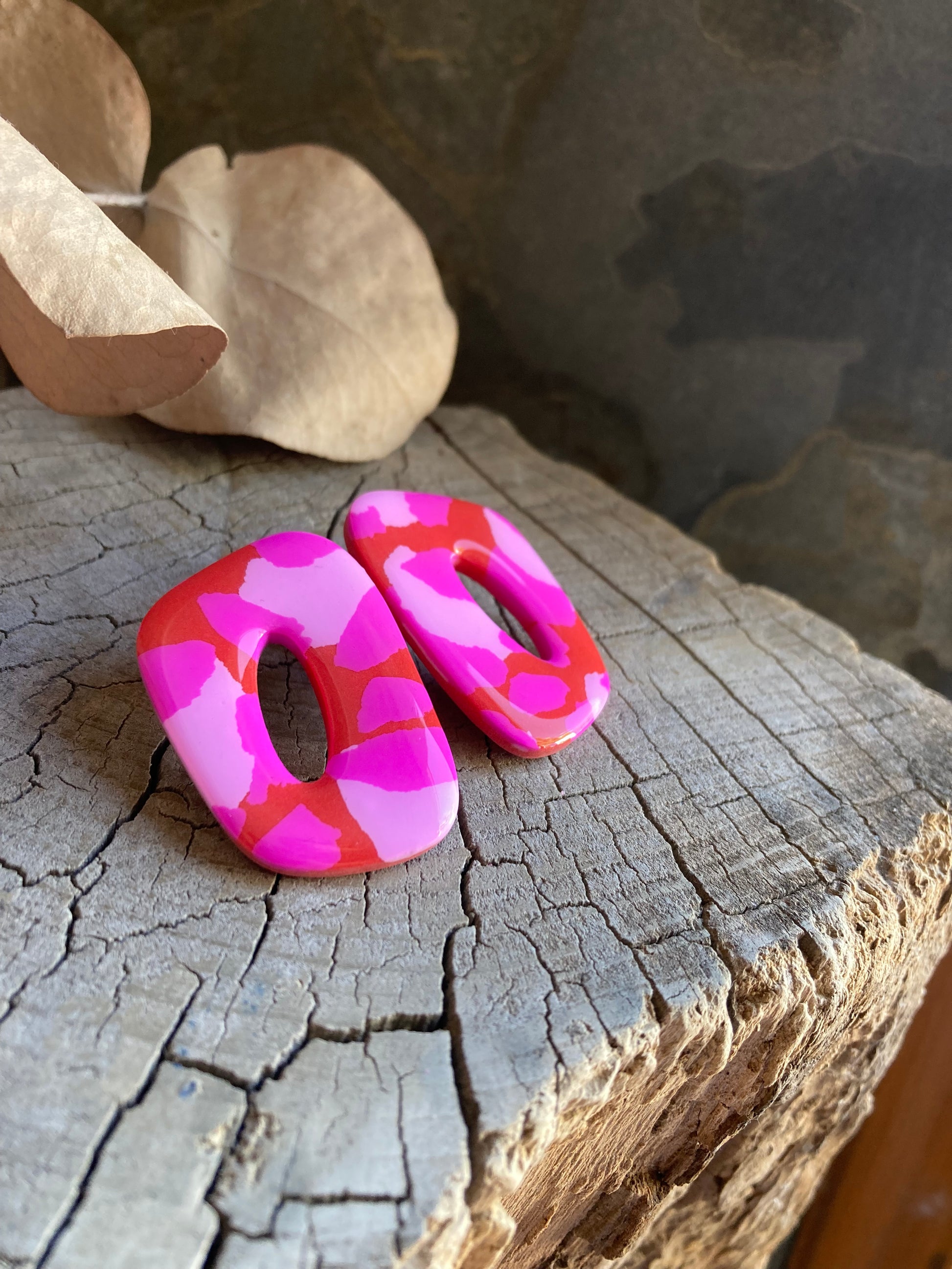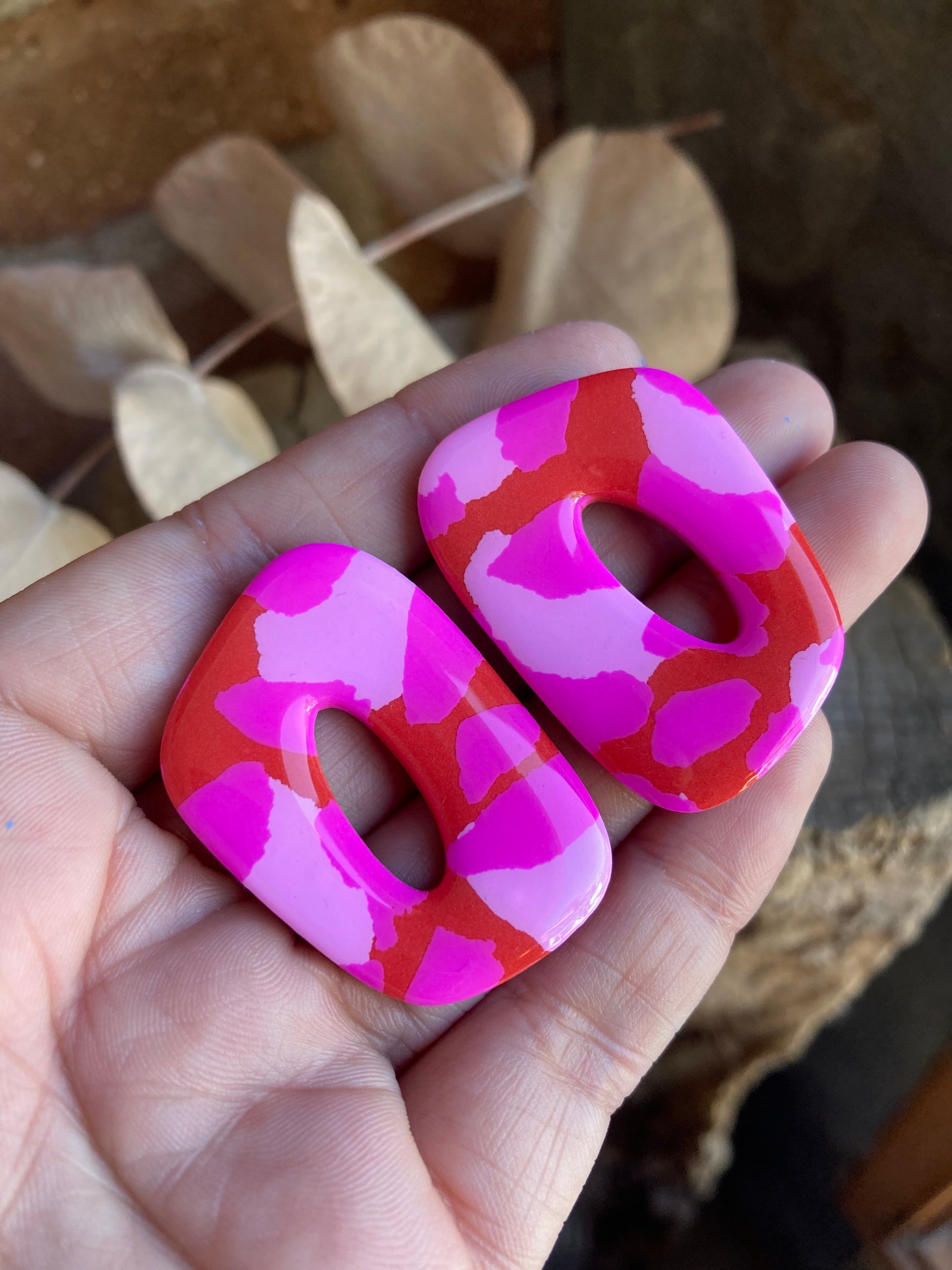 Aros de arcilla polimérica con top coat de resina uv. Miden 4 cms. Palito de acero quirúrgico y tope de goma.