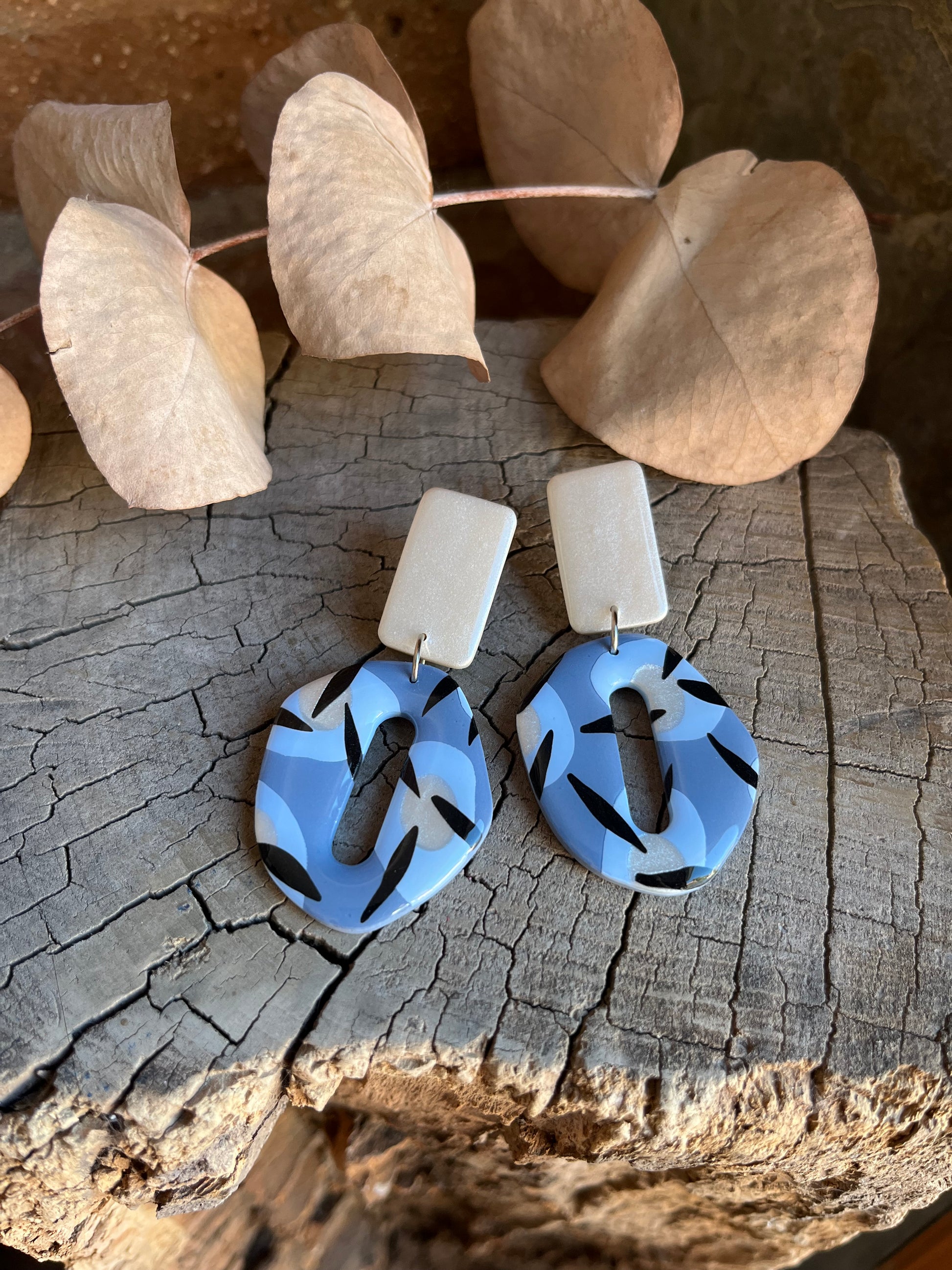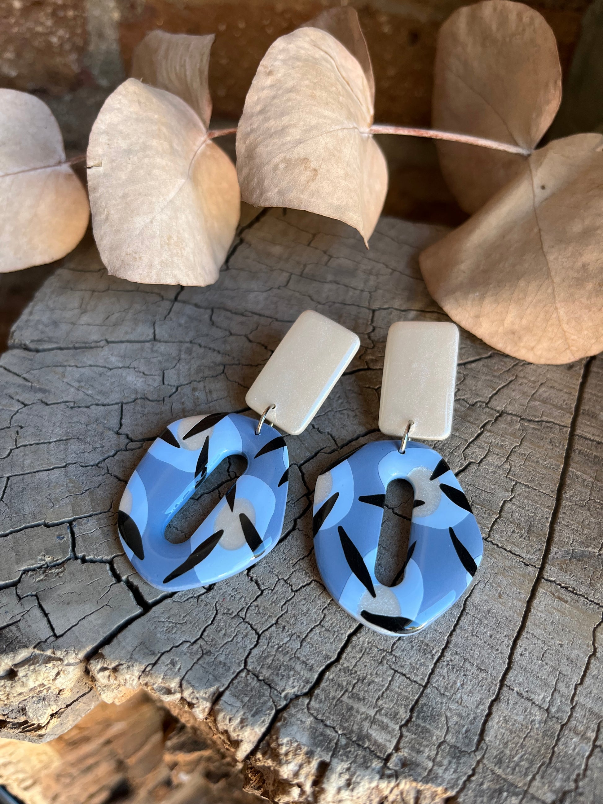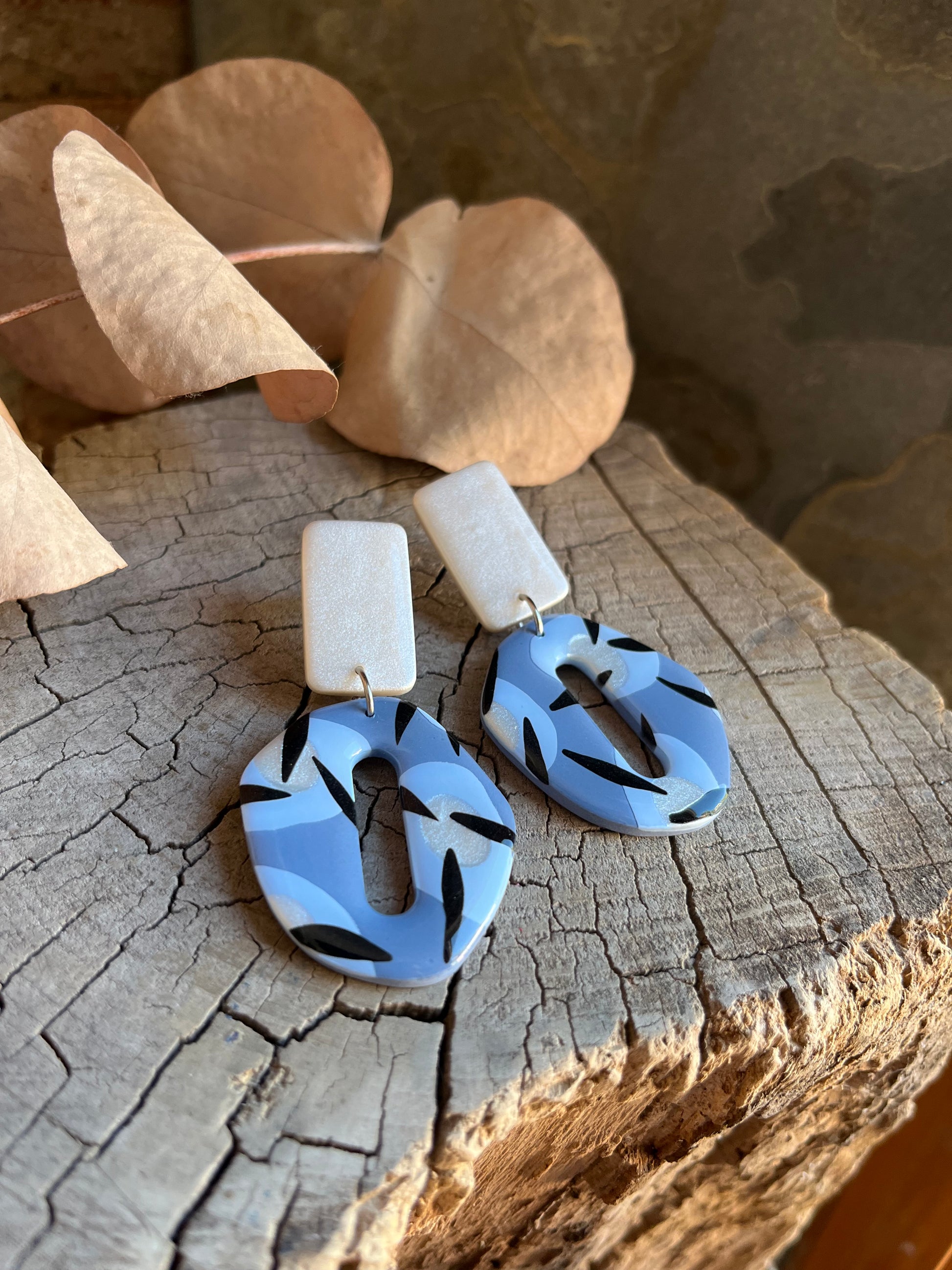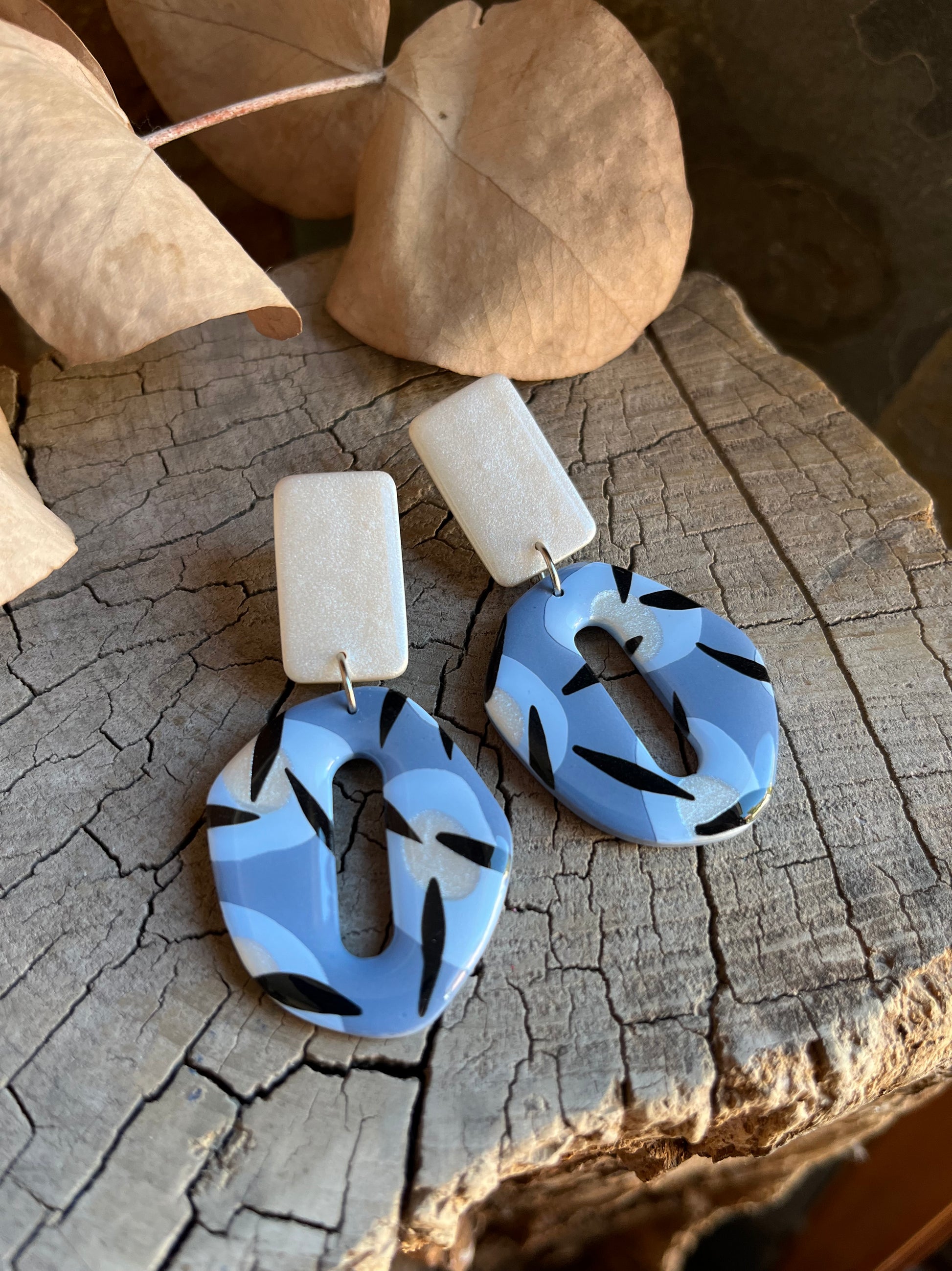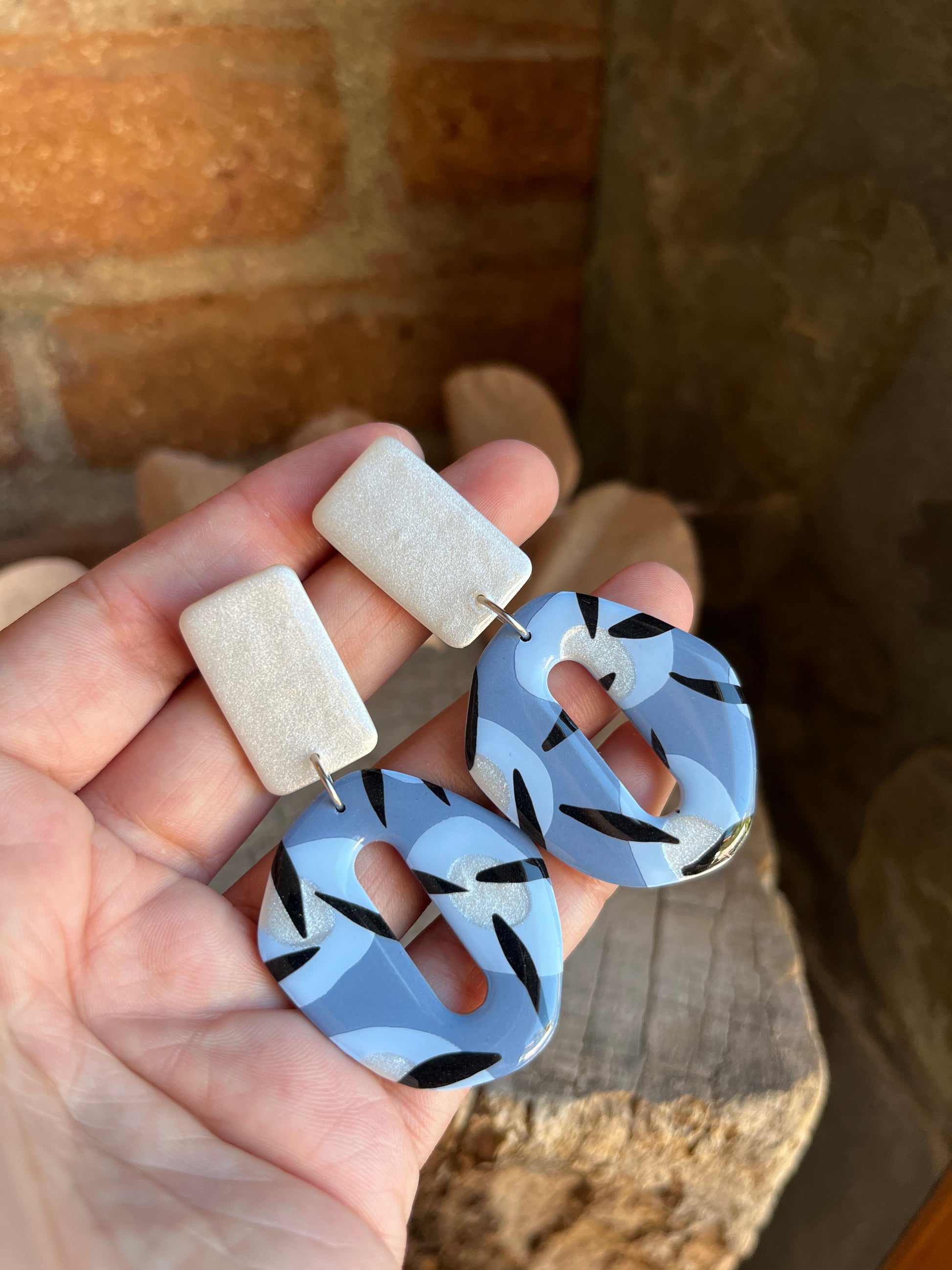 Aros de arcilla polimérica con top coat de resina uv. Miden 6,5 cms. Palito de acero quirúrgico y tope de goma.