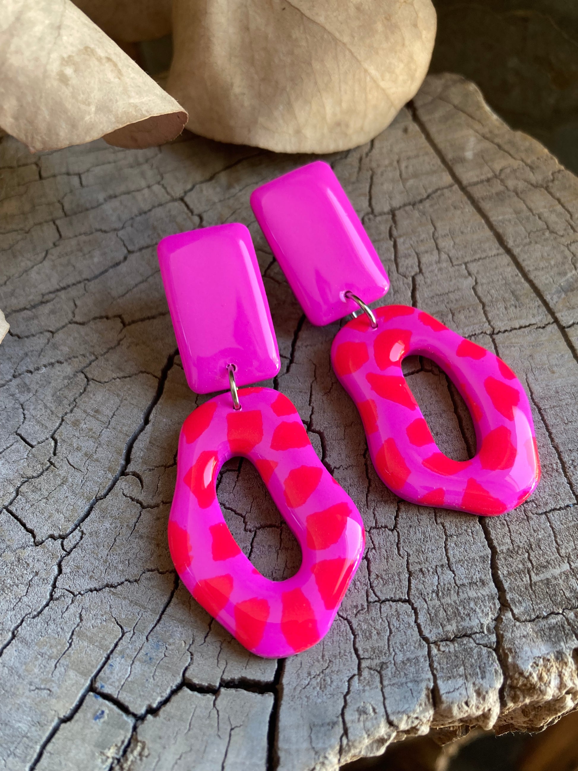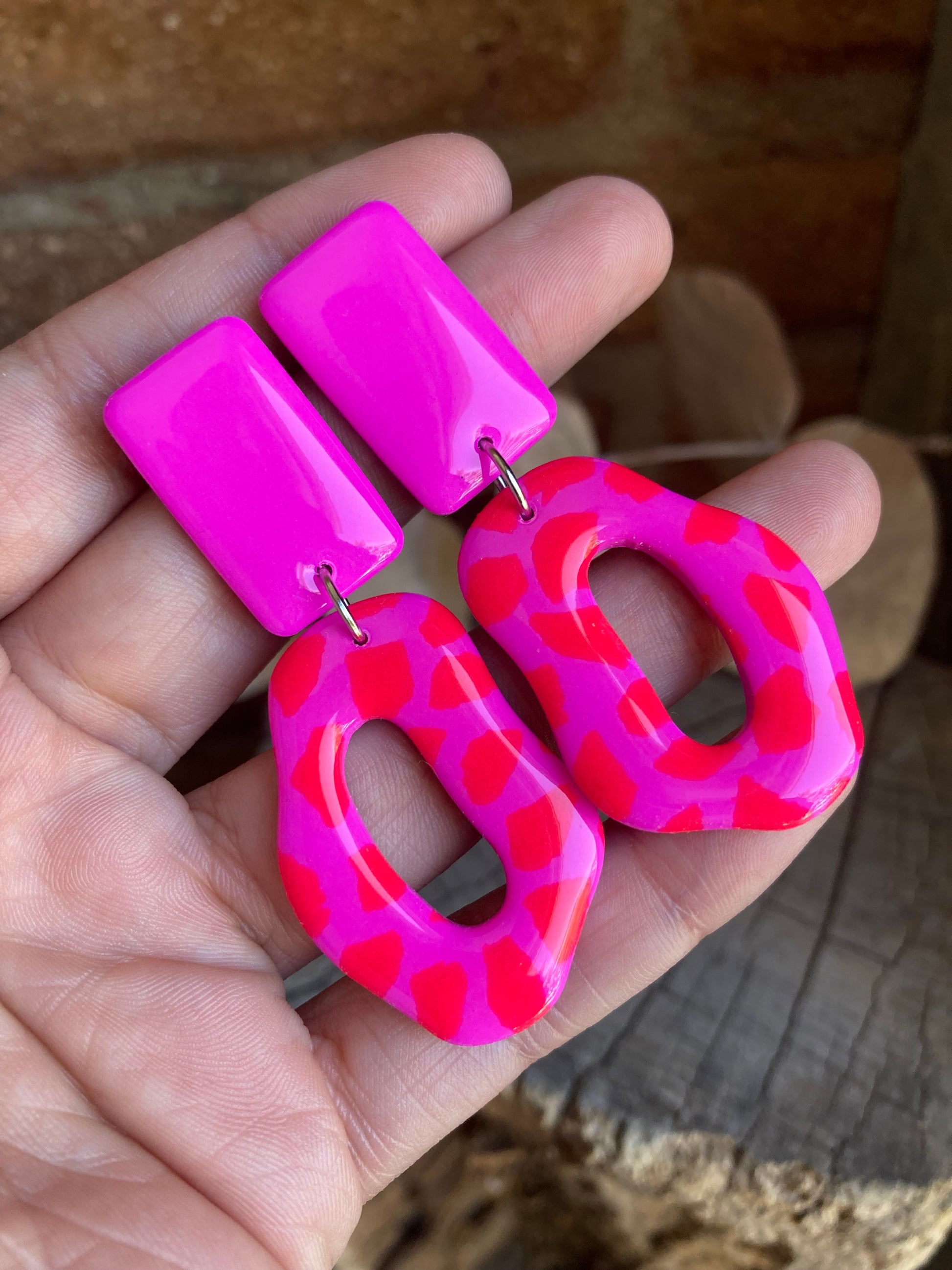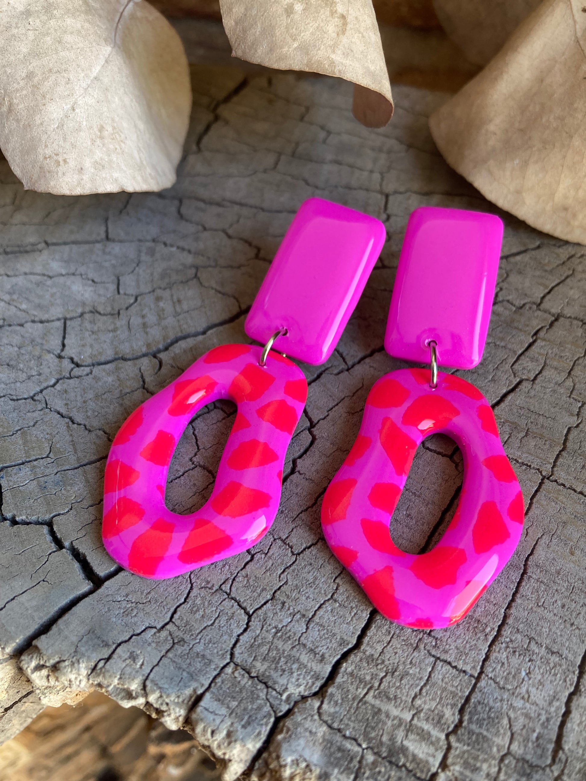 Aros de arcilla polimérica con top coat de resina uv. Miden 6,5 cms. Palito de acero quirúrgico y tope de goma.