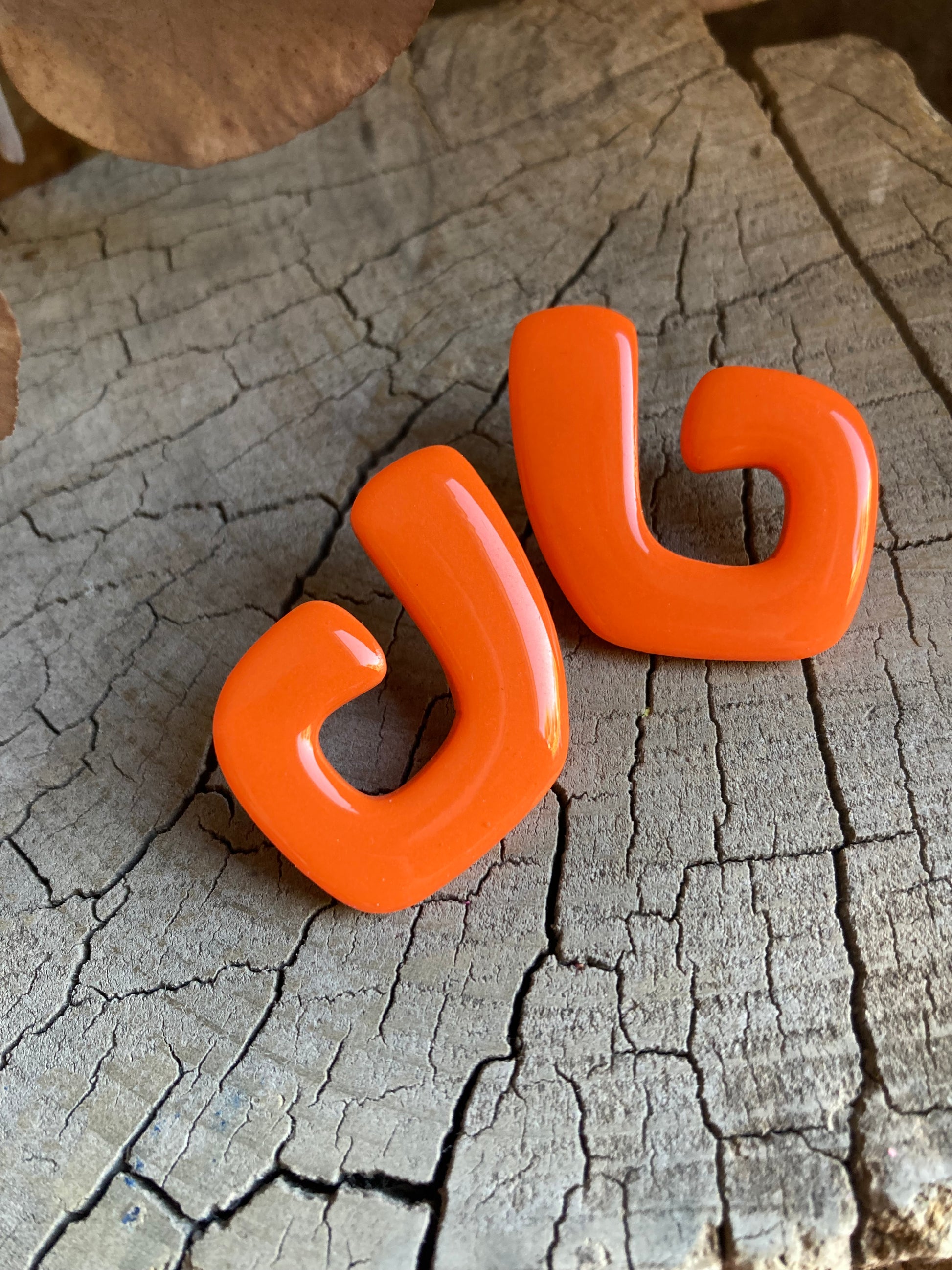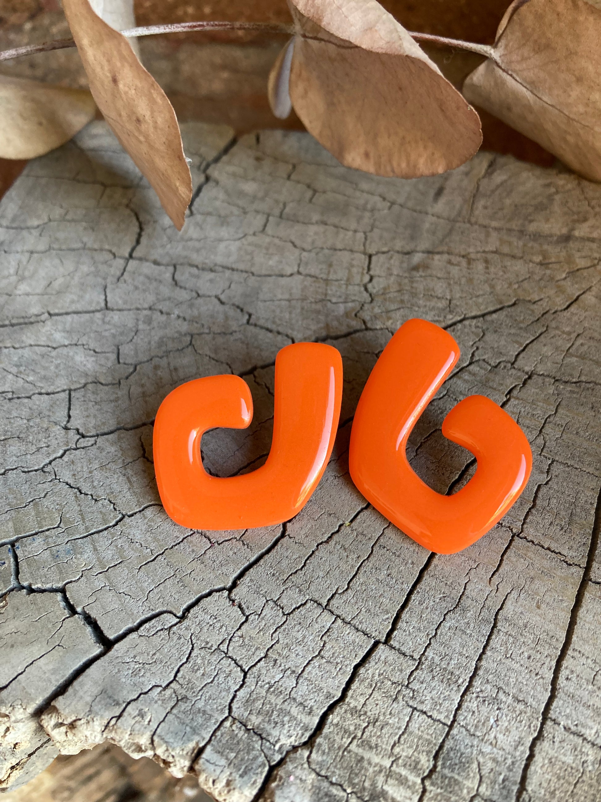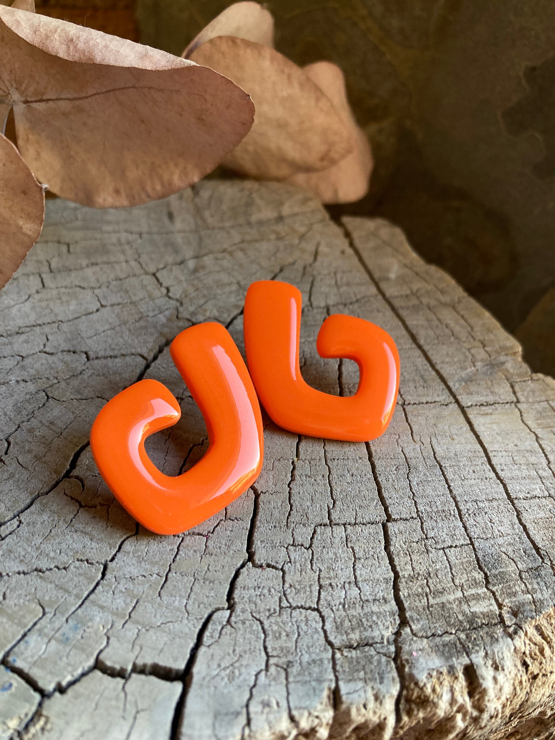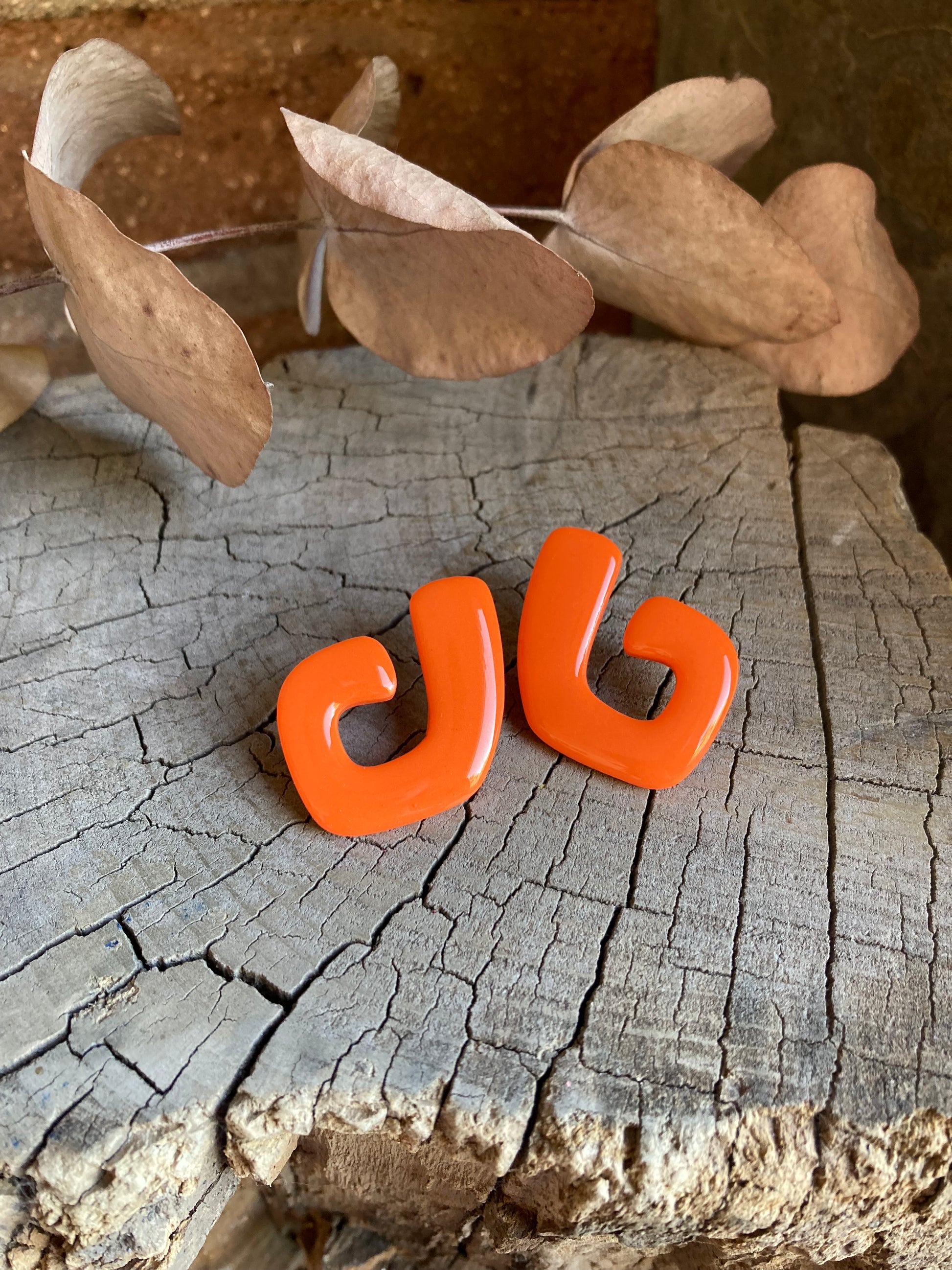 Aros de arcilla polimérica con top coat de resina uv. Miden 3,8 cms. Palito de acero quirúrgico y tope de goma.