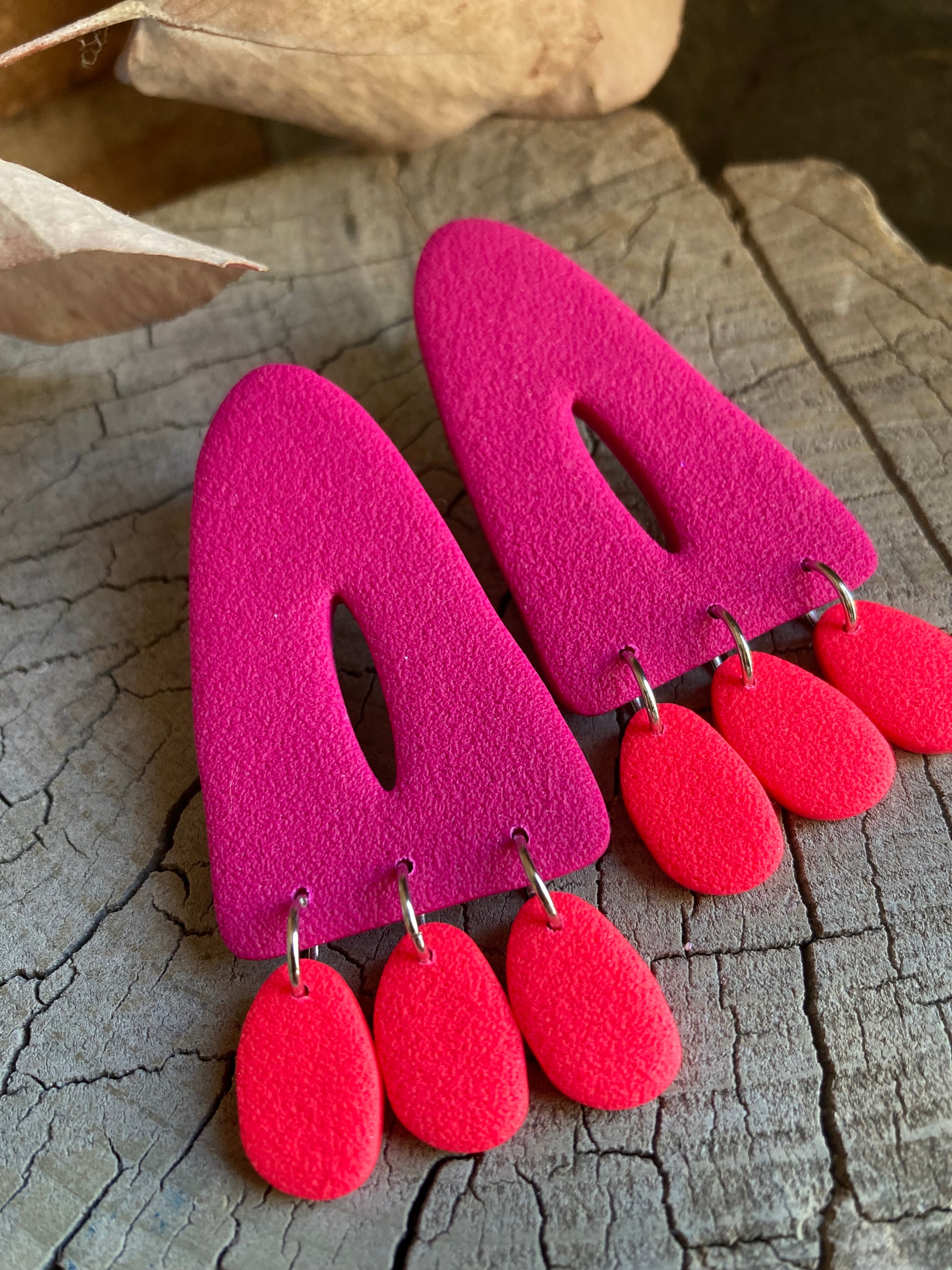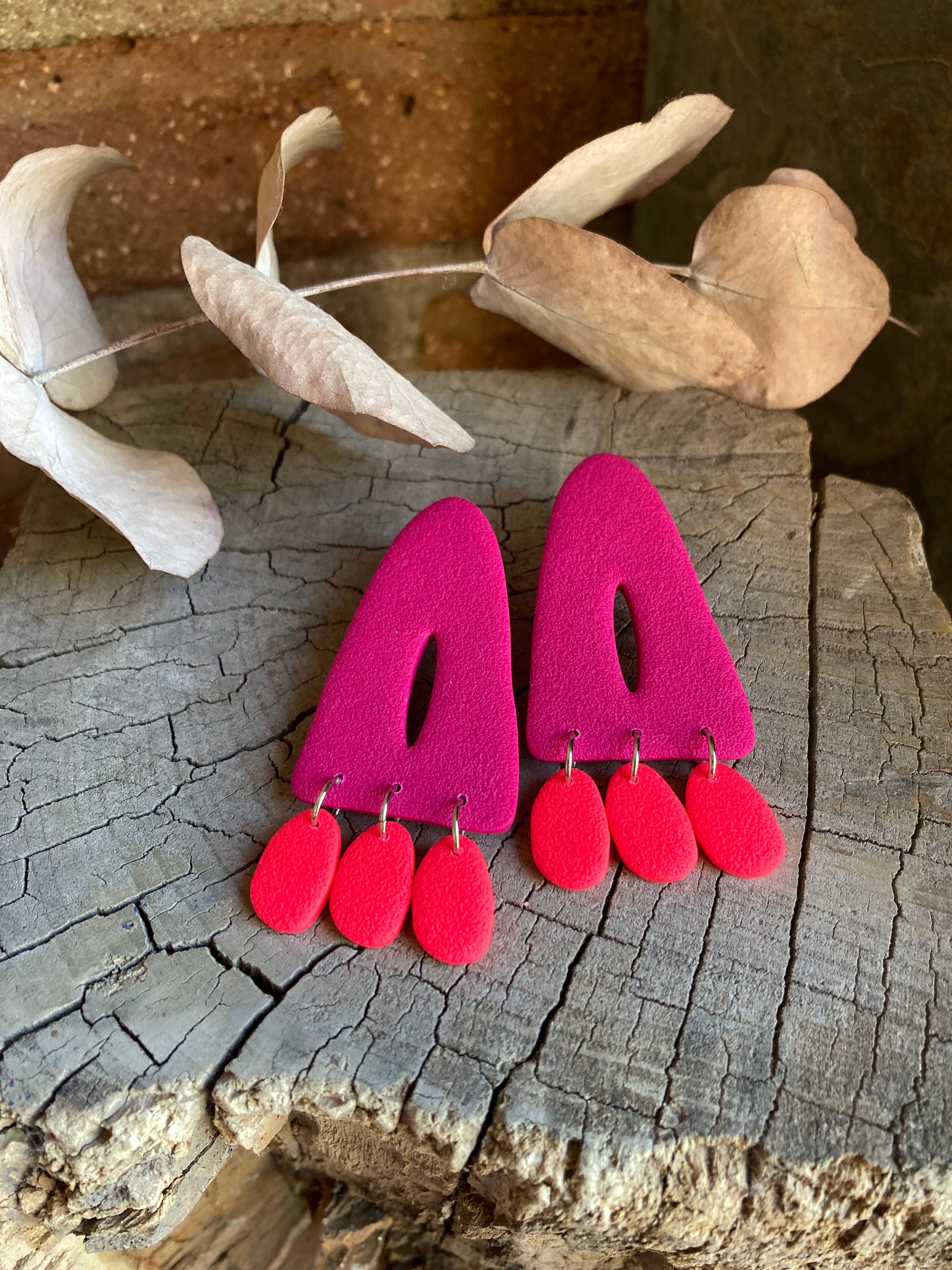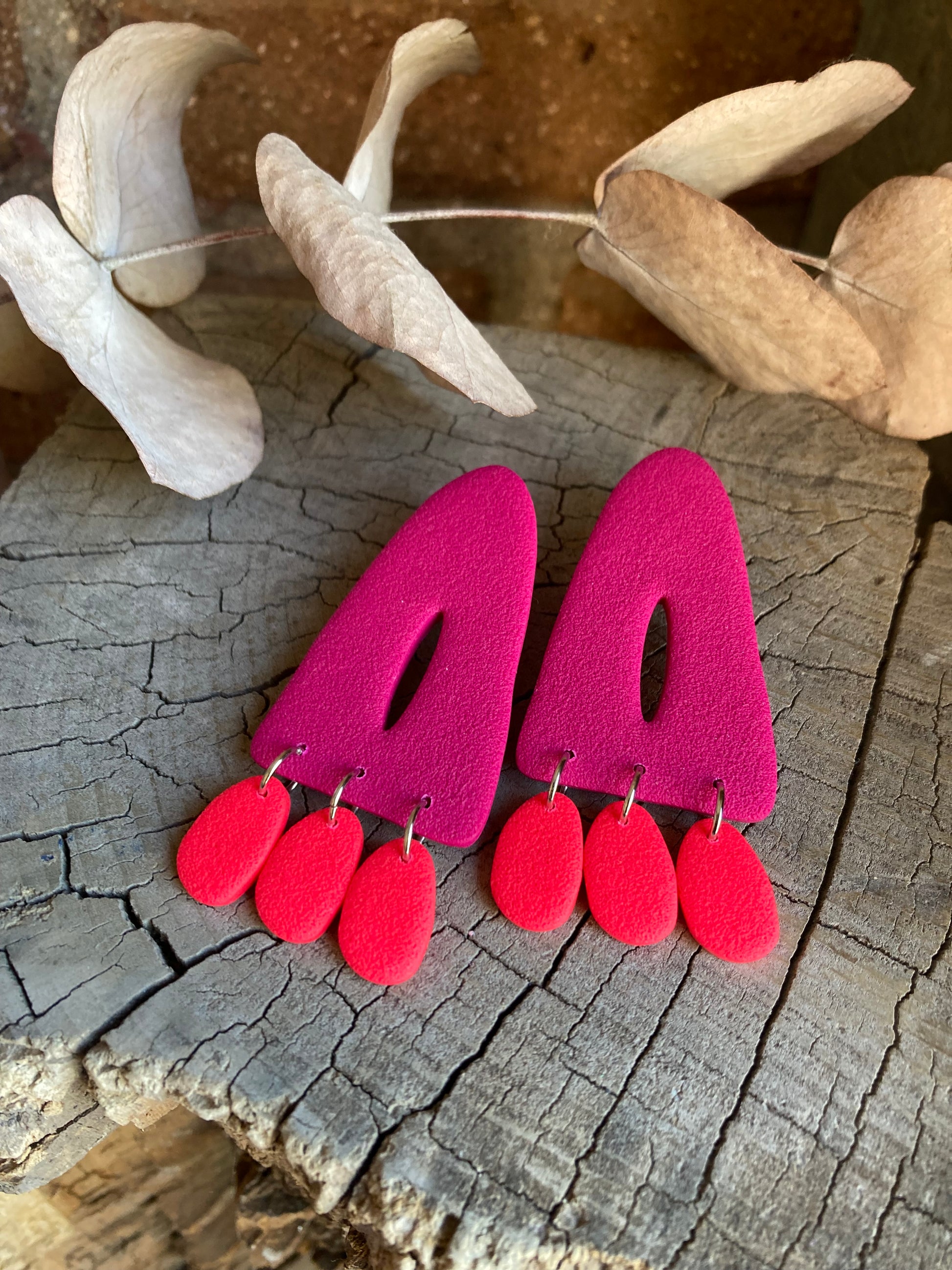 Aros de arcilla polimérica con textura. Miden 7 cms. Palito de acero quirúrgico y tope de goma.