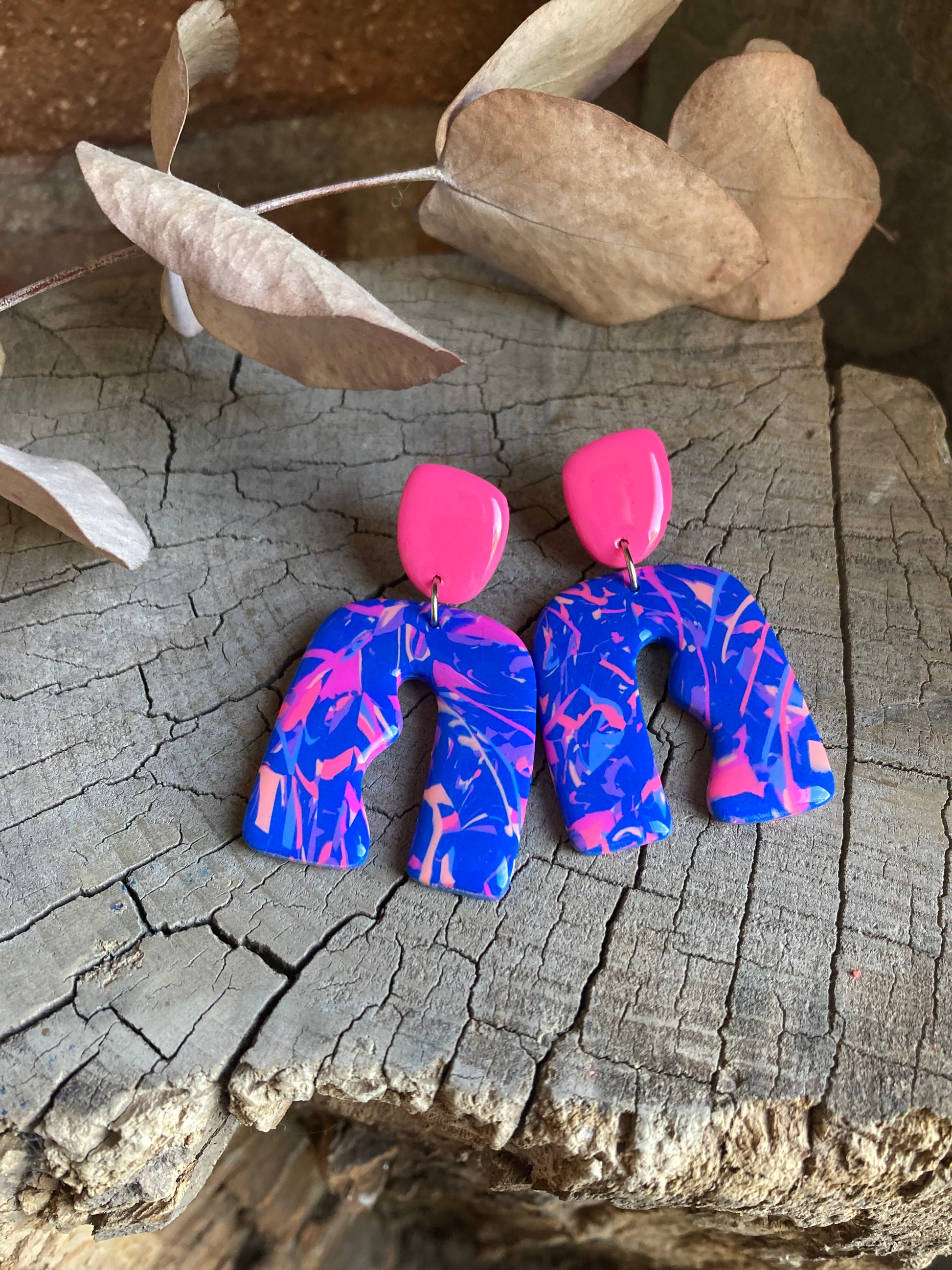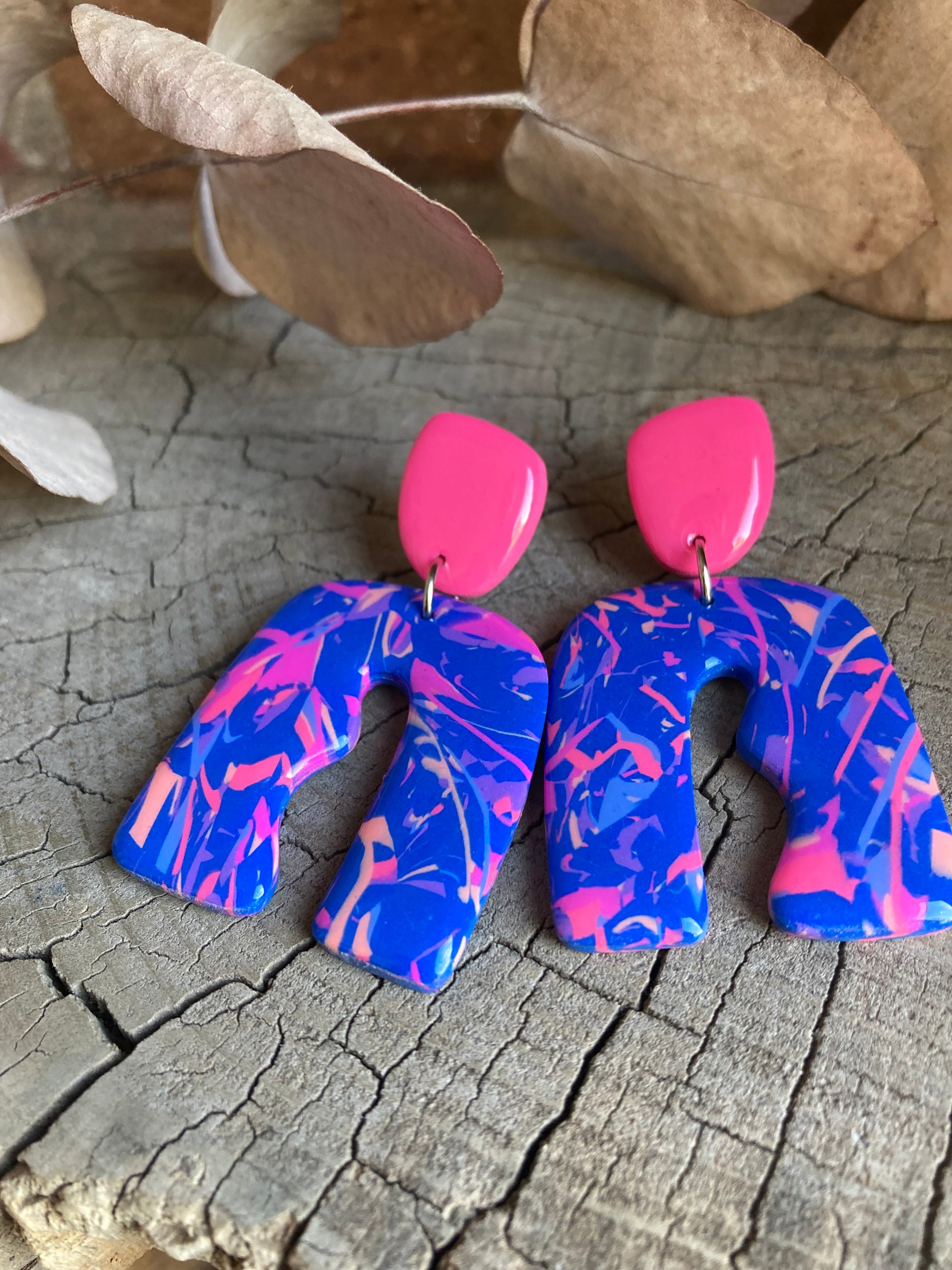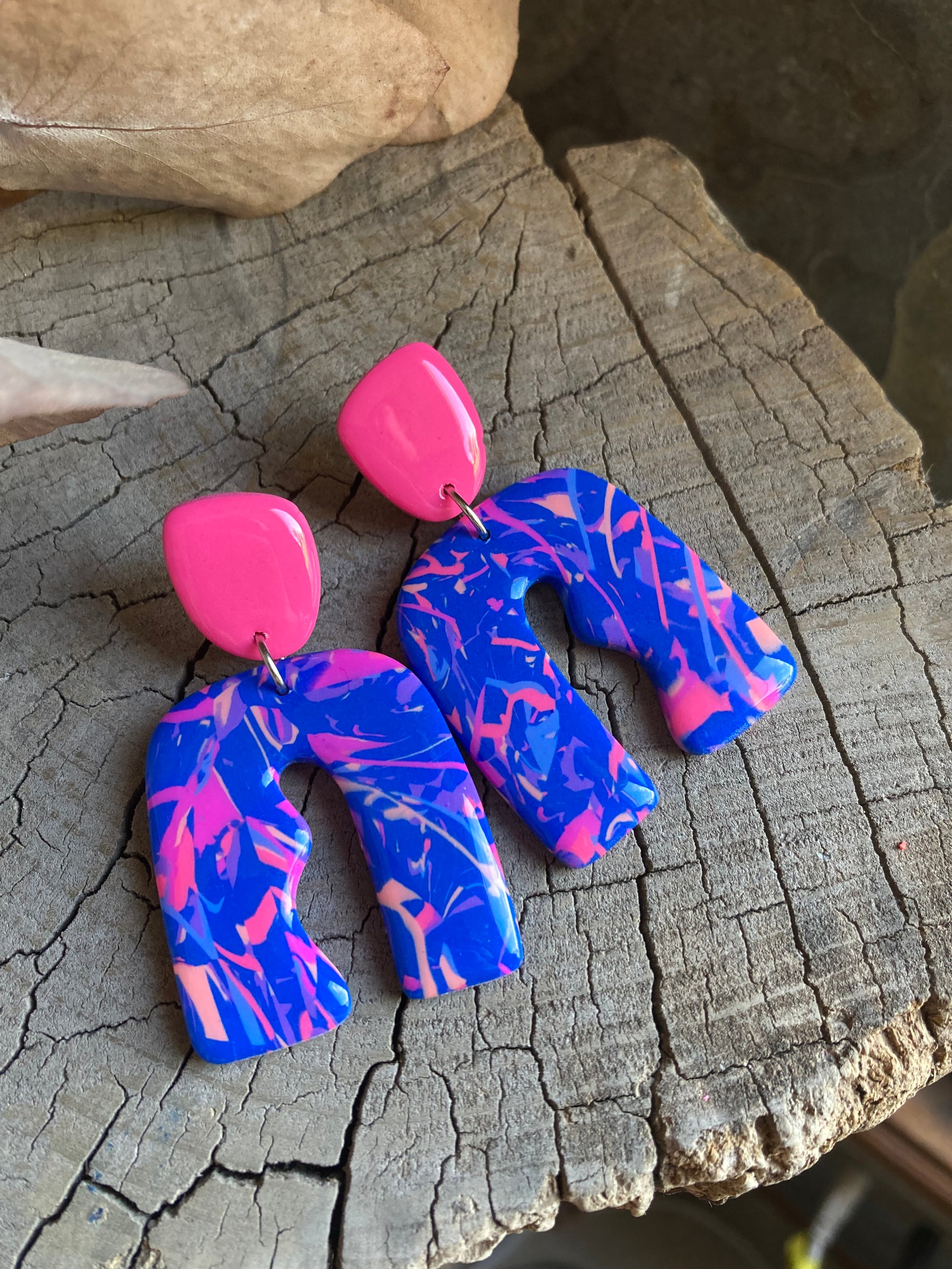 Aros de arcilla polimérica. Miden 5,5 cms. Palito de acero quirúrgico y tope de goma.