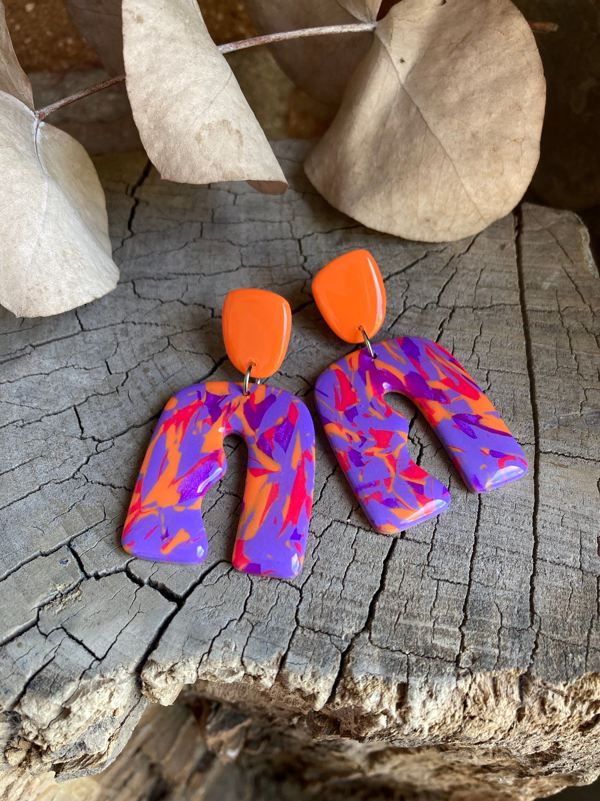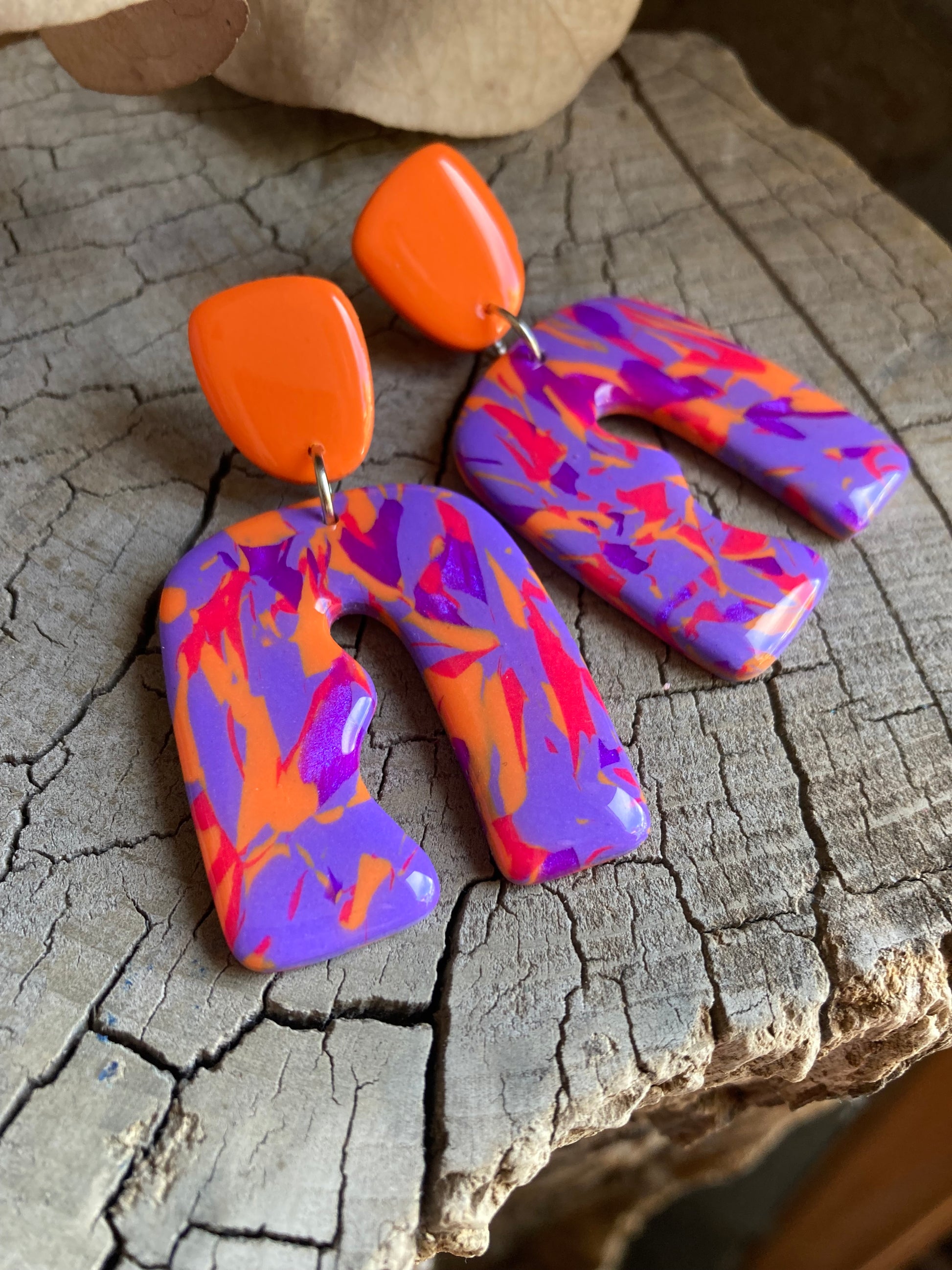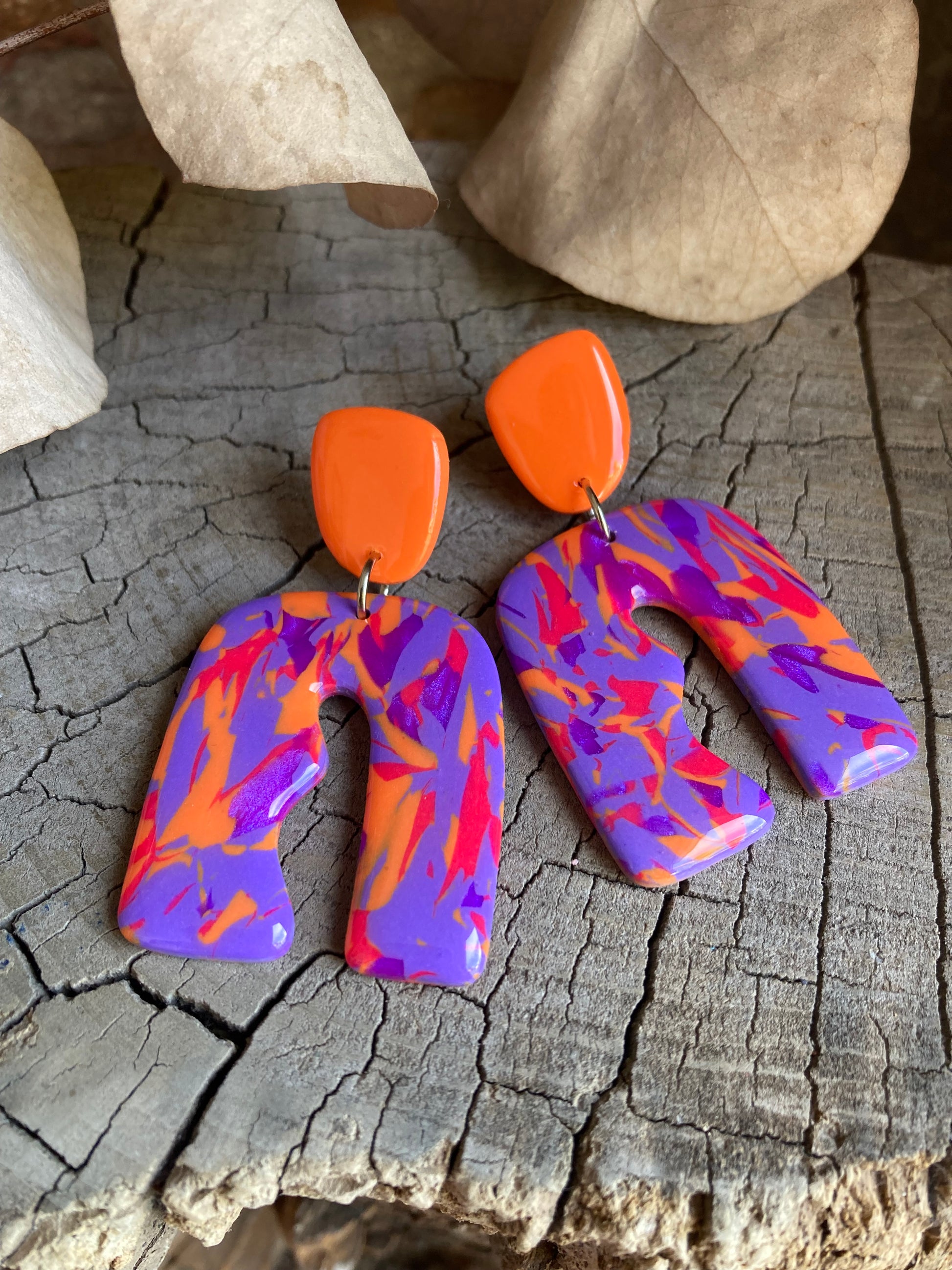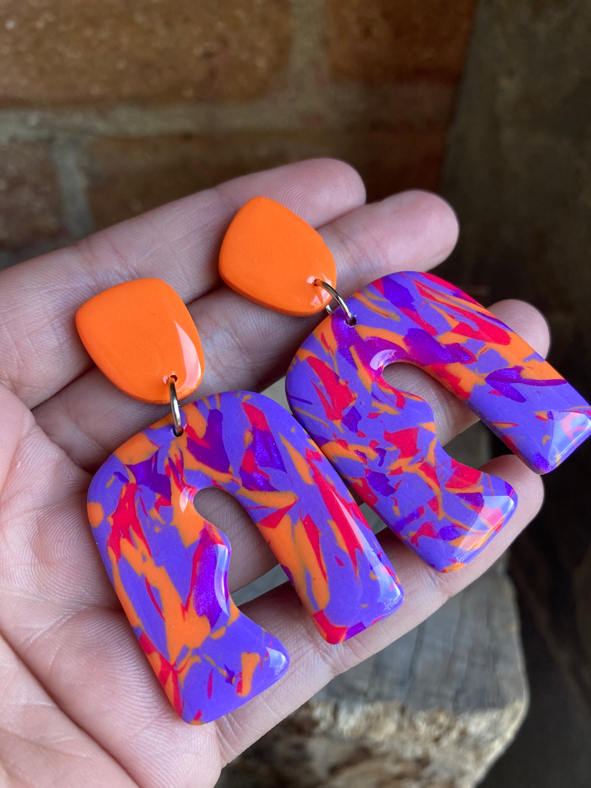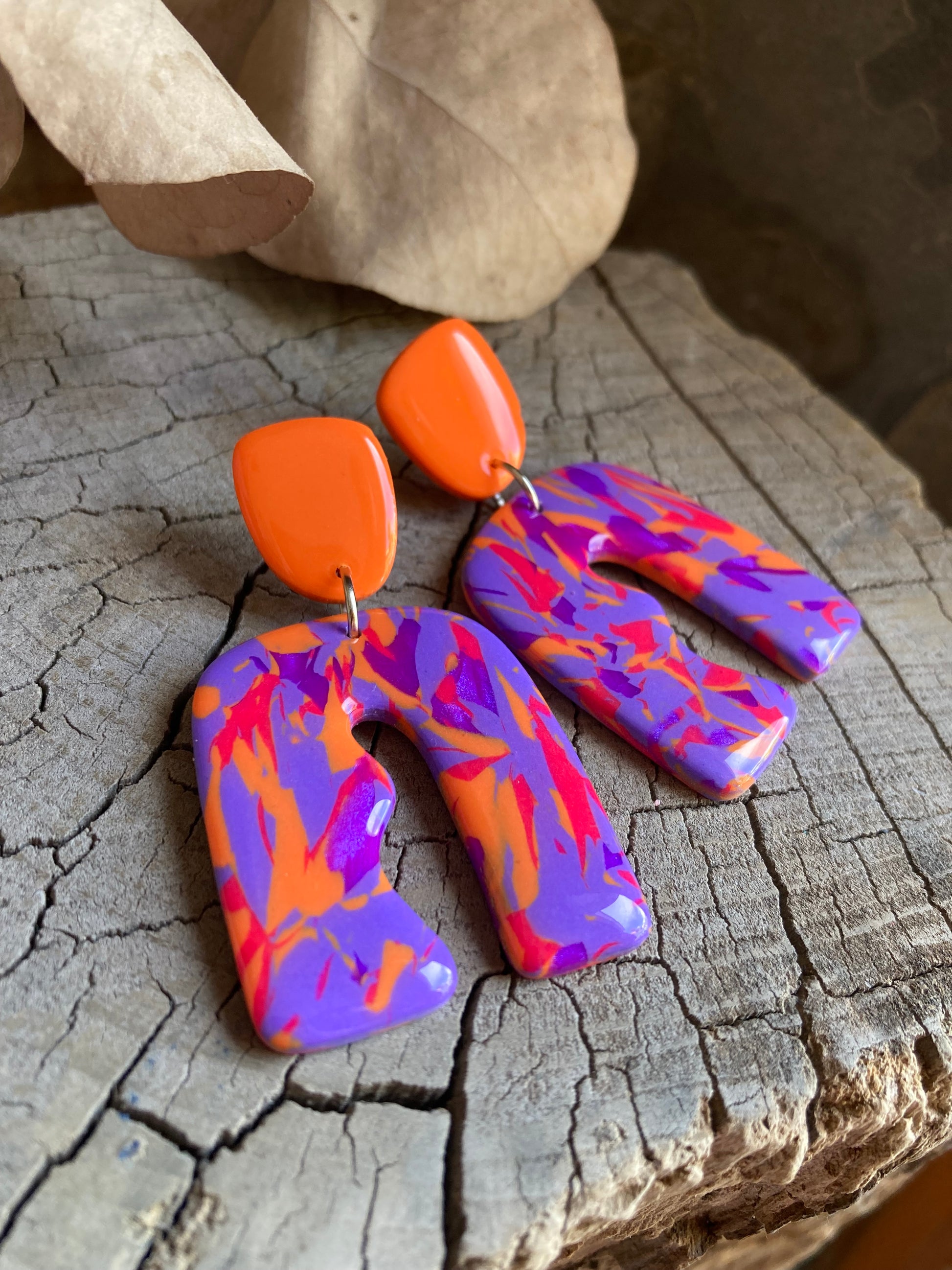 Aros de arcilla polimérica. Miden 5,5 cms. Palito de acero quirúrgico y tope de goma.