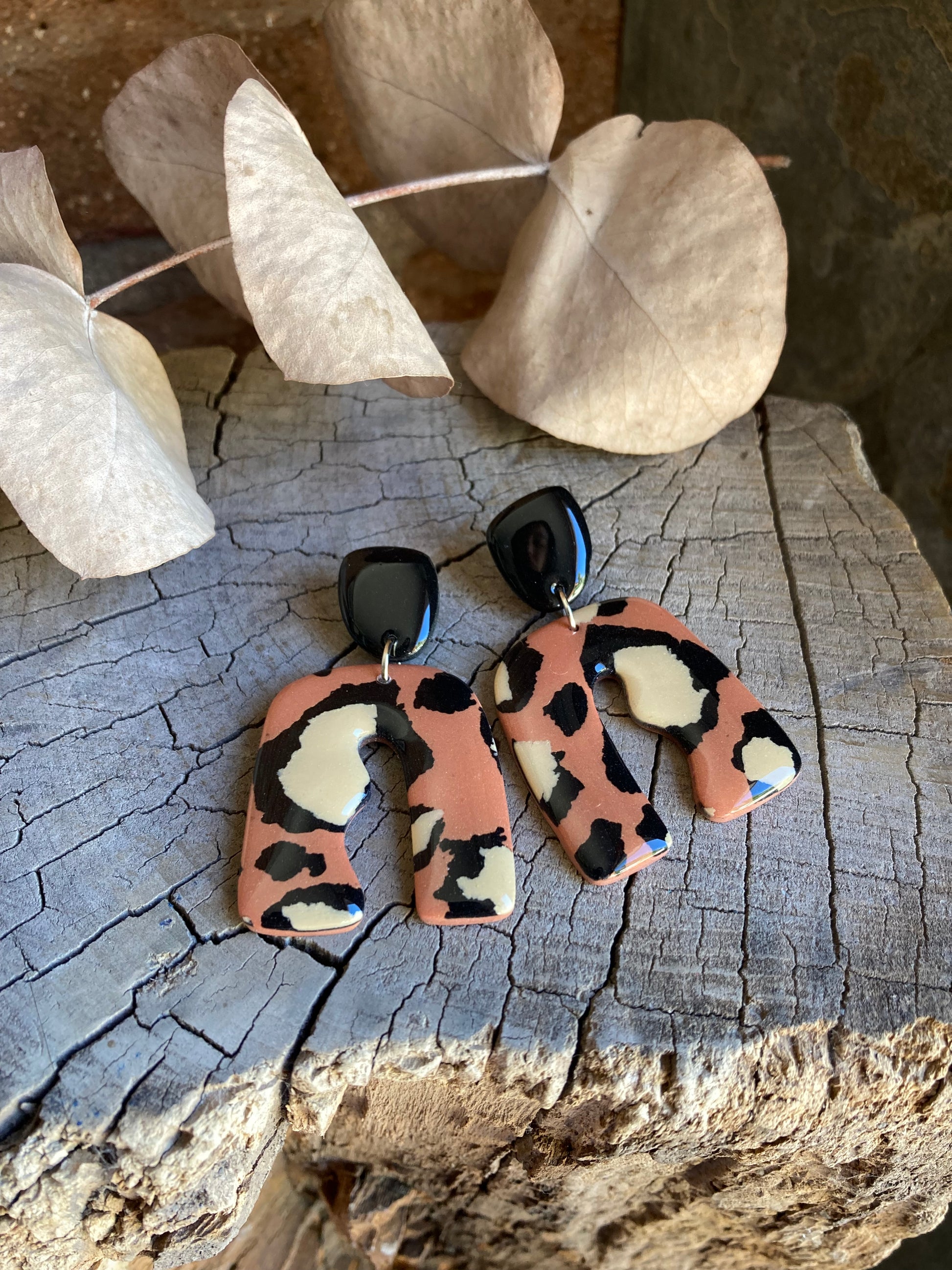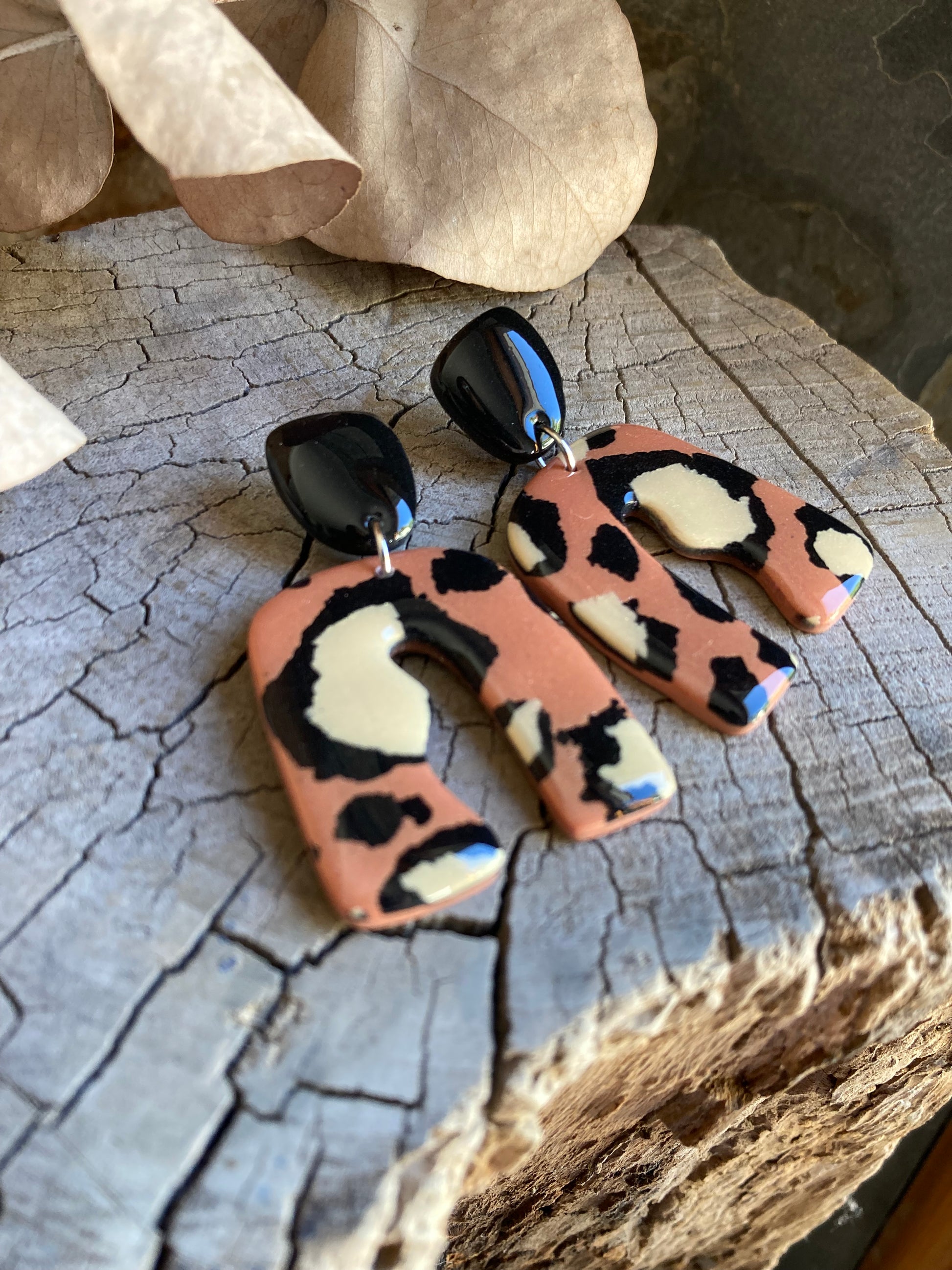 Aros de arcilla polimérica. Miden 5,5 cms. Palito de acero quirúrgico y tope de goma.