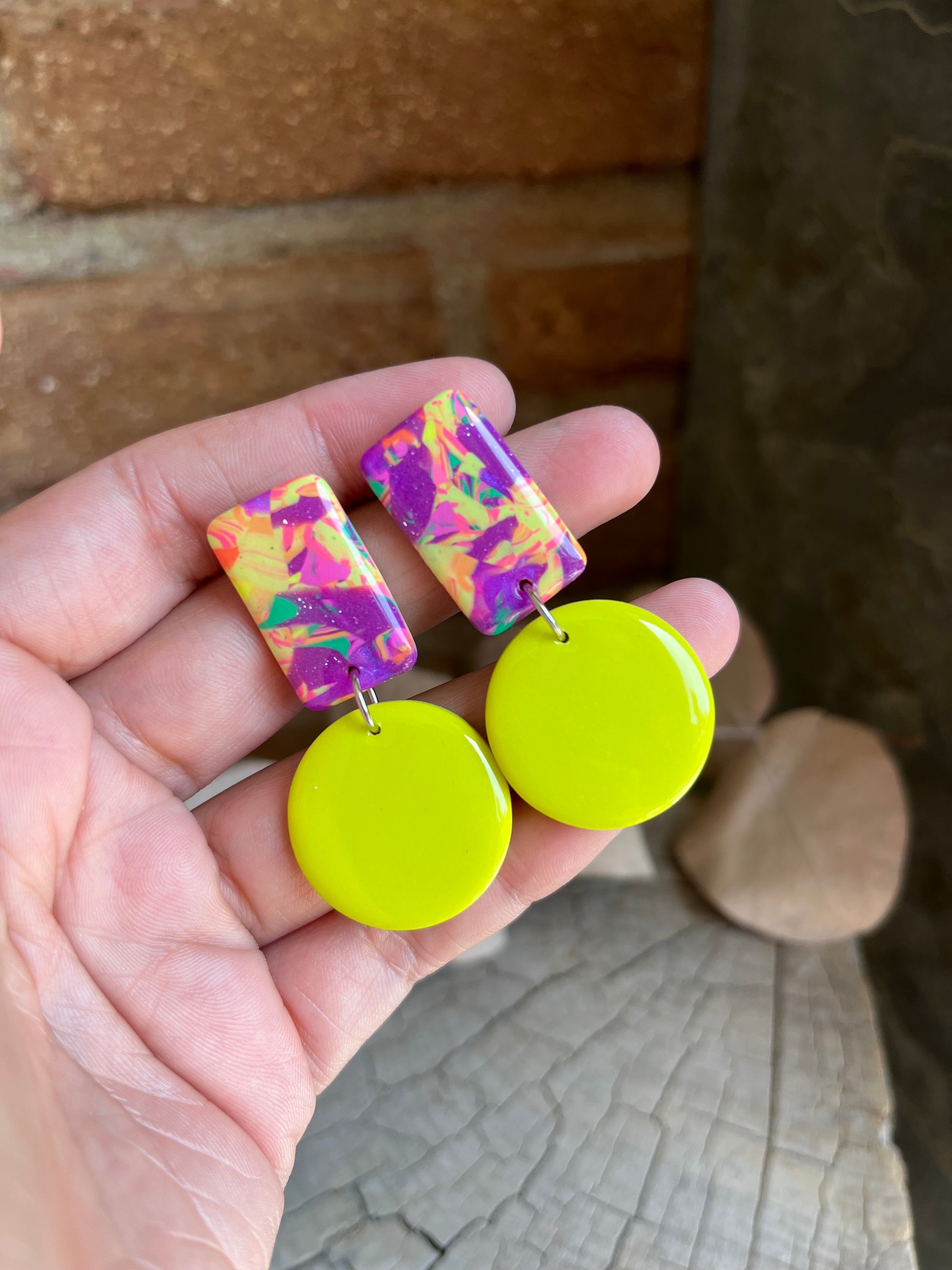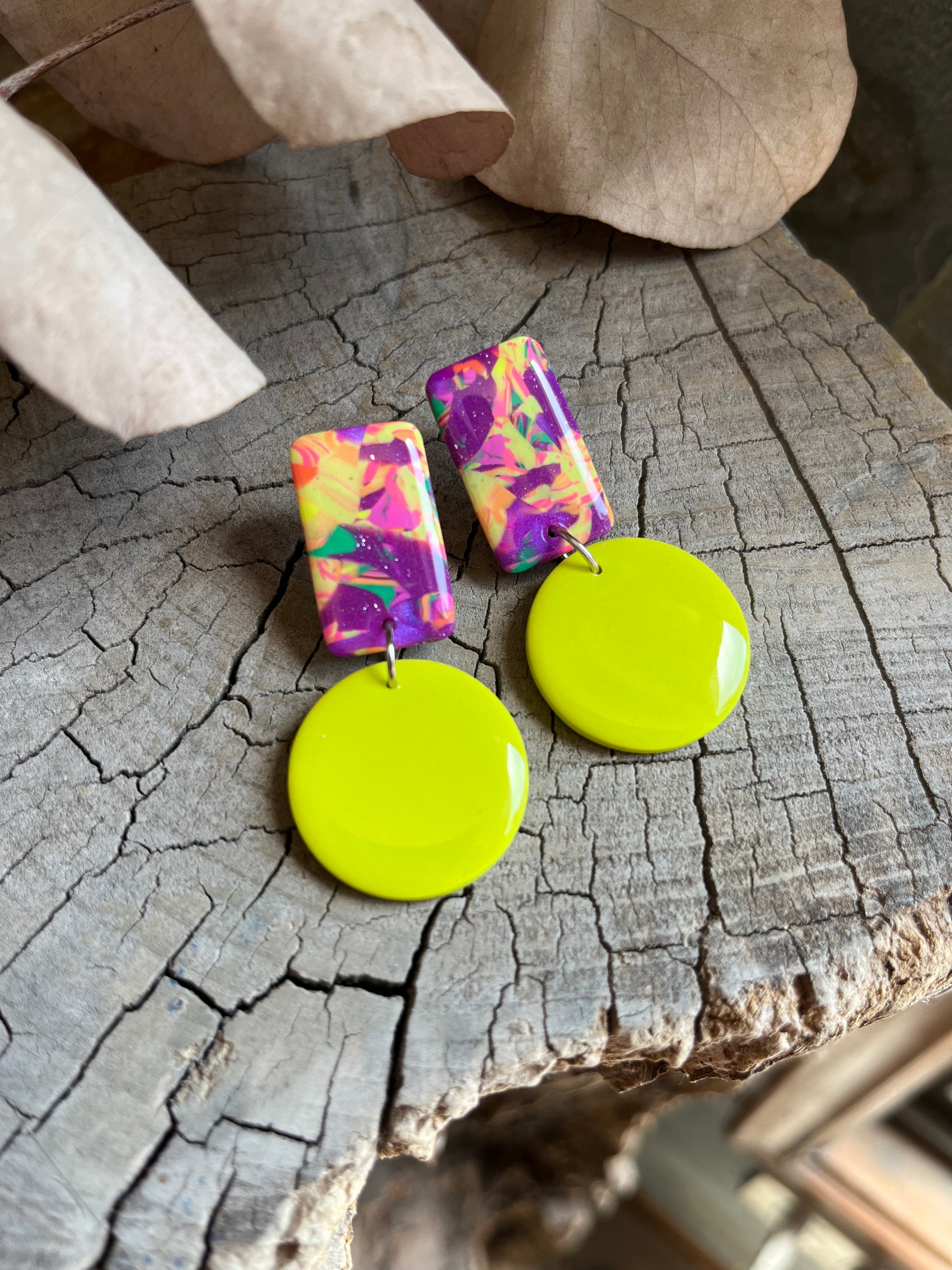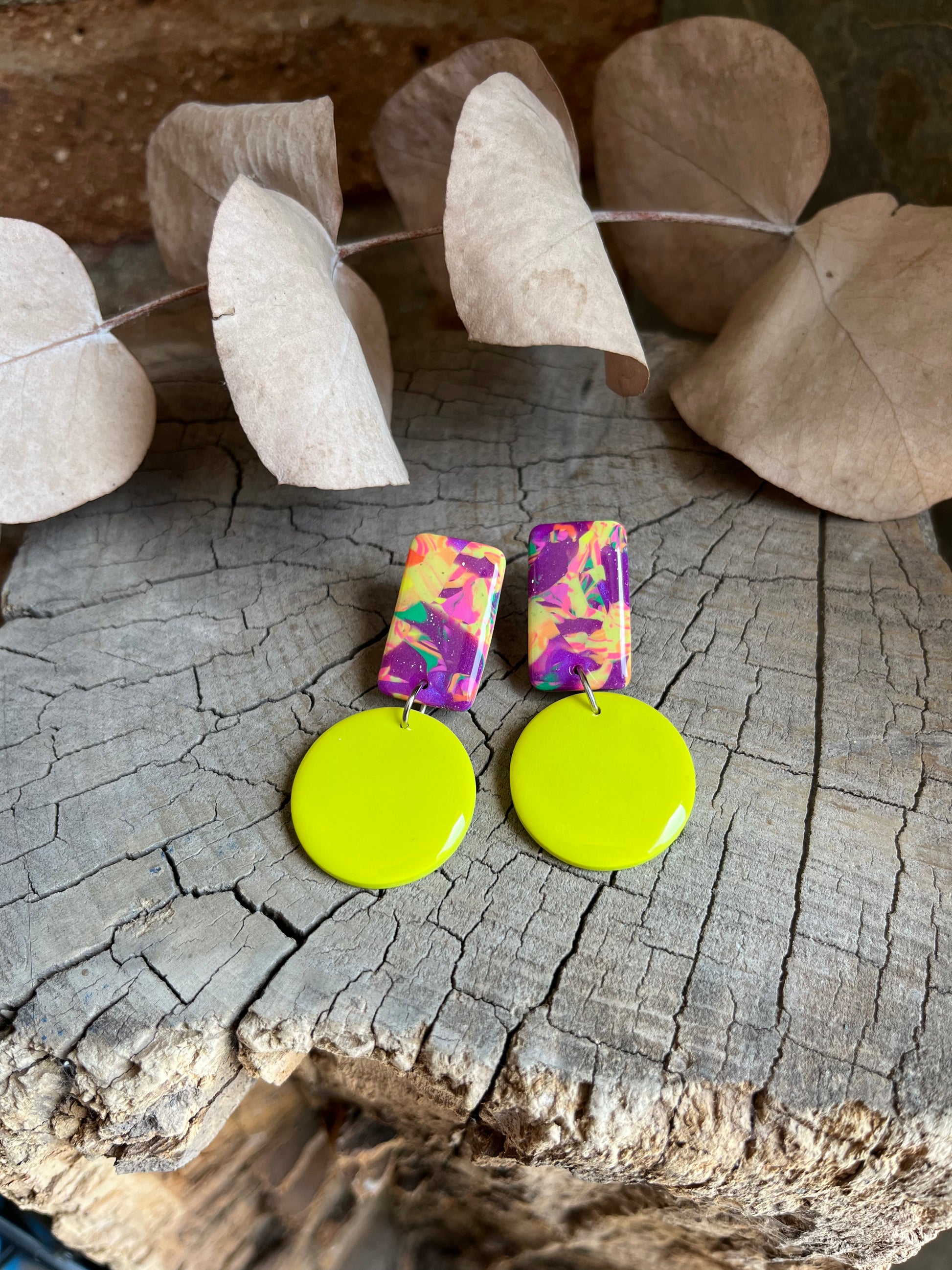 Aros de arcilla polimérica con top coat de resina uv. Miden 5,2 cms. Palito de acero quirúrgico y tope de goma.