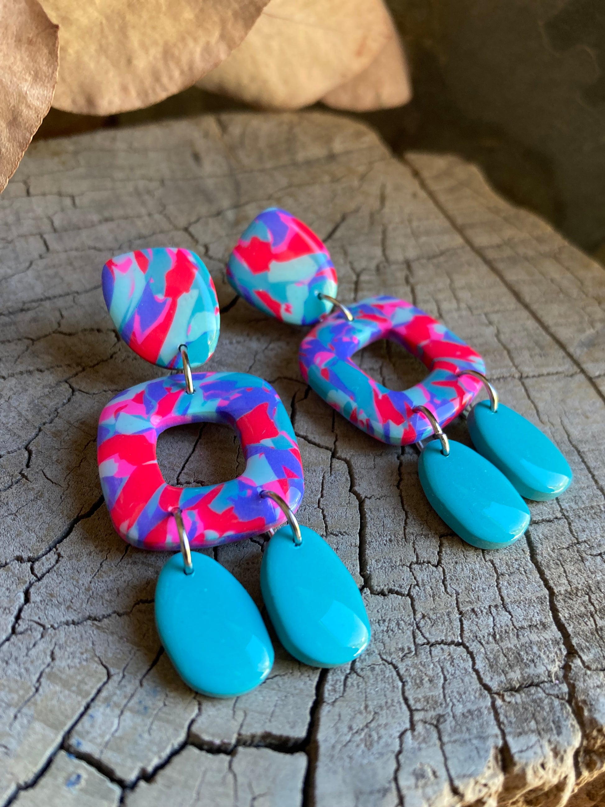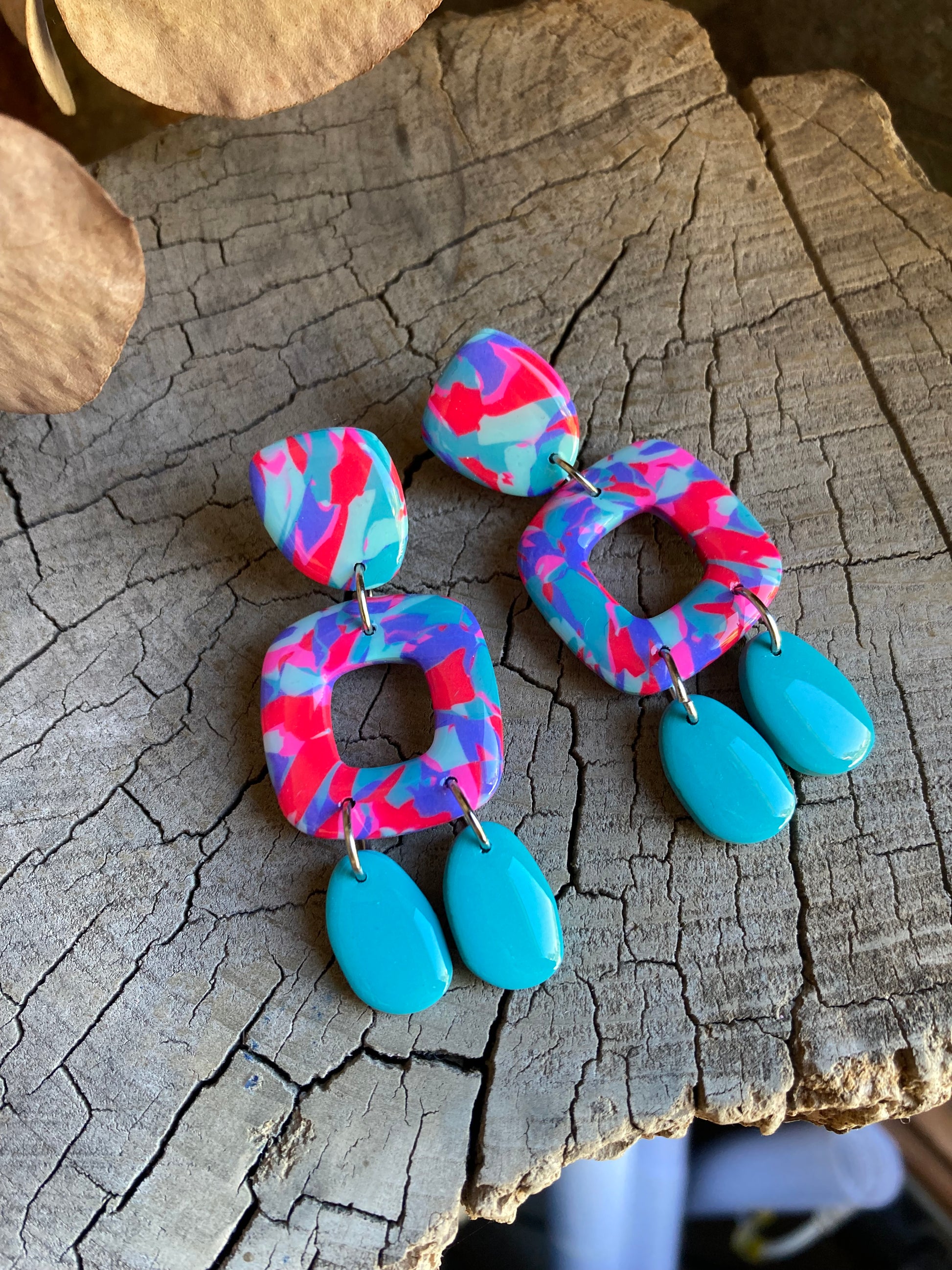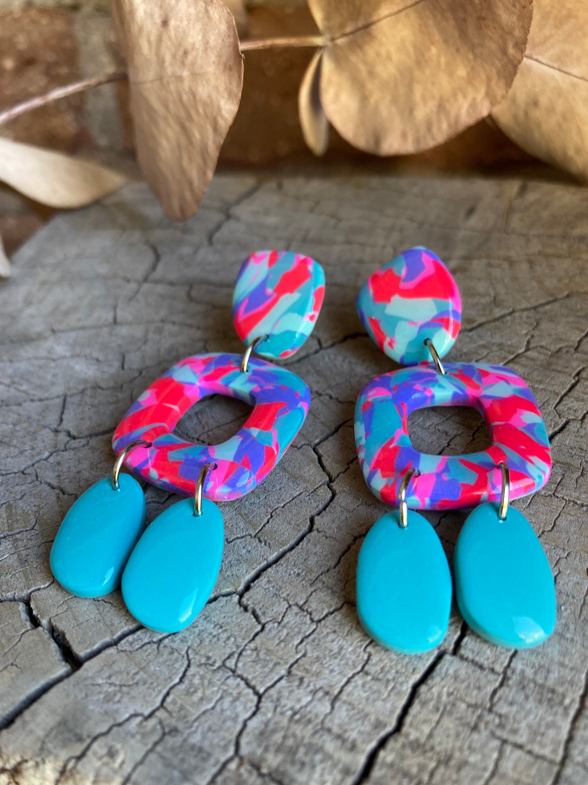 Aros de arcilla polimérica con top coat de resina uv. Miden 6,2 cms. Palito de acero quirúrgico y tope de goma.