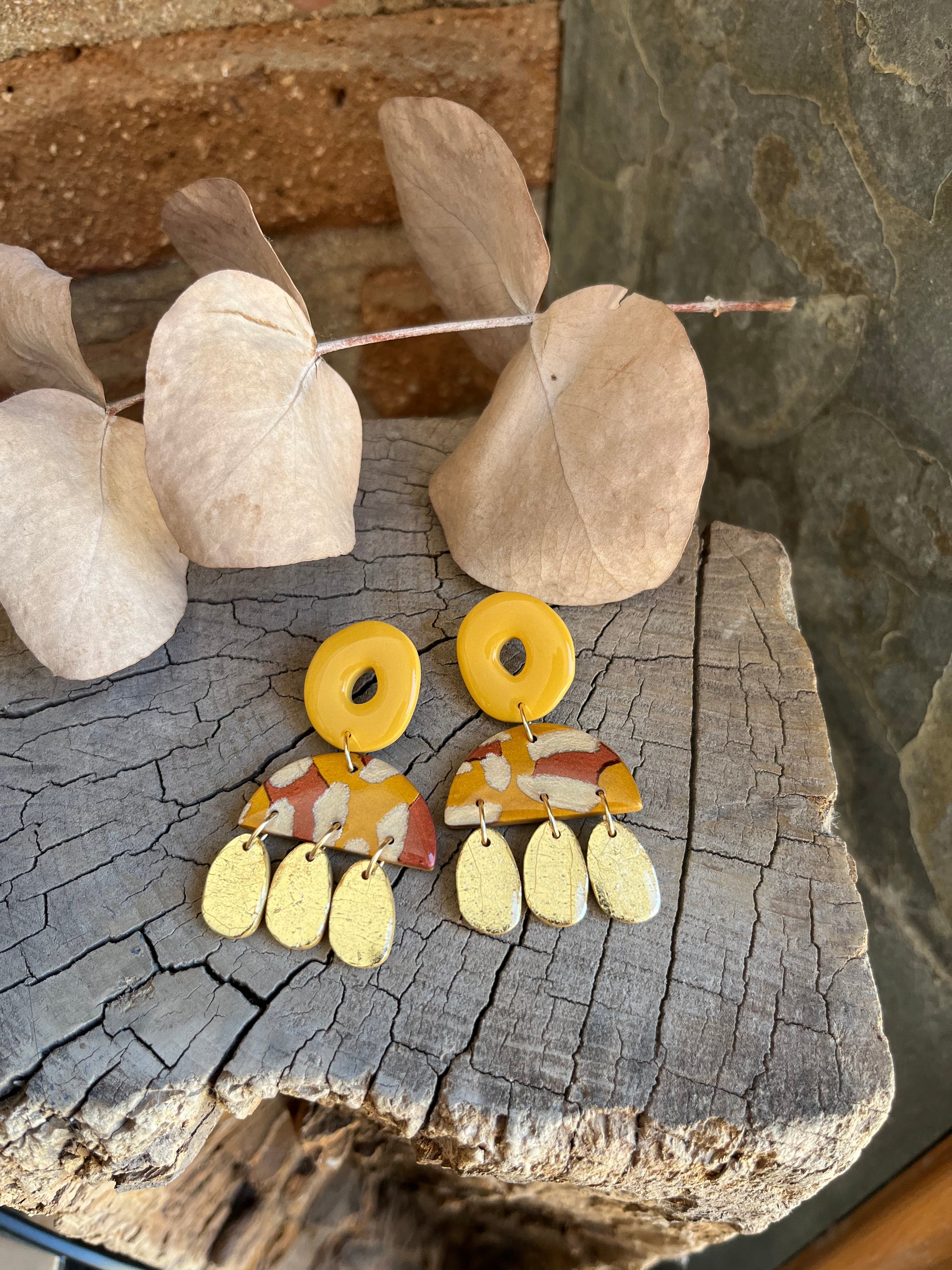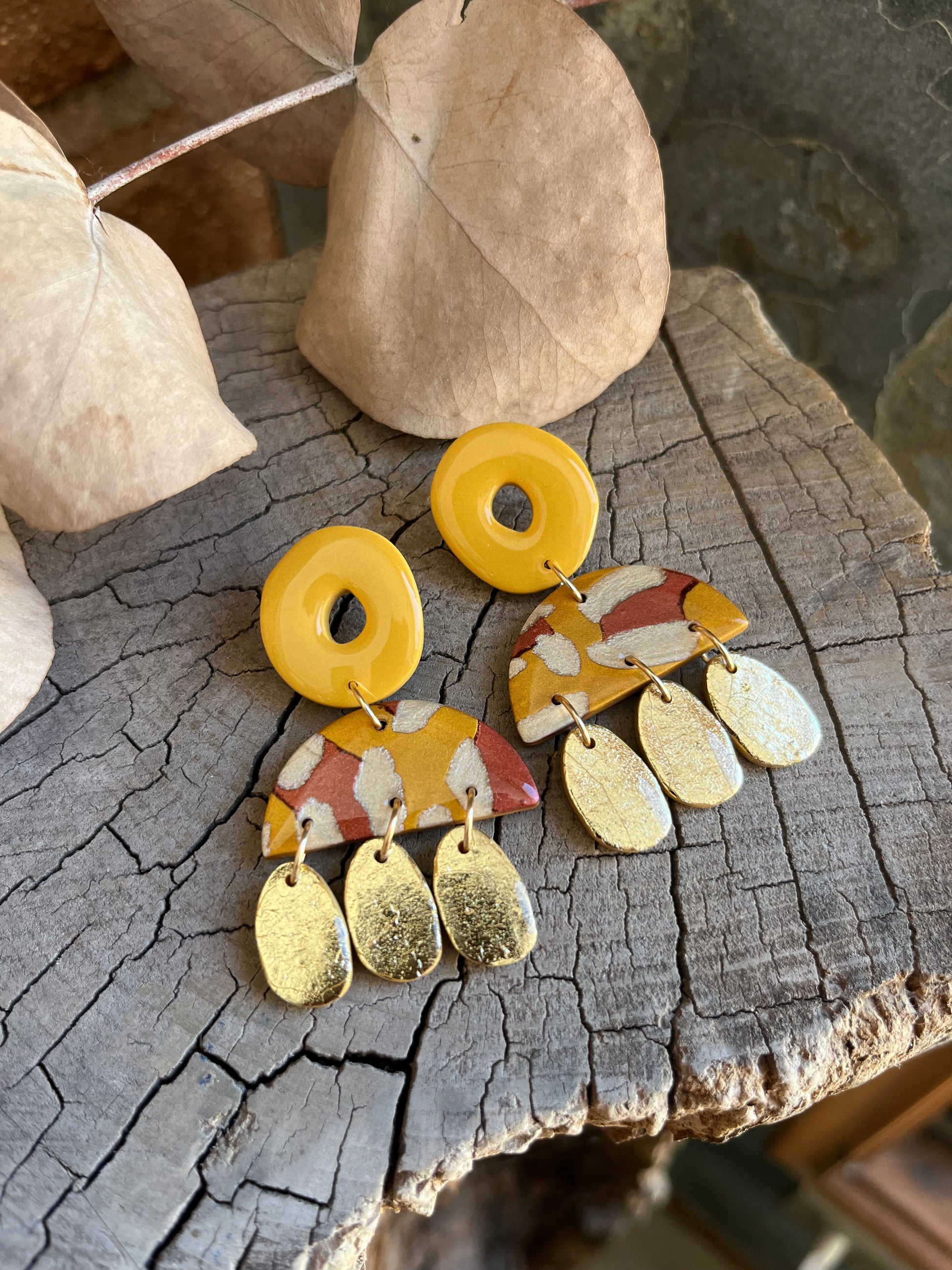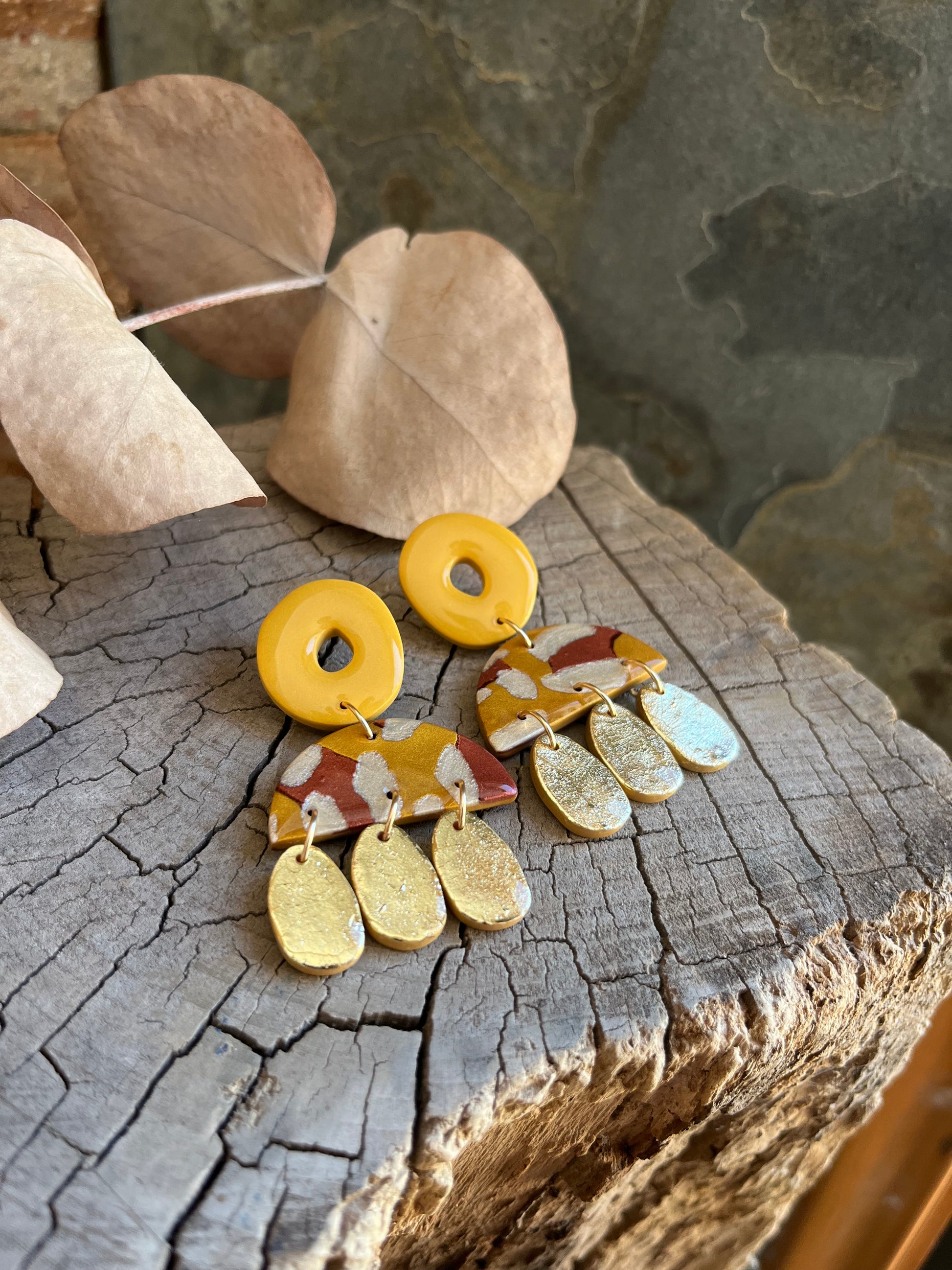 Aros de arcilla polimérica con top coat de resina uv. Miden 6 cms. Palito de acero quirúrgico y tope de goma.