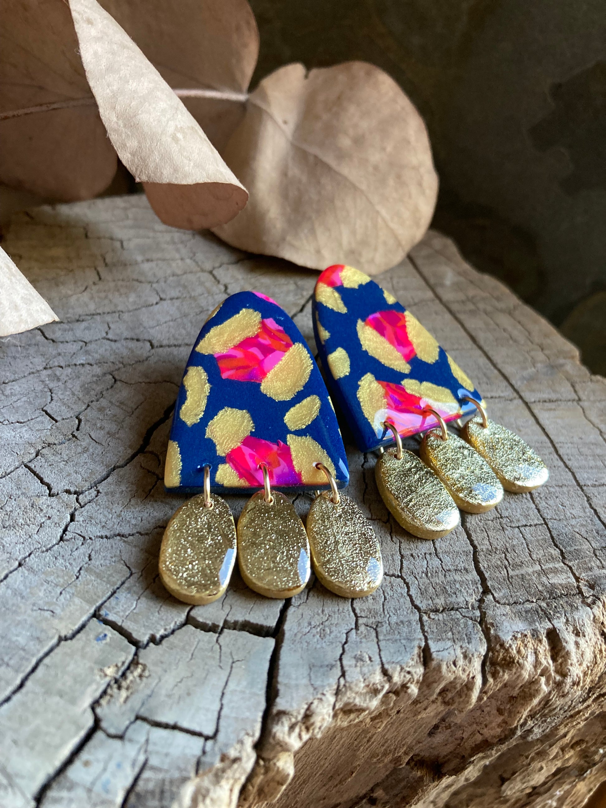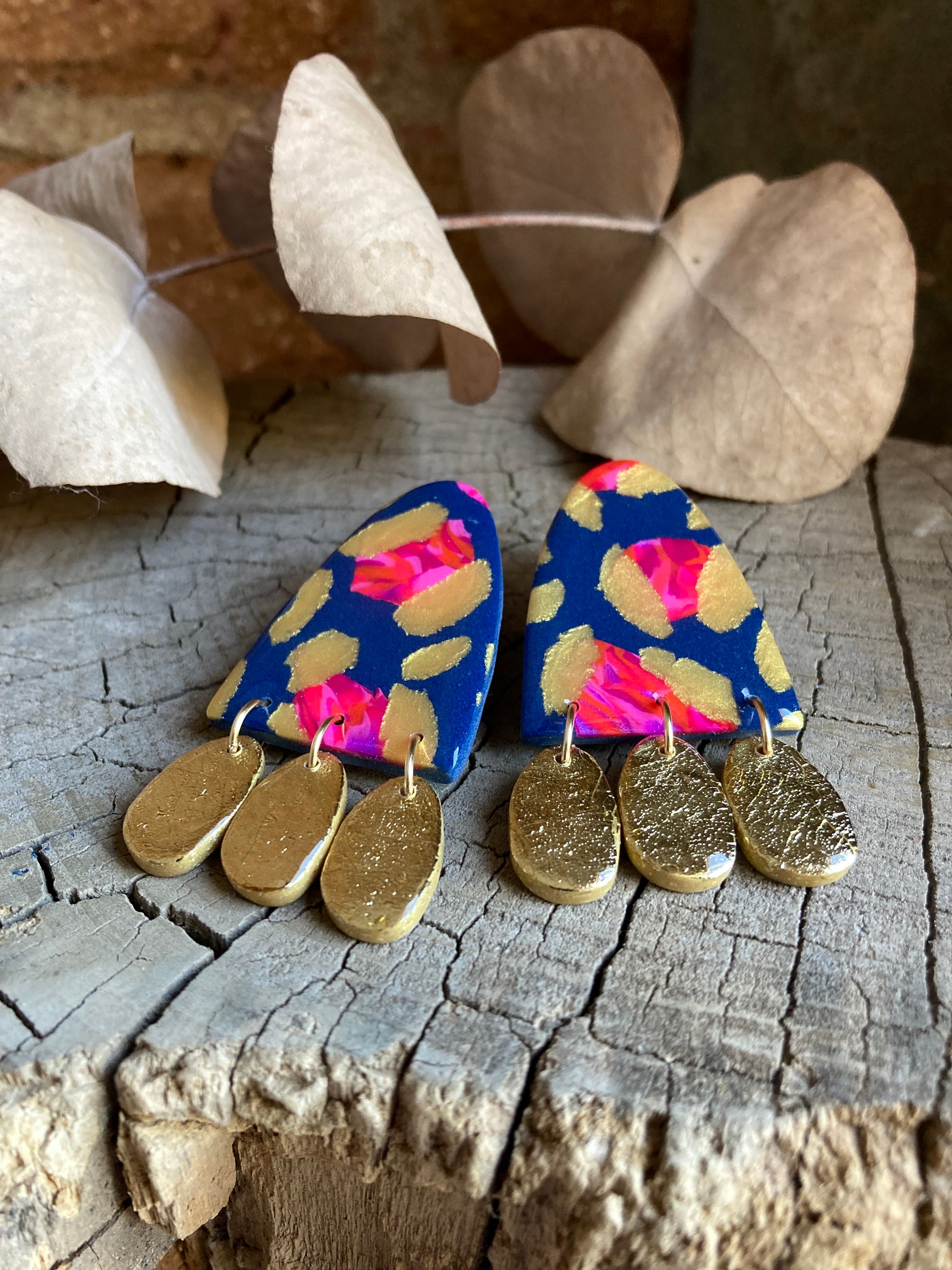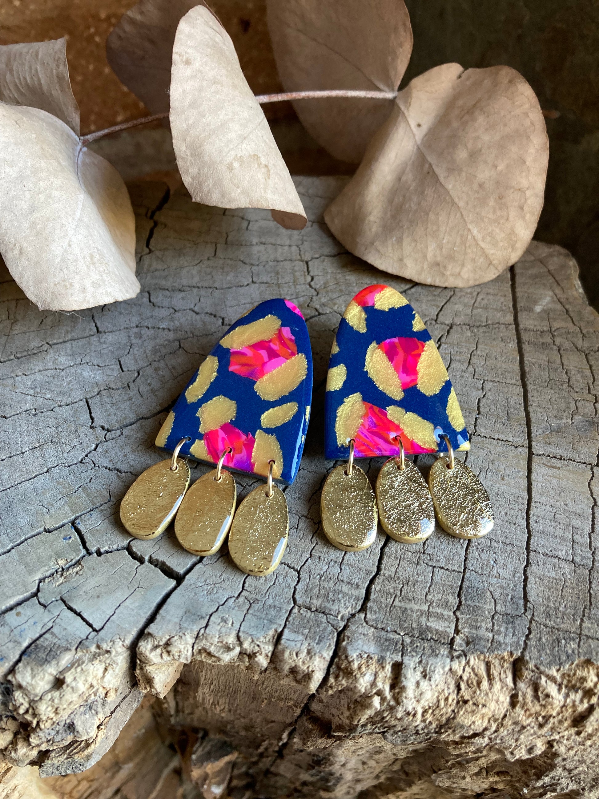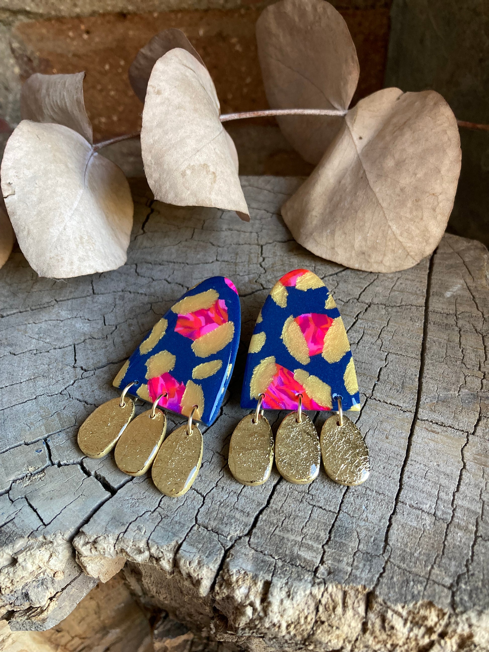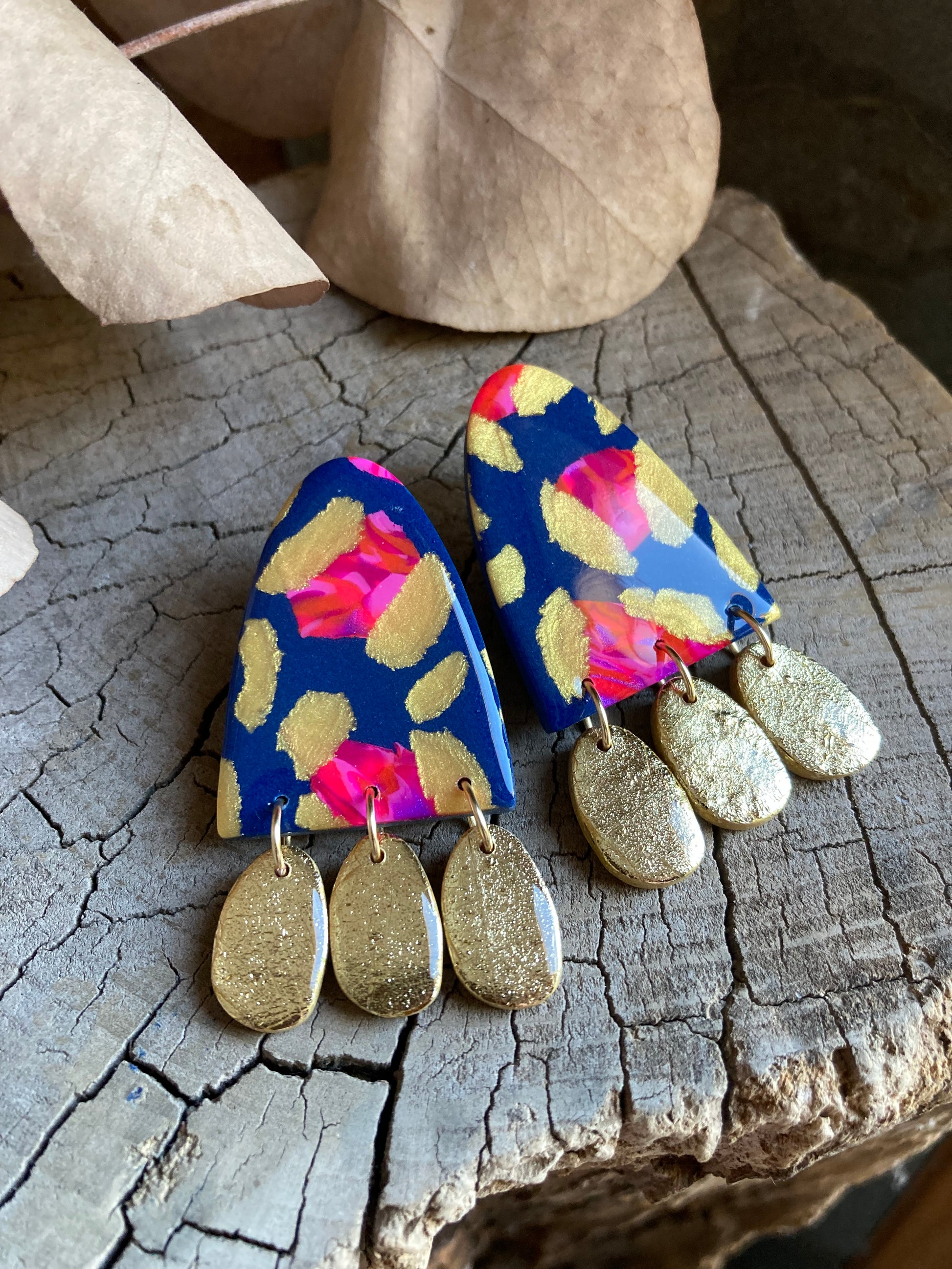 Aros de arcilla polimérica con top coat de resina uv. Miden 5,5 cms. Palito de acero quirúrgico y tope de goma.