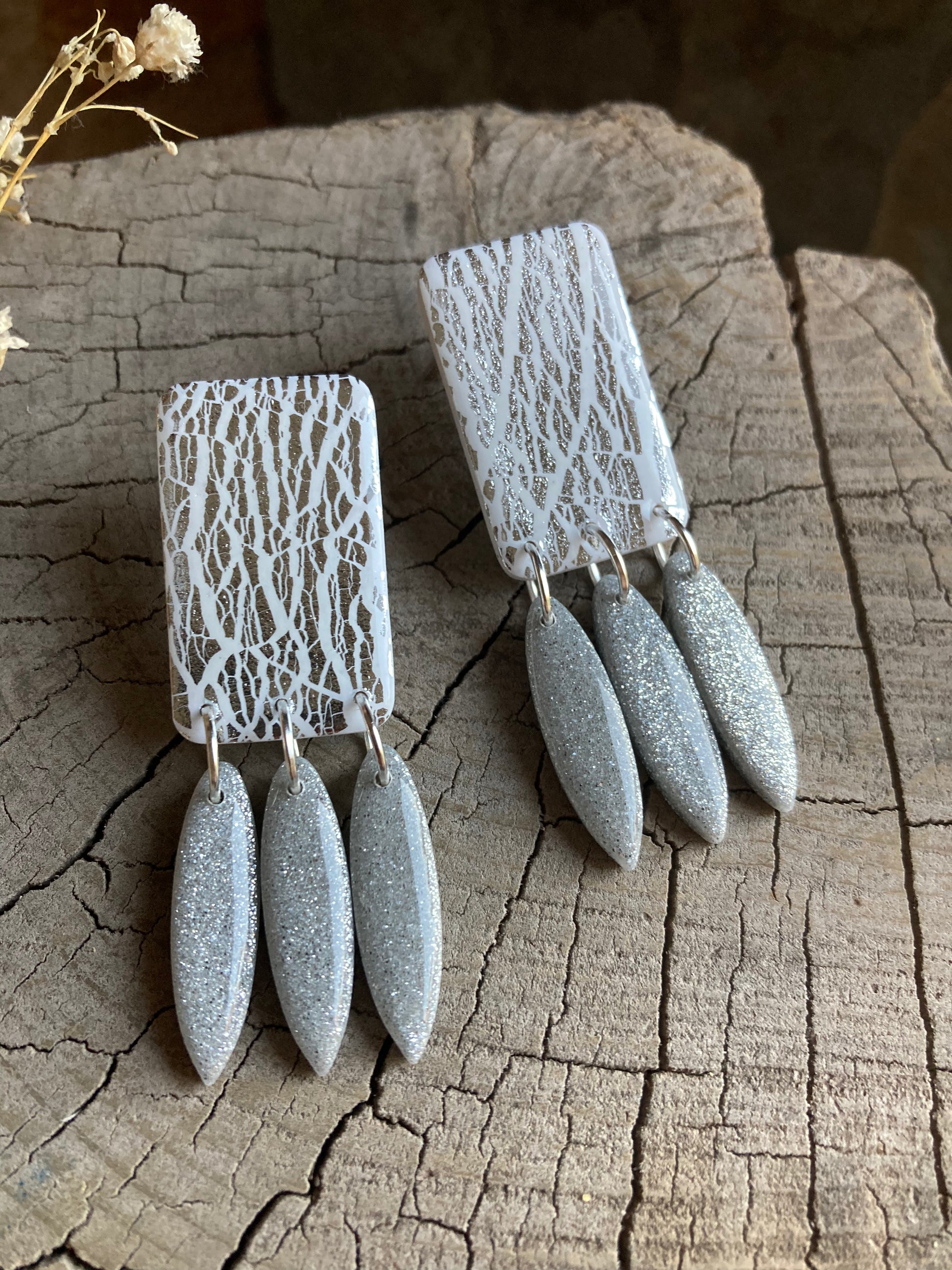 Aros de arcilla polimérica con top coat de resina uv. Miden 6 cms. Palito de acero quirúrgico y tope de goma.