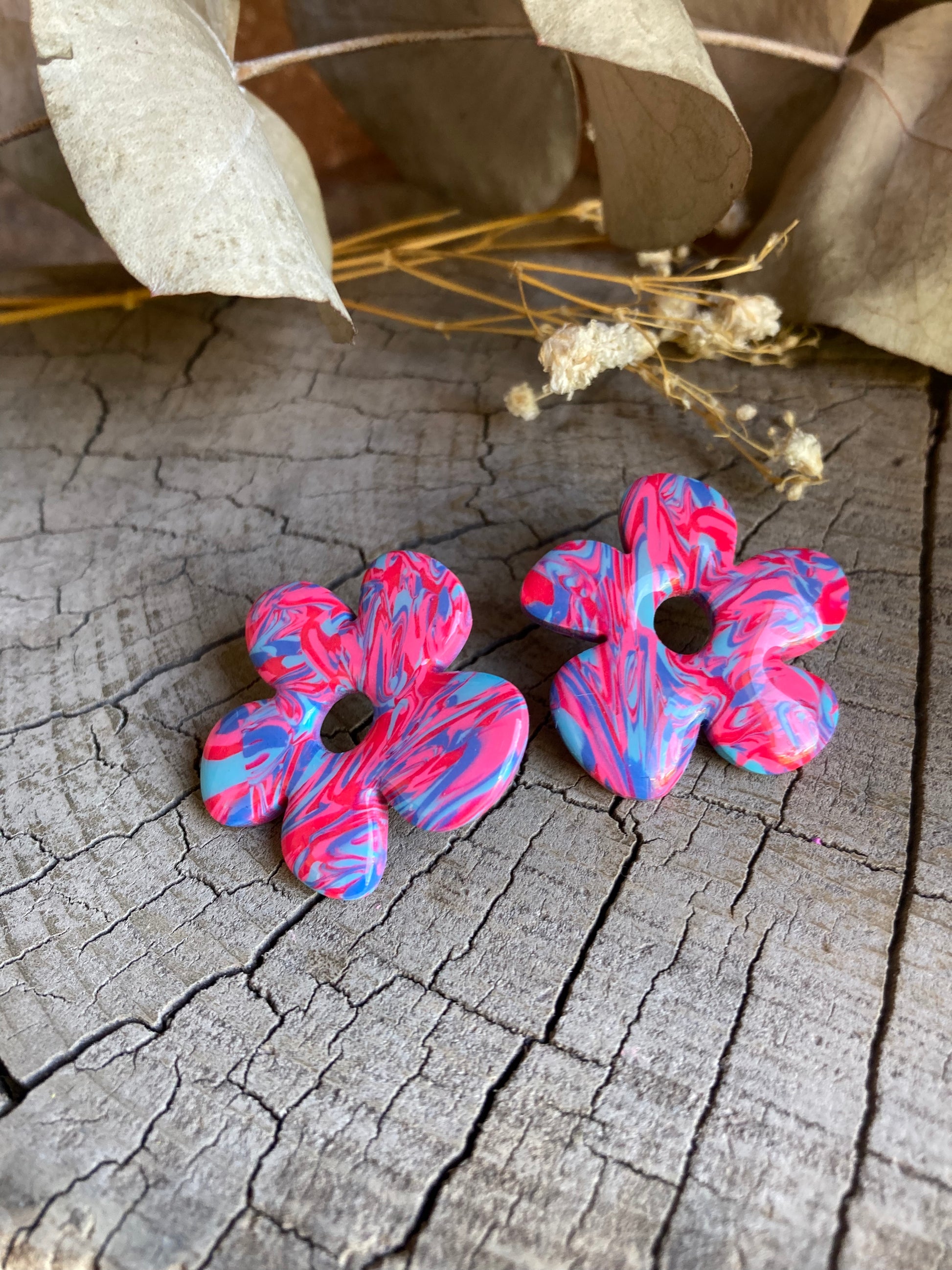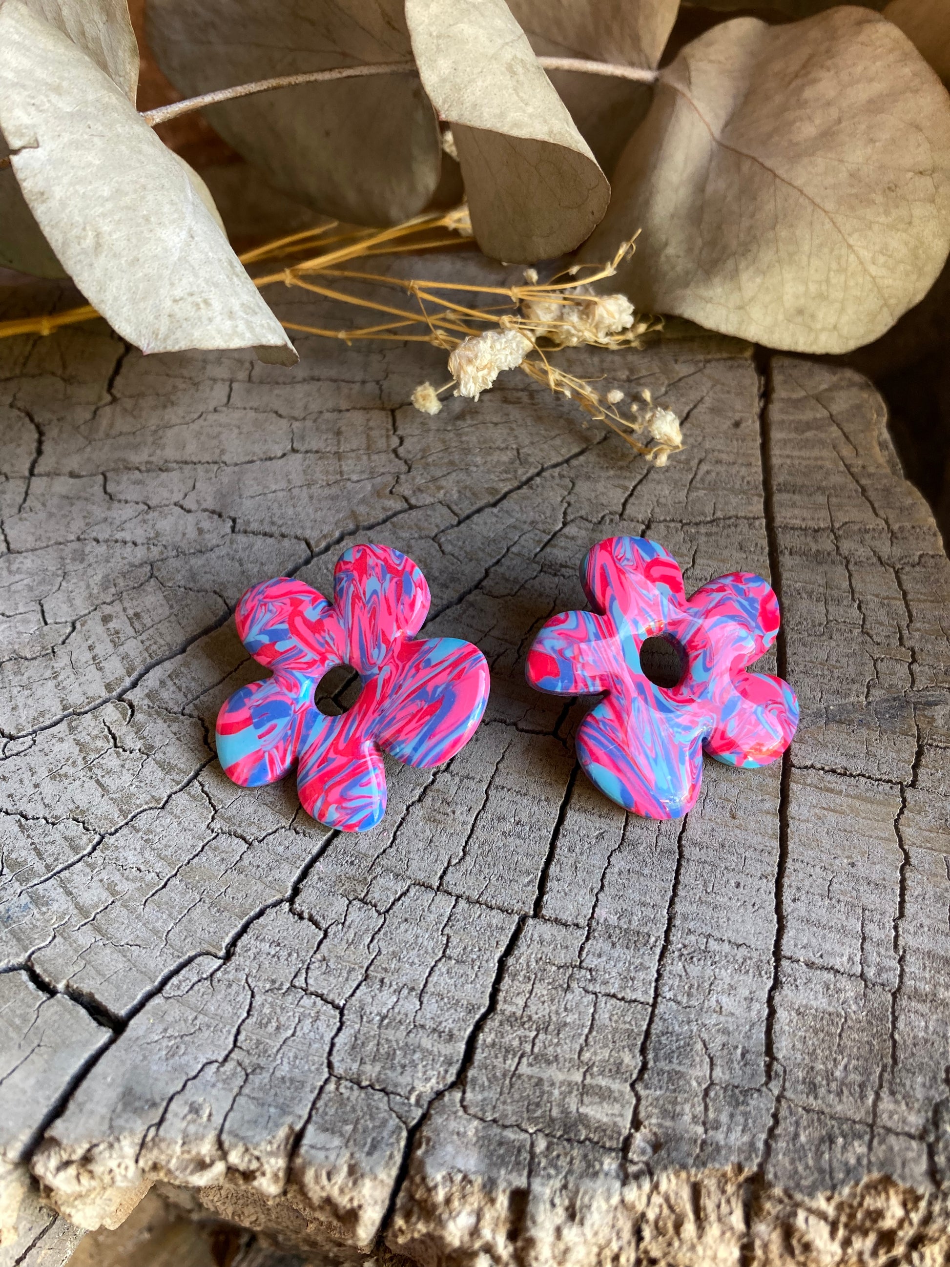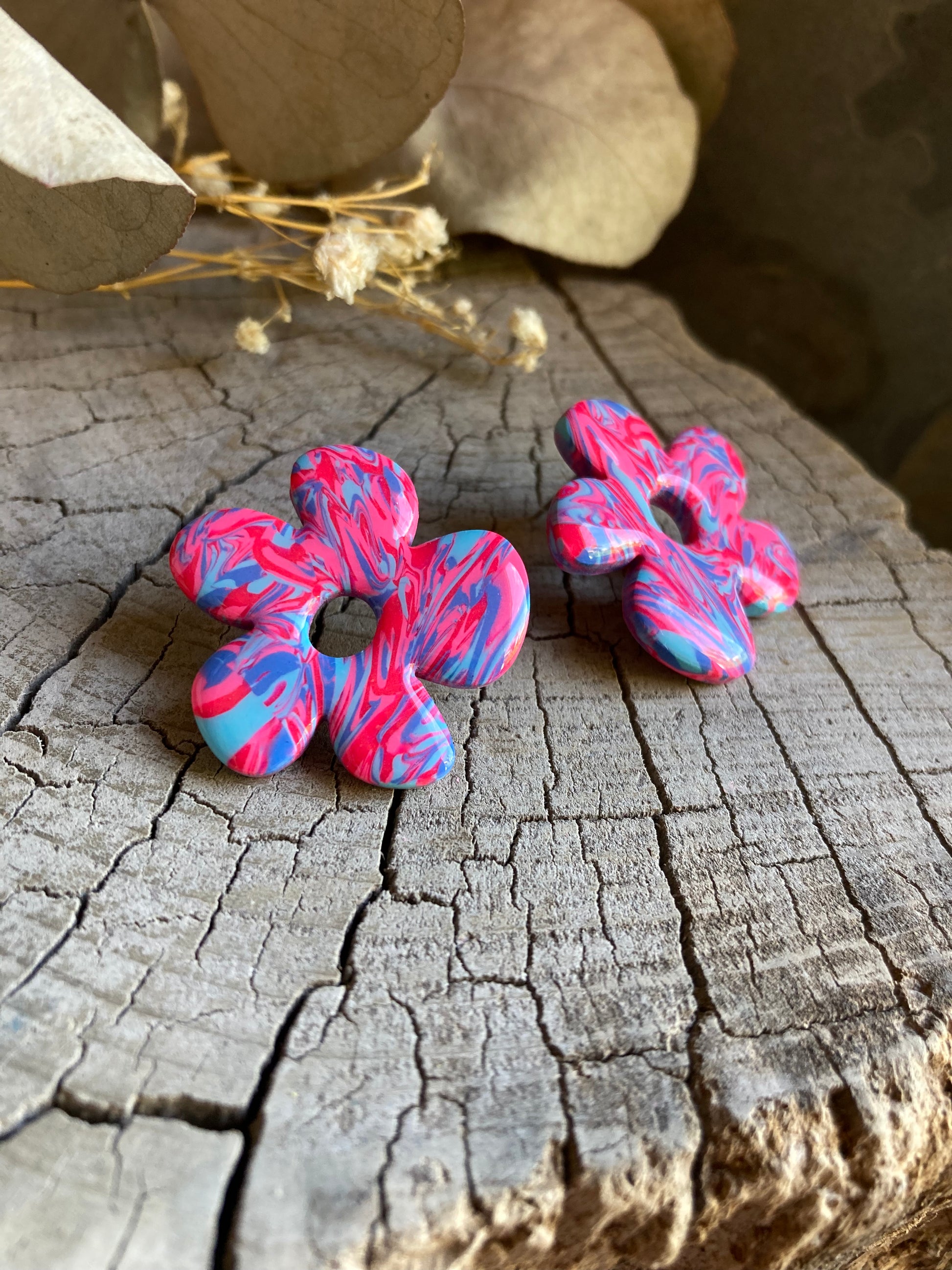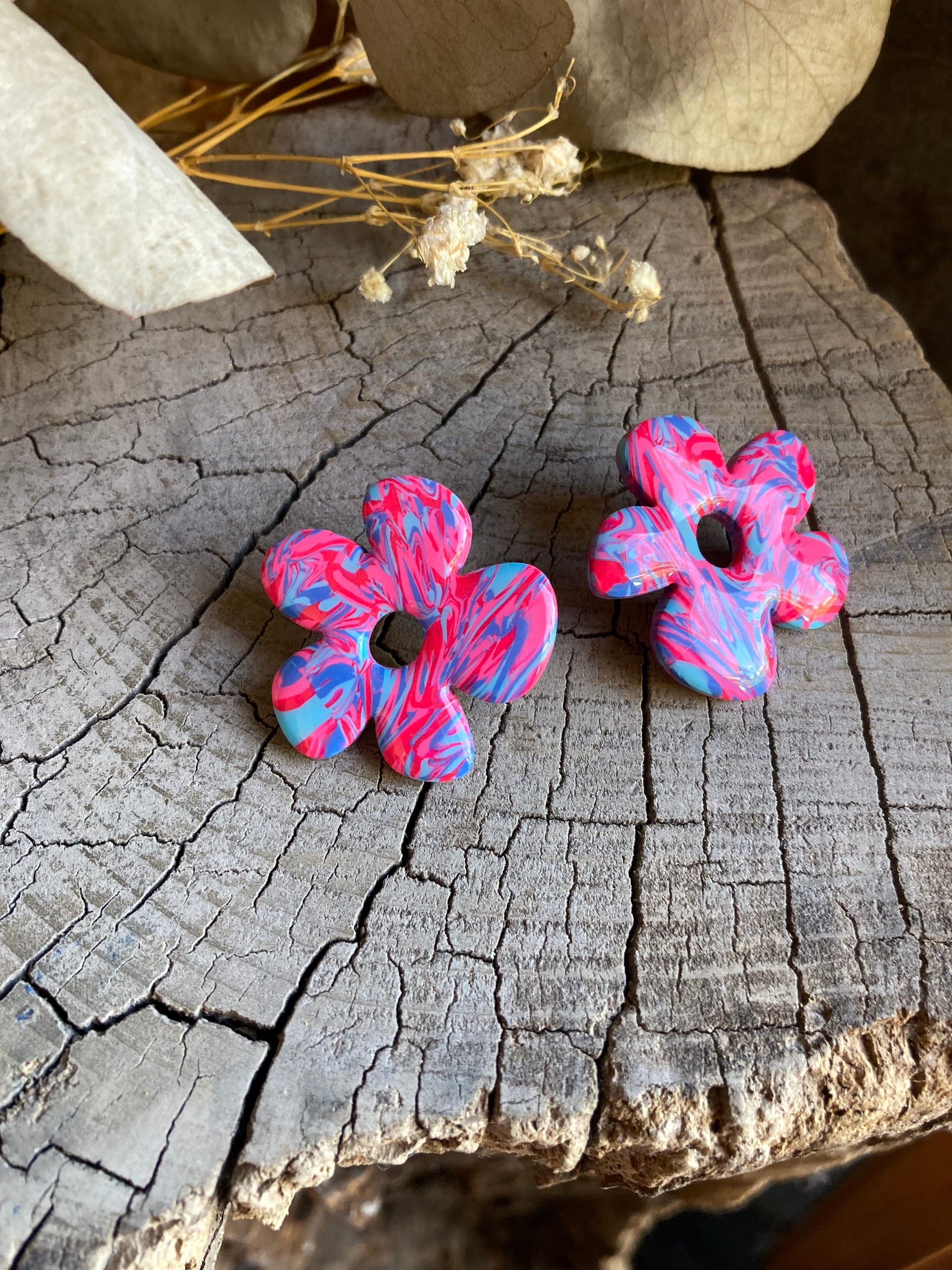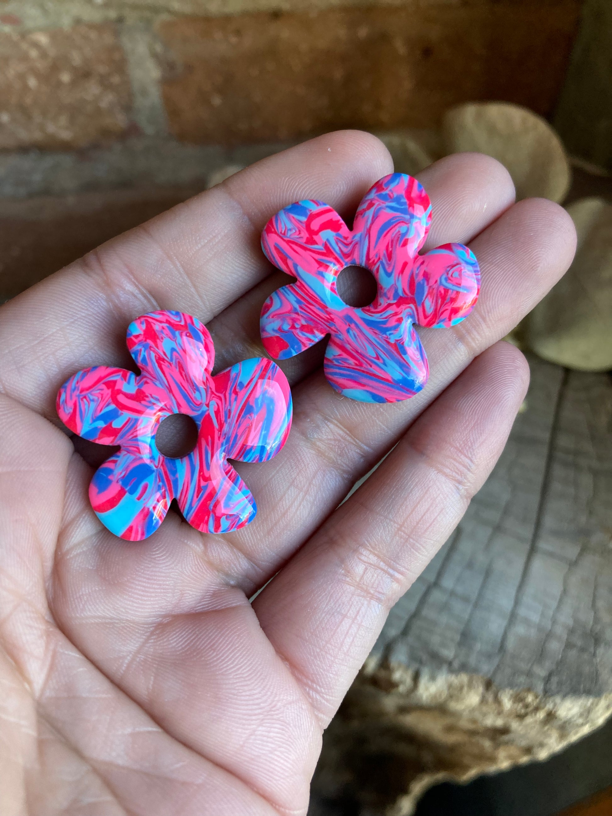 Aros de arcilla polimérica con top coat de resina uv. Miden 3 cms. Palito de acero quirúrgico y tope de goma.