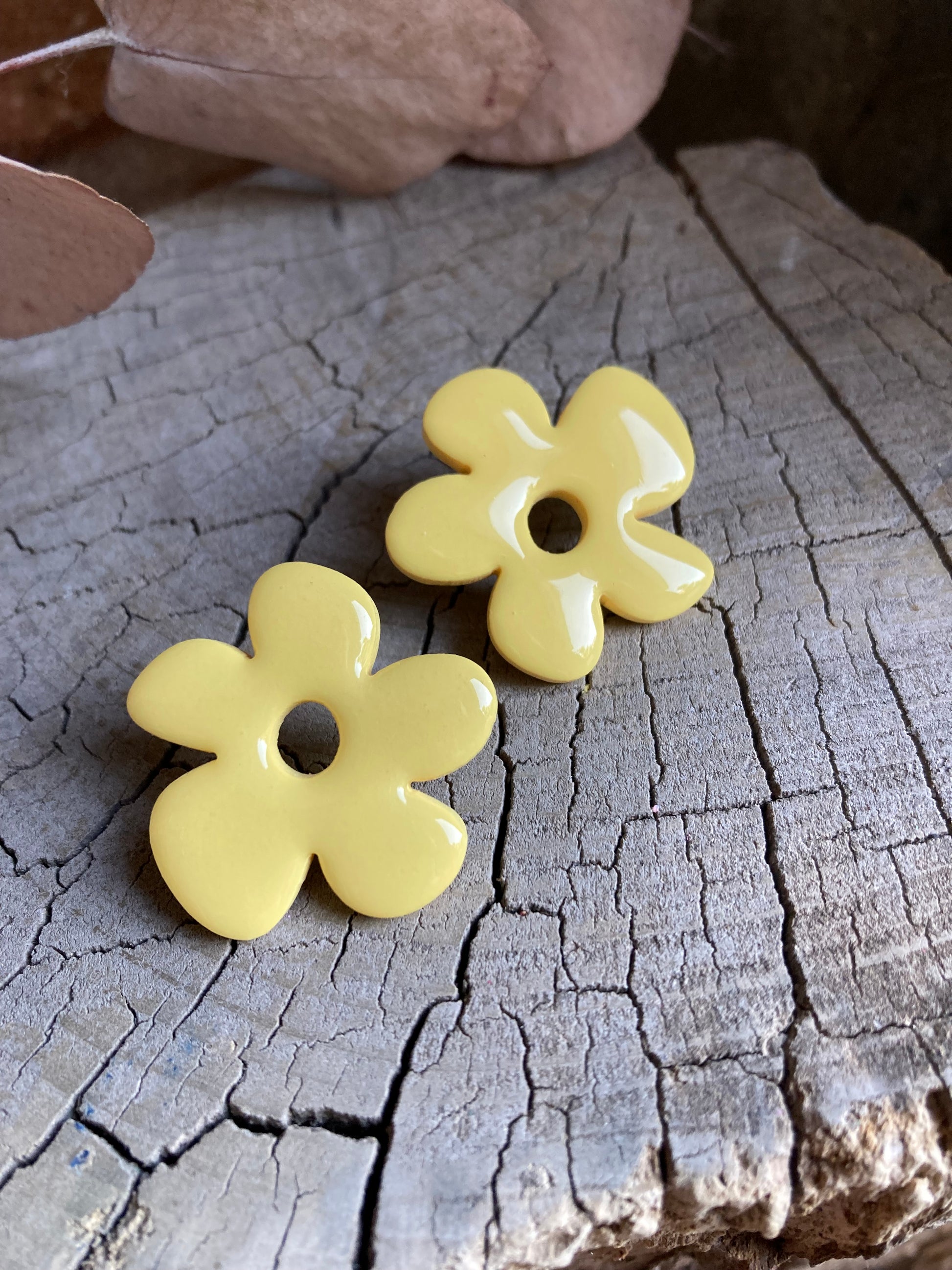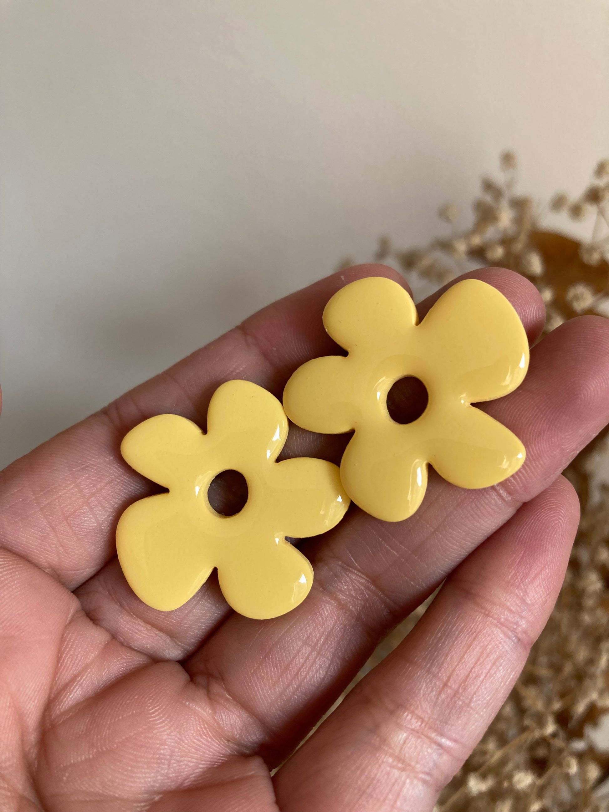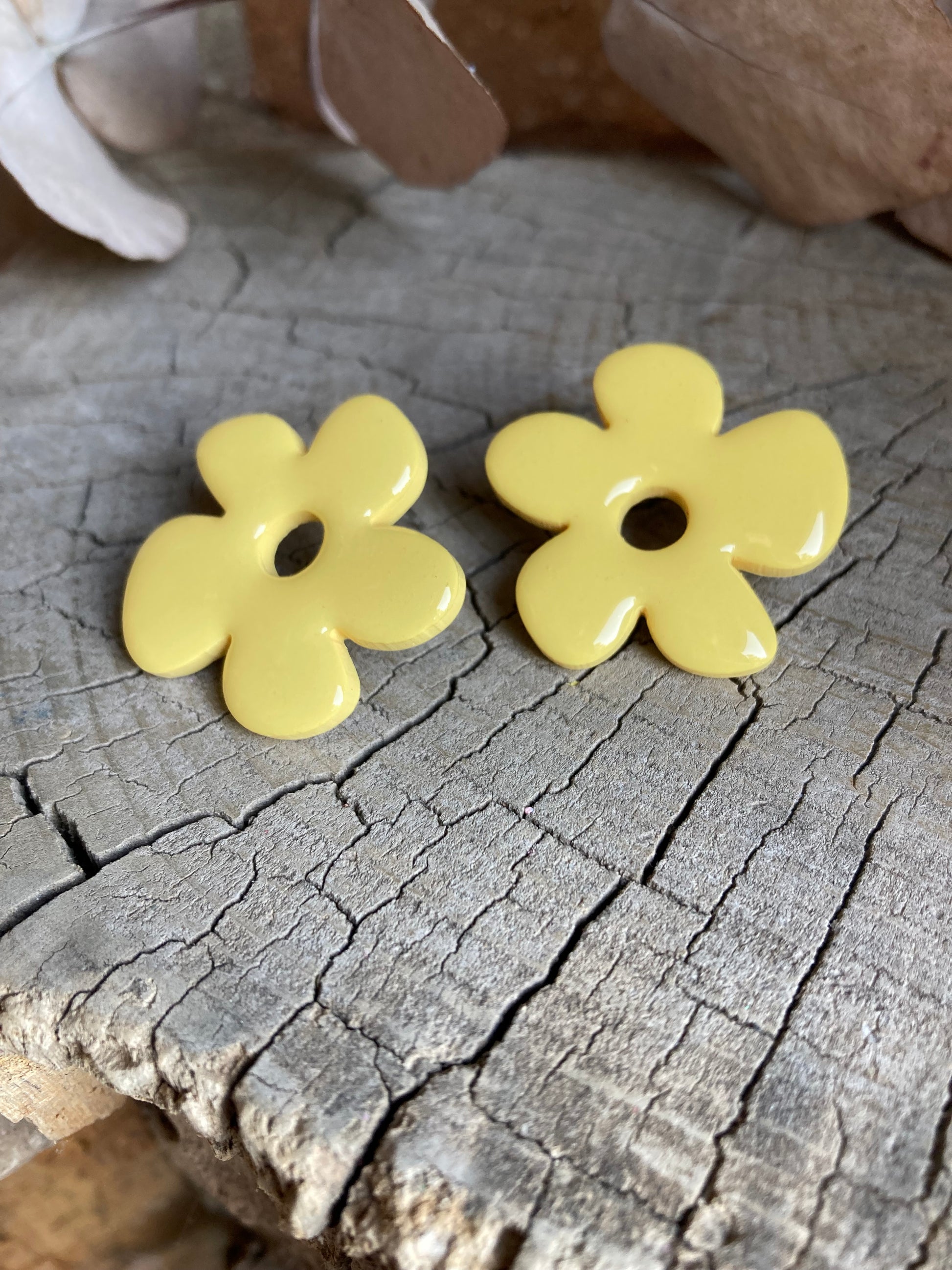 Aros de arcilla polimérica con top coat de resina uv. Miden 3 cms. Palito de acero quirúrgico y tope de goma.