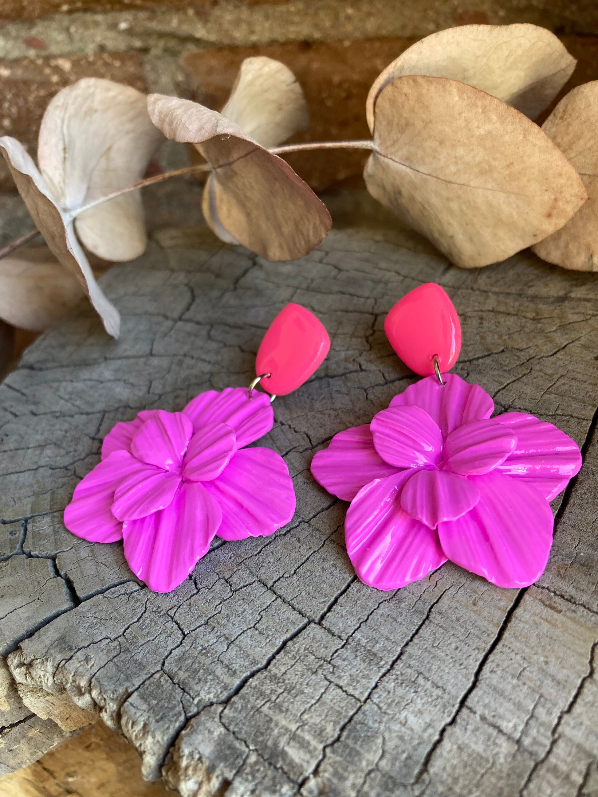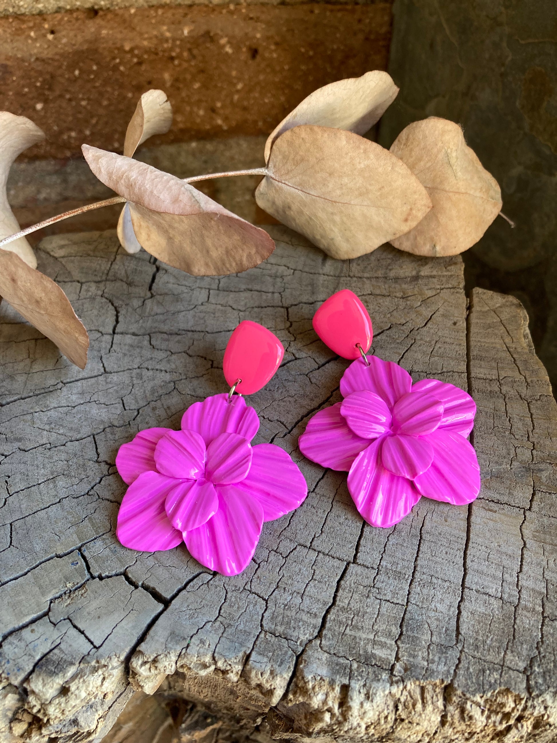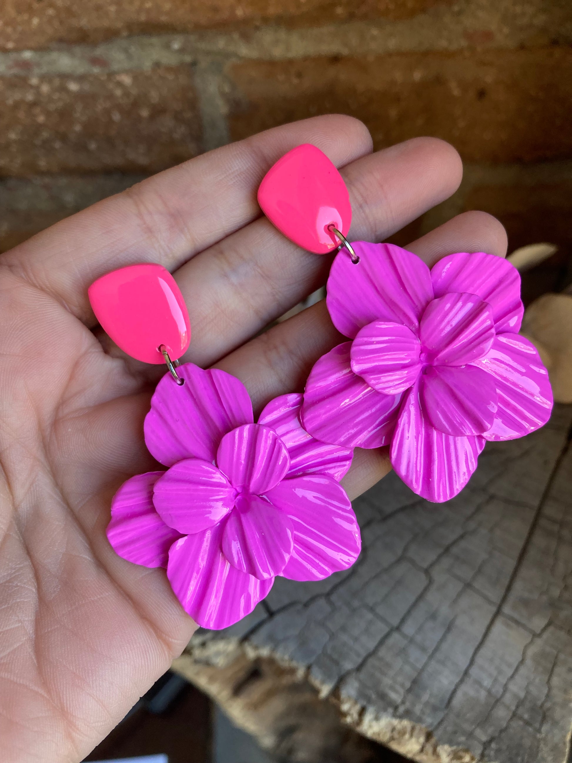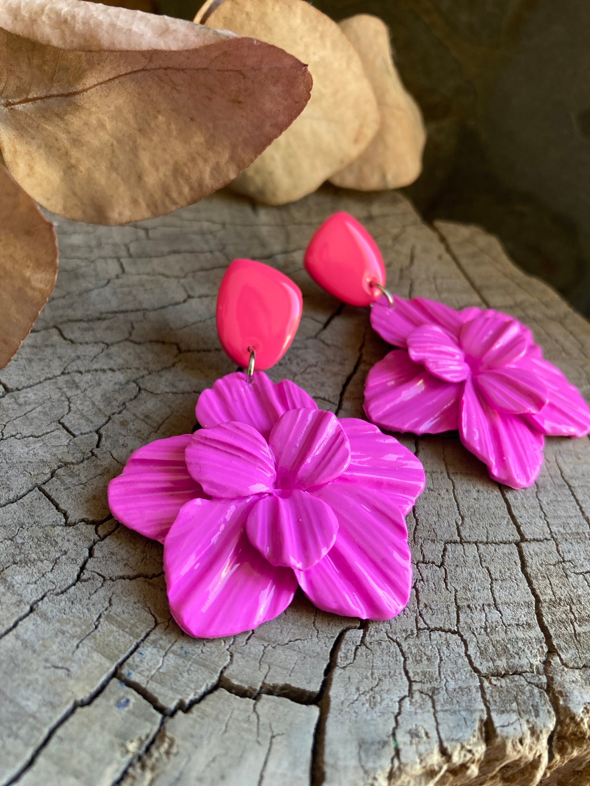 Aros de arcilla polimérica con textura y capa de resina uv. Miden 6,5 cms. Palitos de acero quirúrgico y tope de goma.