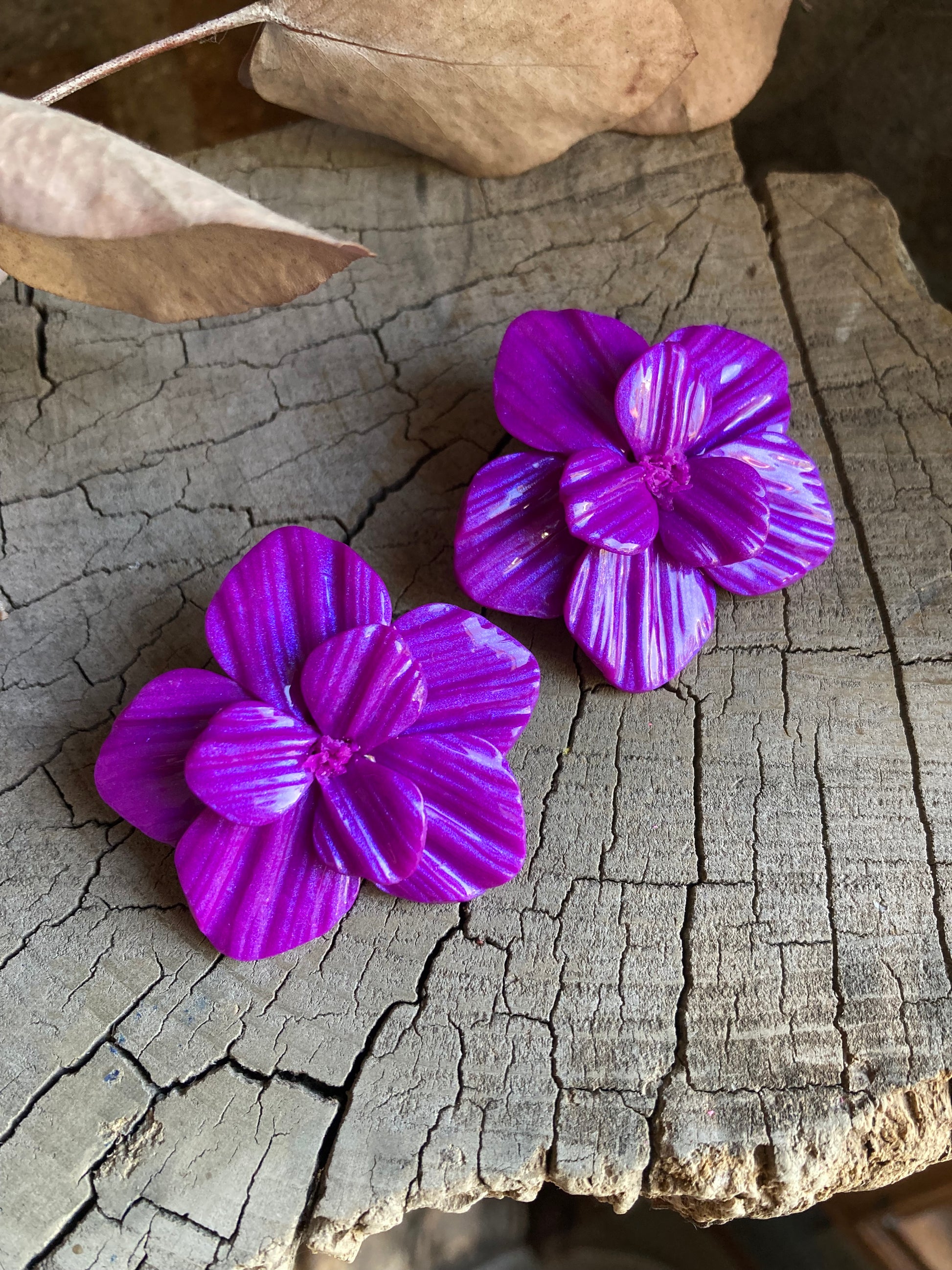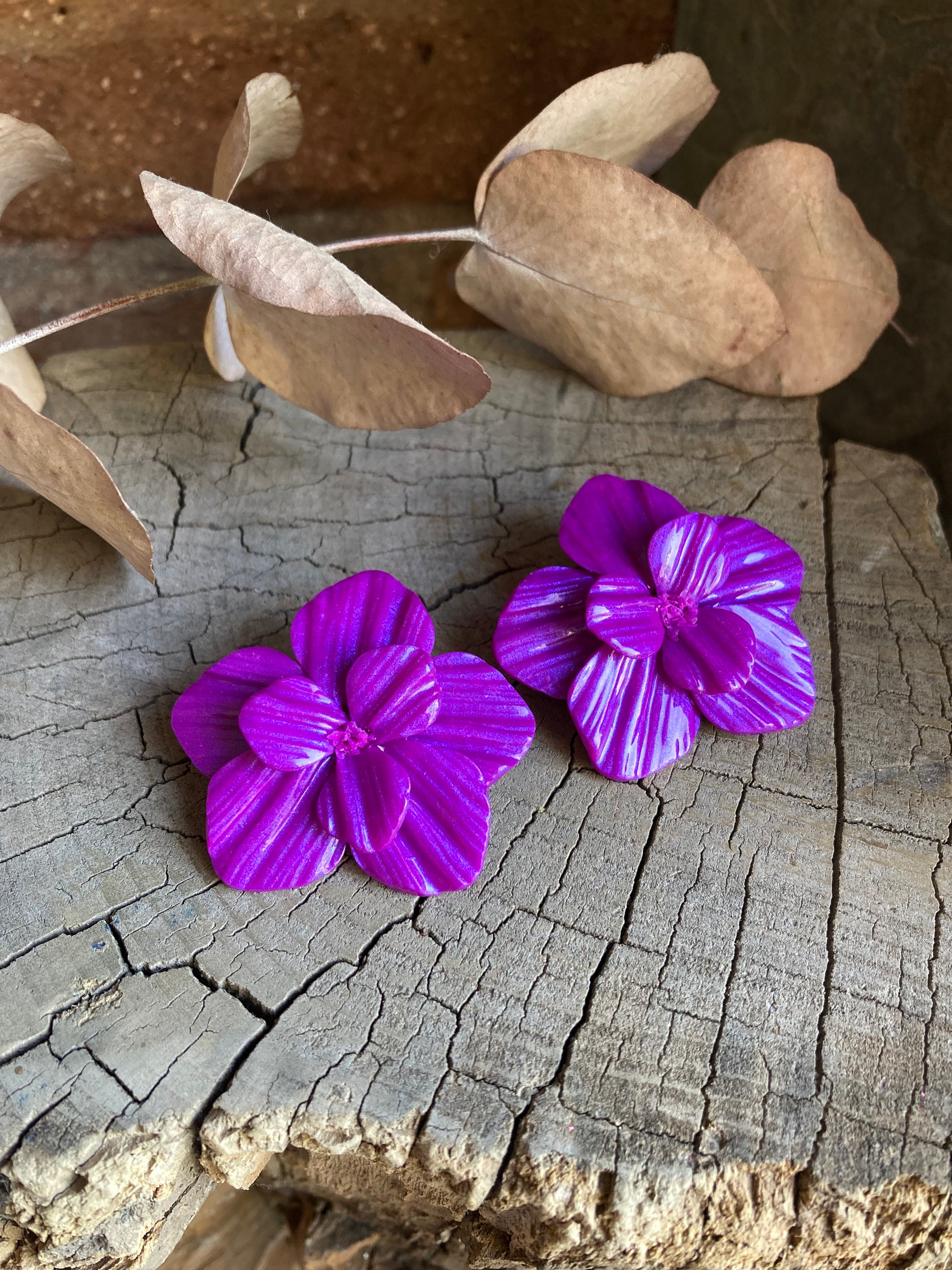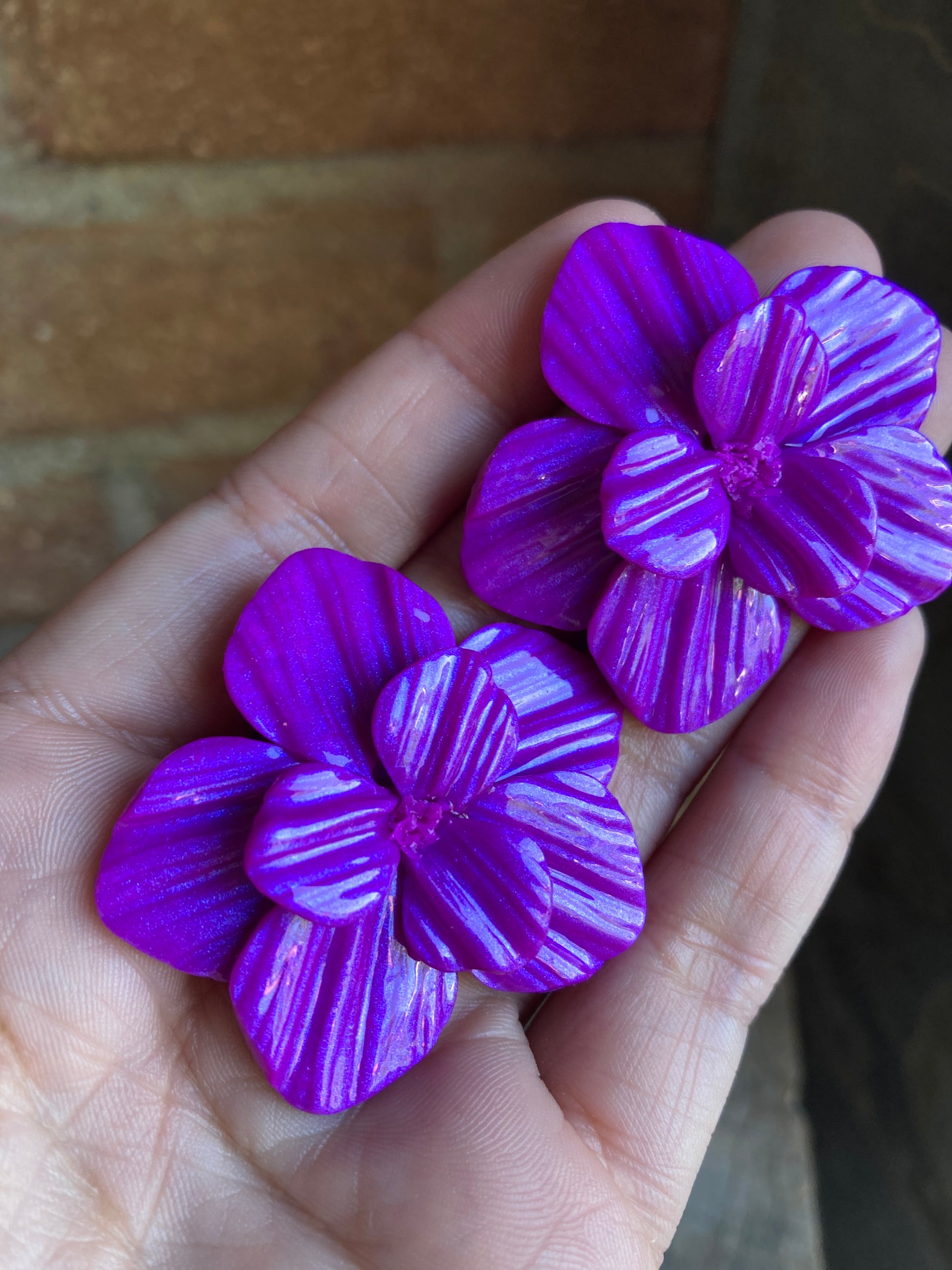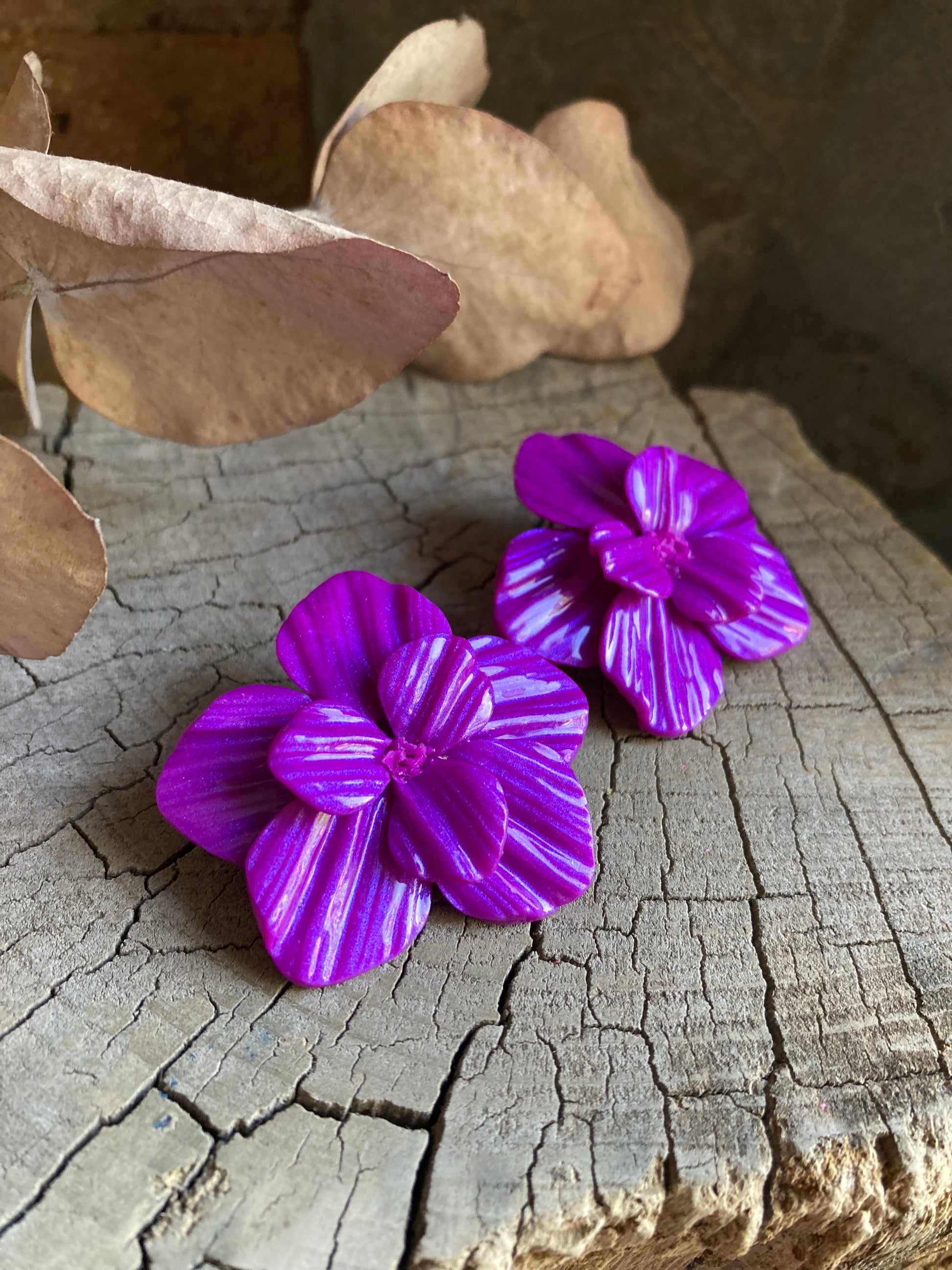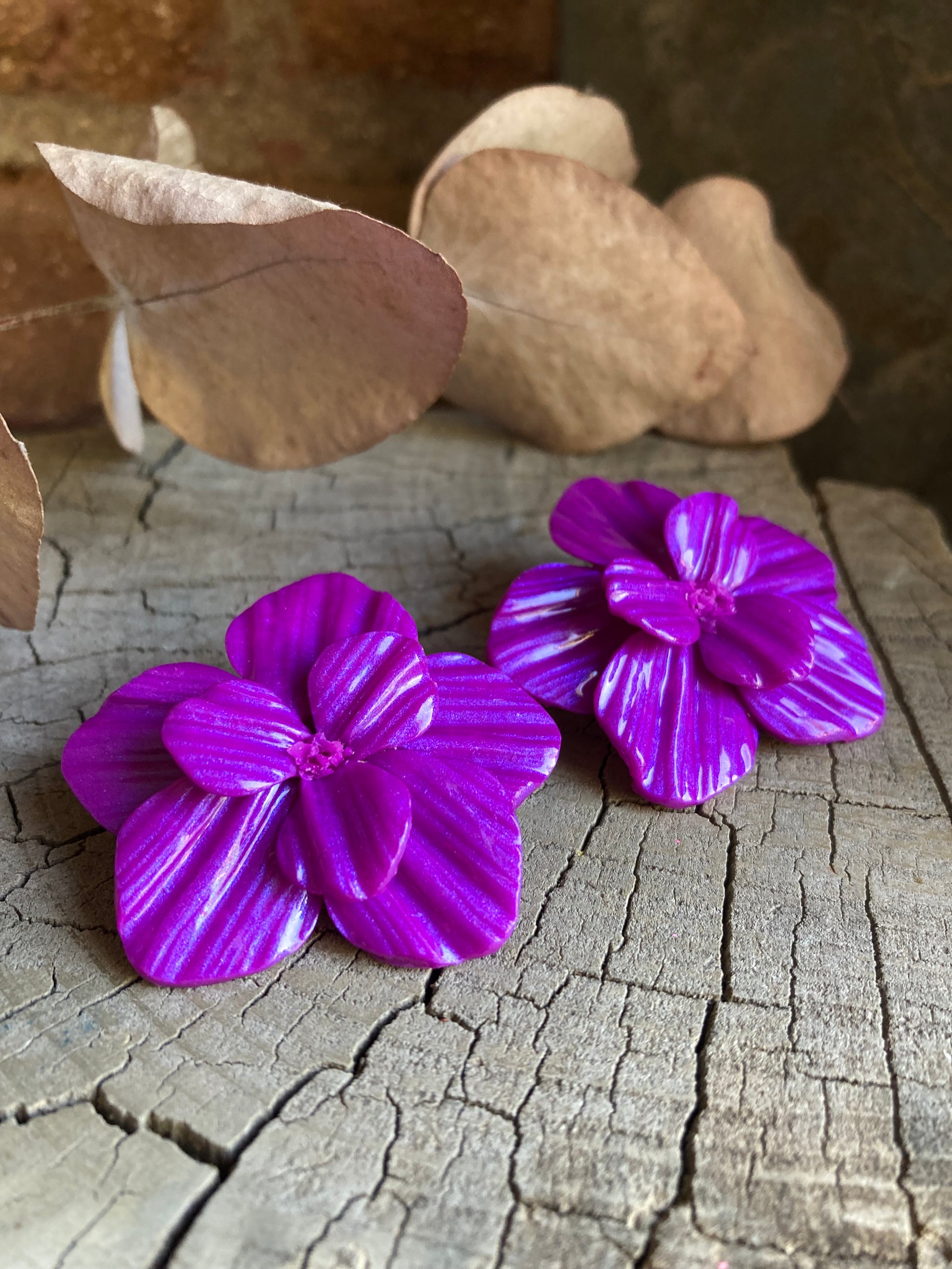 Aros de arcilla polimérica con textura y capa de resina uv. Miden 4,2 cms aproximadamente. Palitos de acero quirúrgico y tope de goma.
