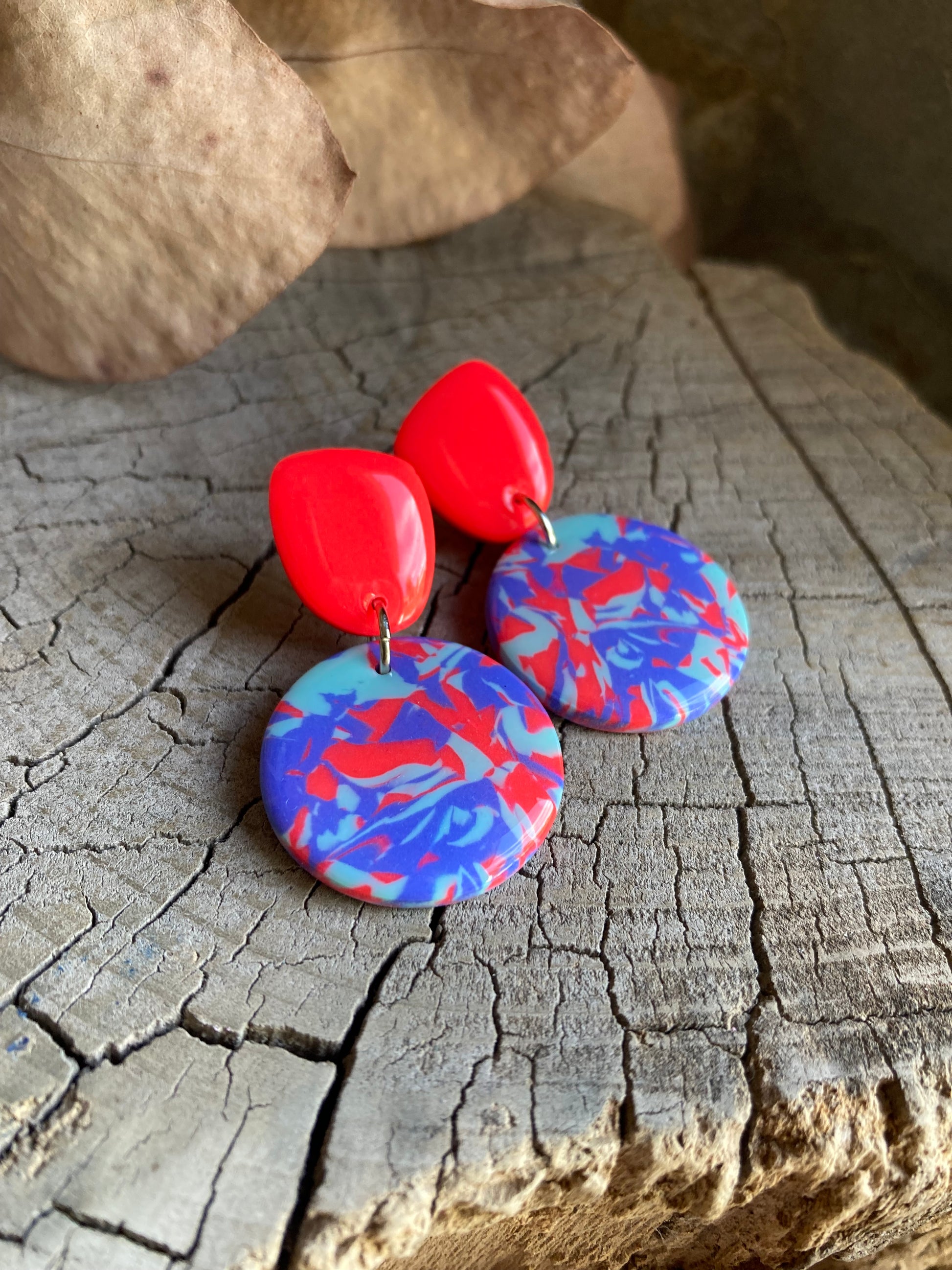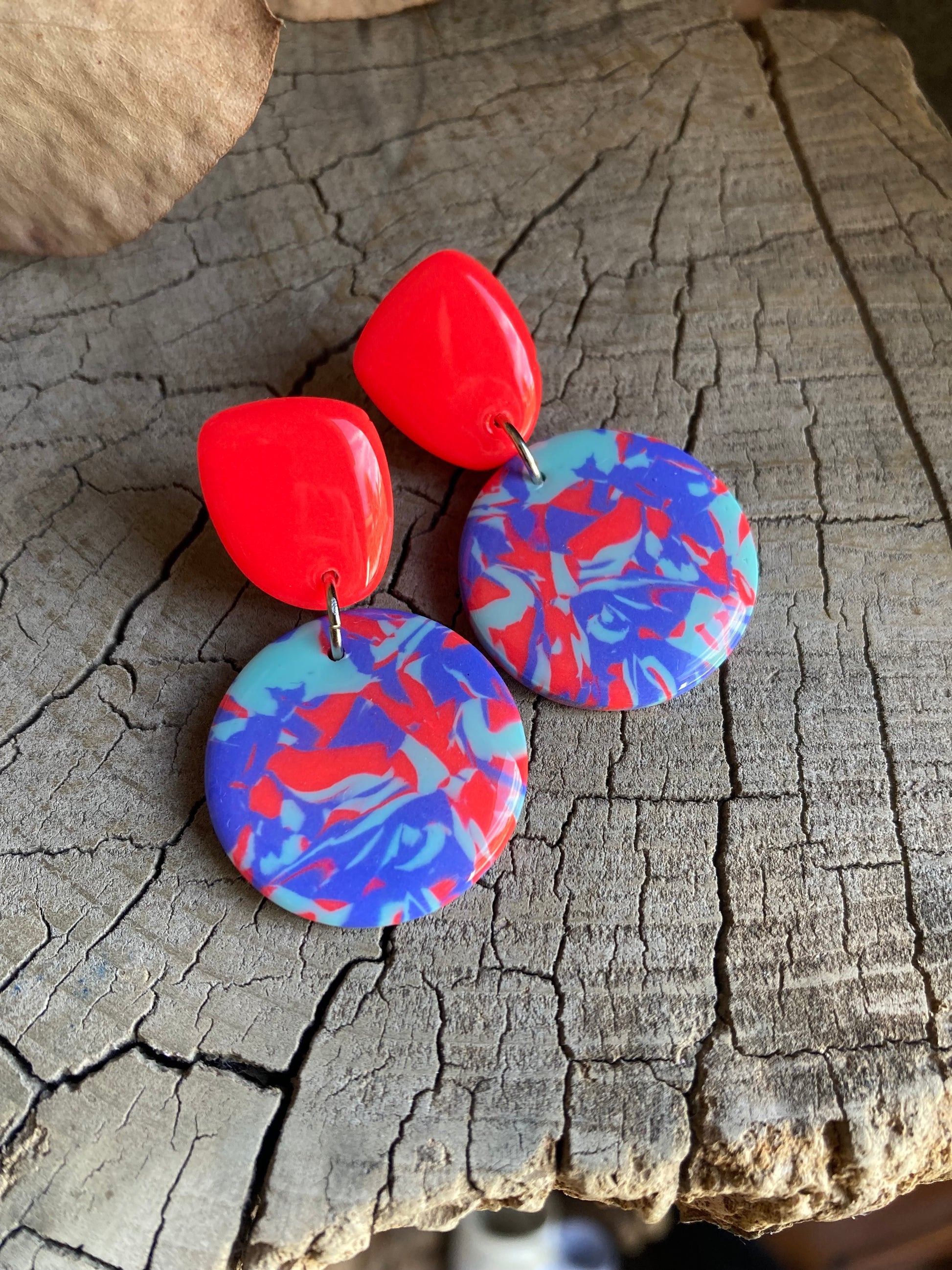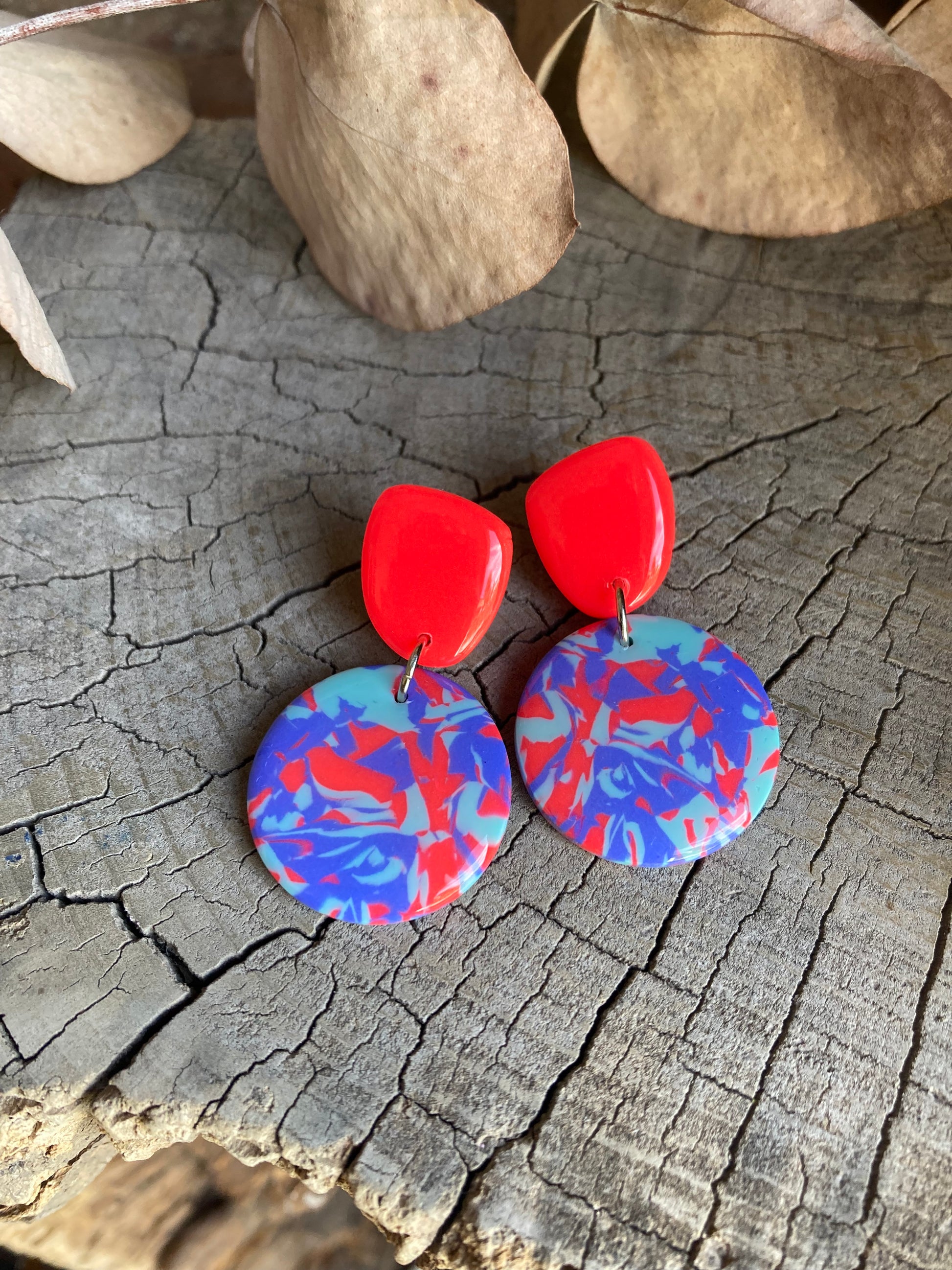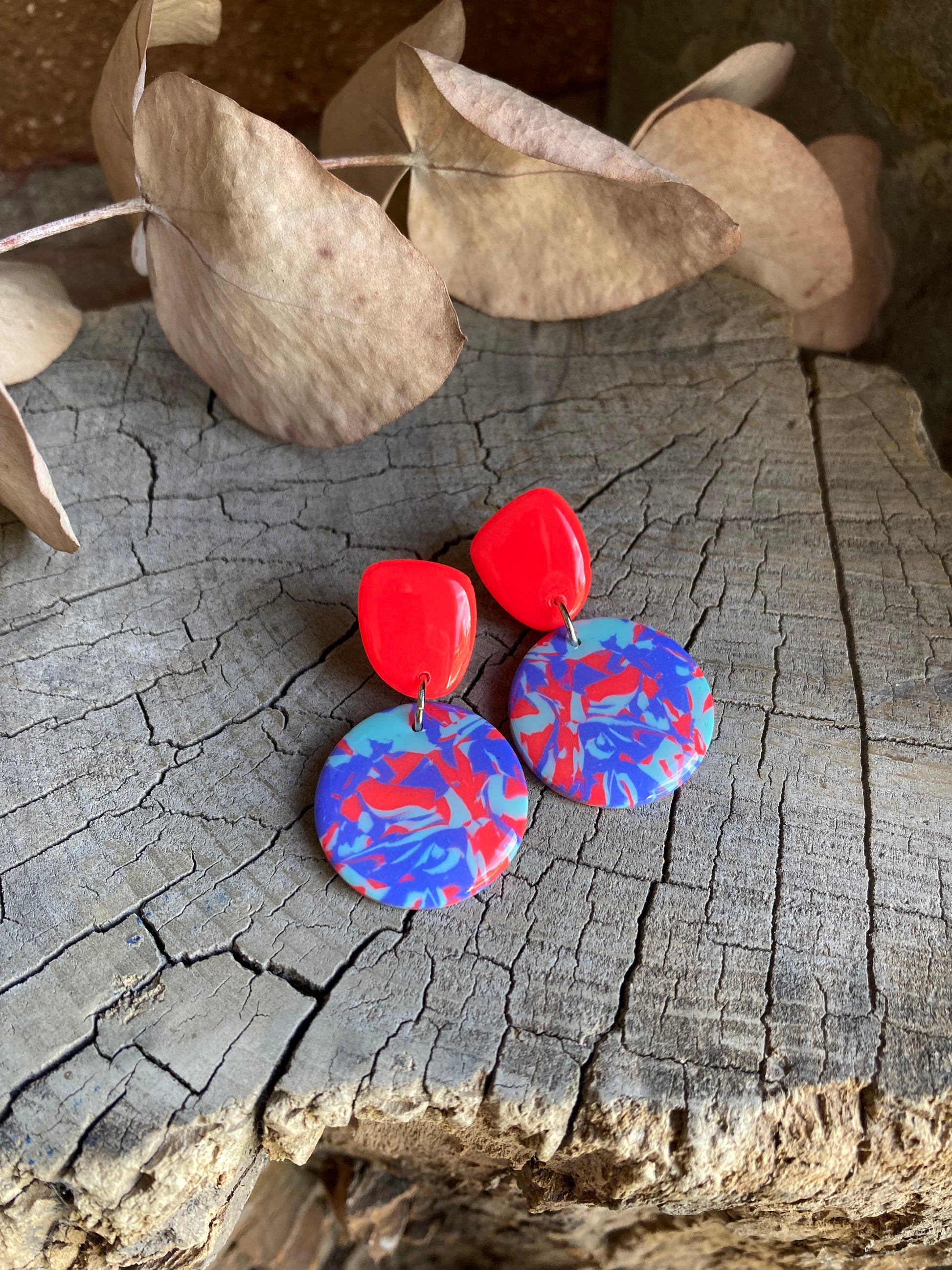 Aros de arcilla polimérica con top coat de resina uv. Miden 4,2 cms. Palito de acero quirúrgico y tope de goma.