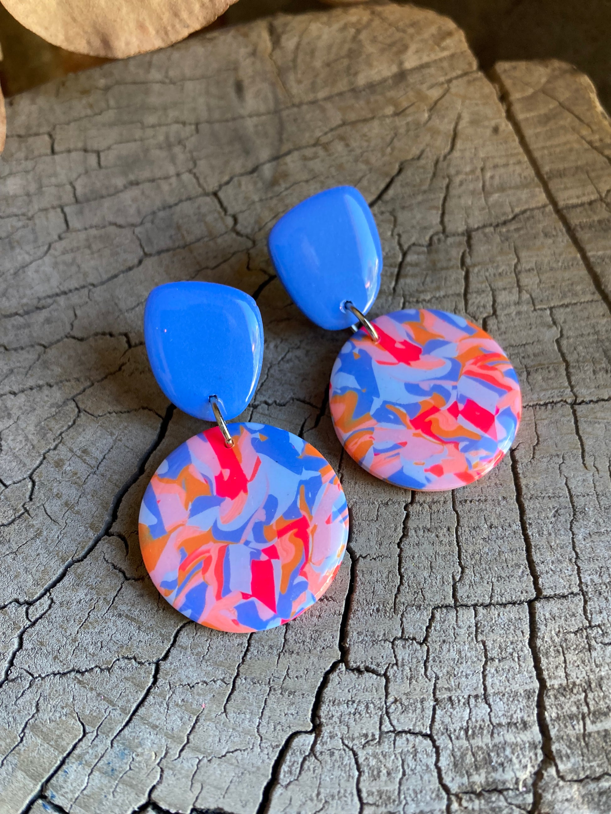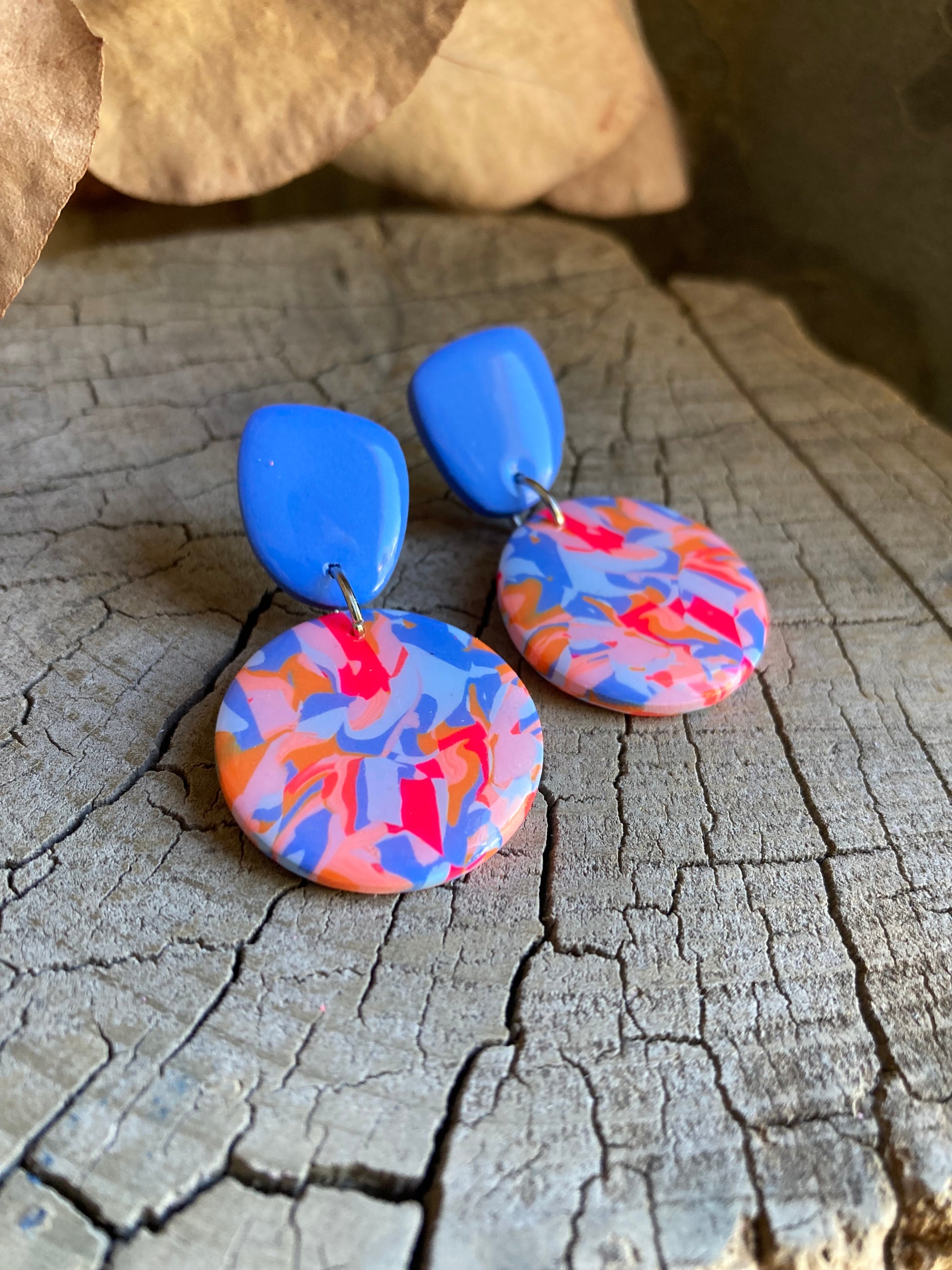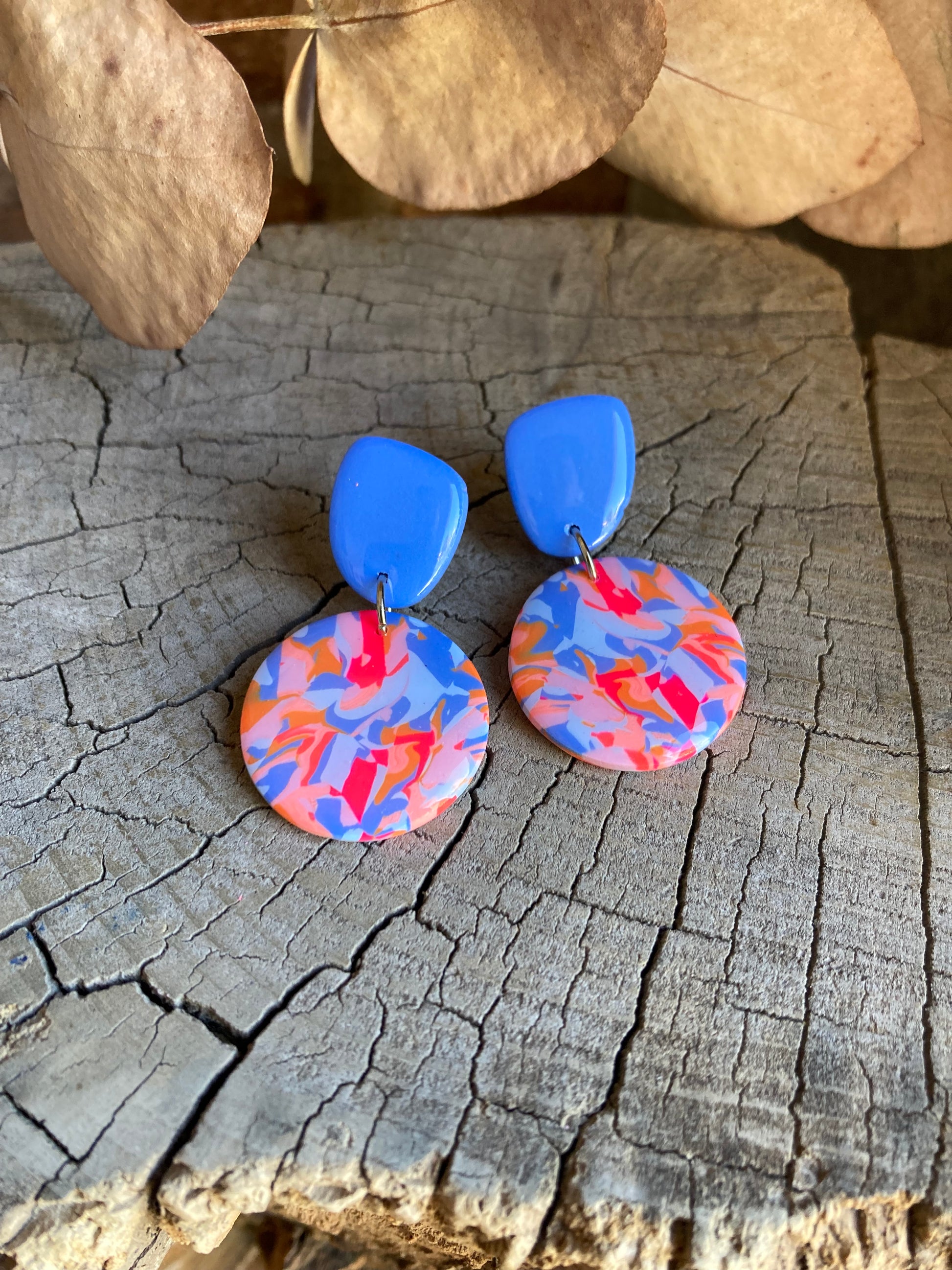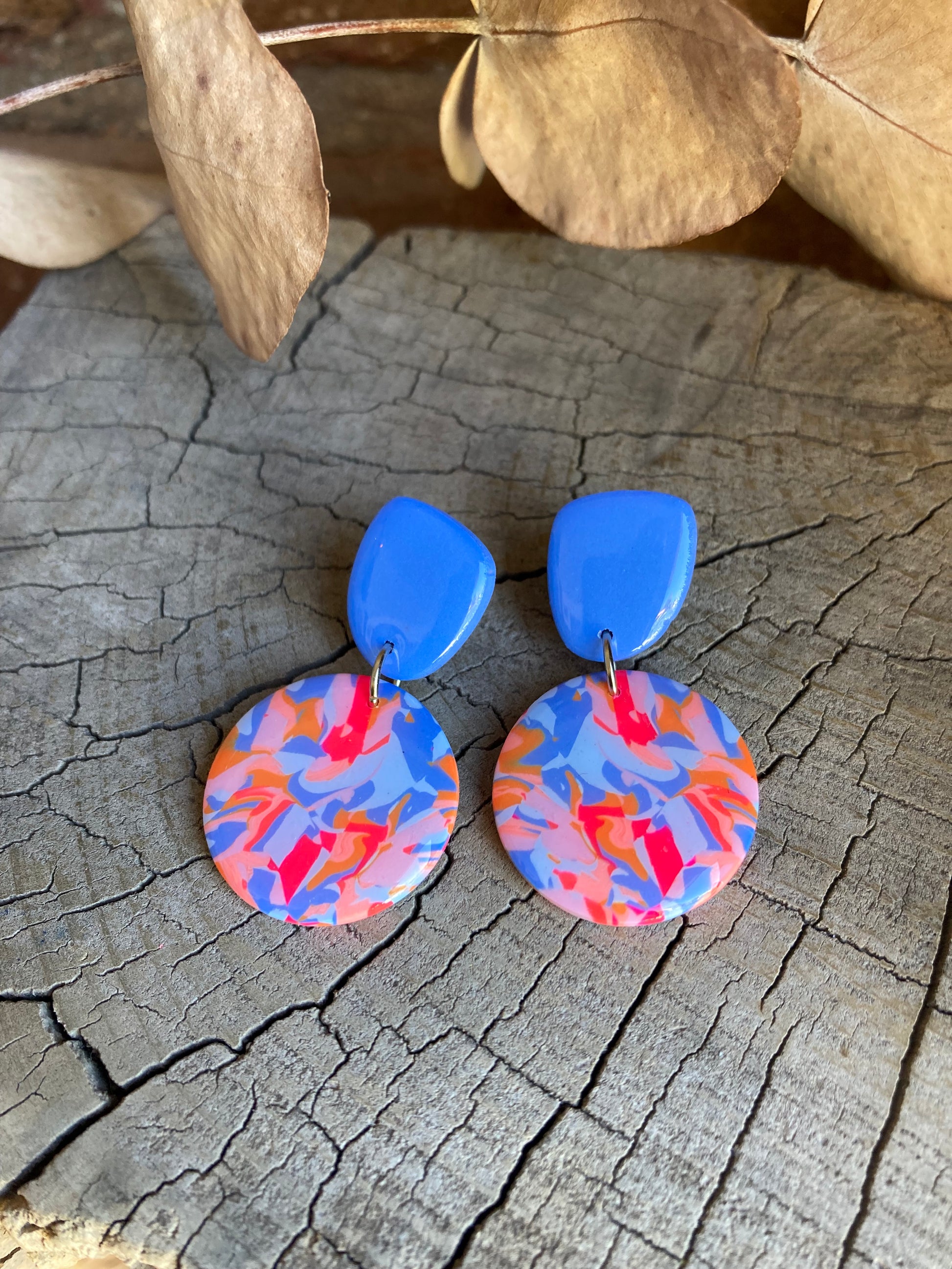 Aros de arcilla polimérica con top coat de resina uv. Miden 4,2 cms. Palito de acero quirúrgico y tope de goma.