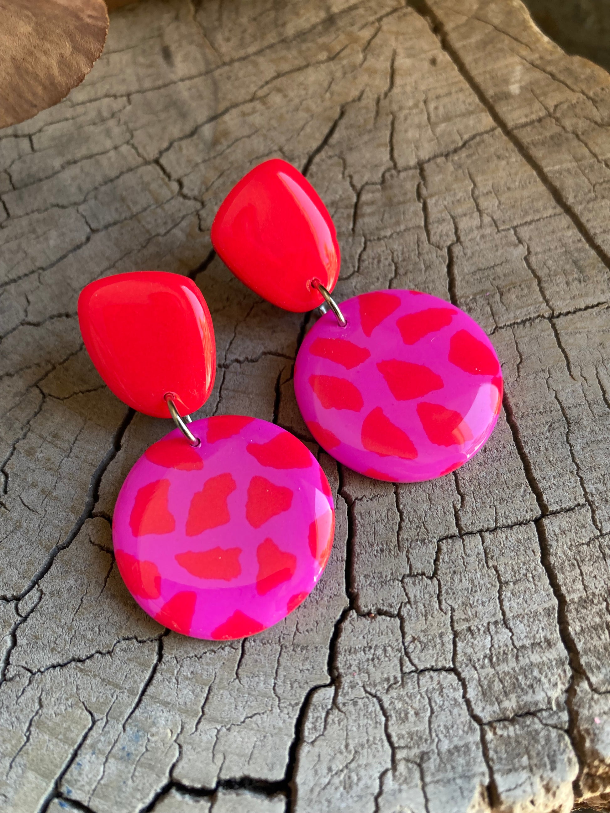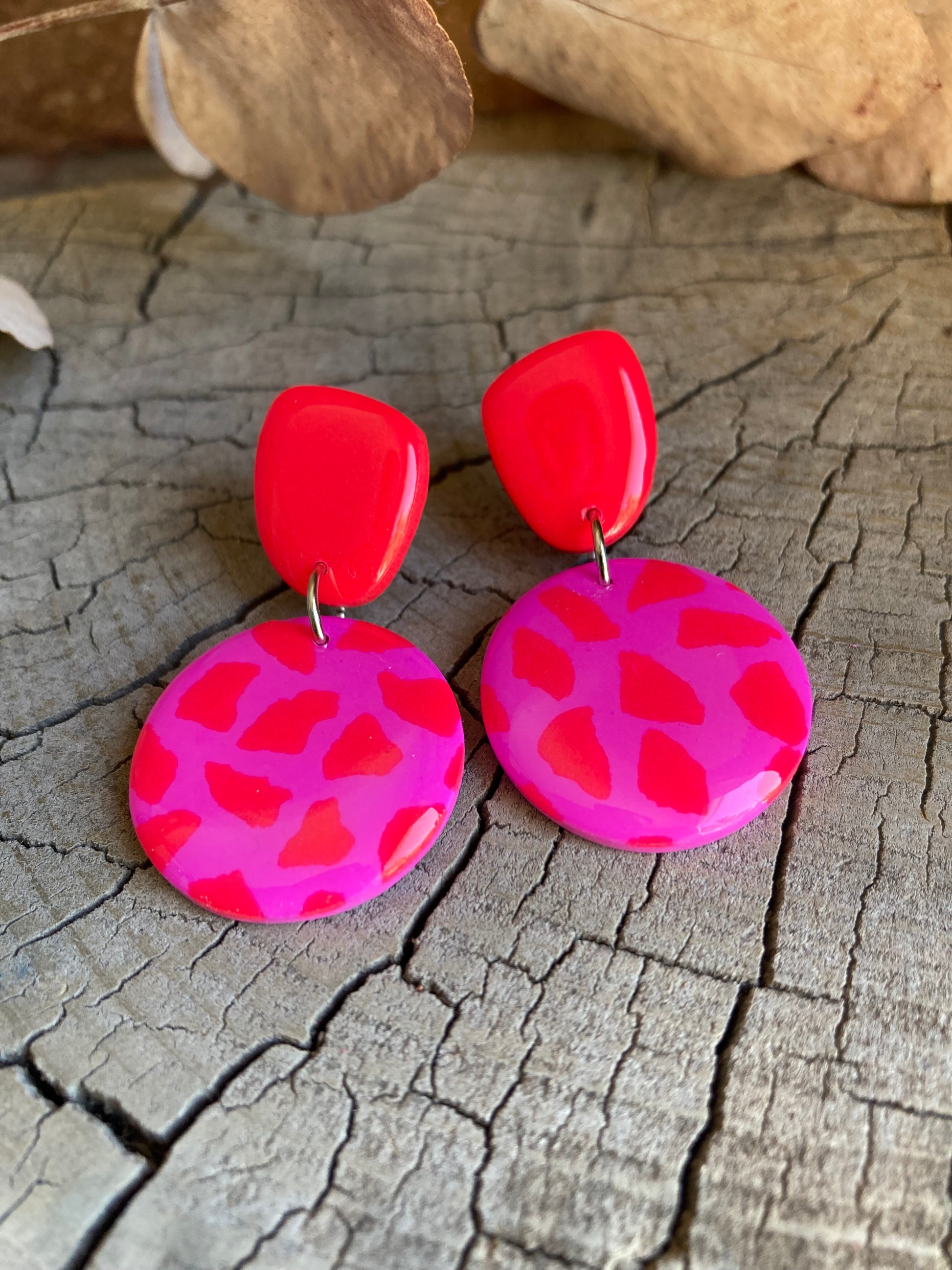 Aros de arcilla polimérica con top coat de resina uv. Miden 4,2 cms. Palito de acero quirúrgico y tope de goma.