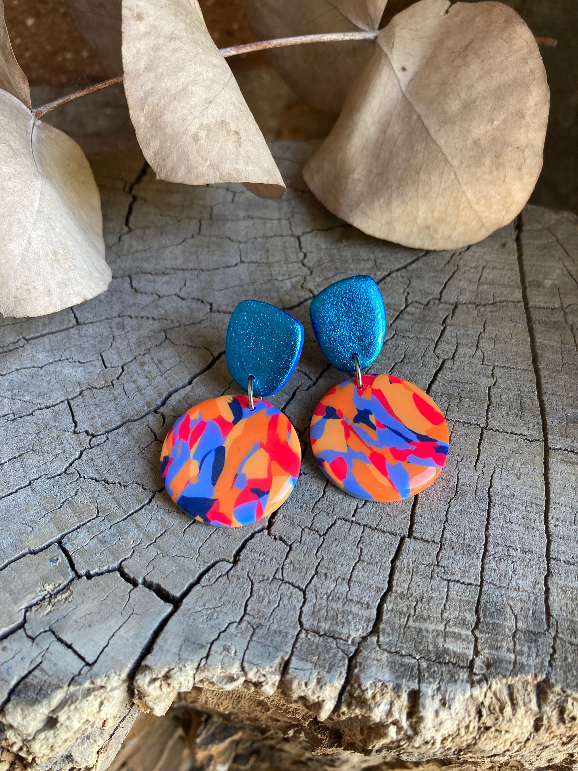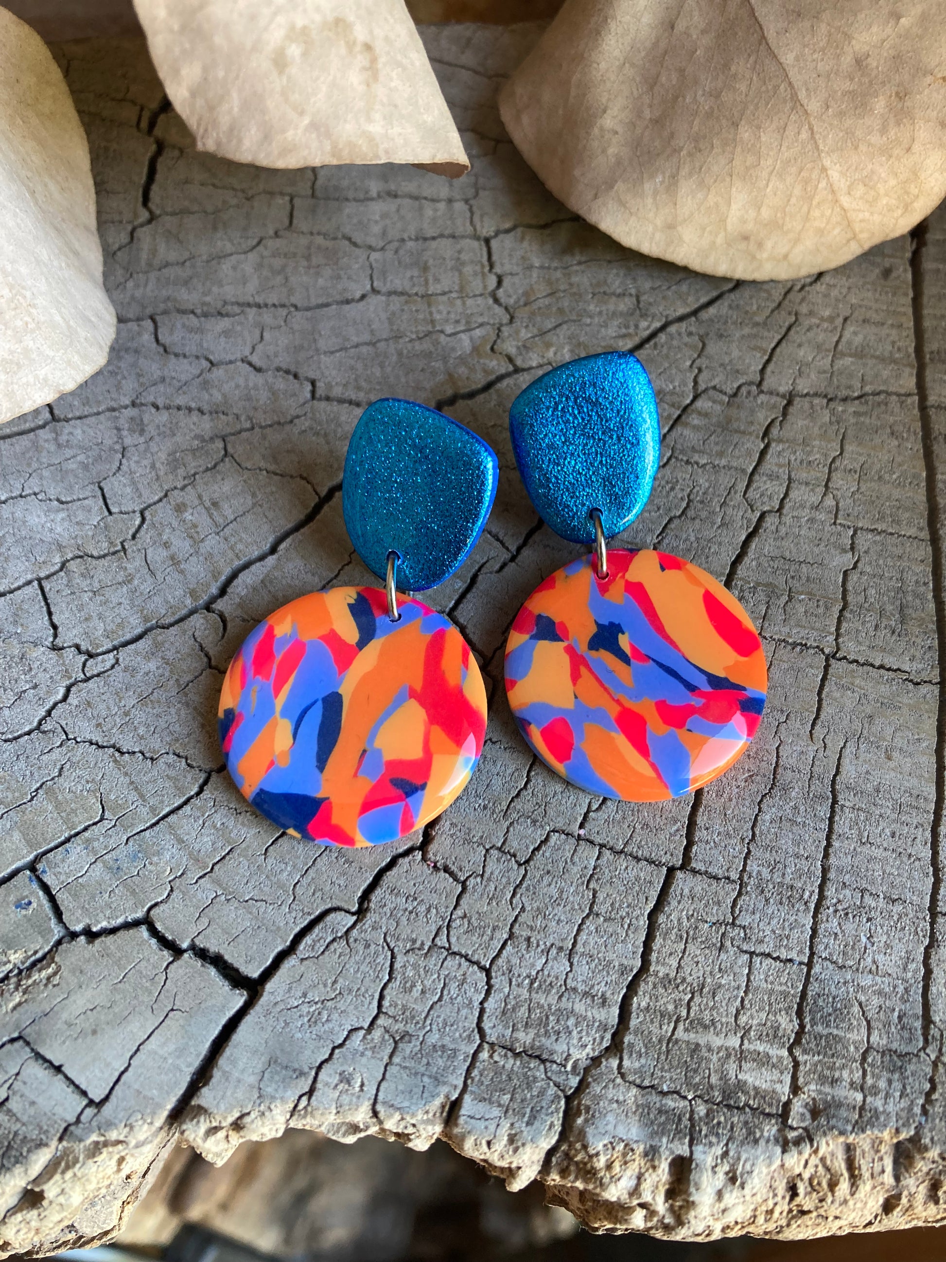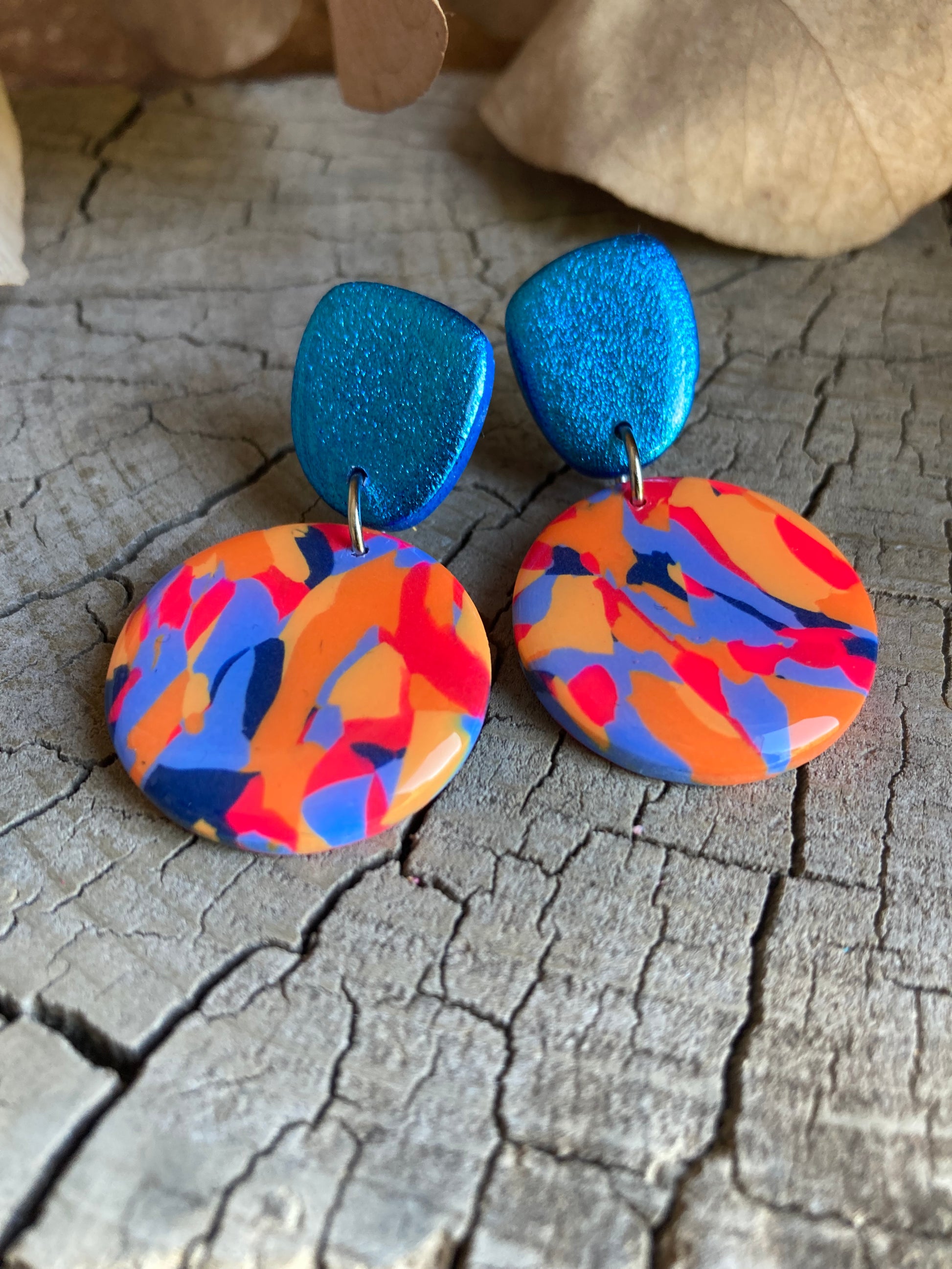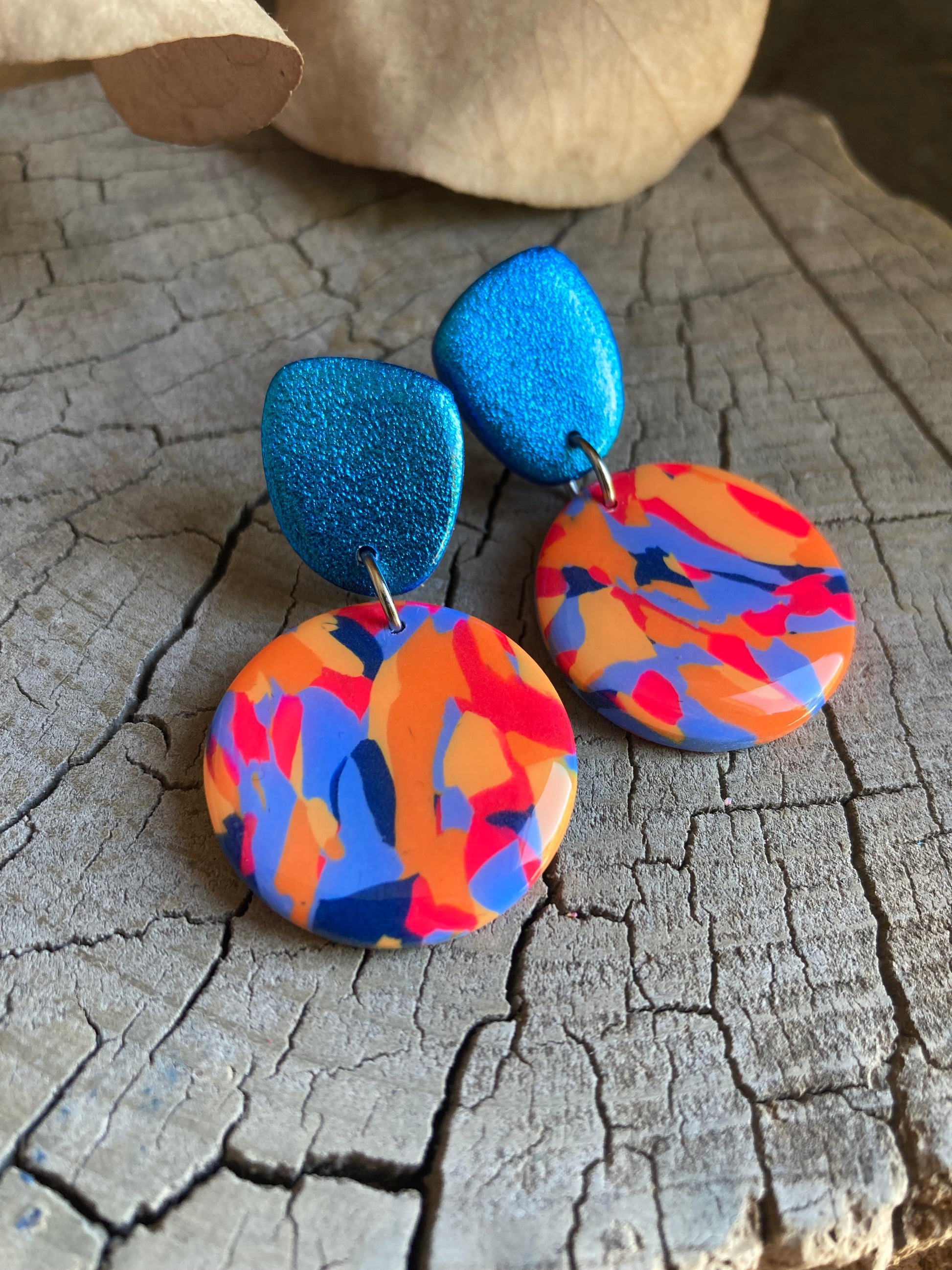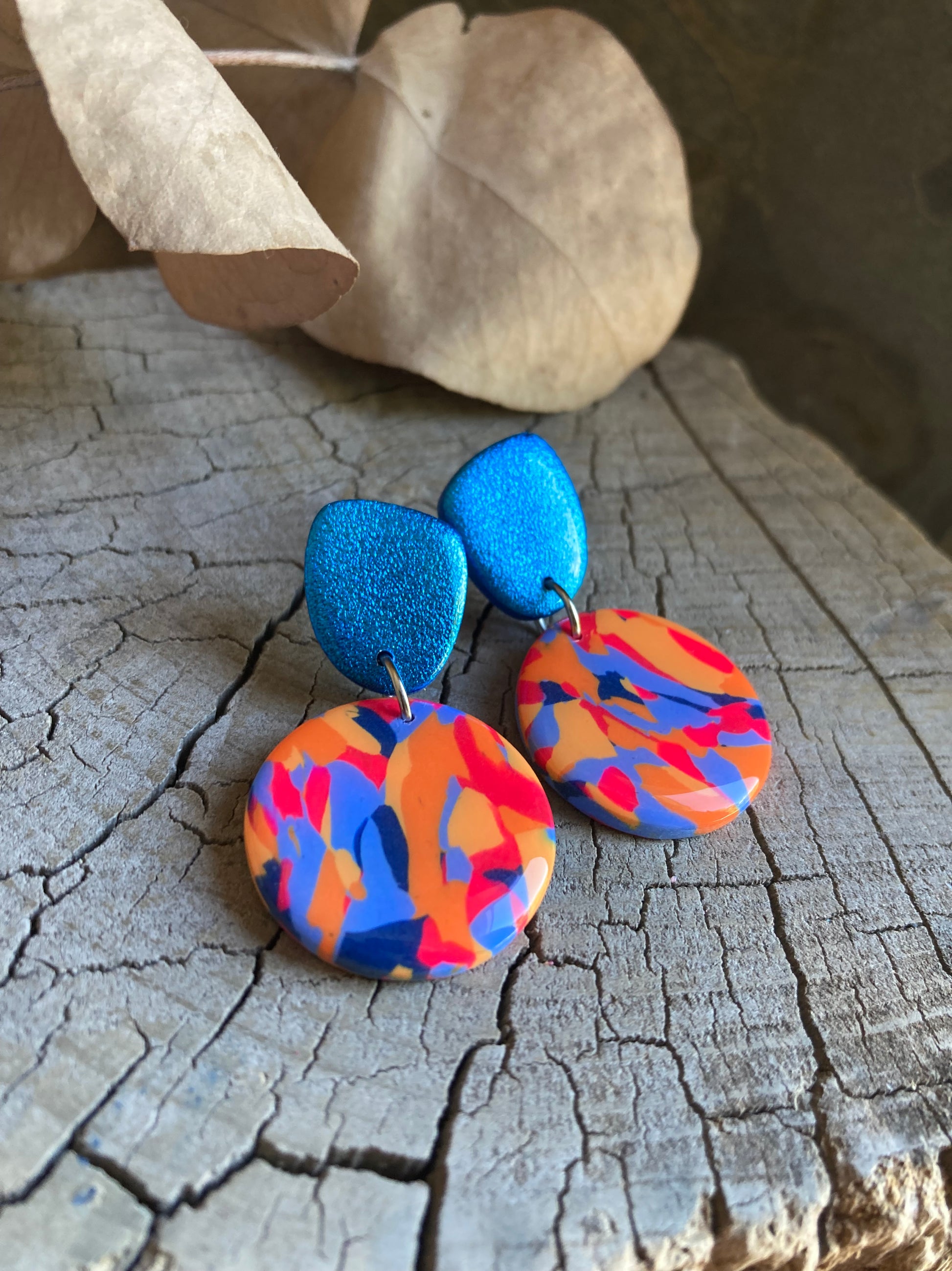 Aros de arcilla polimérica con top coat de resina uv. Miden 4,2 cms. Palito de acero quirúrgico y tope de goma.