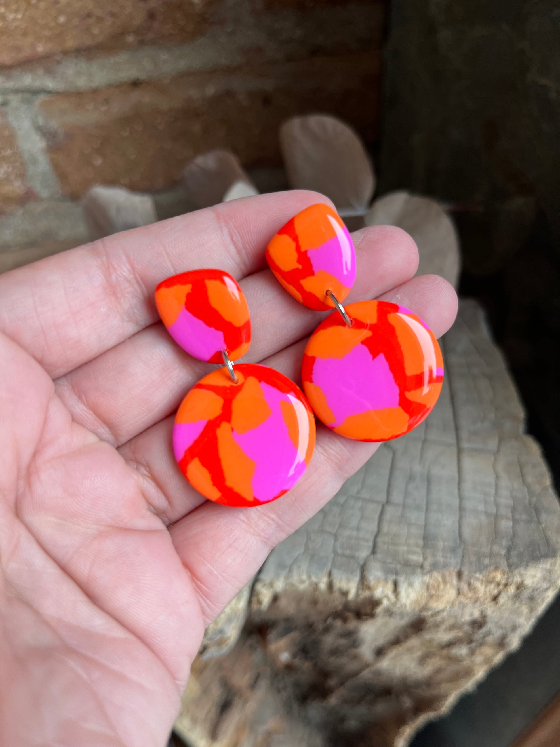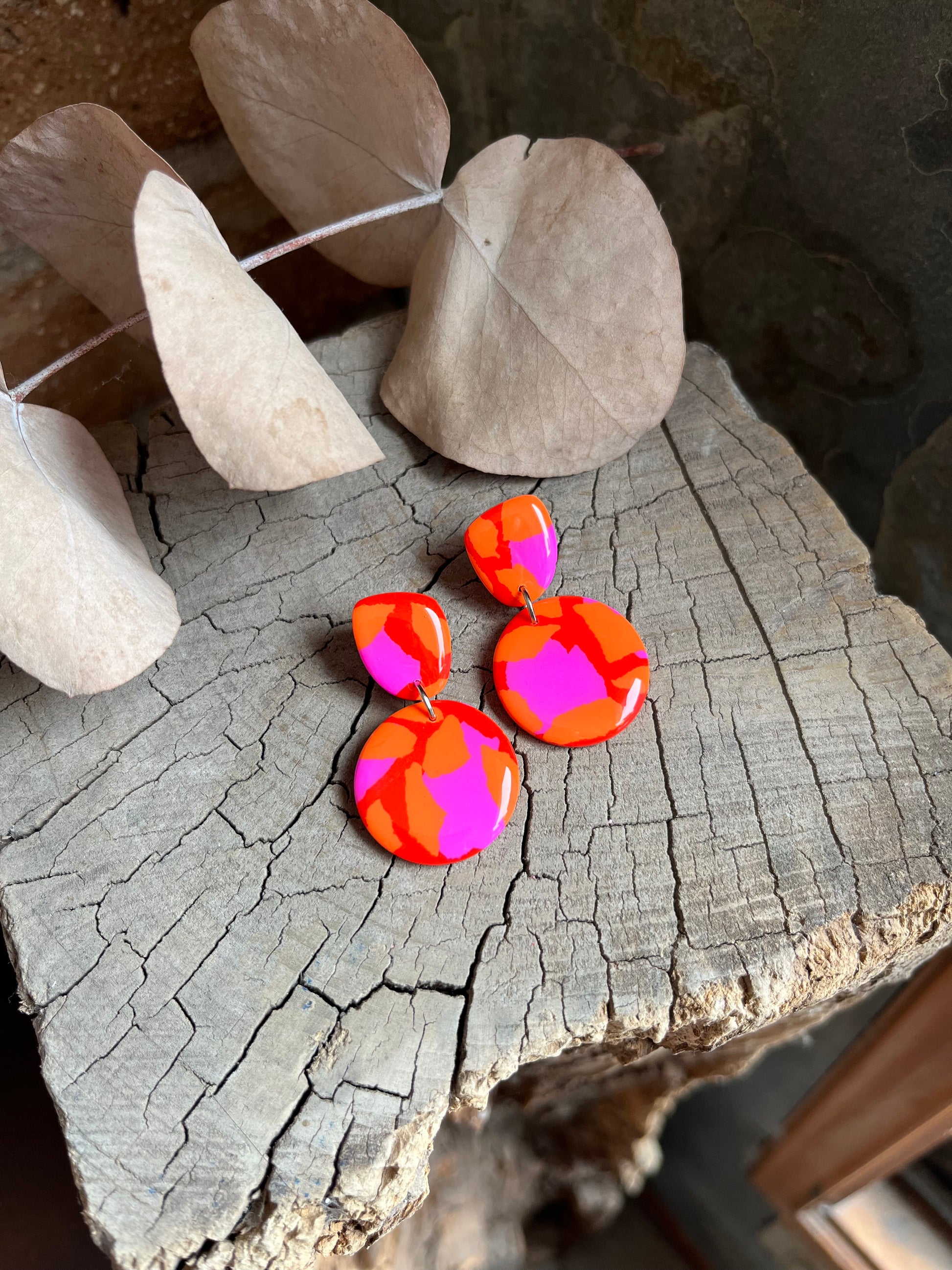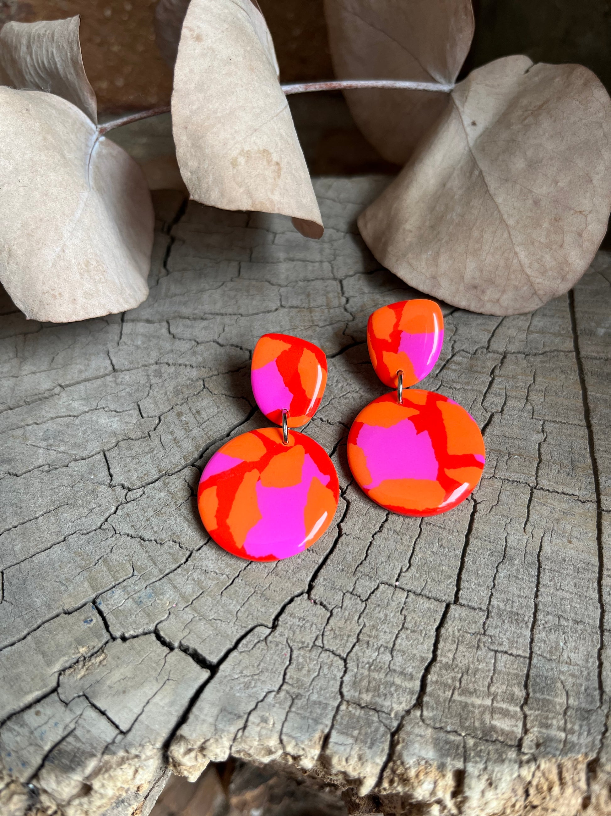 Aros de arcilla polimérica con top coat de resina uv. Miden 4,2 cms. Palito de acero quirúrgico y tope de goma.