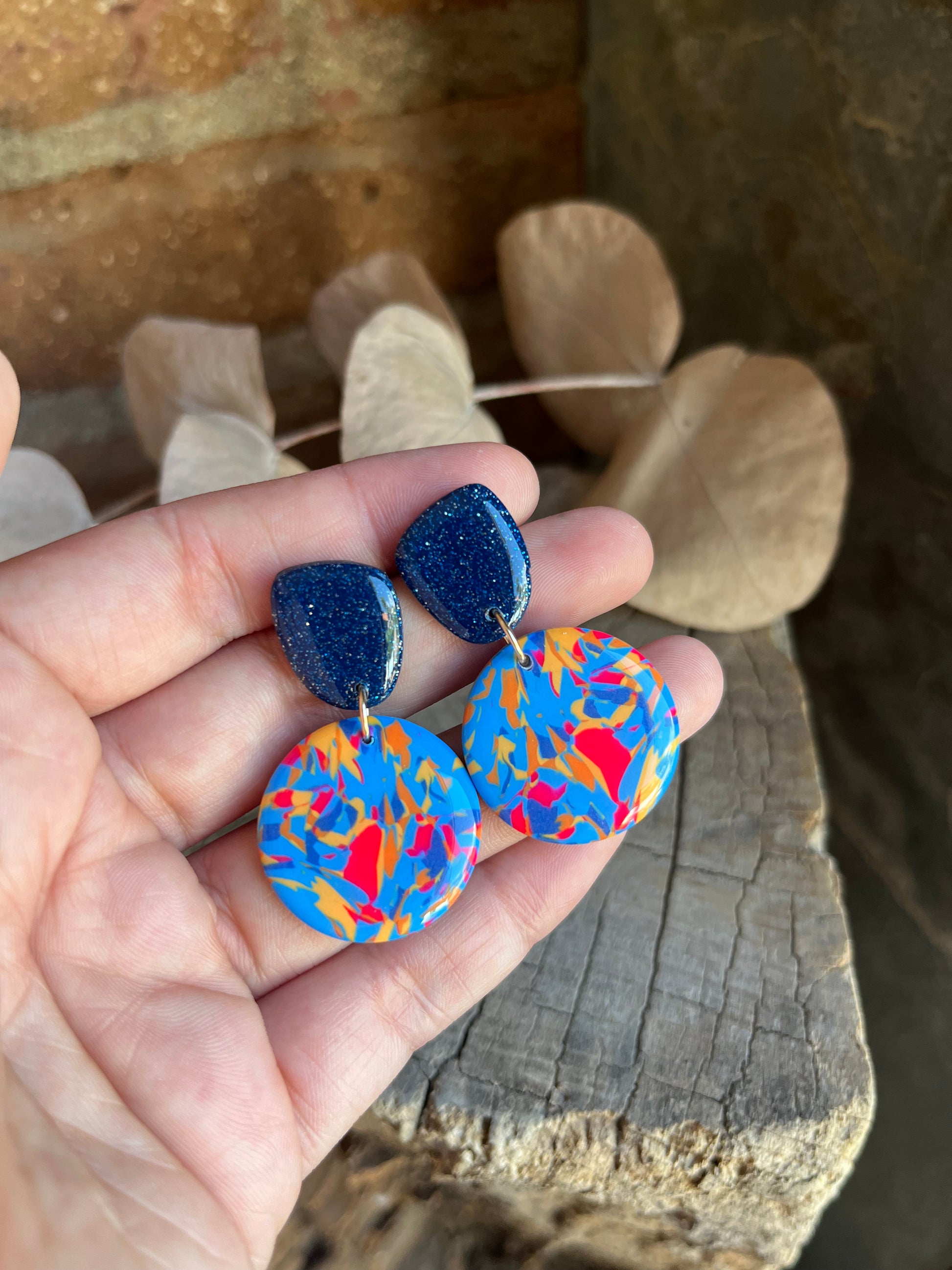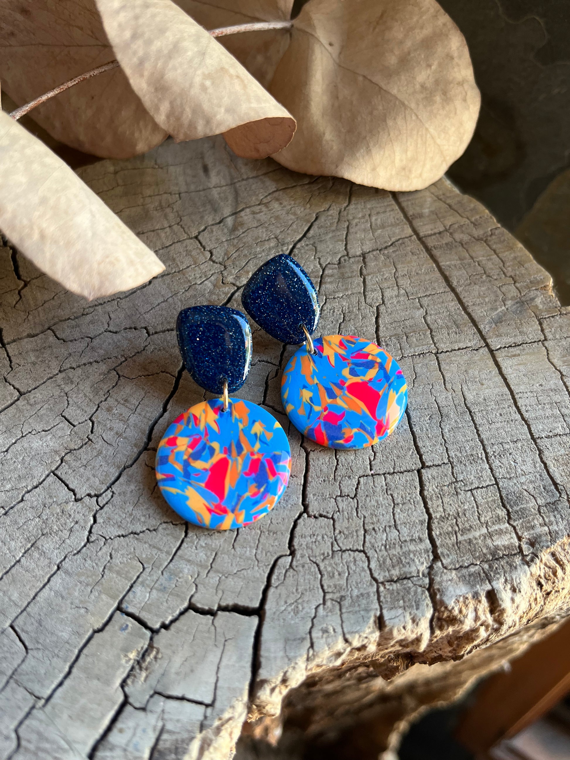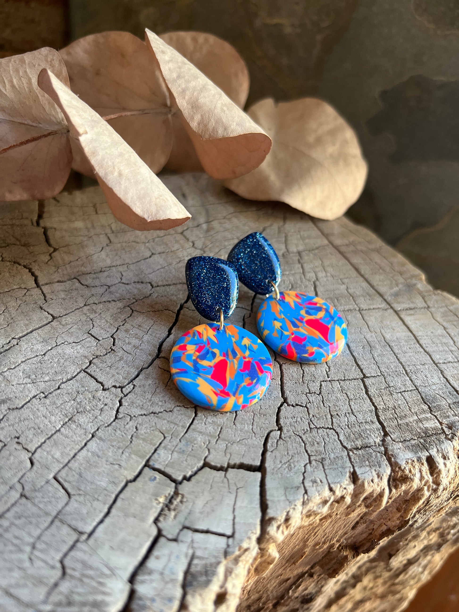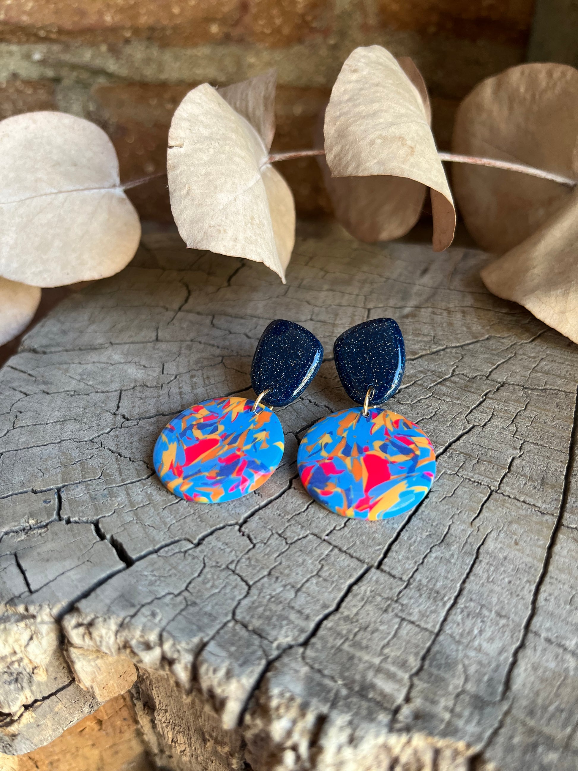 Aros de arcilla polimérica con top coat de resina uv. Miden 4,2 cms. Palito de acero quirúrgico y tope de goma.