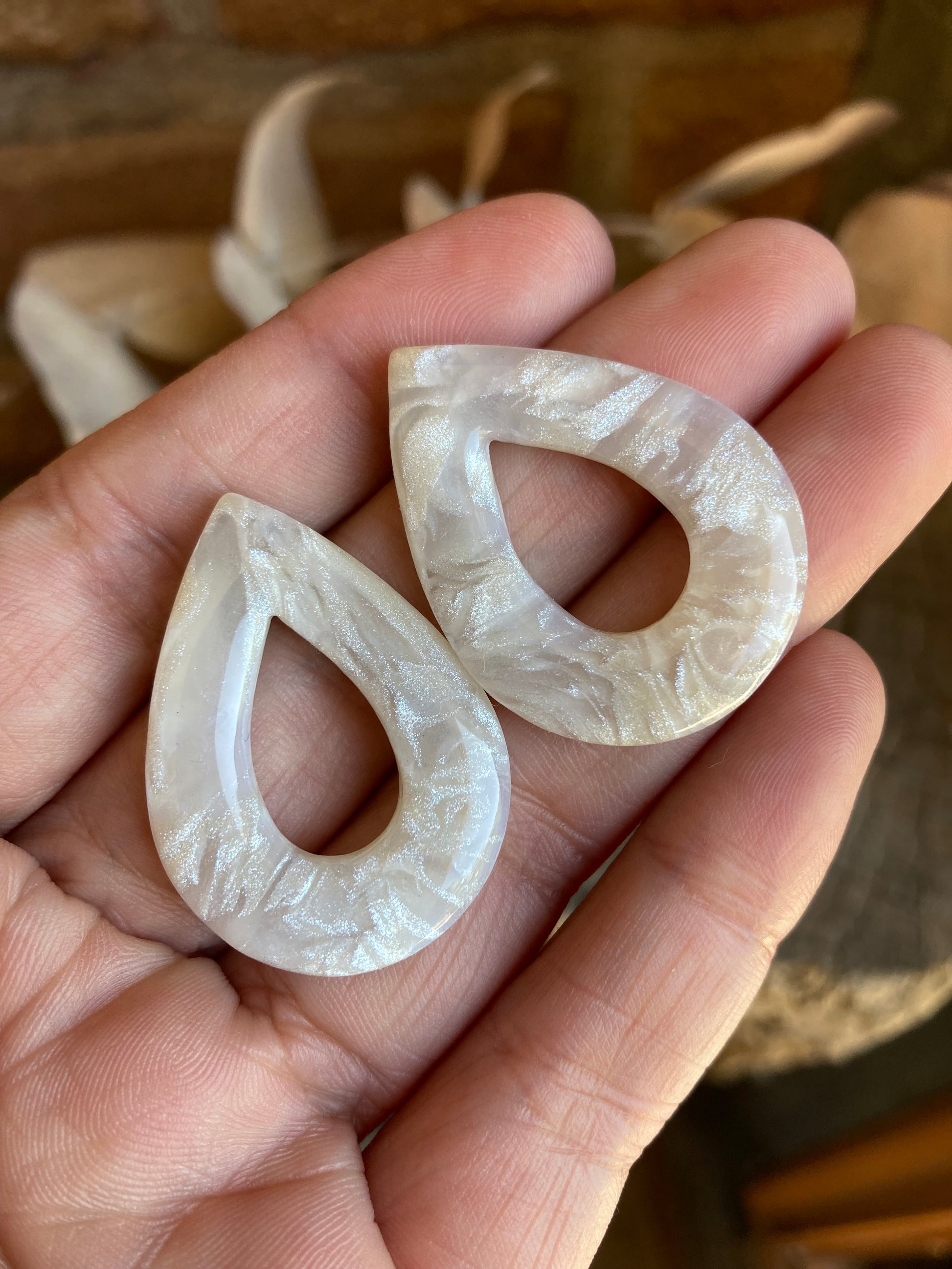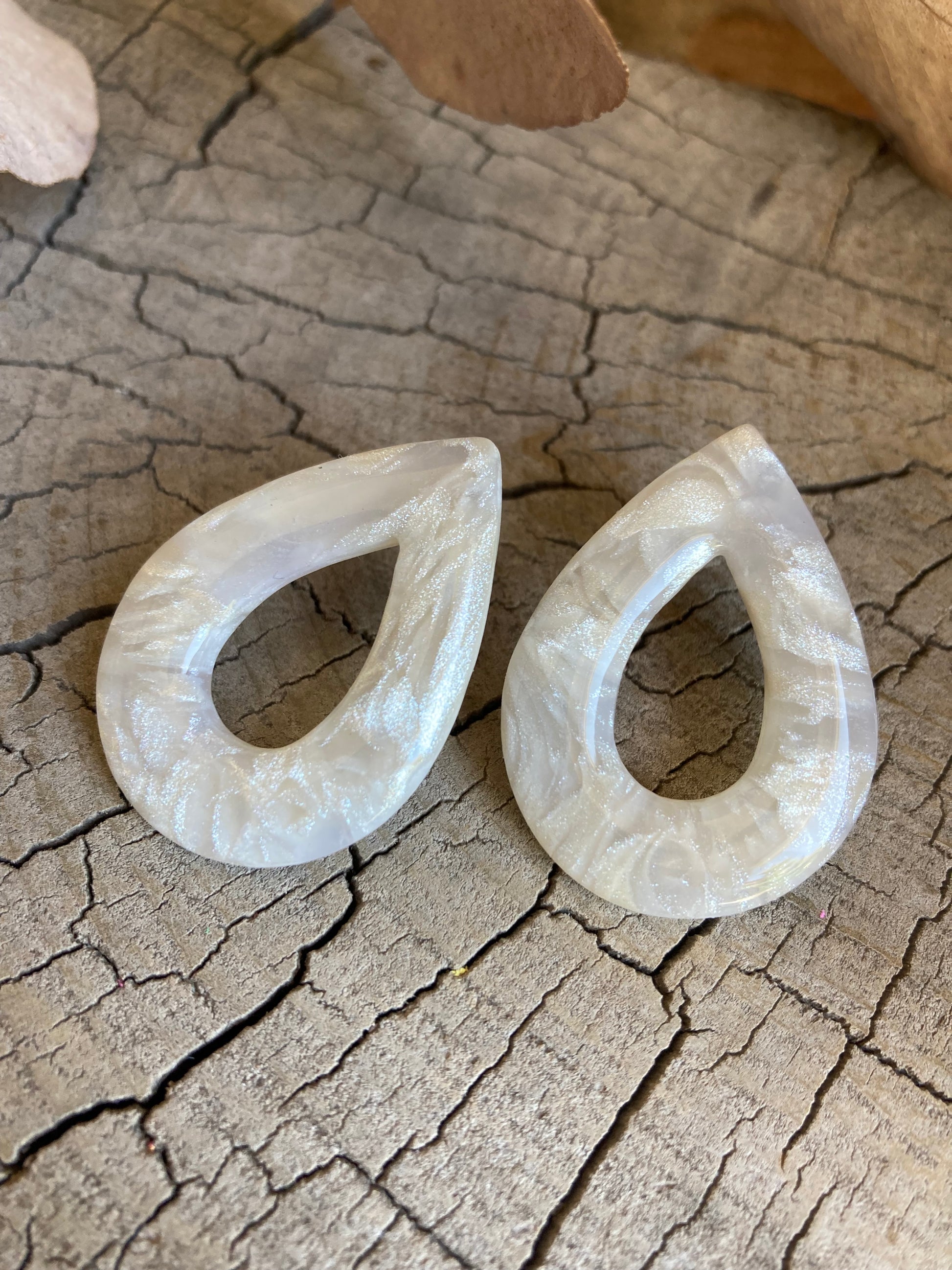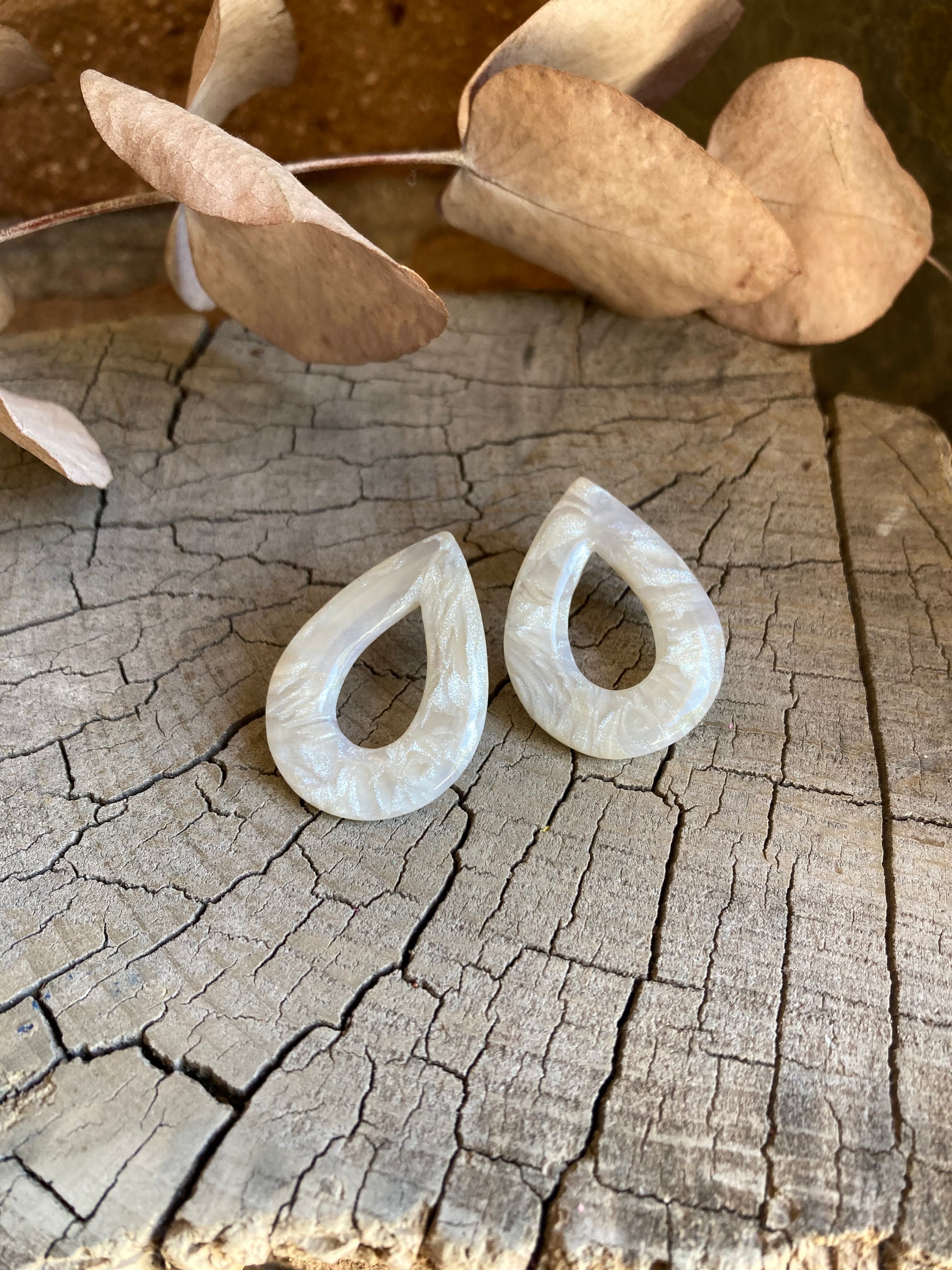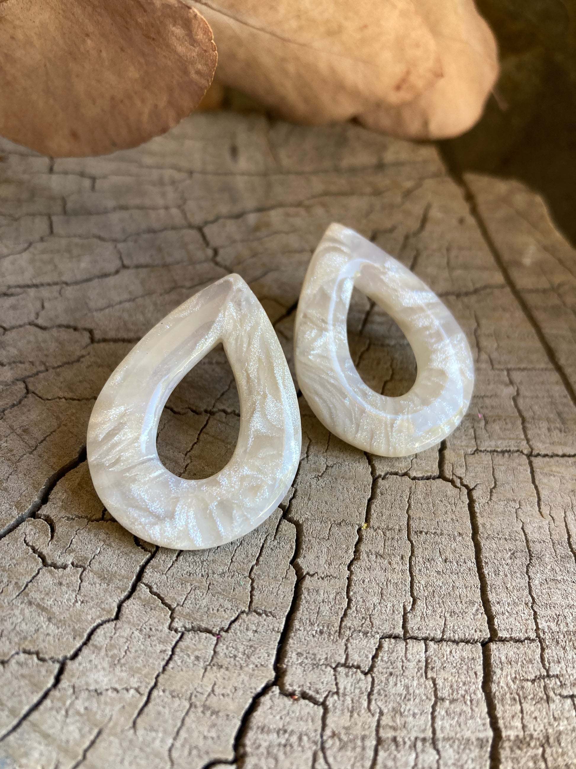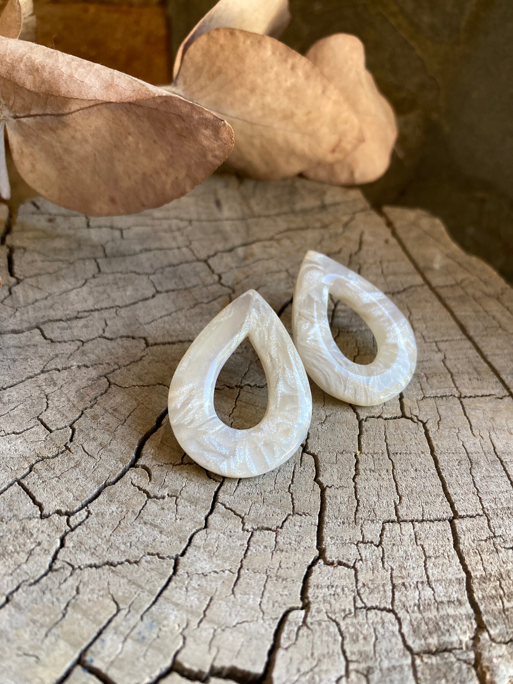 Aros de arcilla polimérica con top coat de resina uv. Miden 3,5 cms. Palito de acero quirúrgico y tope de goma.