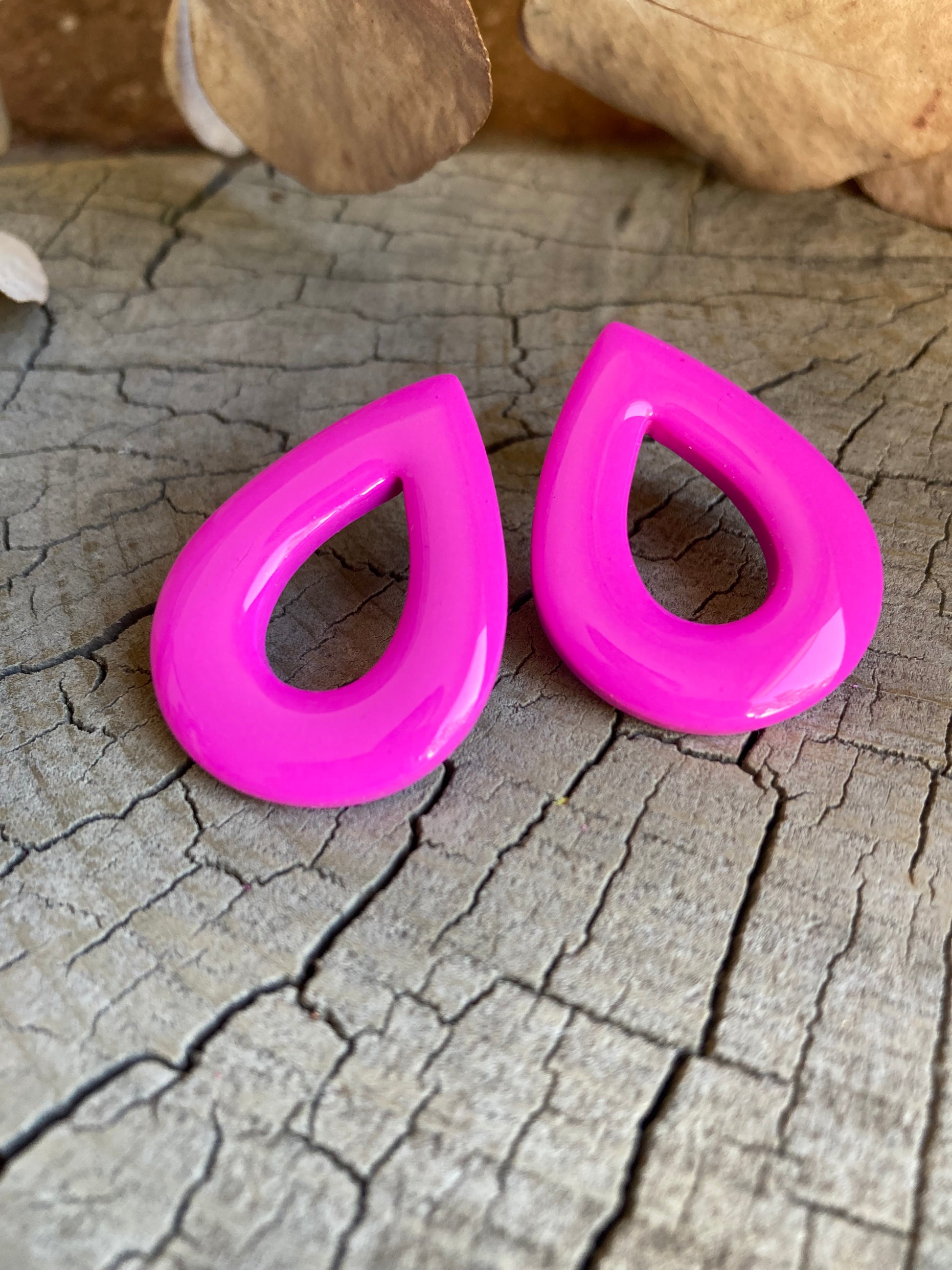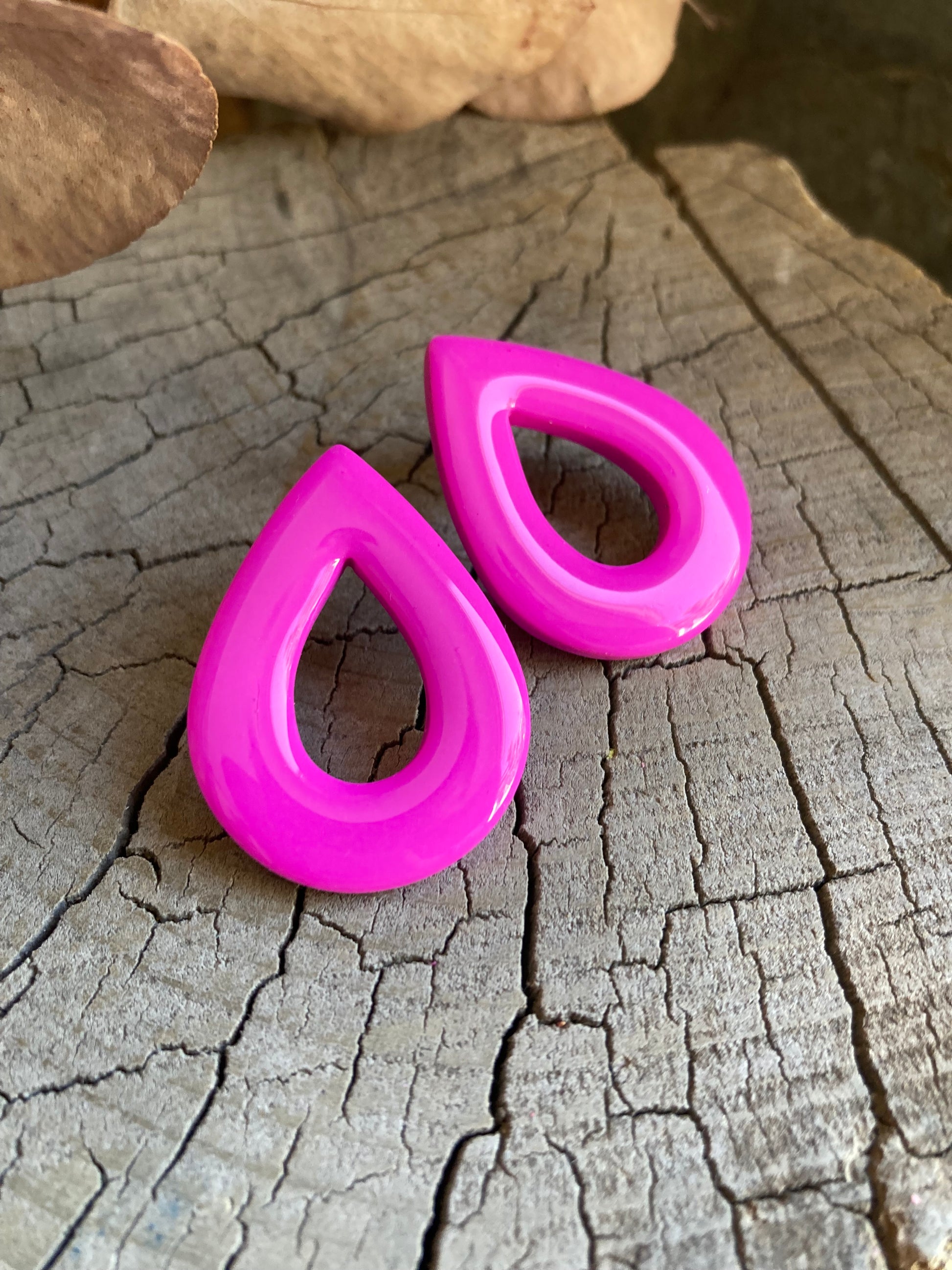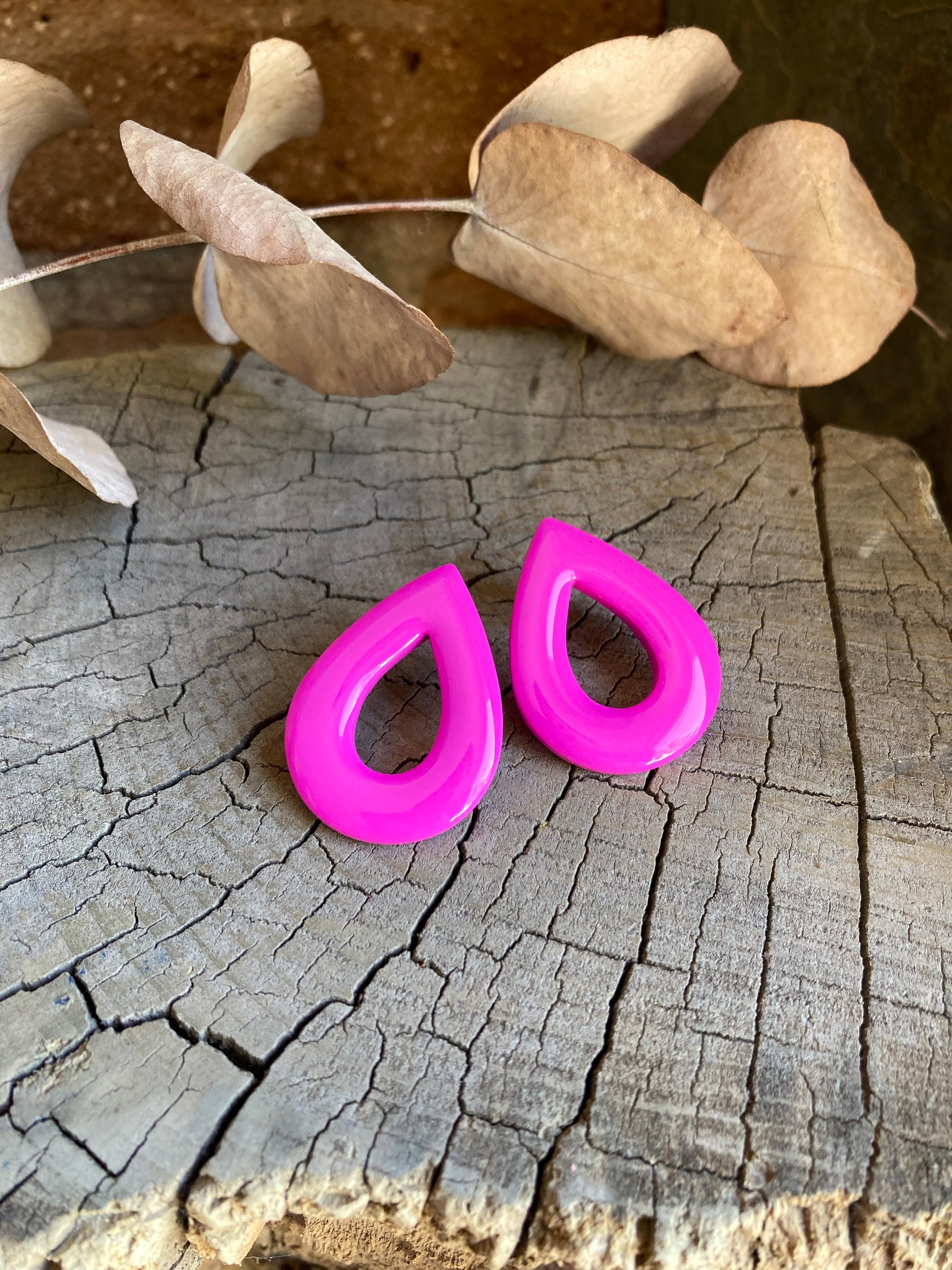 Aros de arcilla polimérica con top coat de resina uv. Miden 3,5 cms. Palito de acero quirúrgico y tope de goma.
