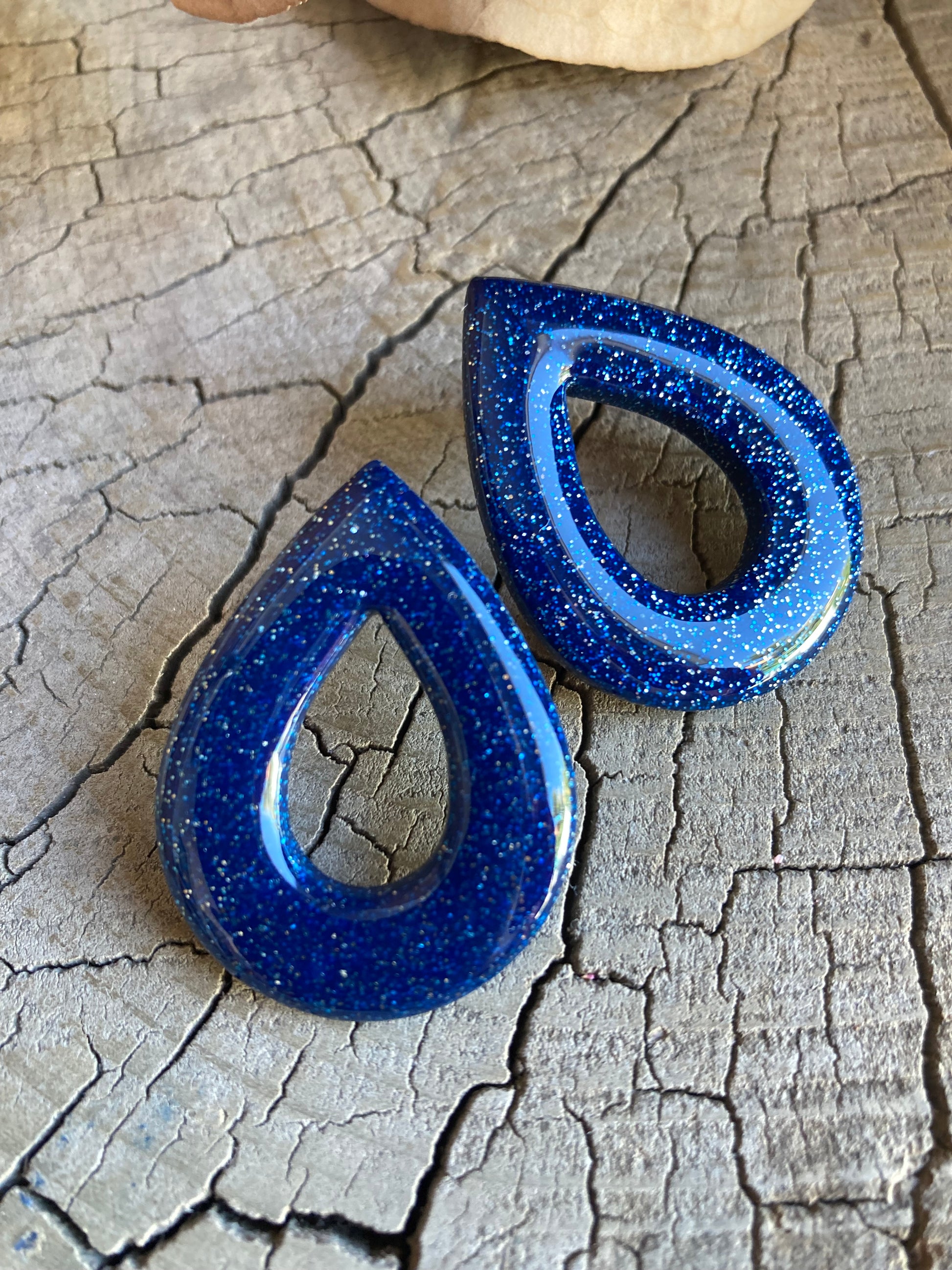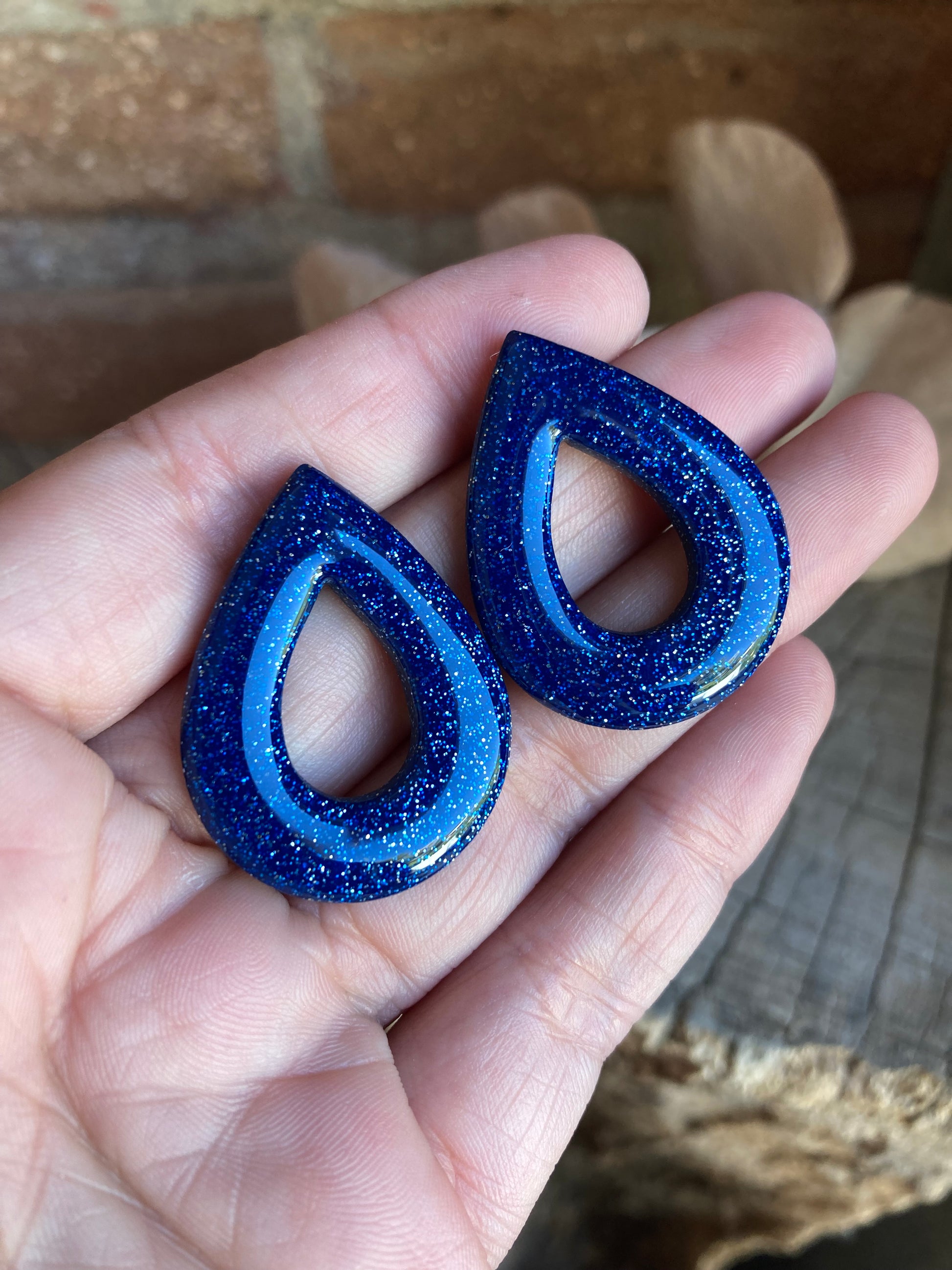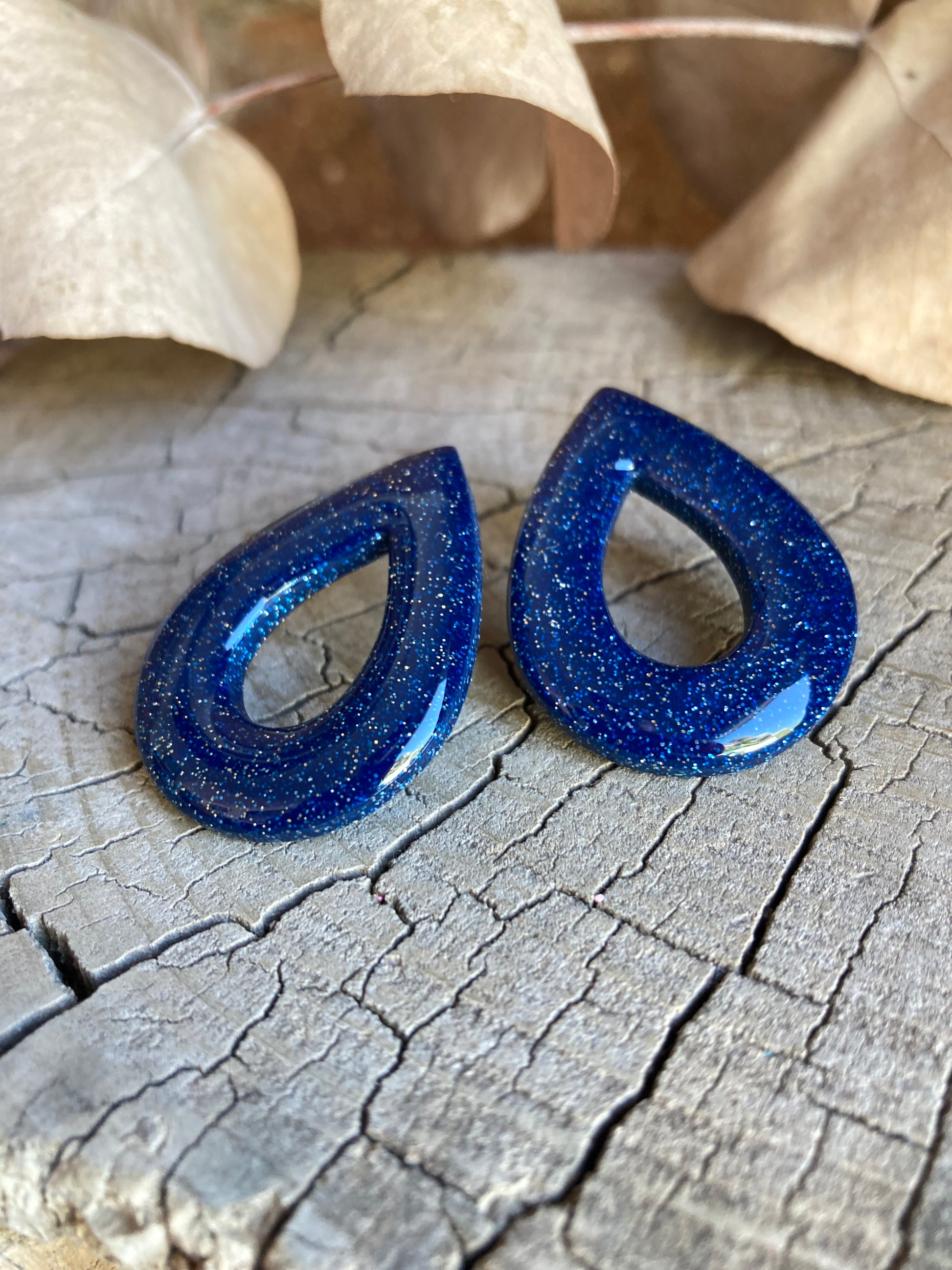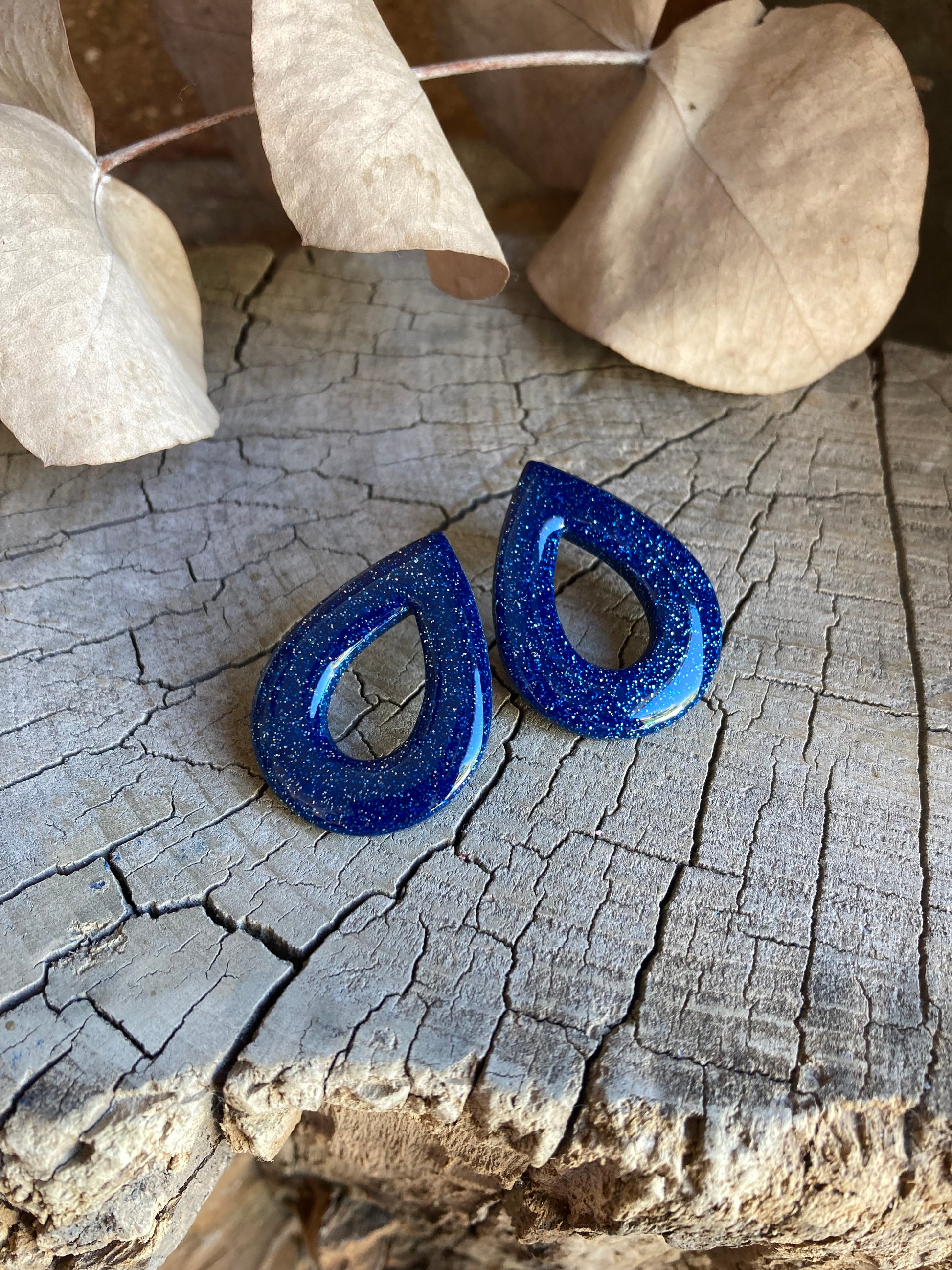 Aros de arcilla polimérica con top coat de resina uv. Miden 3,5 cms. Palito de acero quirúrgico y tope de goma.