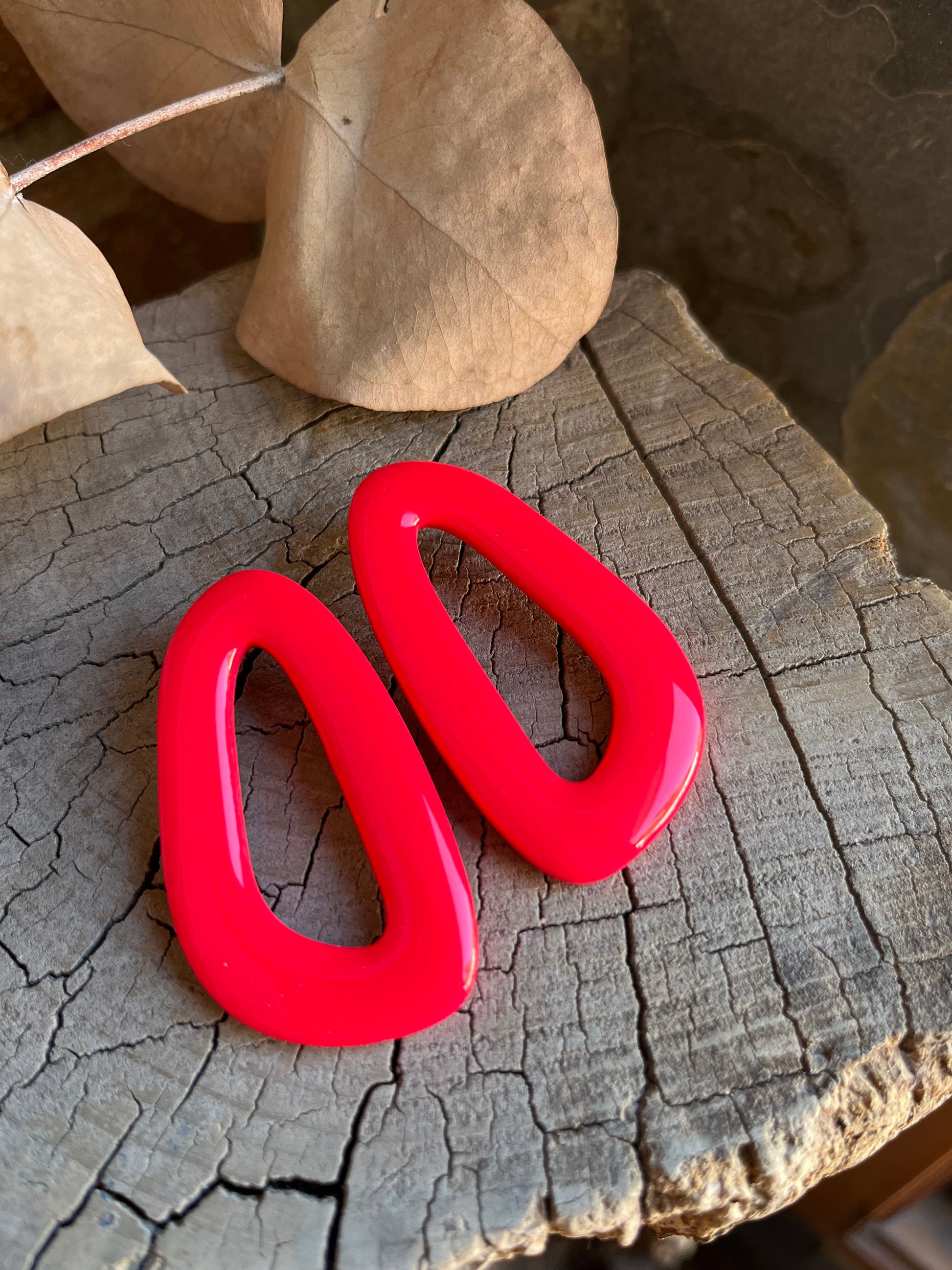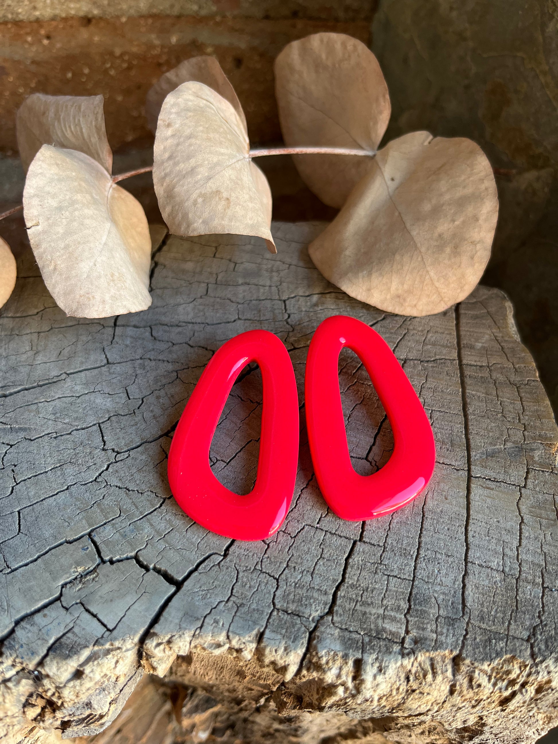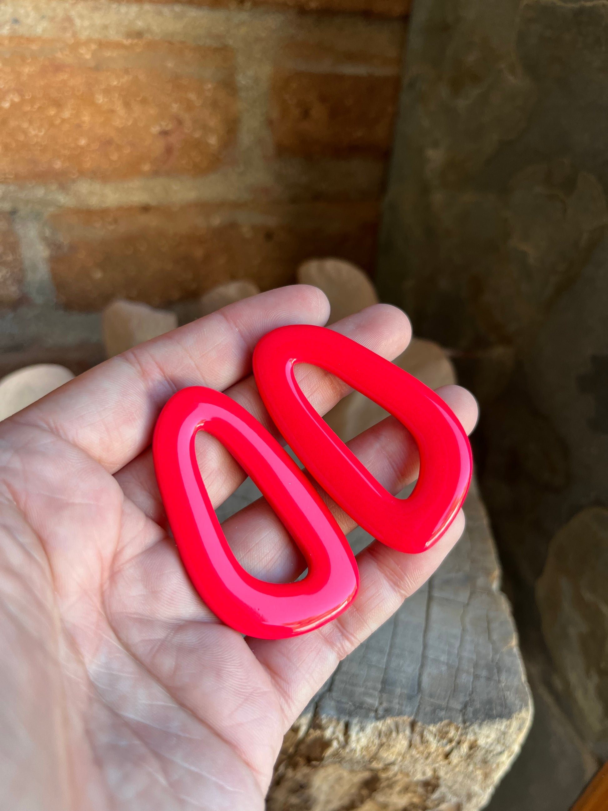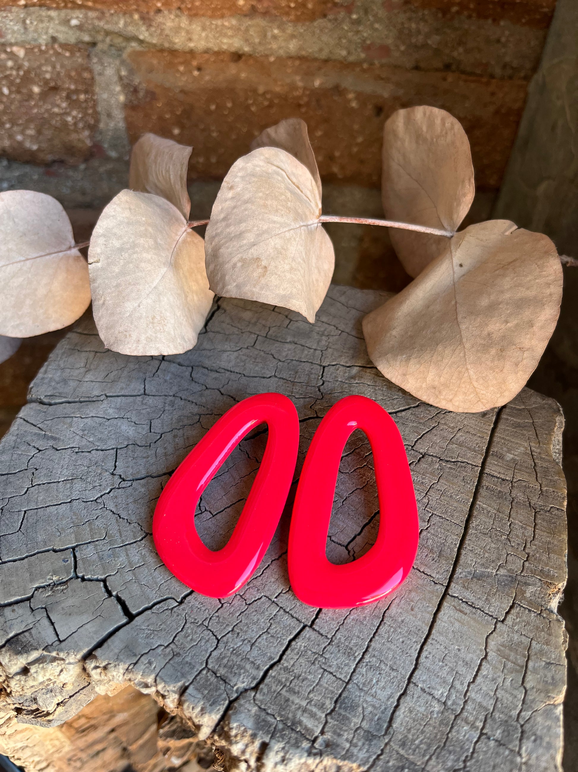 Aros de arcilla polimérica con top coat de resina uv. Miden 5,5 cms. Palito de acero quirúrgico y tope de goma.