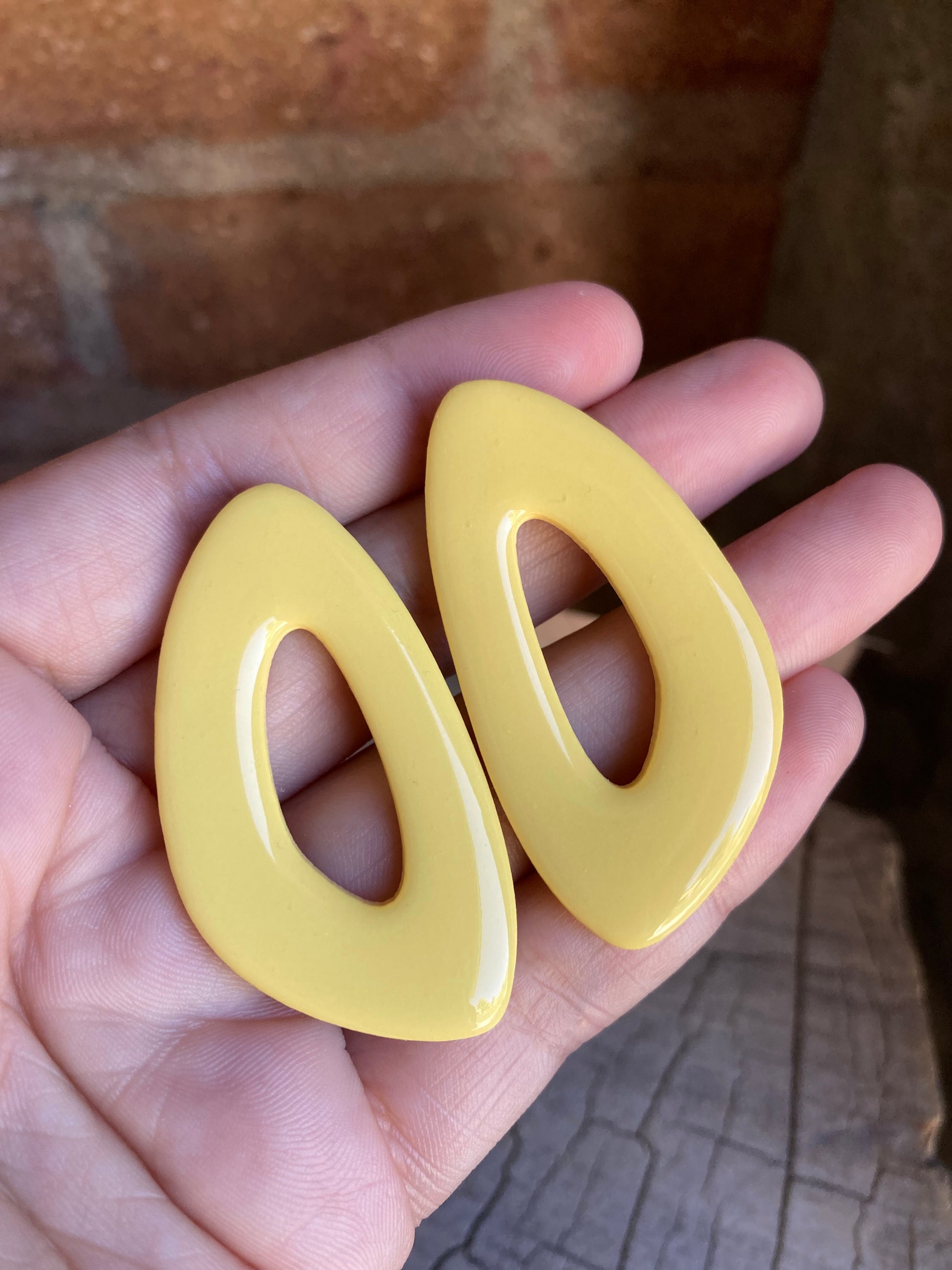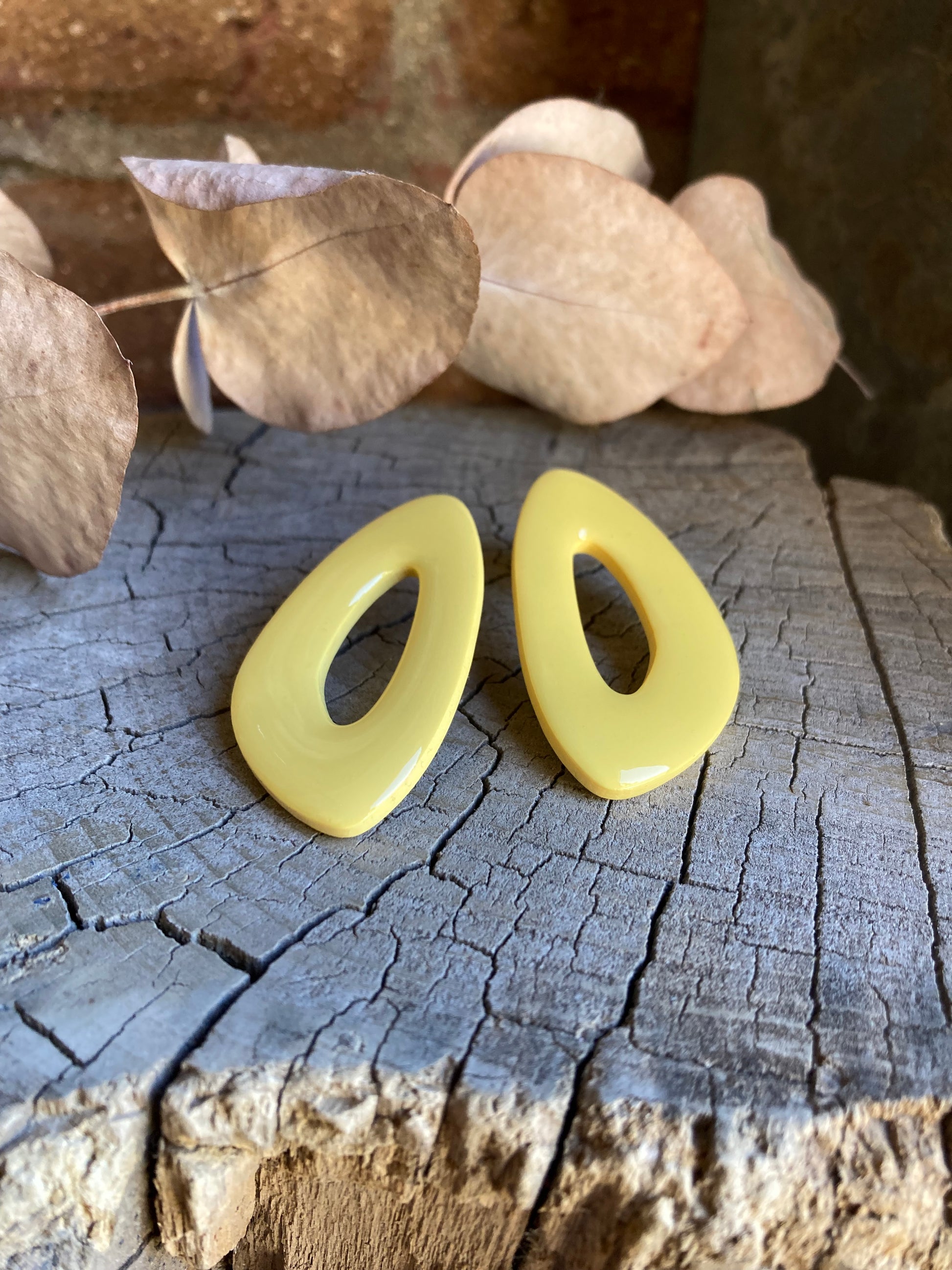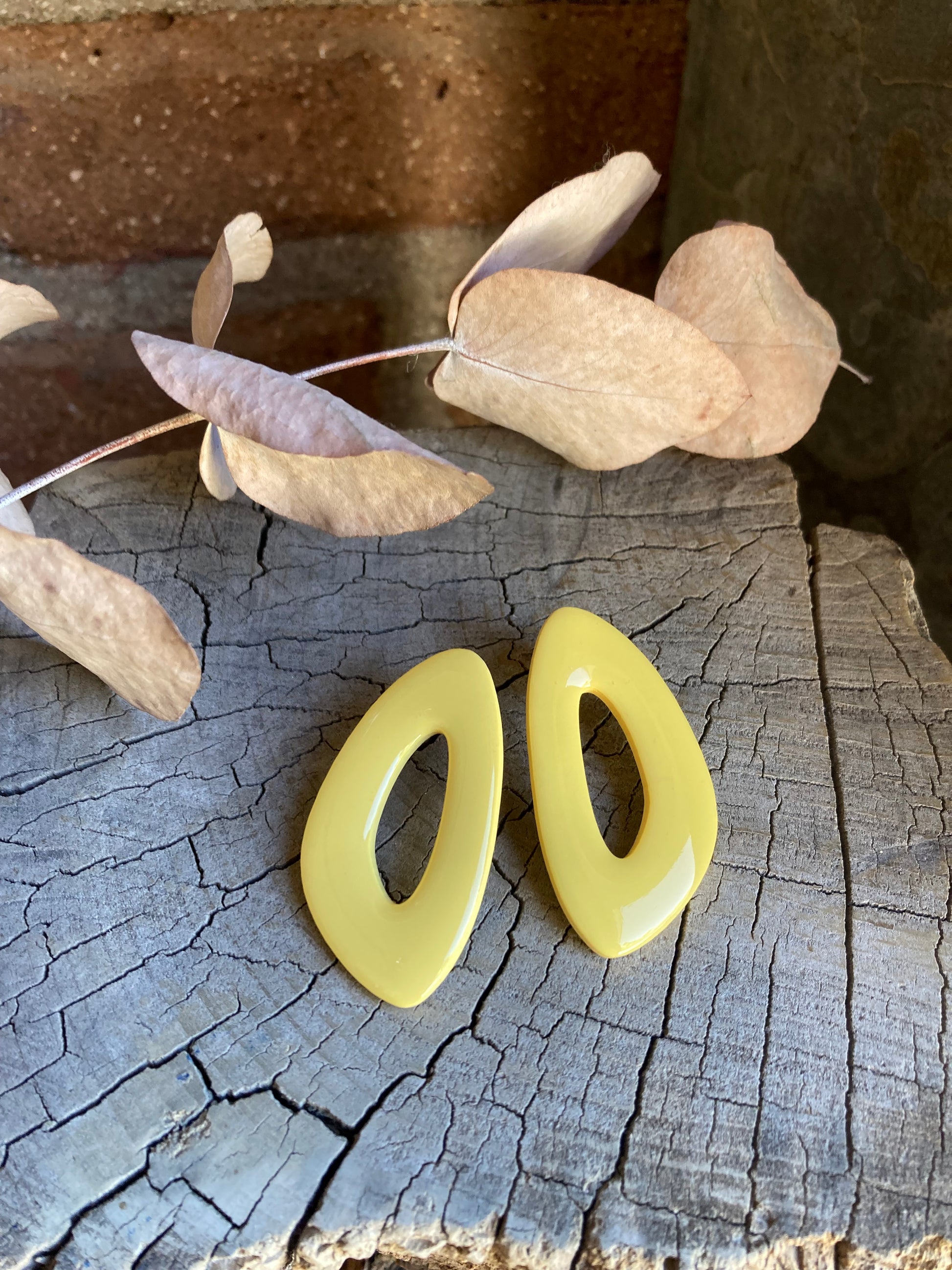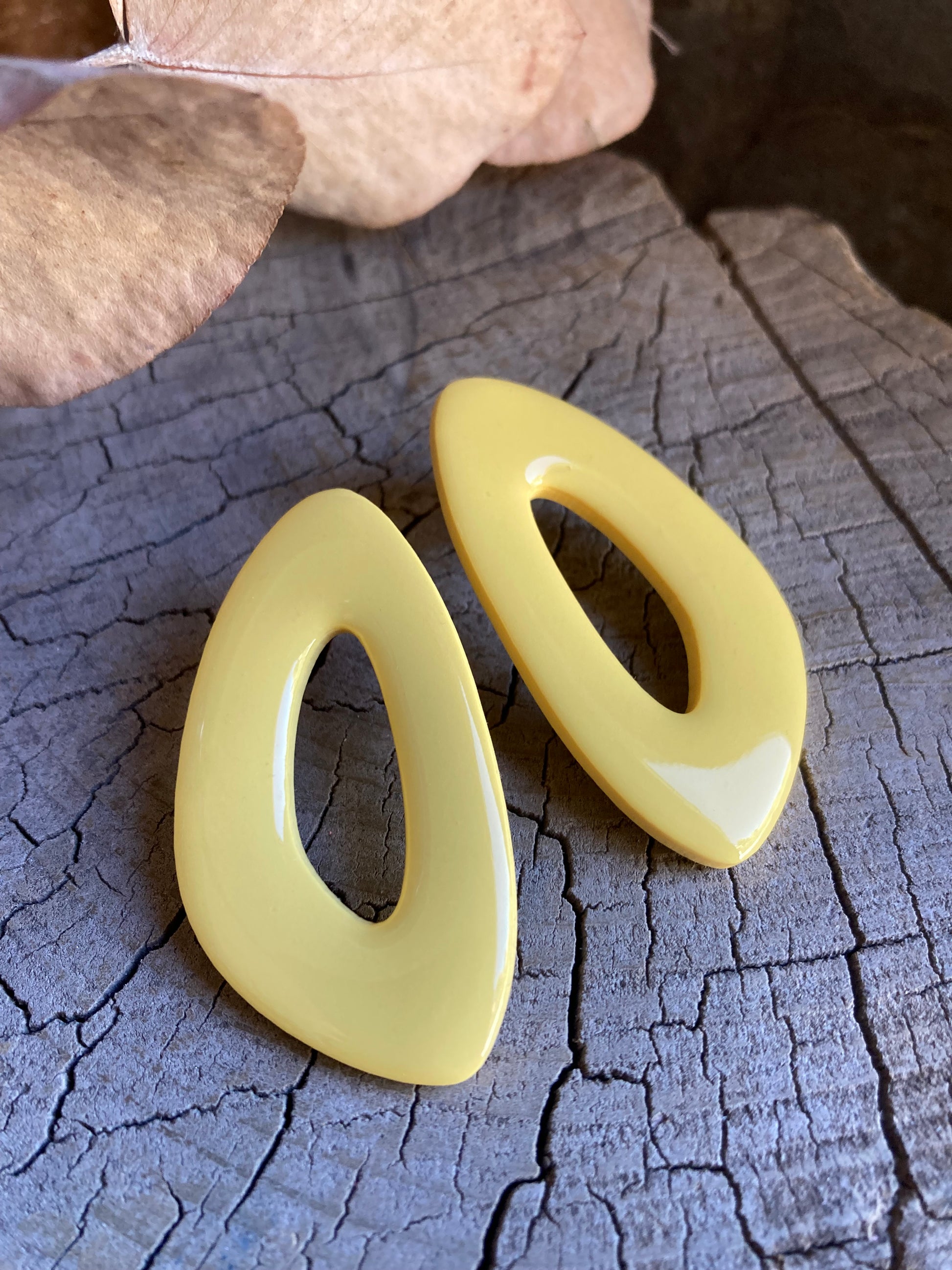 Aros de arcilla polimérica con top coat de resina uv. Miden 5 cms. Palito de acero quirúrgico y tope de goma.