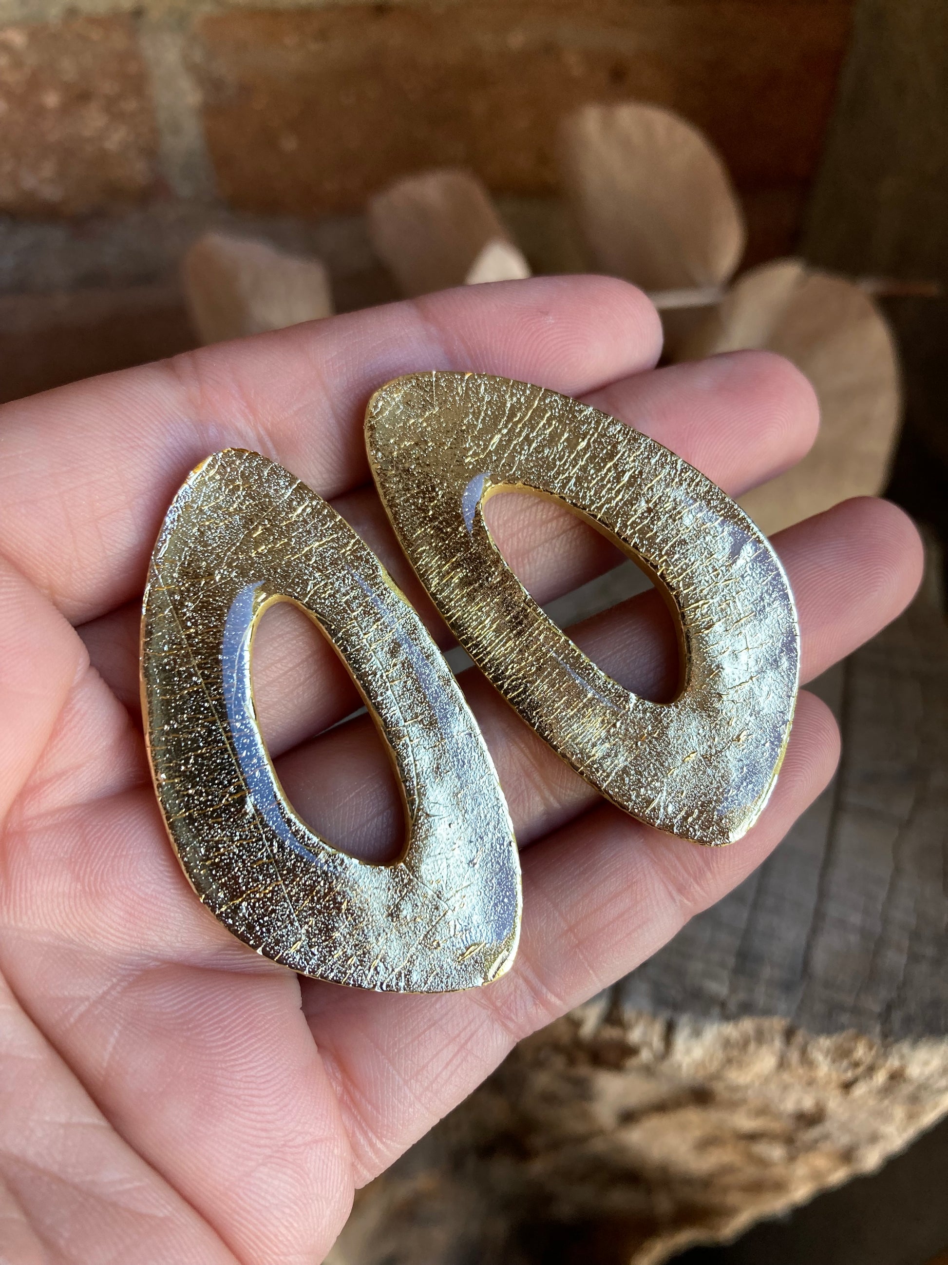 Aros de arcilla polimérica con top coat de resina uv. Miden 5 cms. Palito de acero quirúrgico y tope de goma.