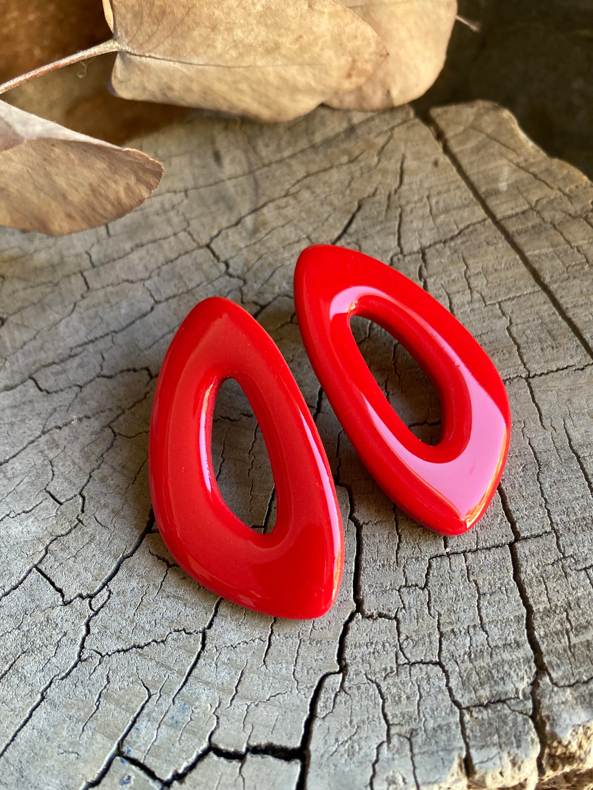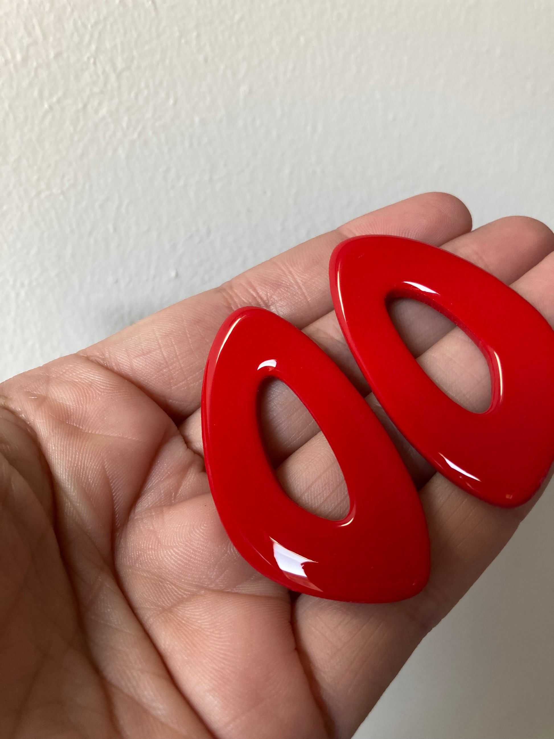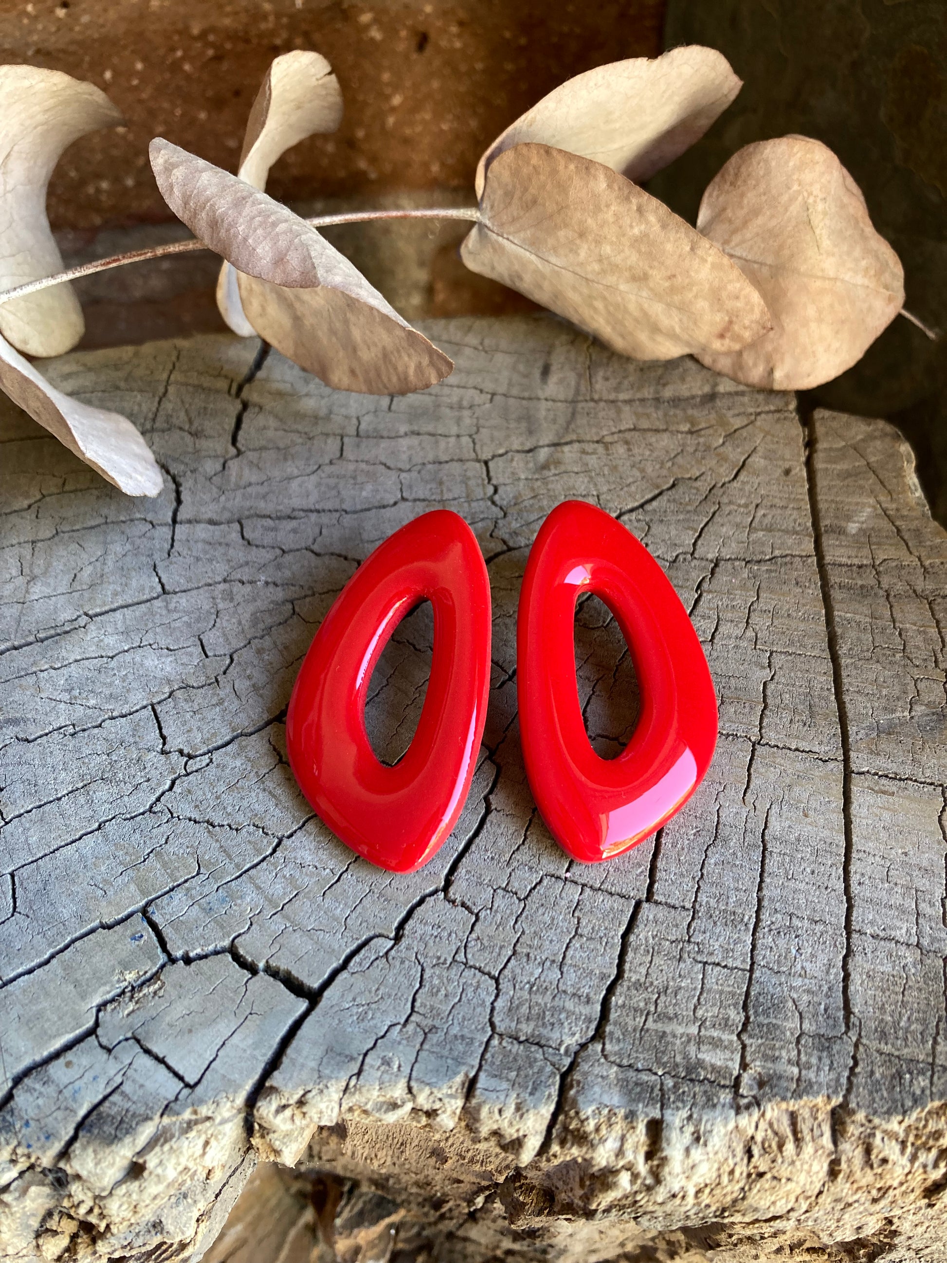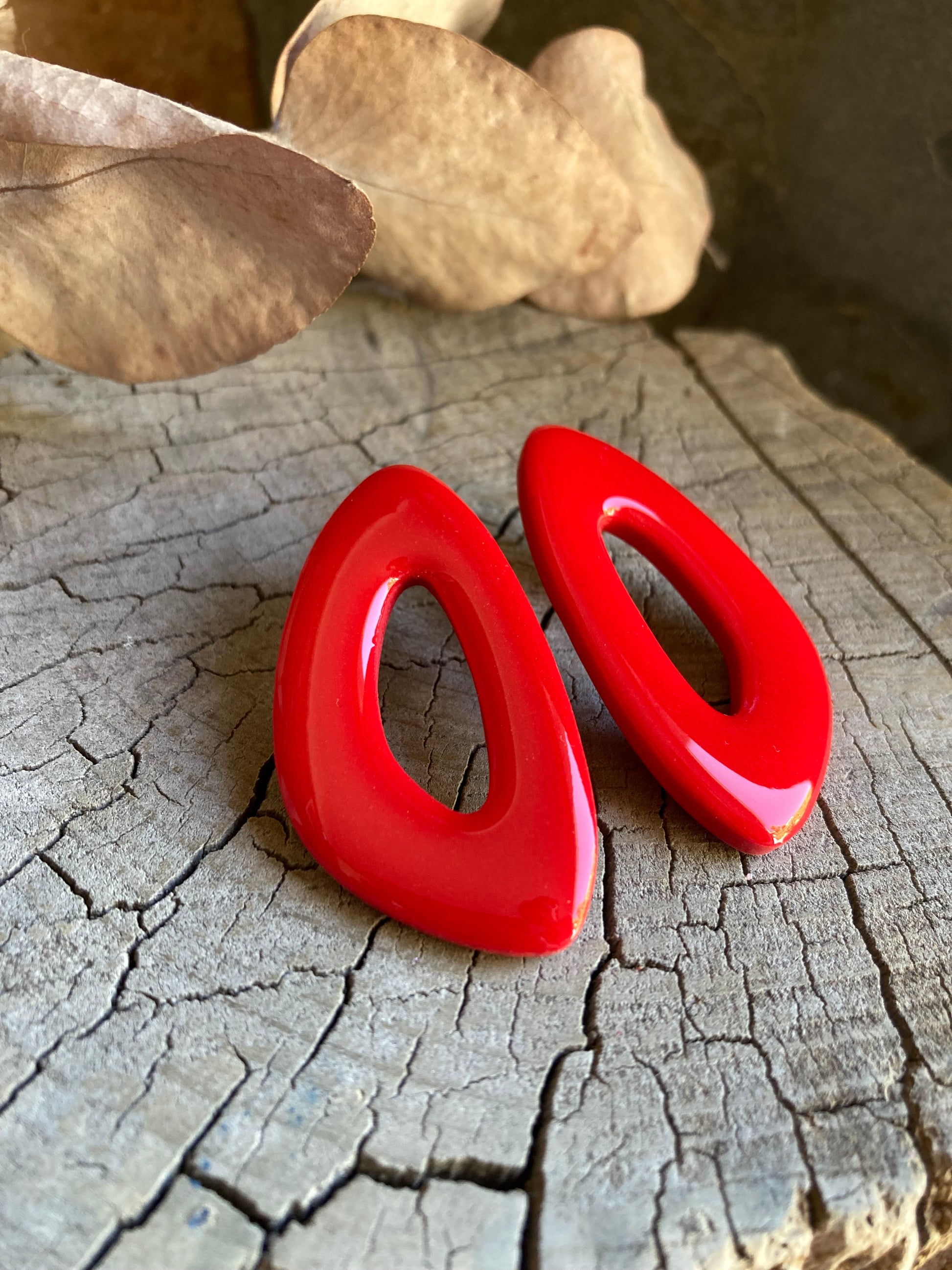 Aros de arcilla polimérica con top coat de resina uv. Miden 5 cms. Palito de acero quirúrgico y tope de goma.