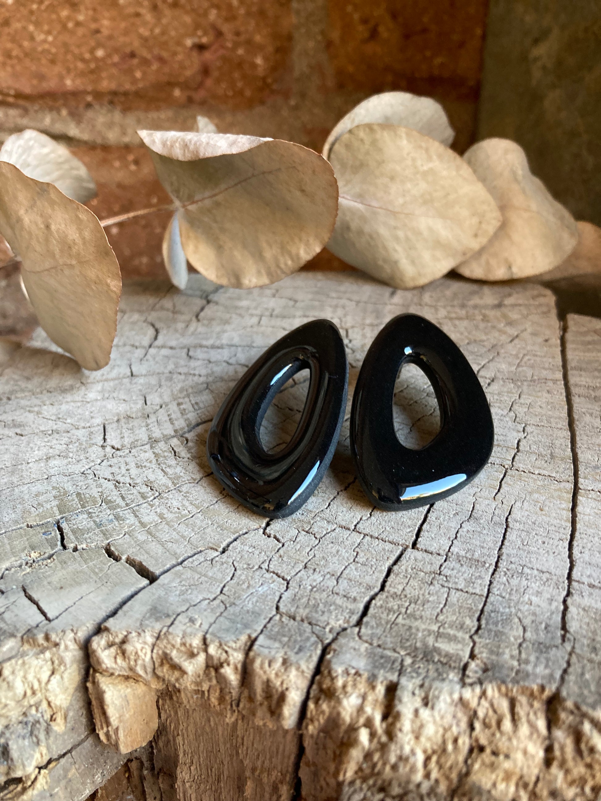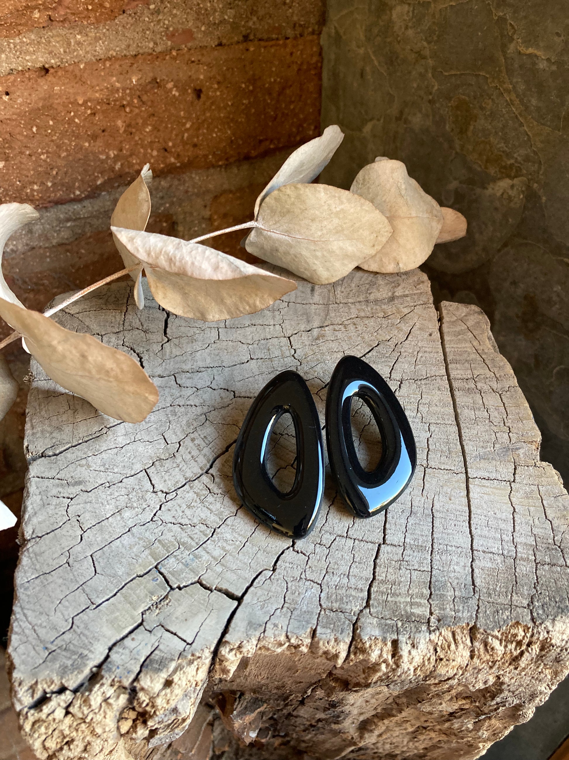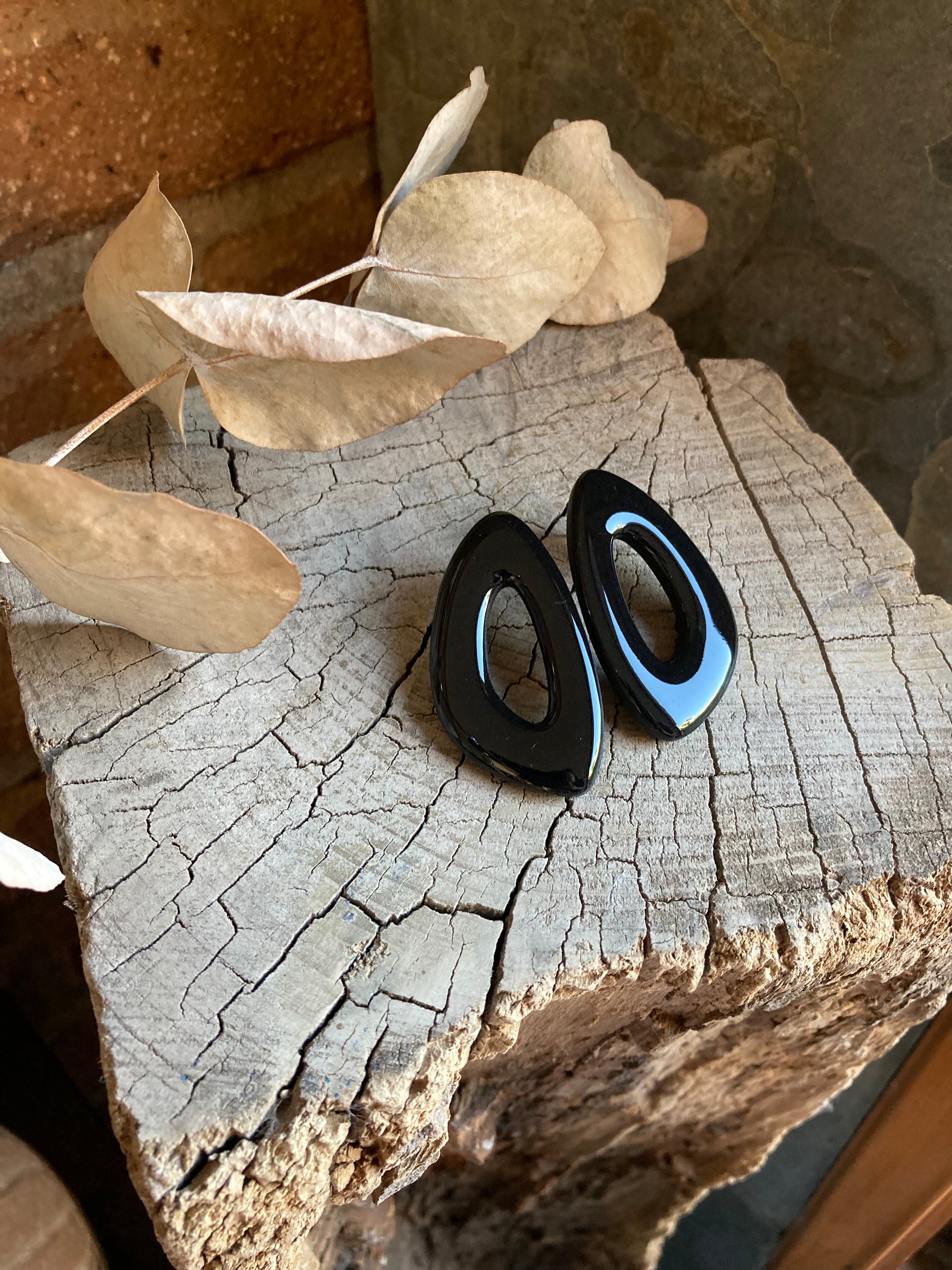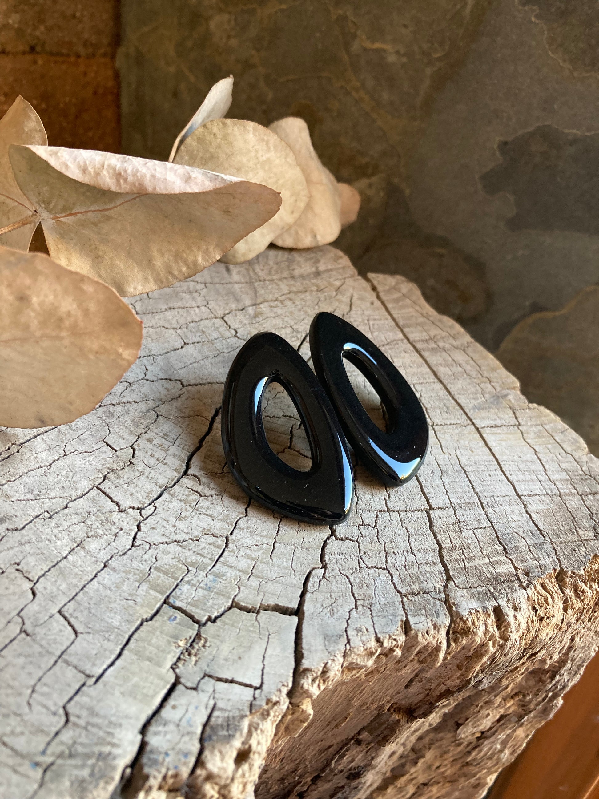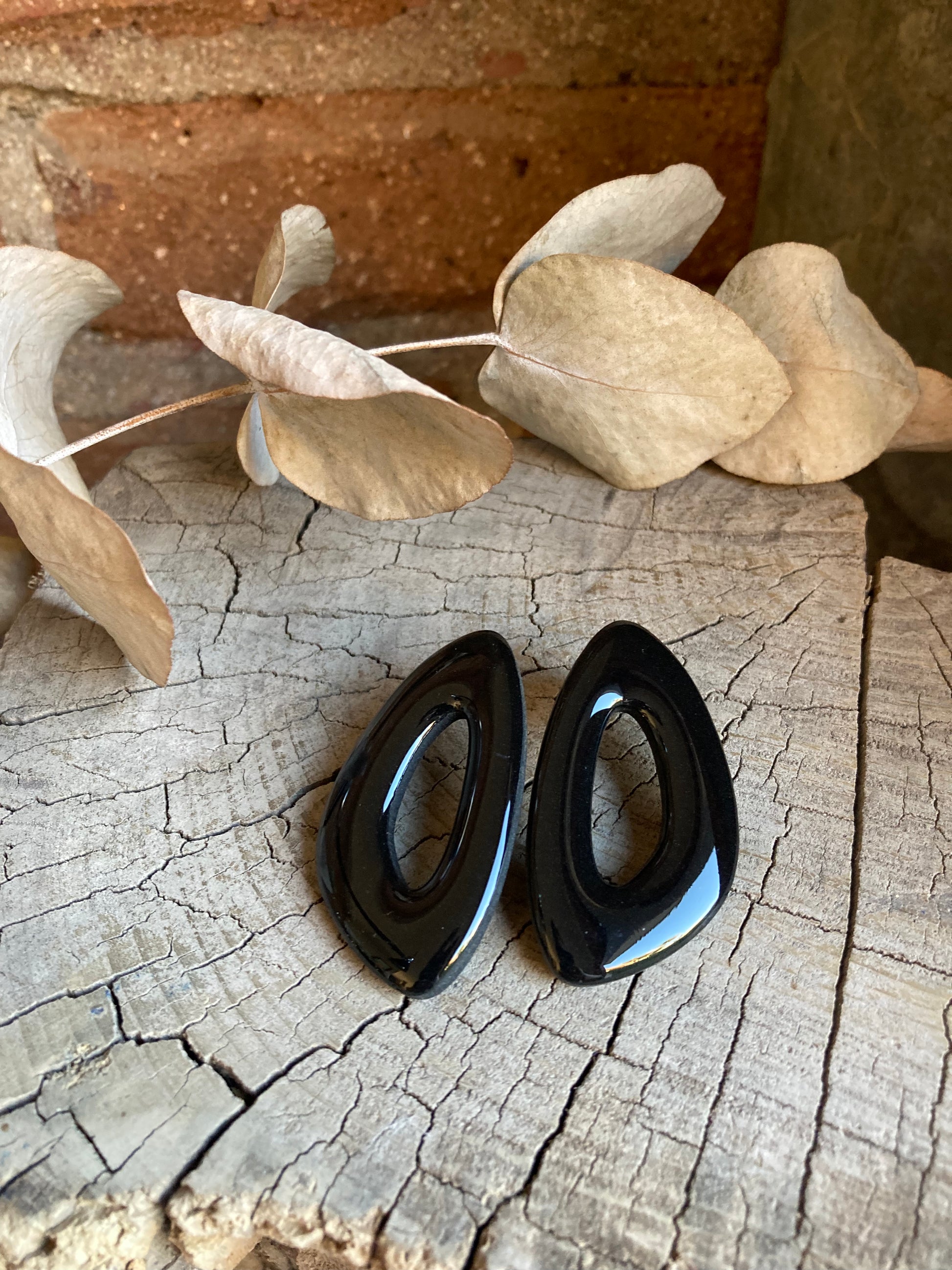 Aros de arcilla polimérica con top coat de resina uv. Miden 5 cms. Palito de acero quirúrgico y tope de goma.