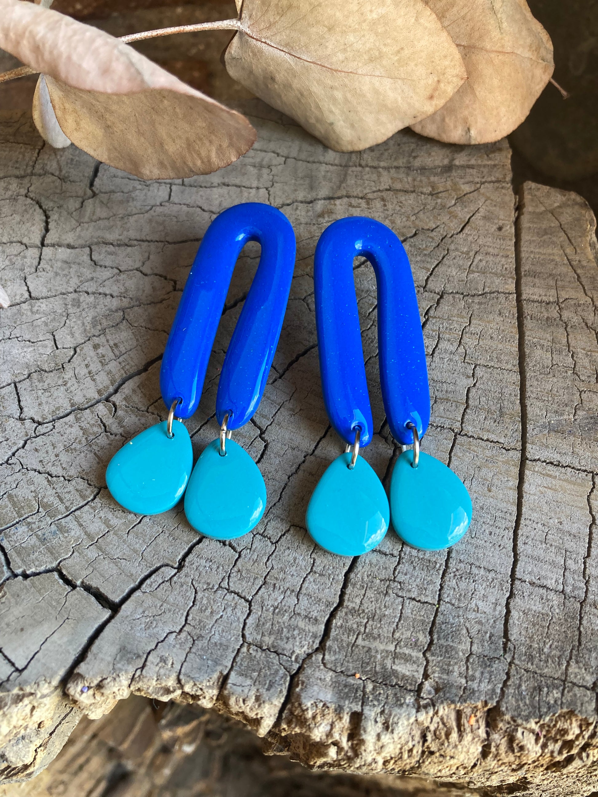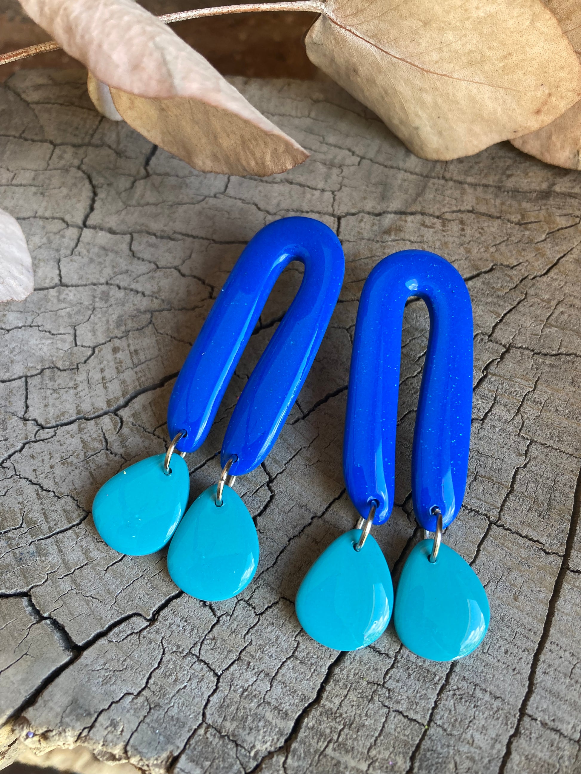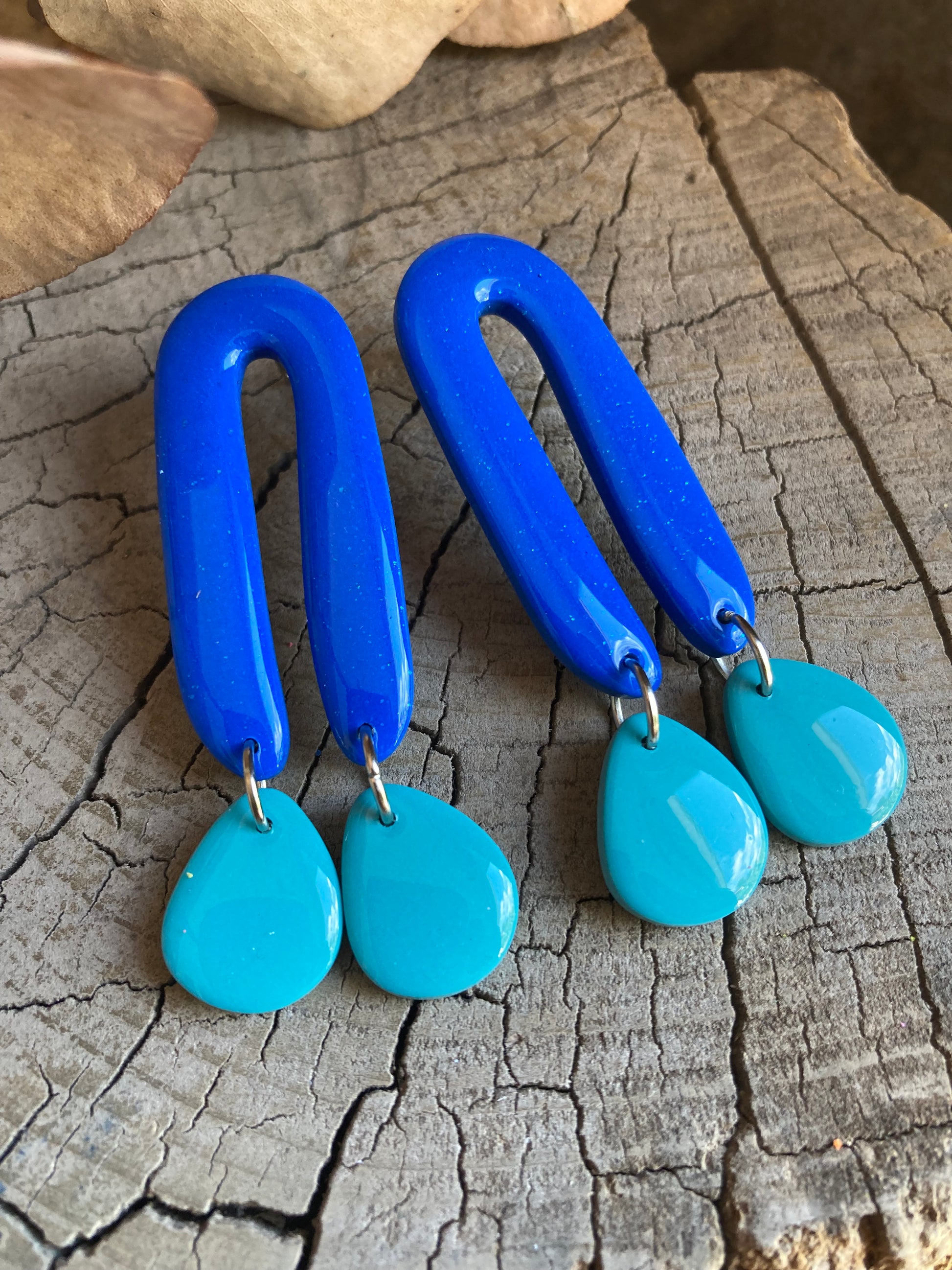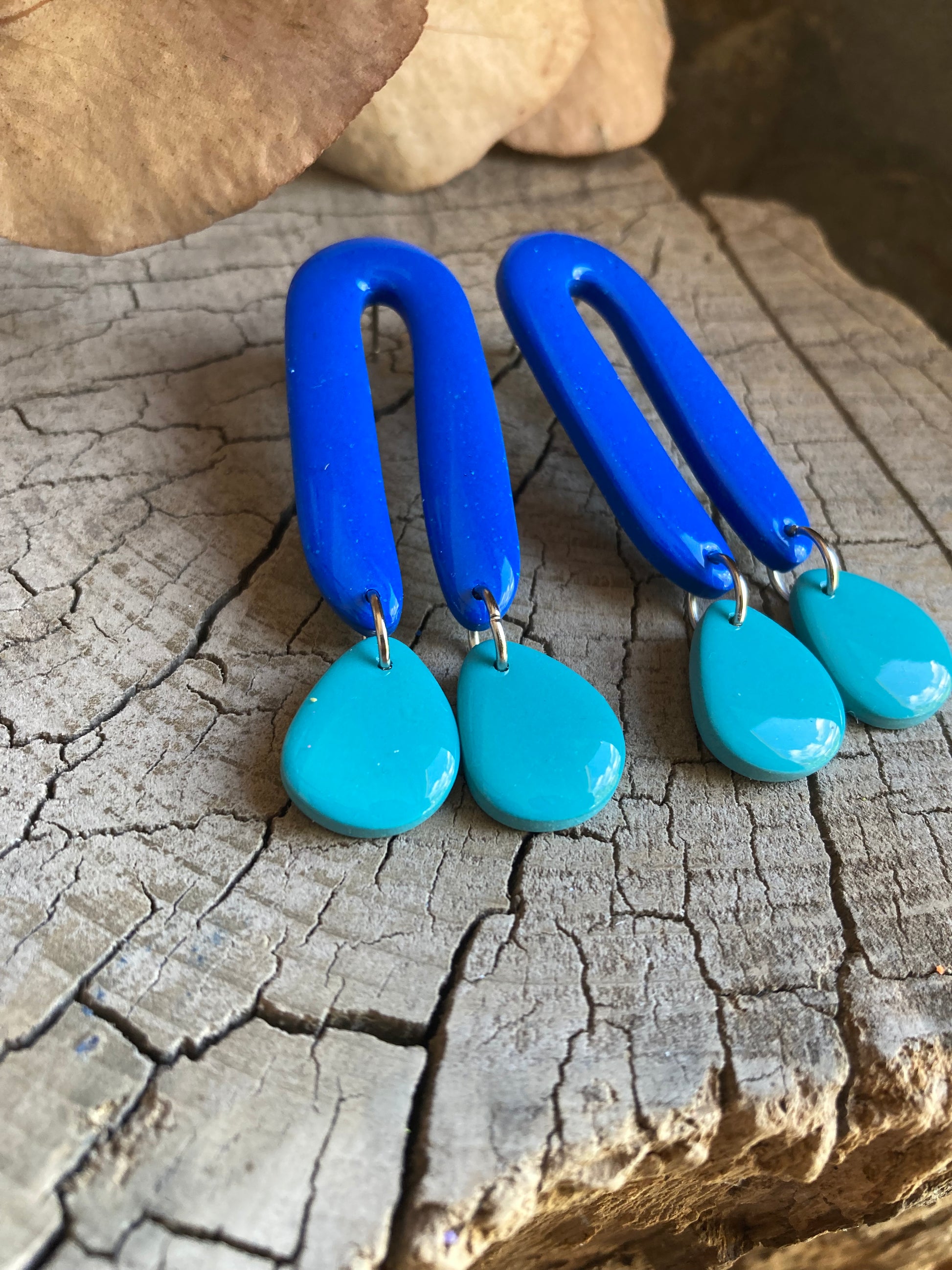 Aros de arcilla polimérica con top coat de resina uv. Miden 6,3 cms. Palito de acero quirúrgico y tope de goma.