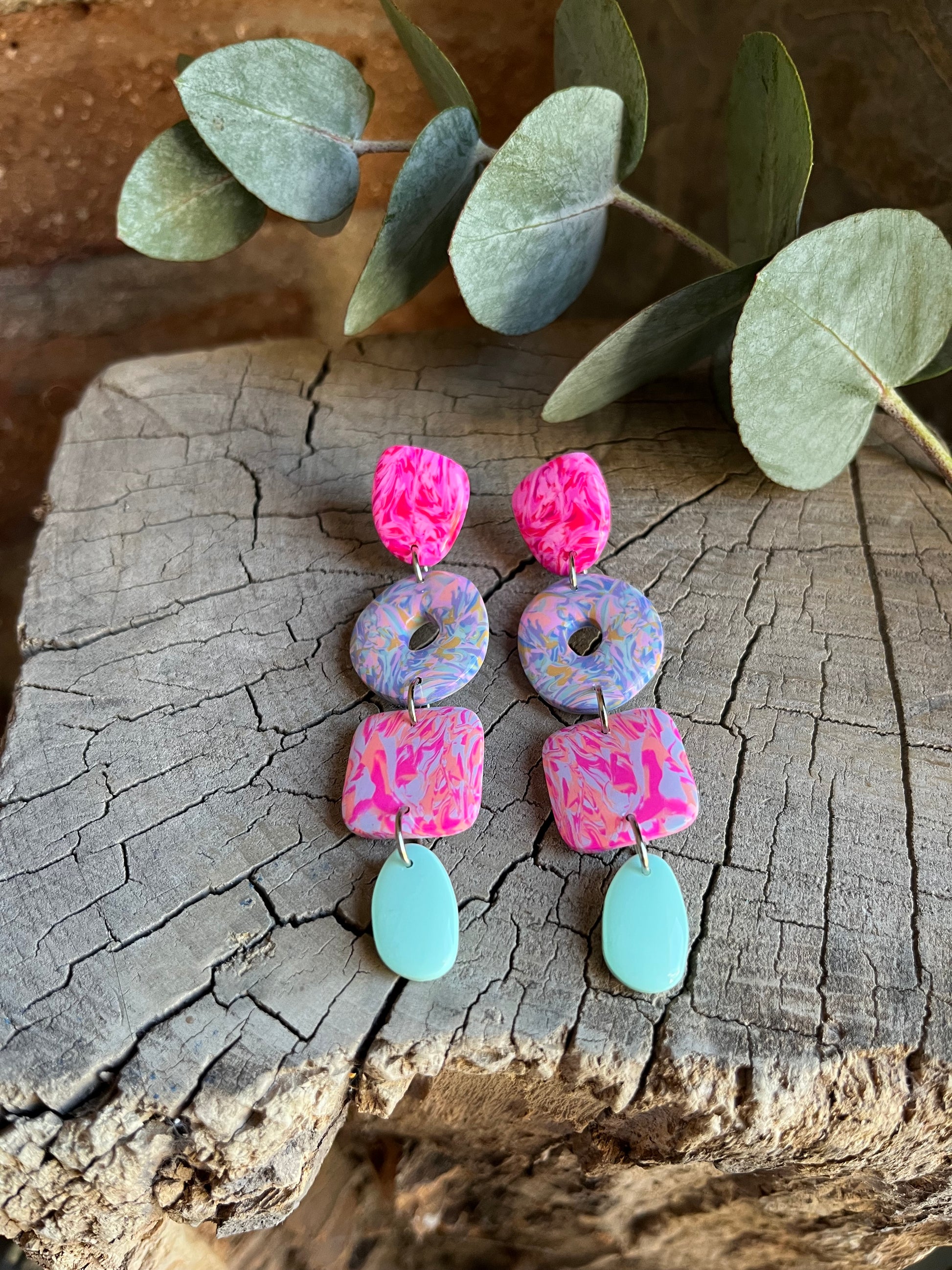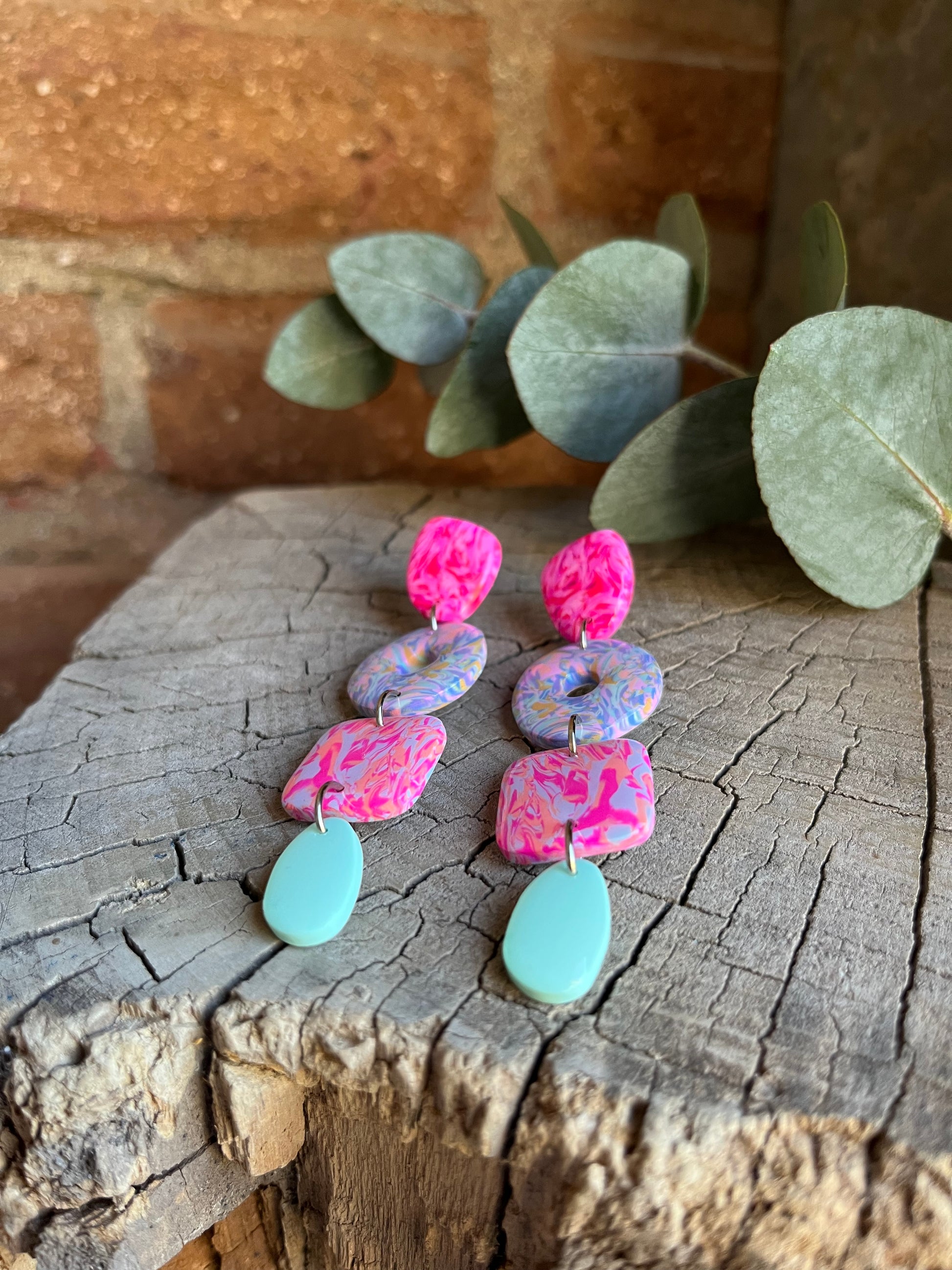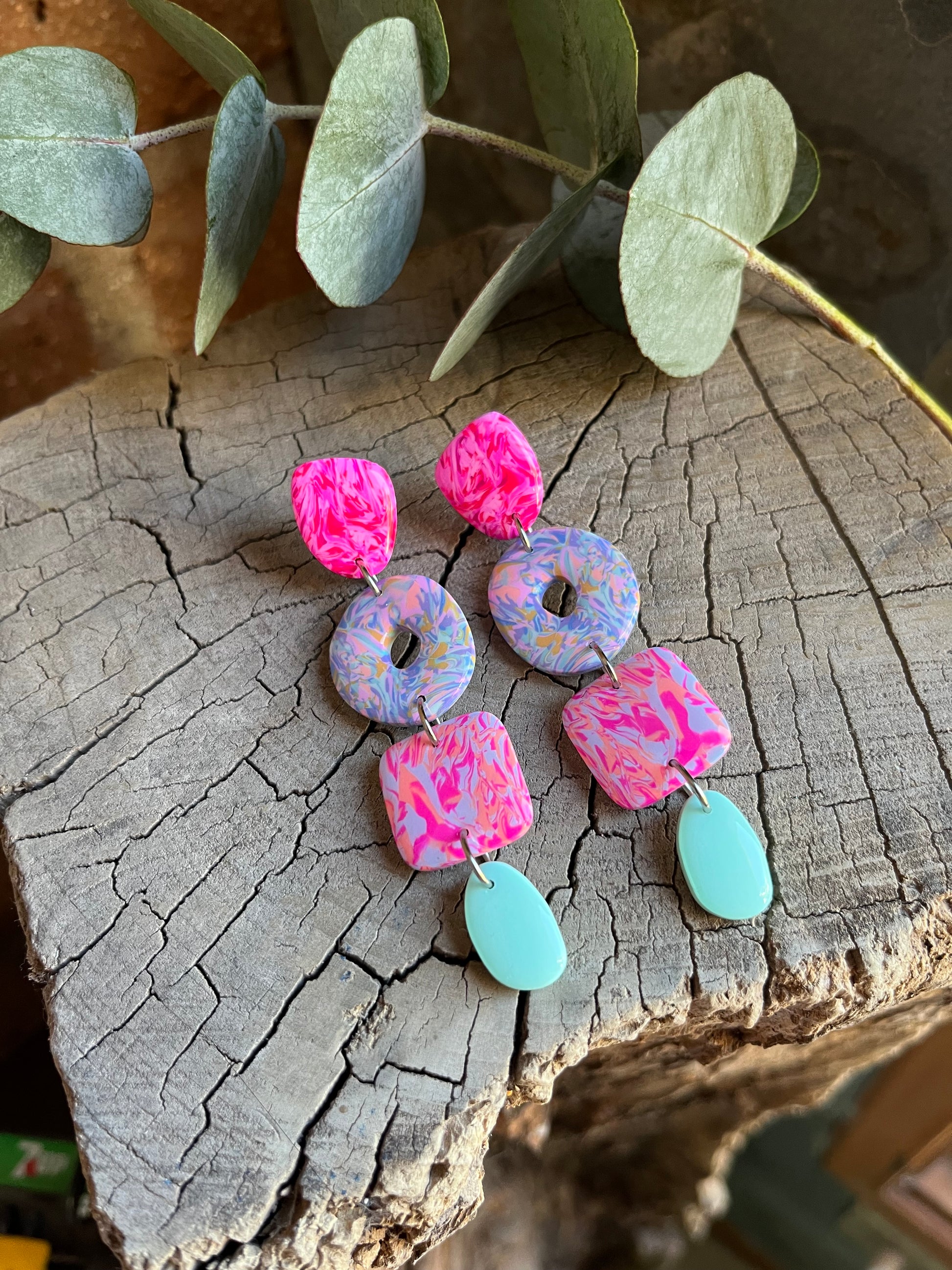 Aros de arcilla polimérica con top coat de resina uv. Miden 8 cms. Palito de acero quirúrgico y tope de goma.
