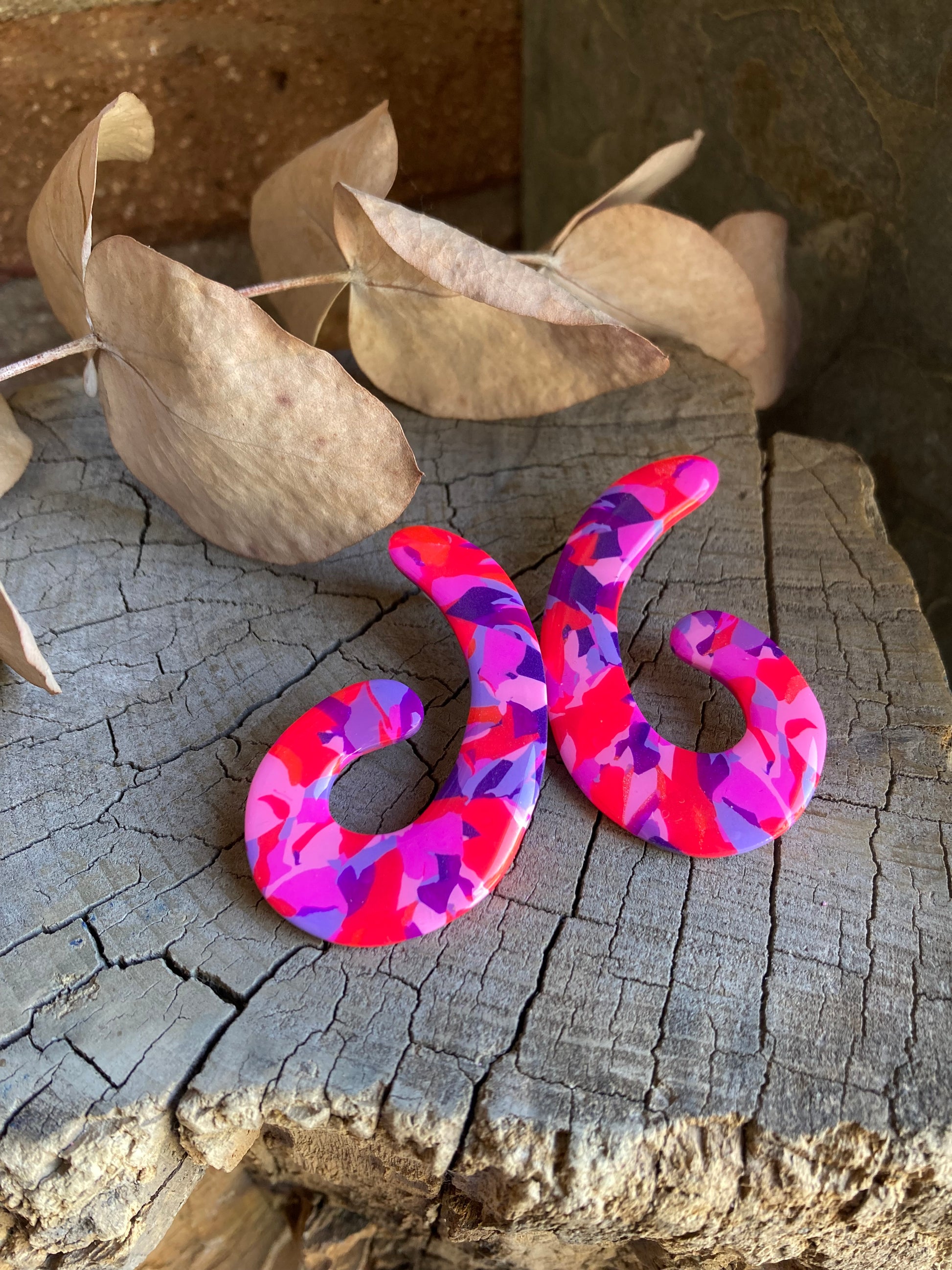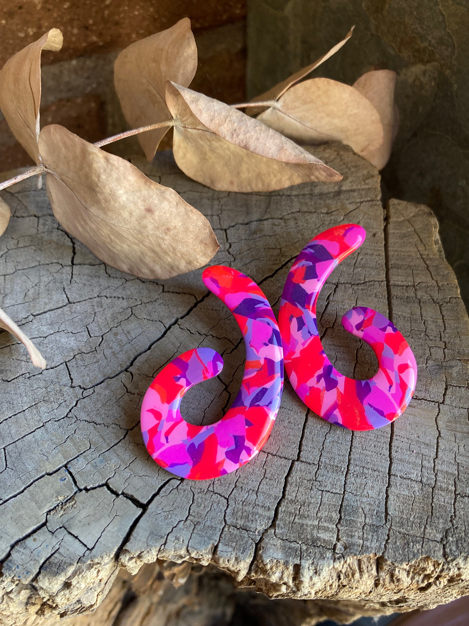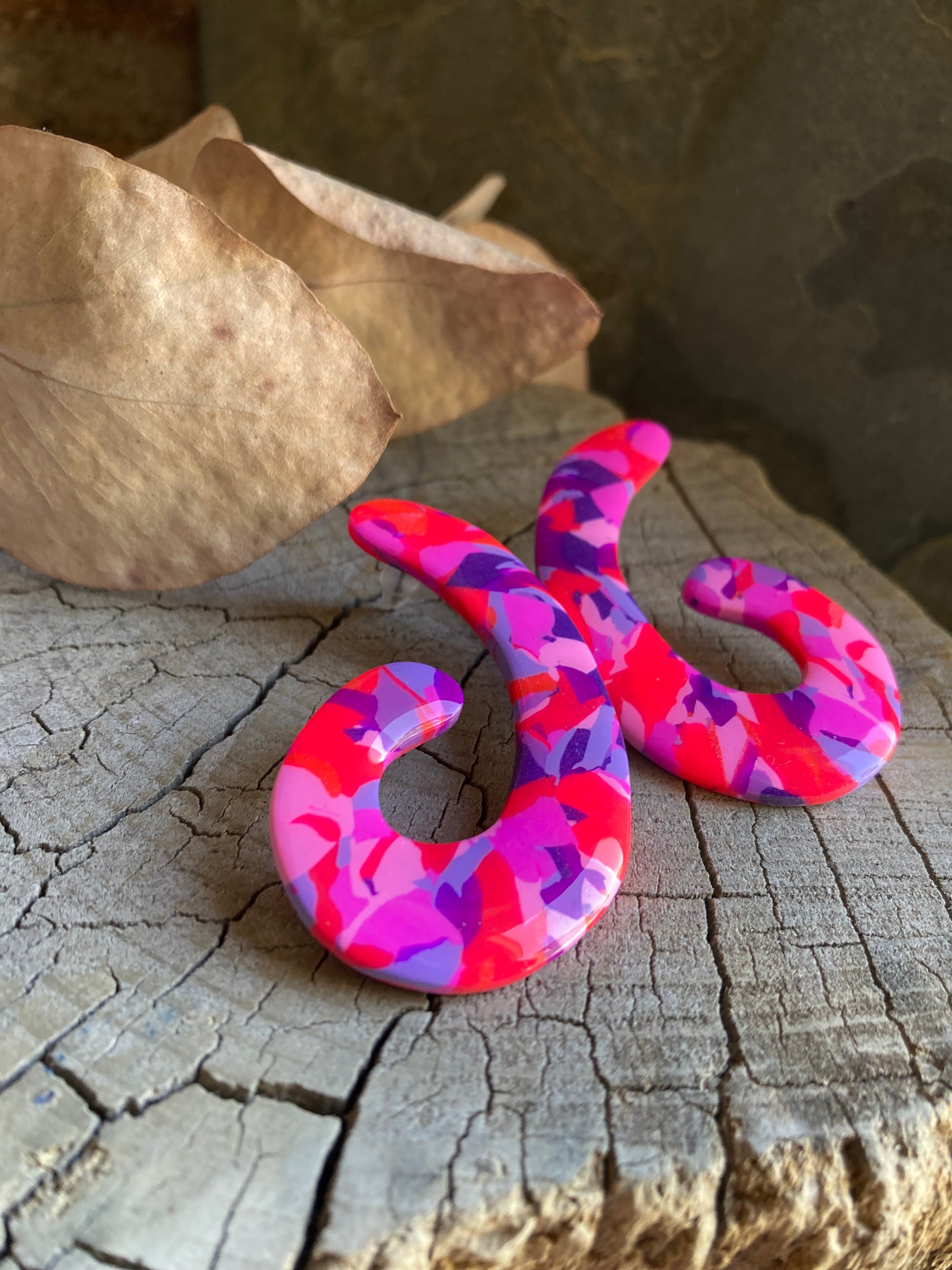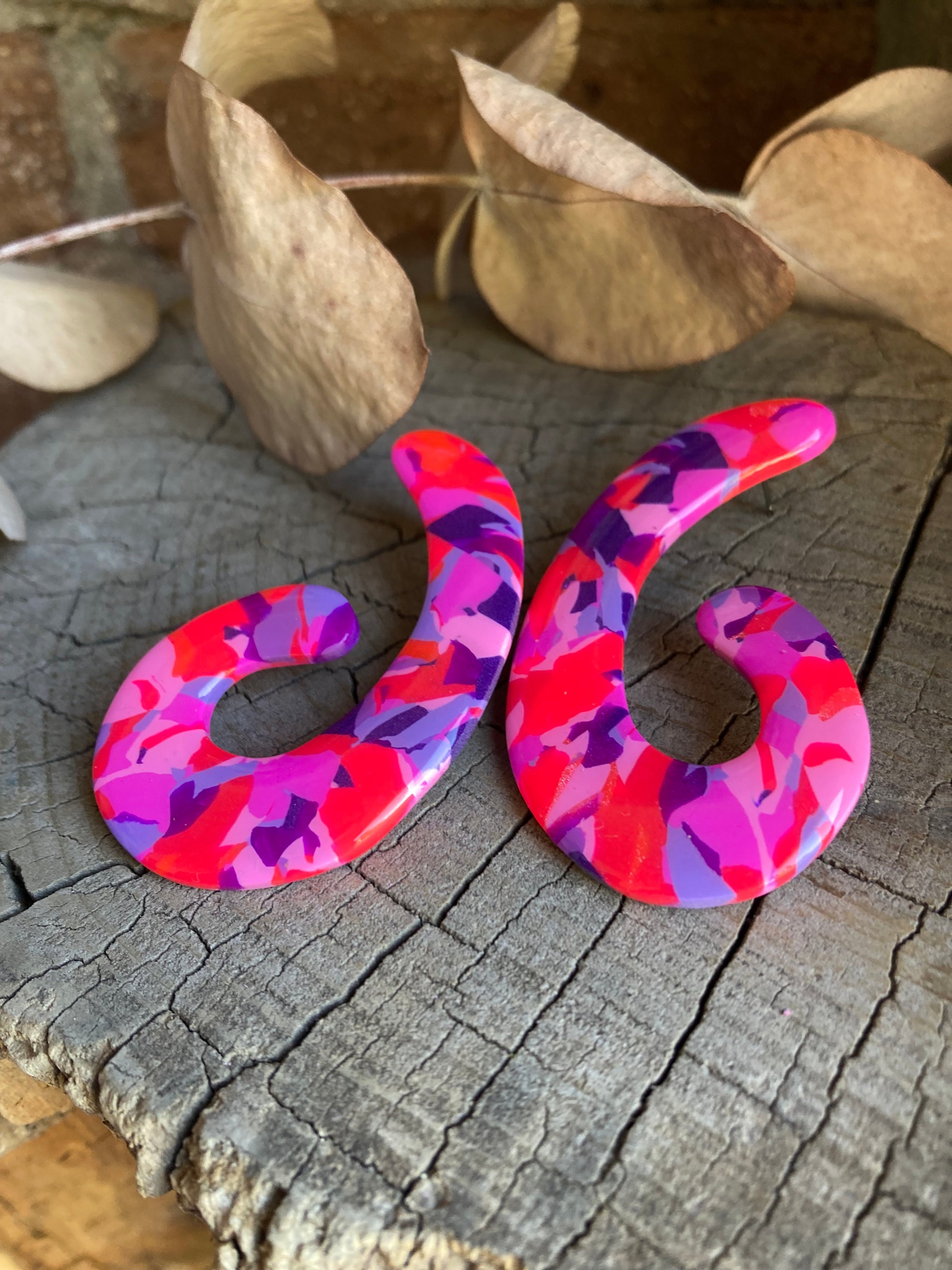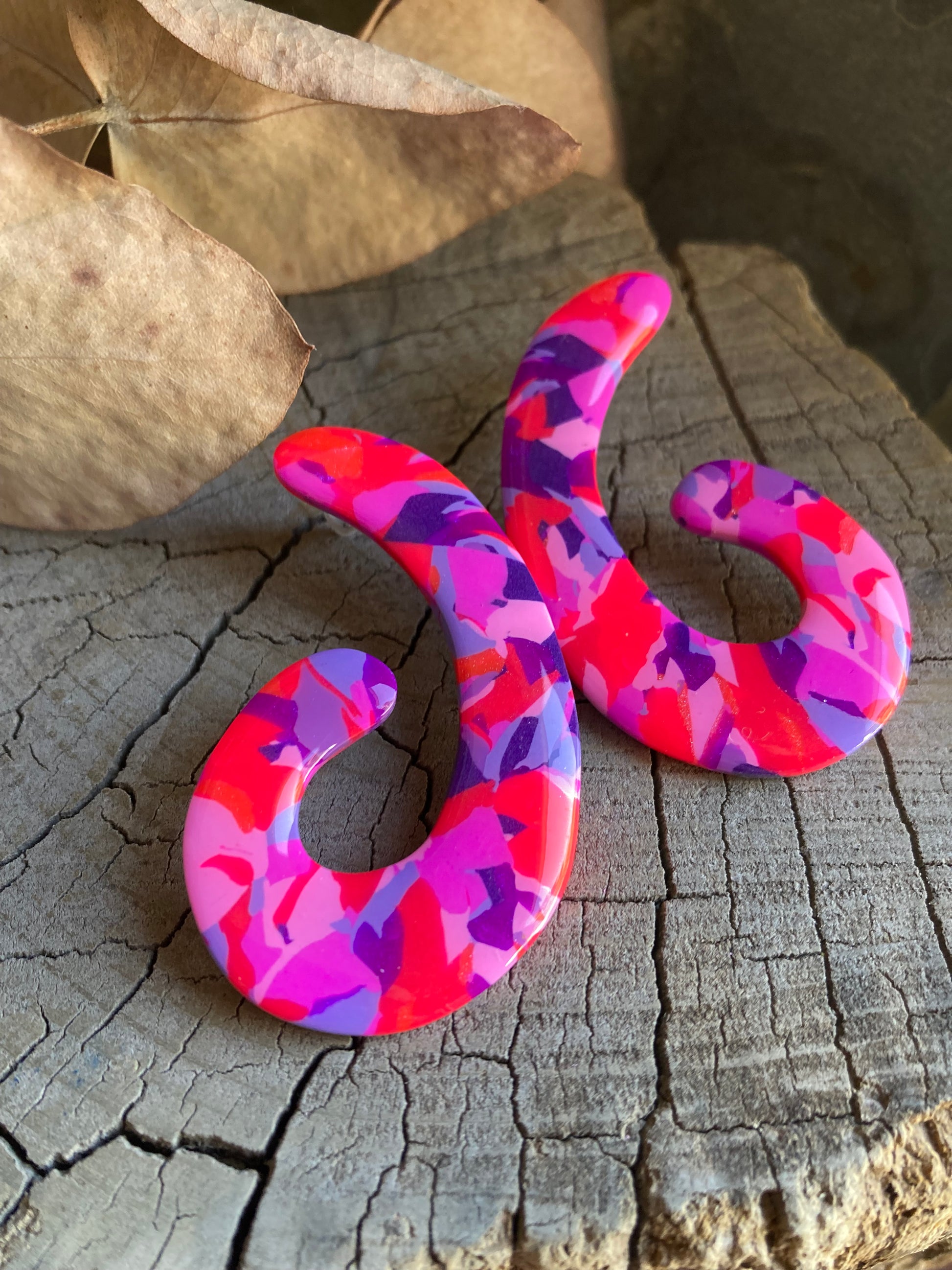 Aros de arcilla polimérica con top coat de resina uv. Miden 6 cms. Palito de acero quirúrgico y tope de goma.