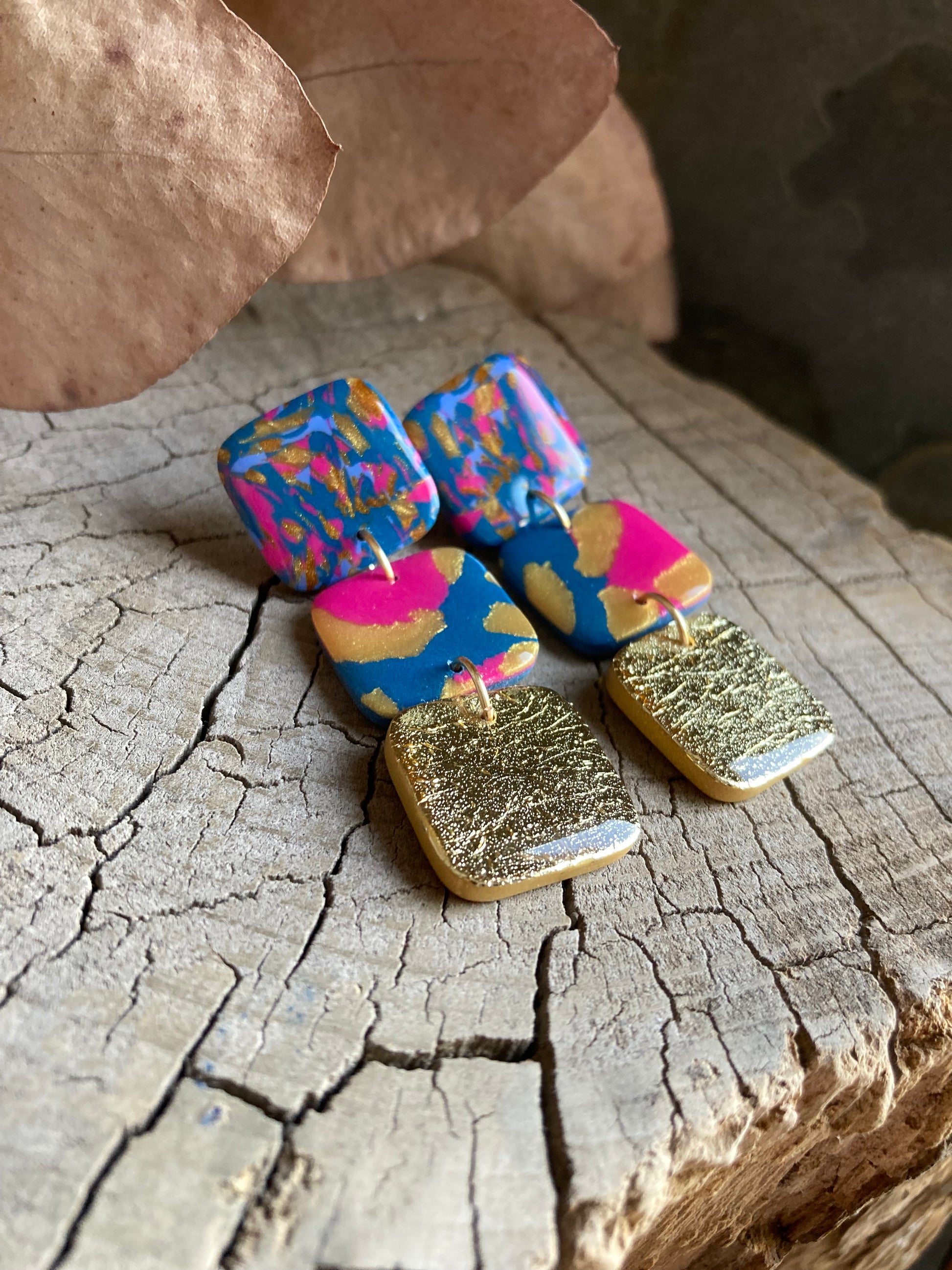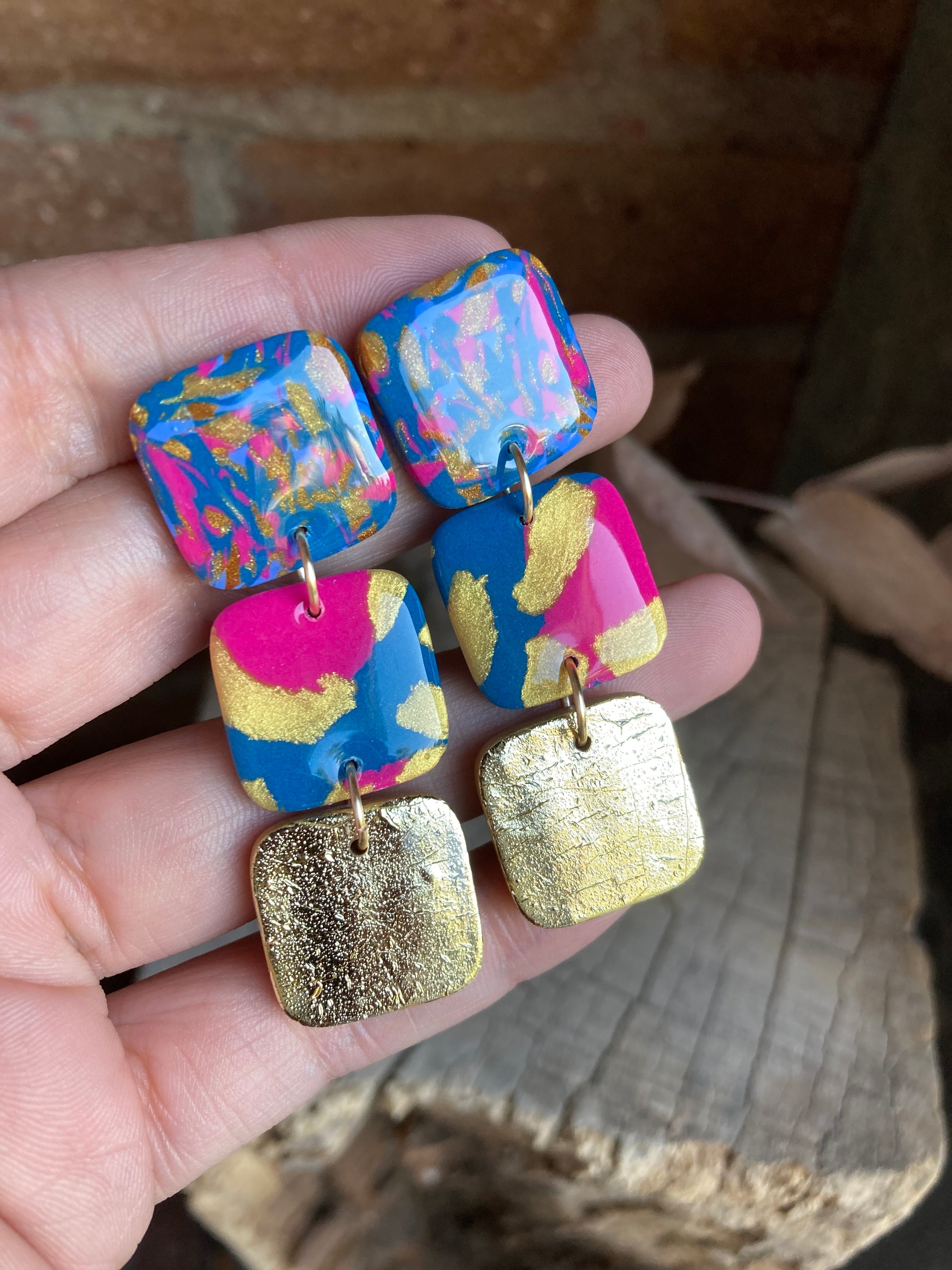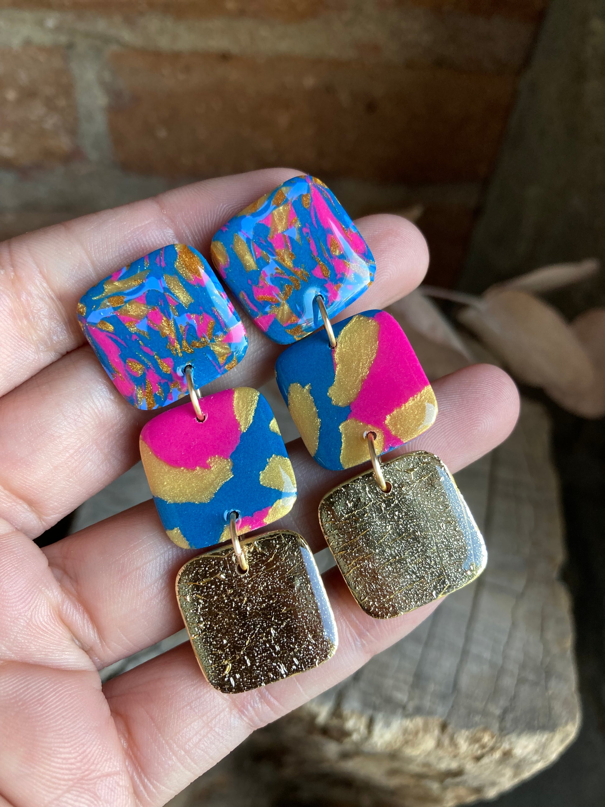 Aros de arcilla polimérica con top coat de resina uv. Miden 5,8 cms. Palito de acero quirúrgico y tope de goma.