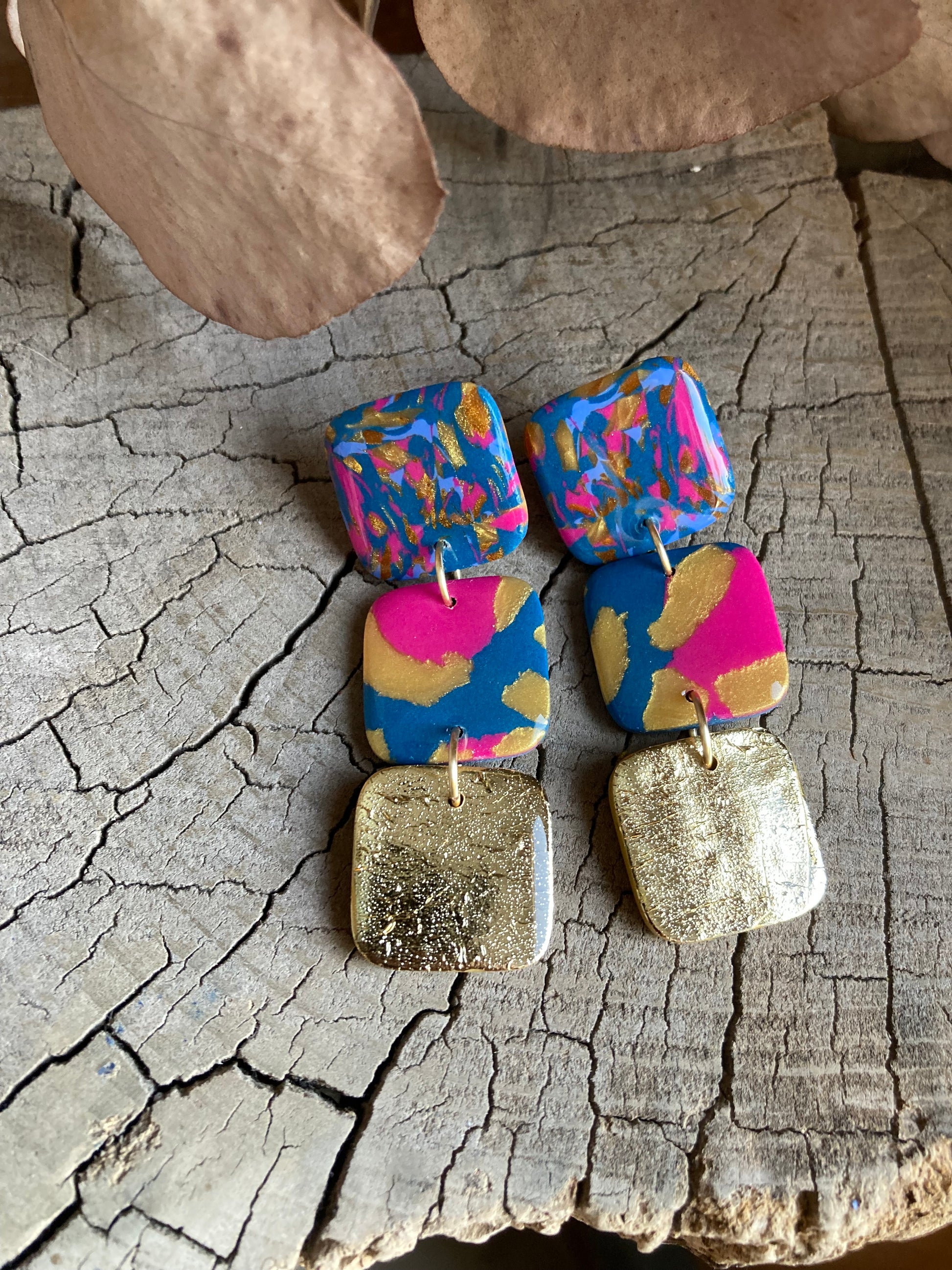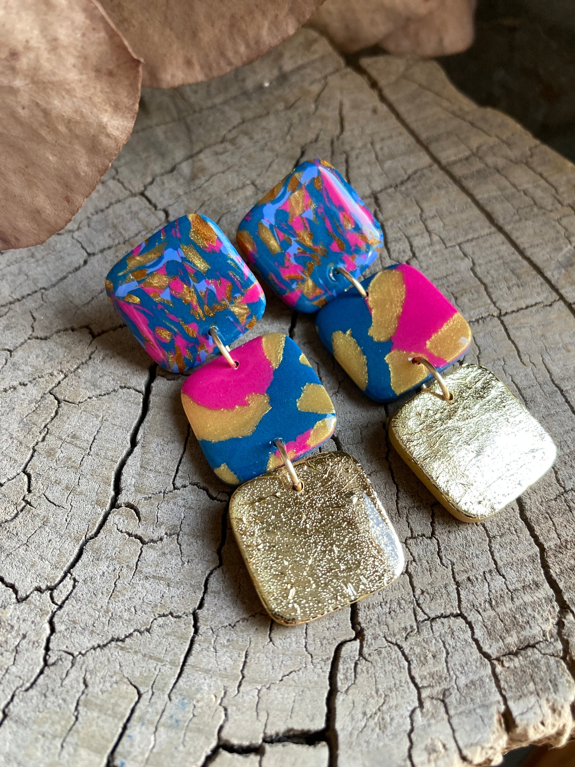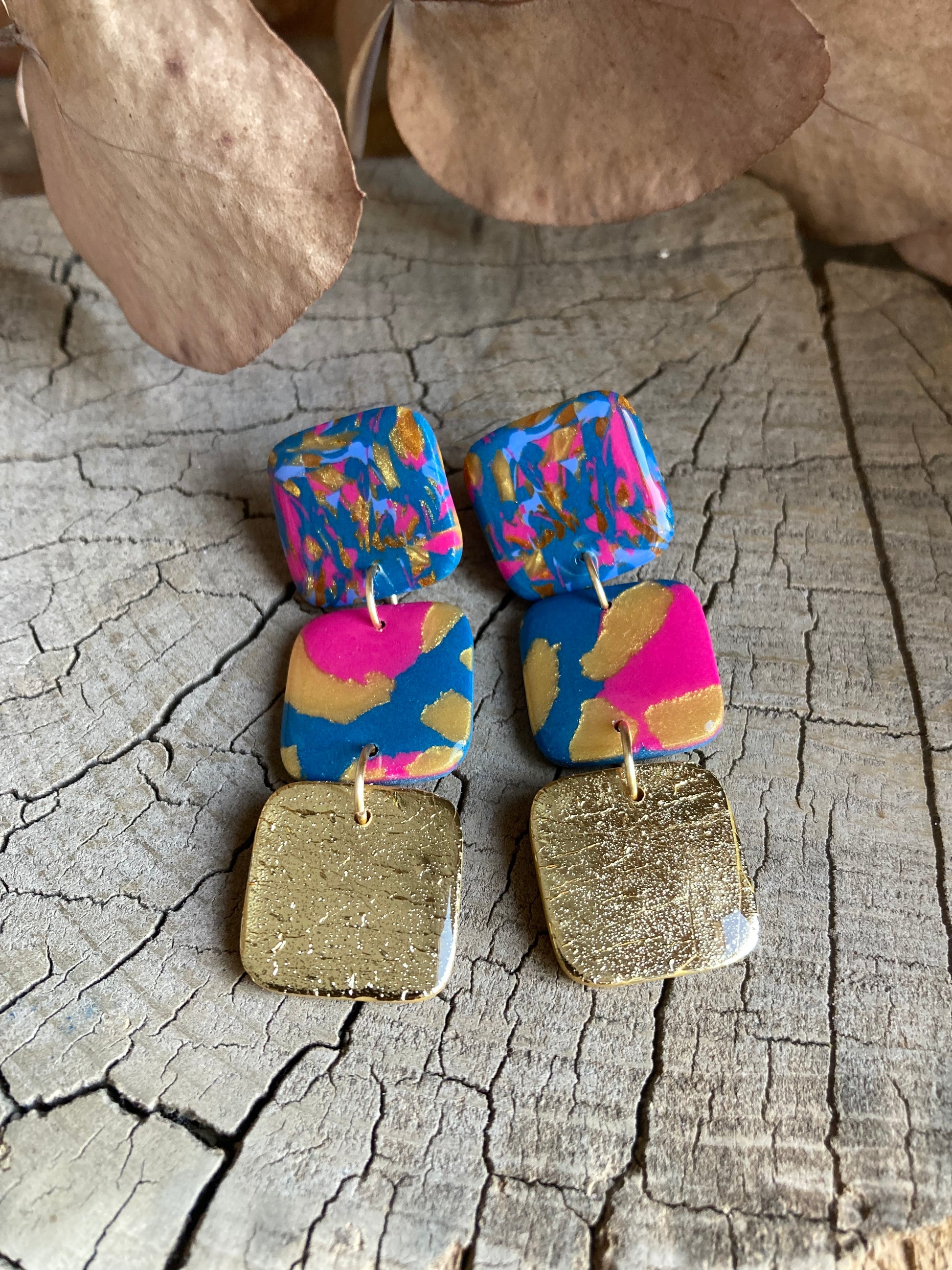 Aros de arcilla polimérica con top coat de resina uv. Miden 5,8 cms. Palito de acero quirúrgico y tope de goma.