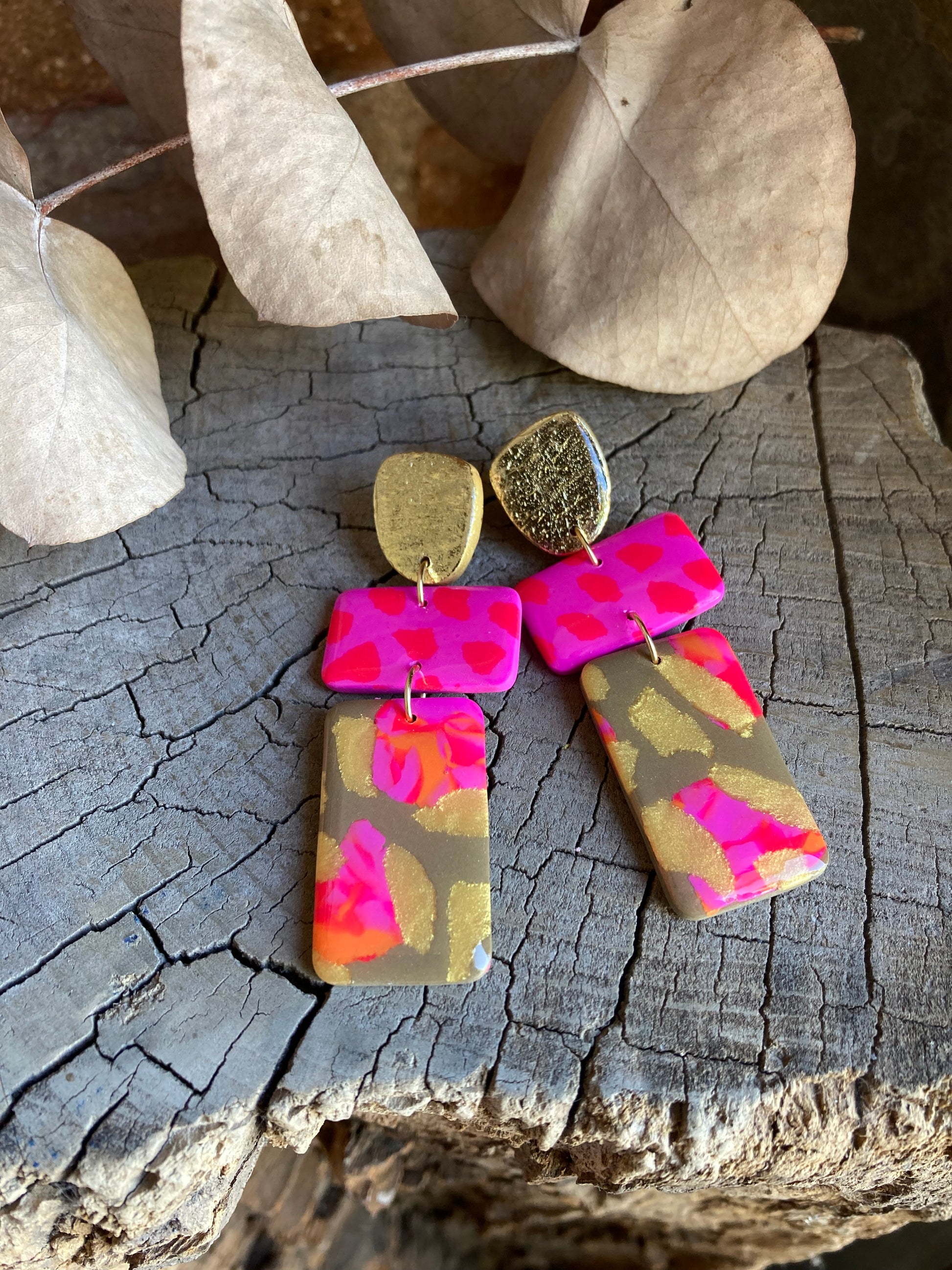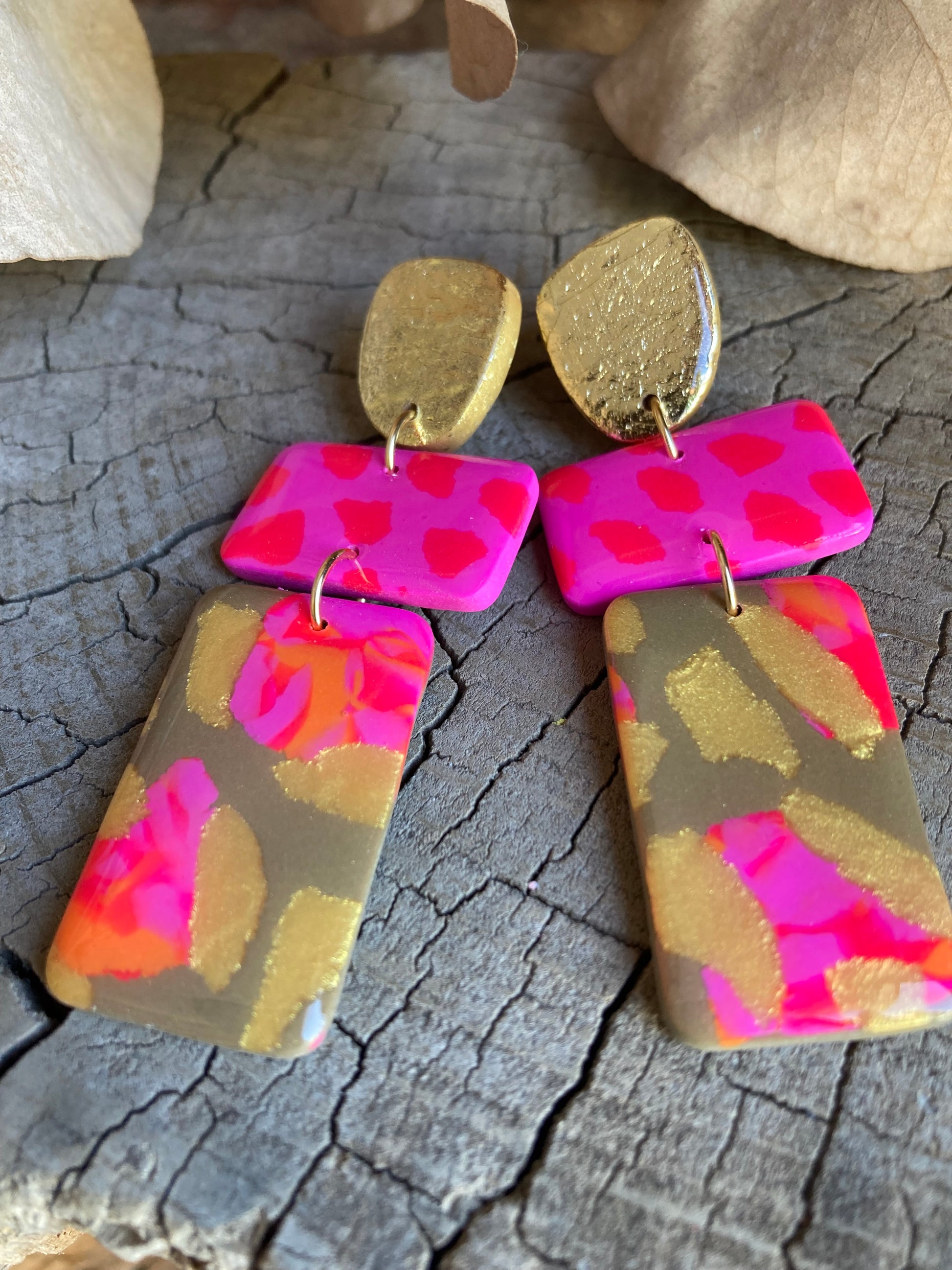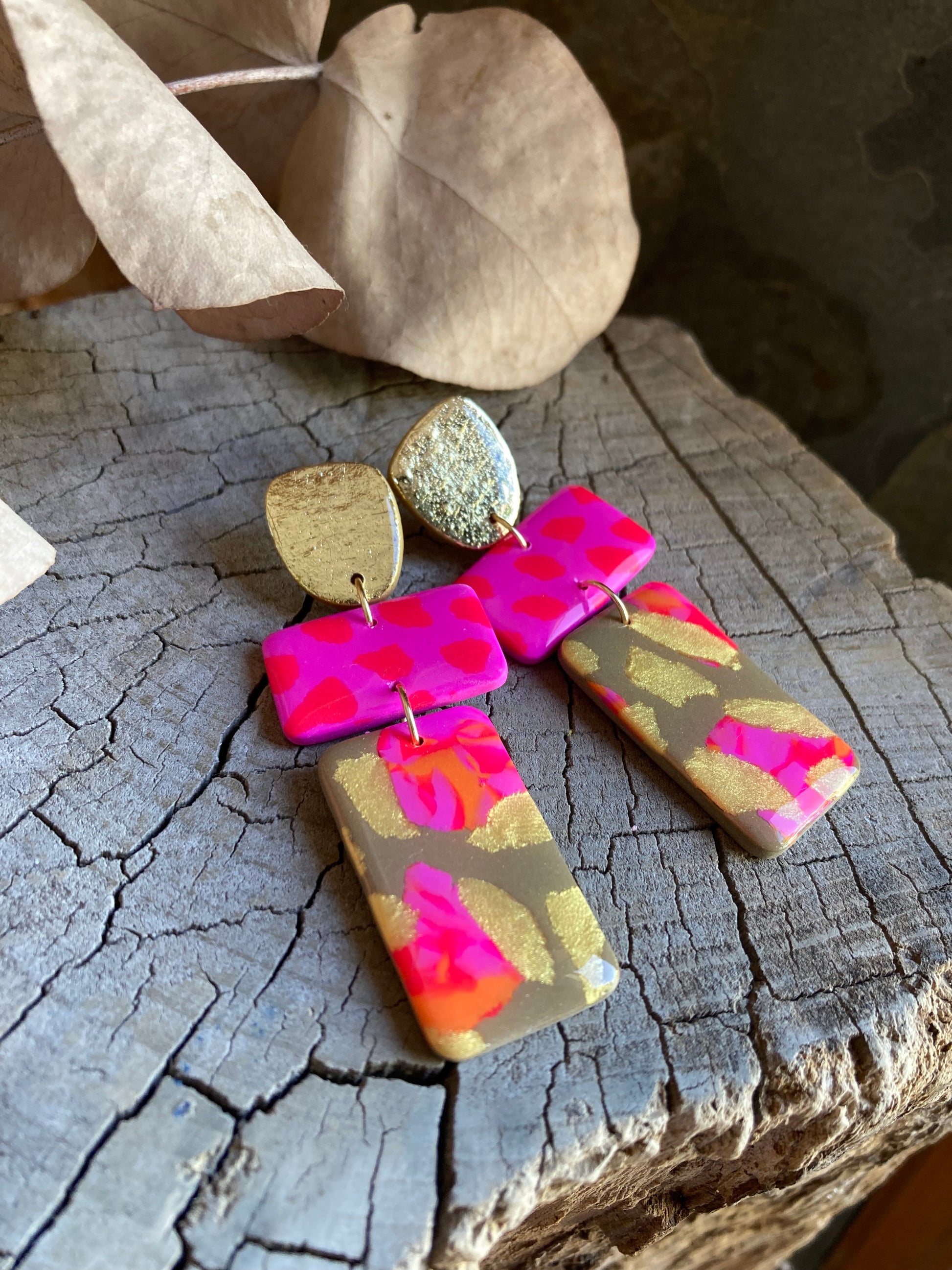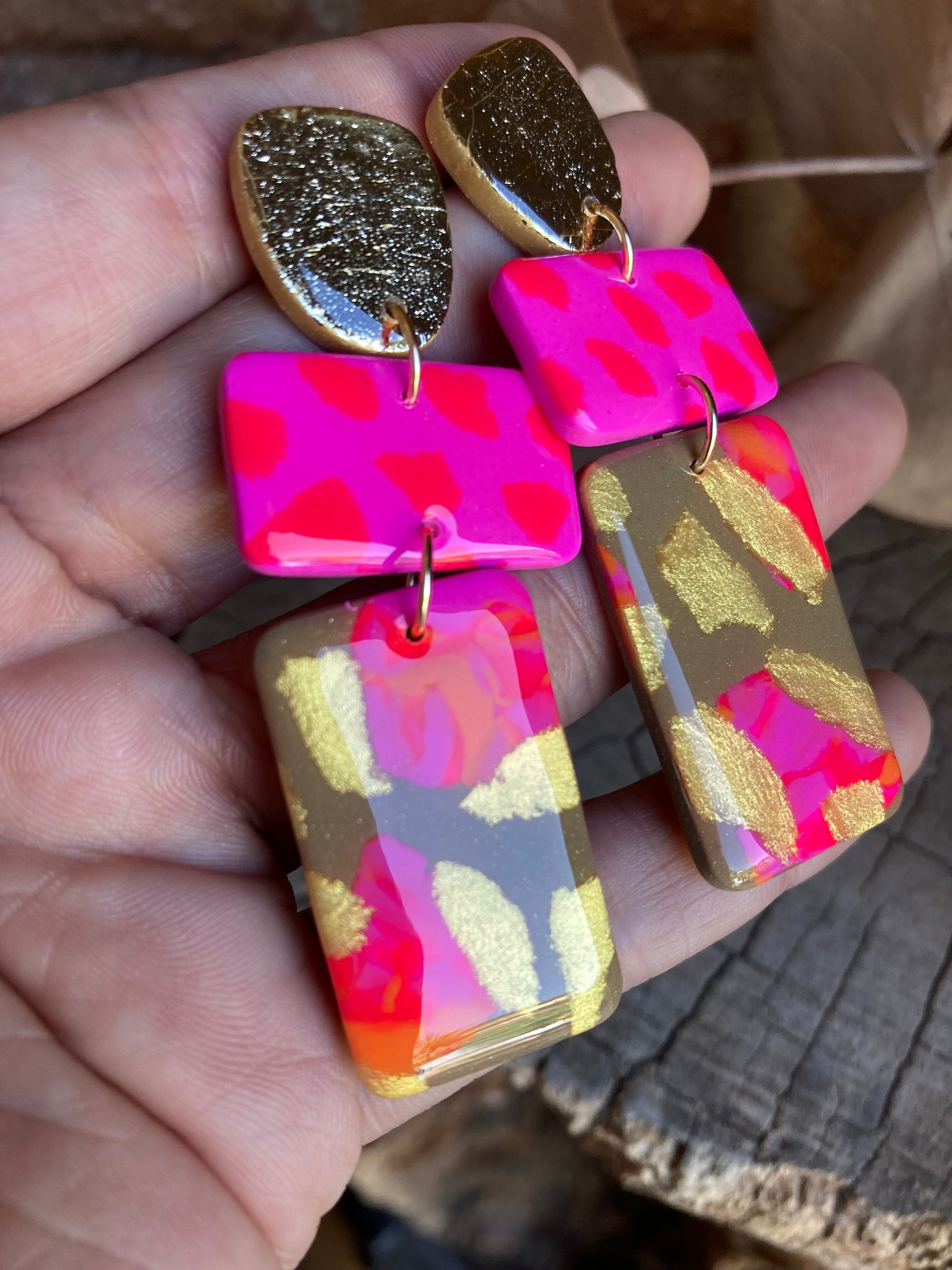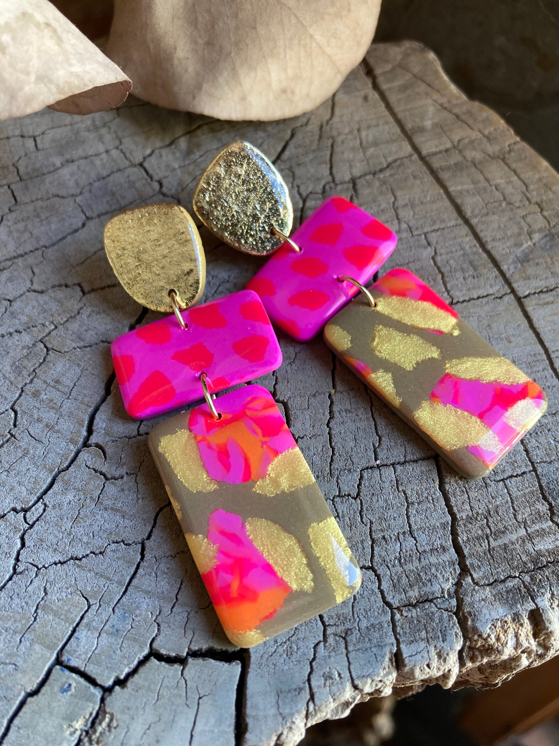 Aros de arcilla polimérica con top coat de resina uv. Miden 6,8 cms. Palito de acero quirúrgico y tope de goma.